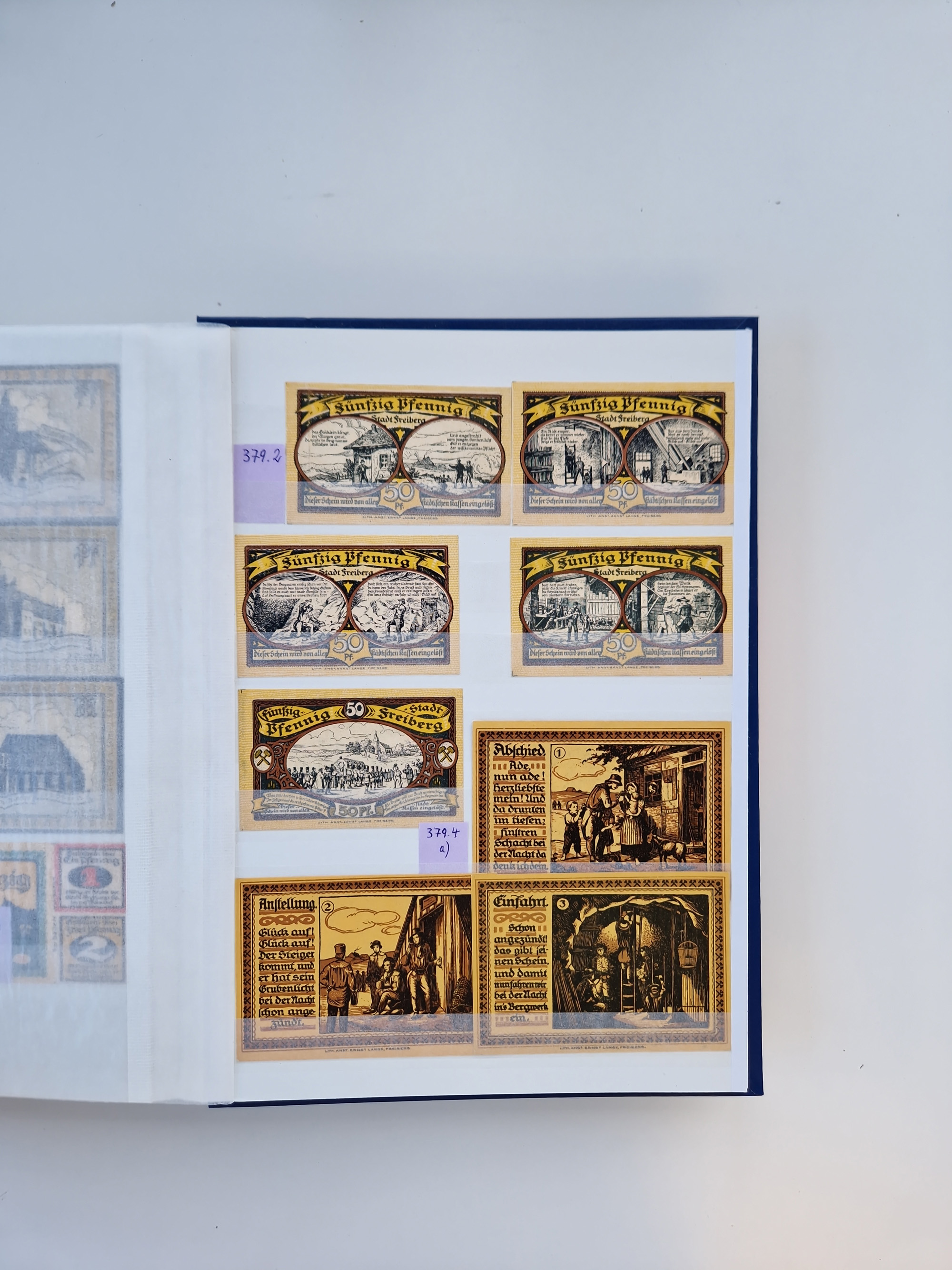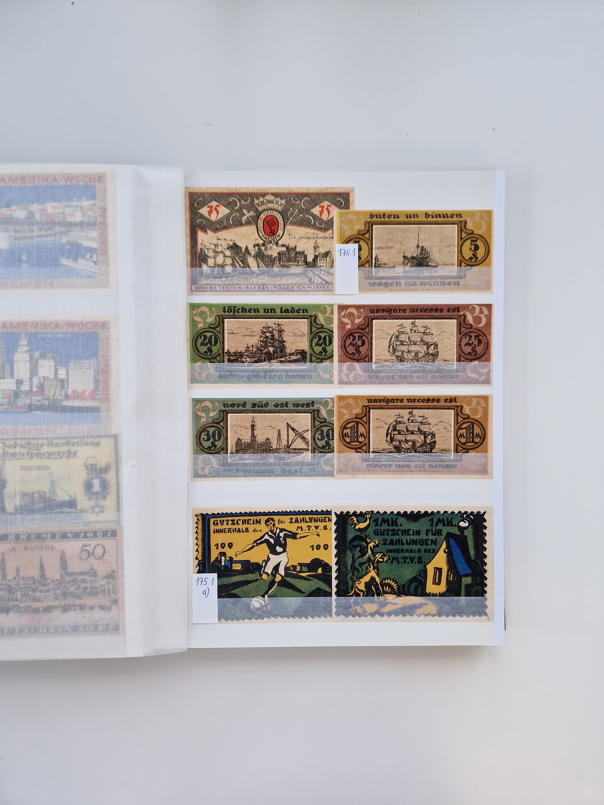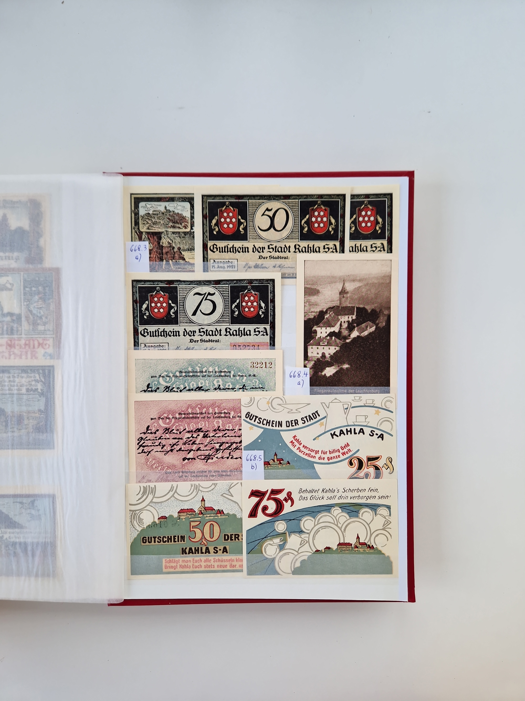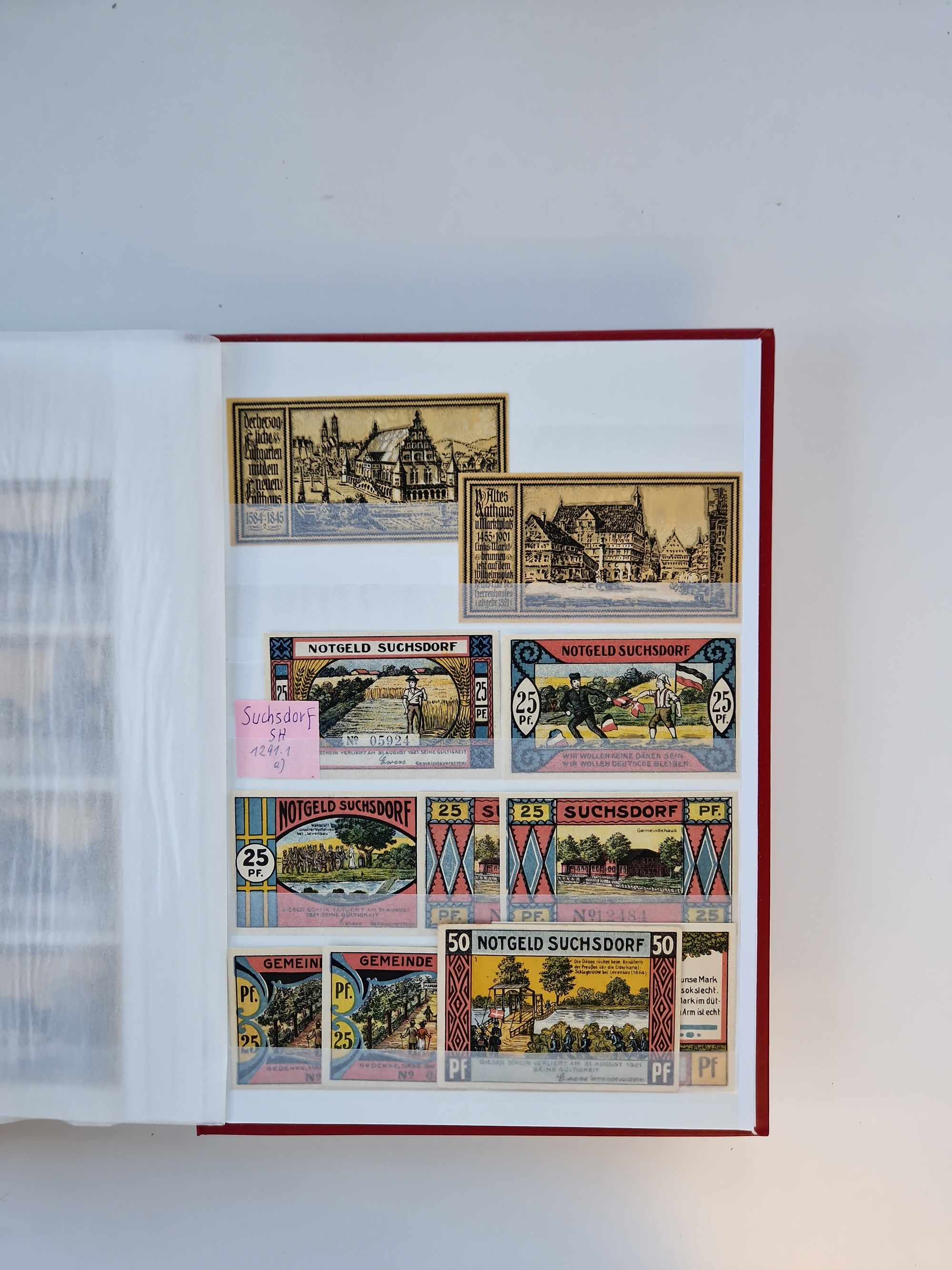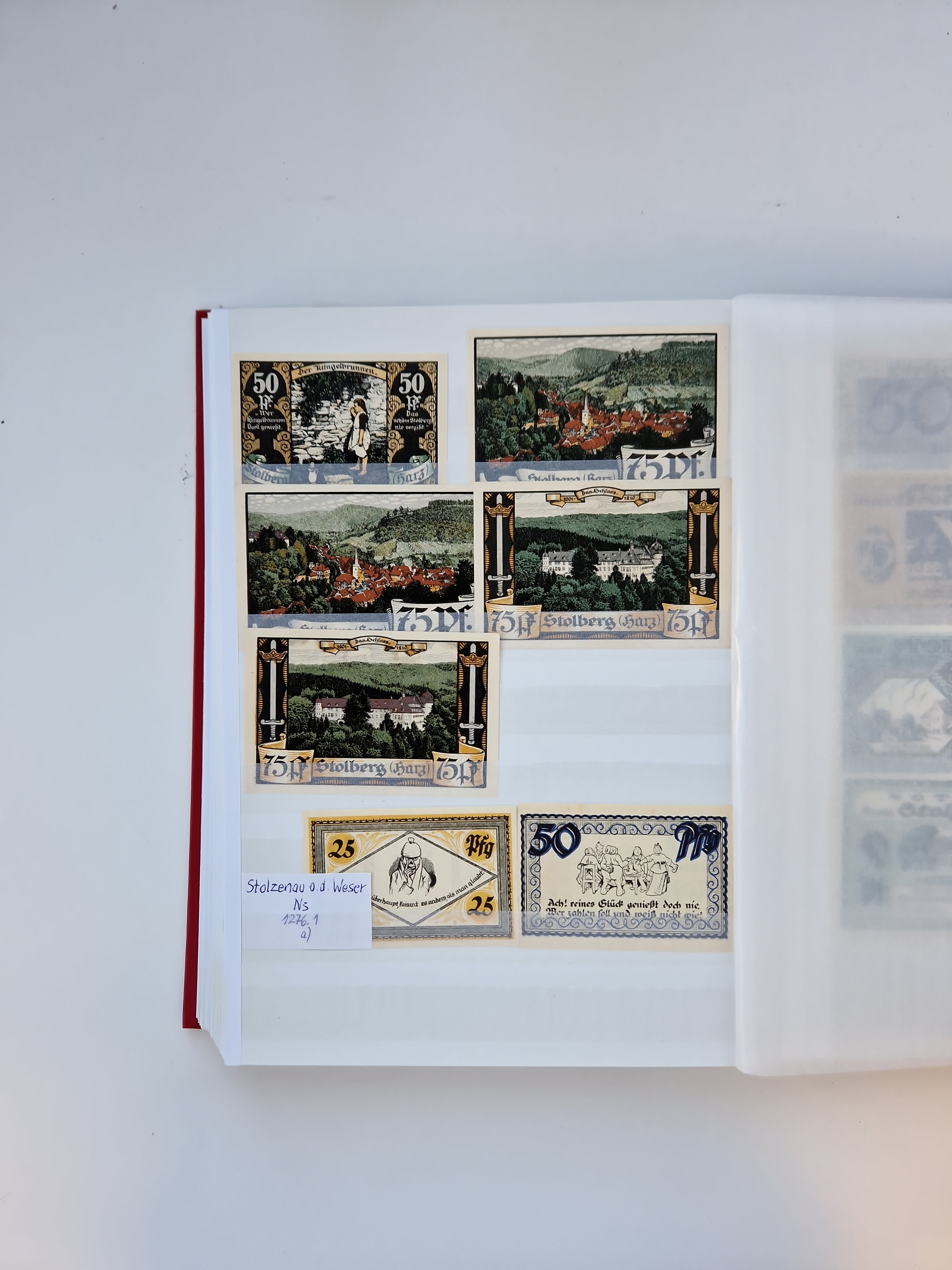 Notgeld-Serienscheine, saubere Sammlung in 16 meist dicken Steckalben, sauber nach Orten und Serien sortiert, überschlägig etwa 7/8000 Stück, dazu 4 Kataloge