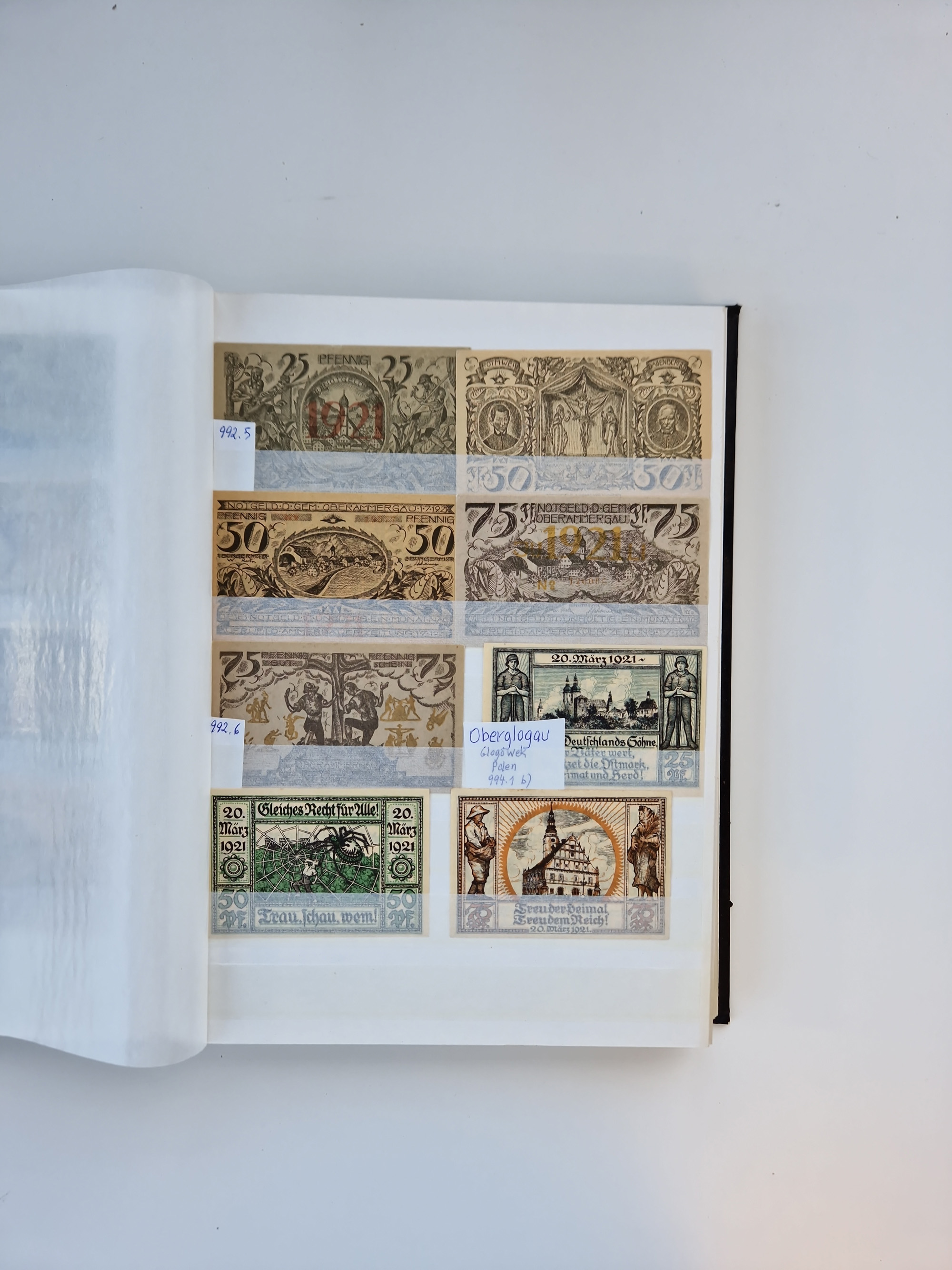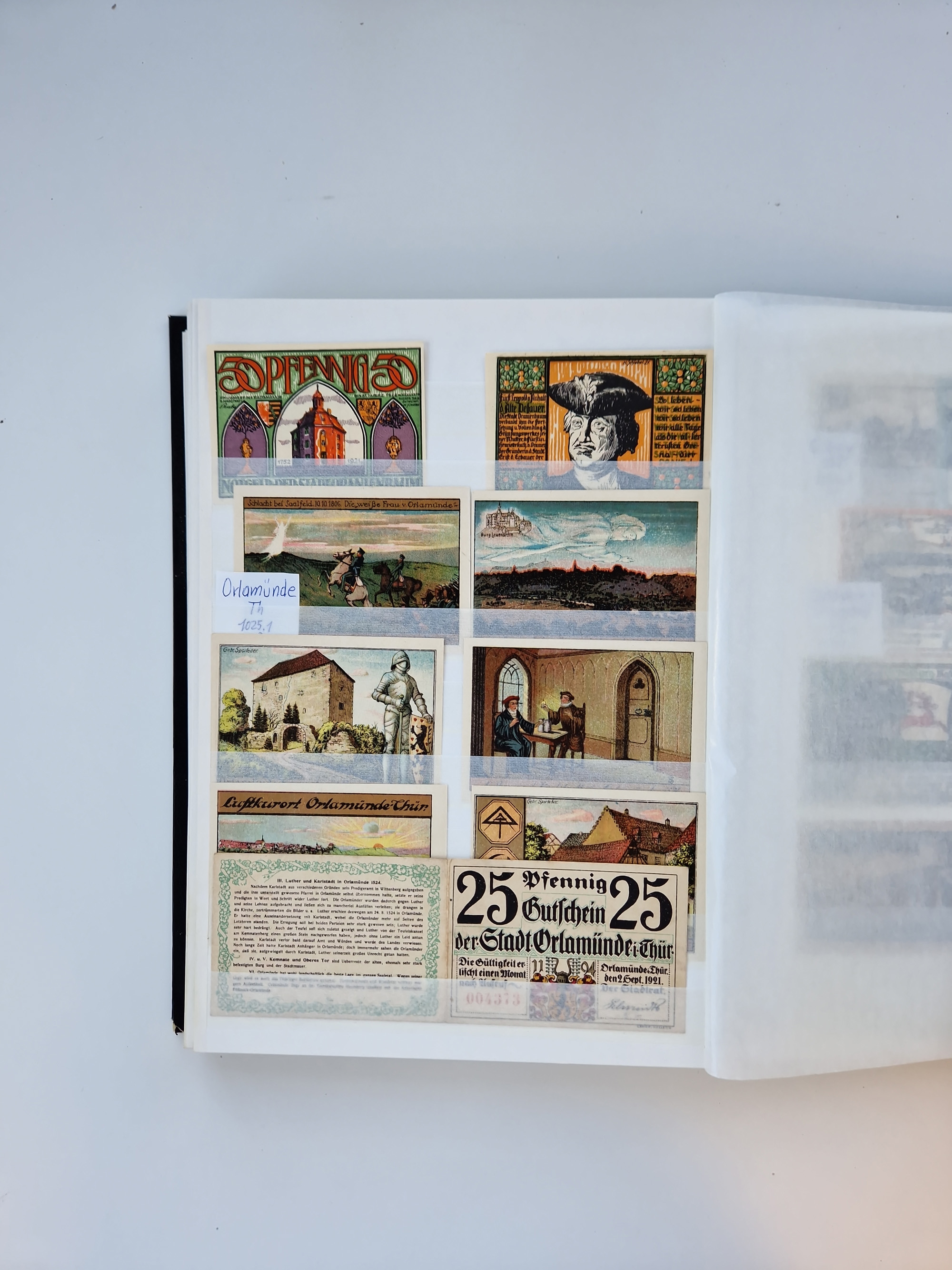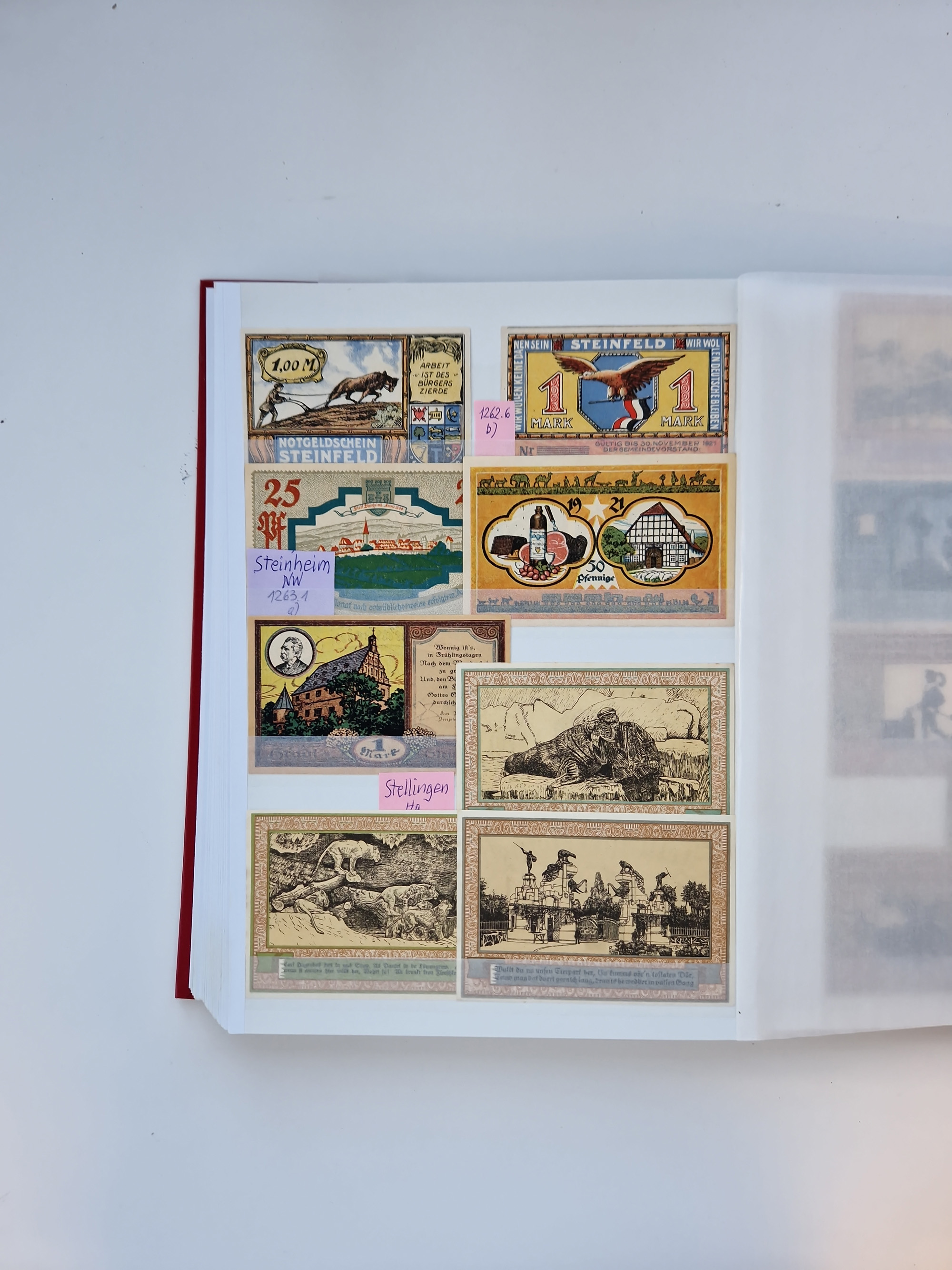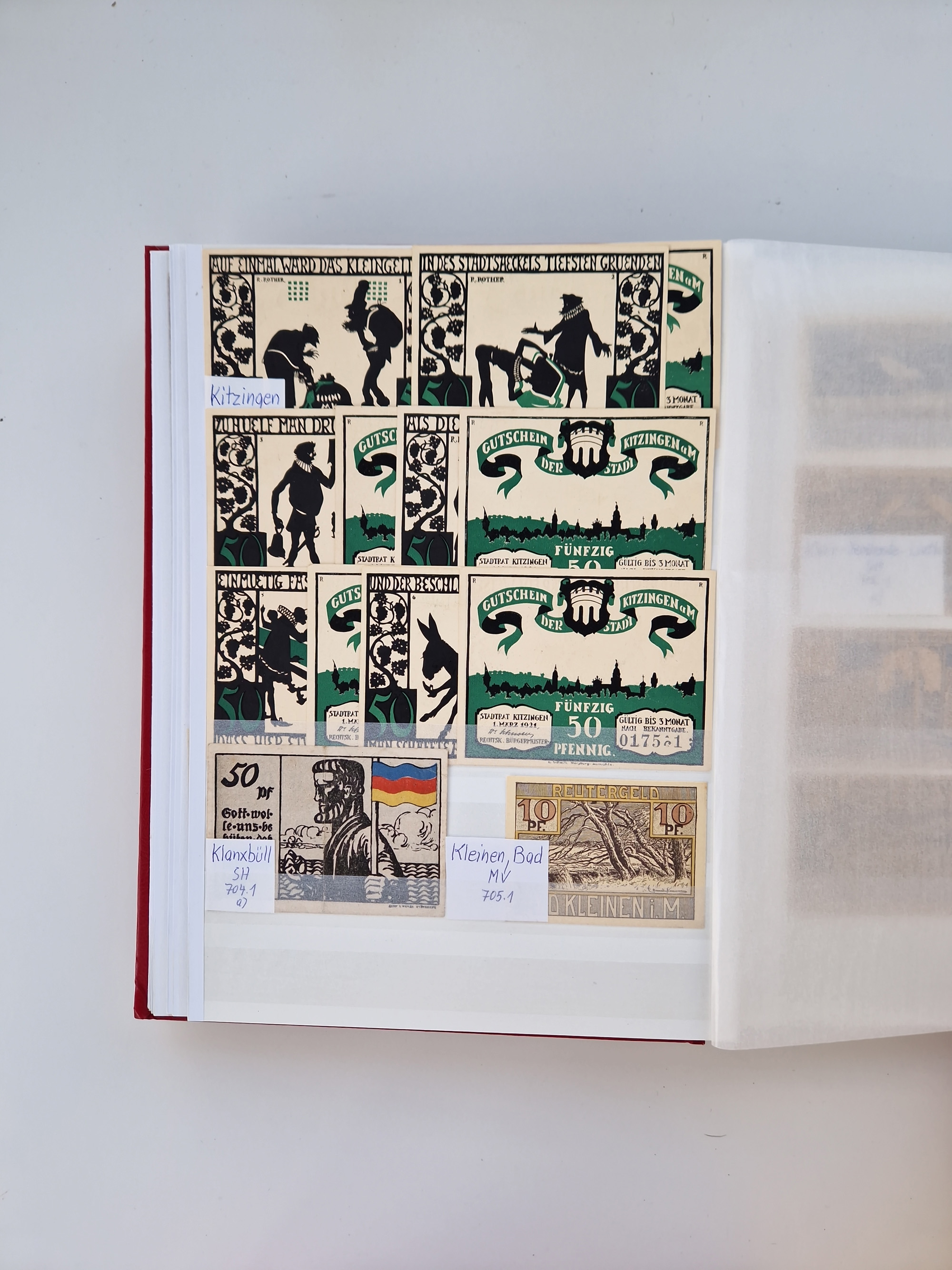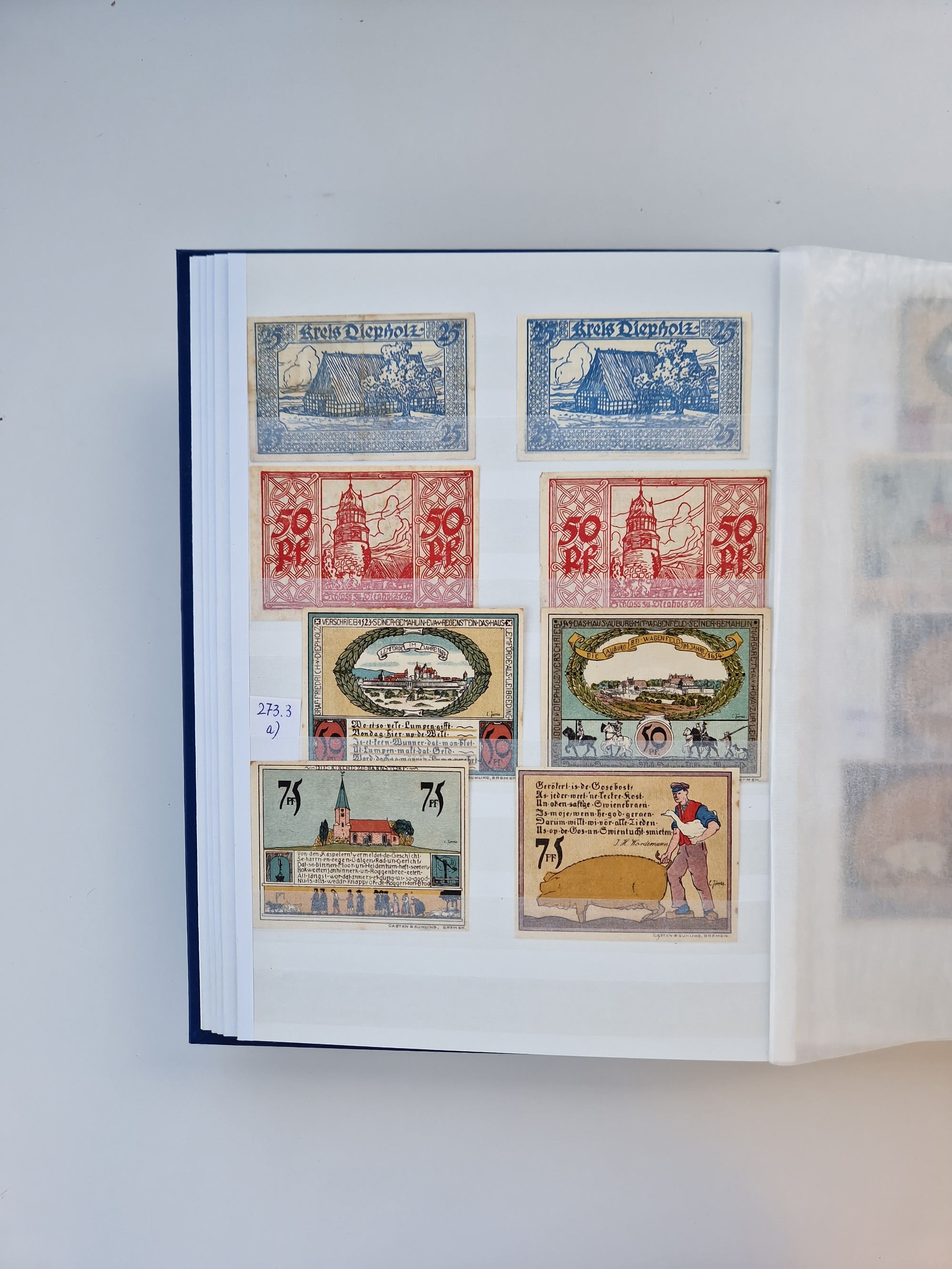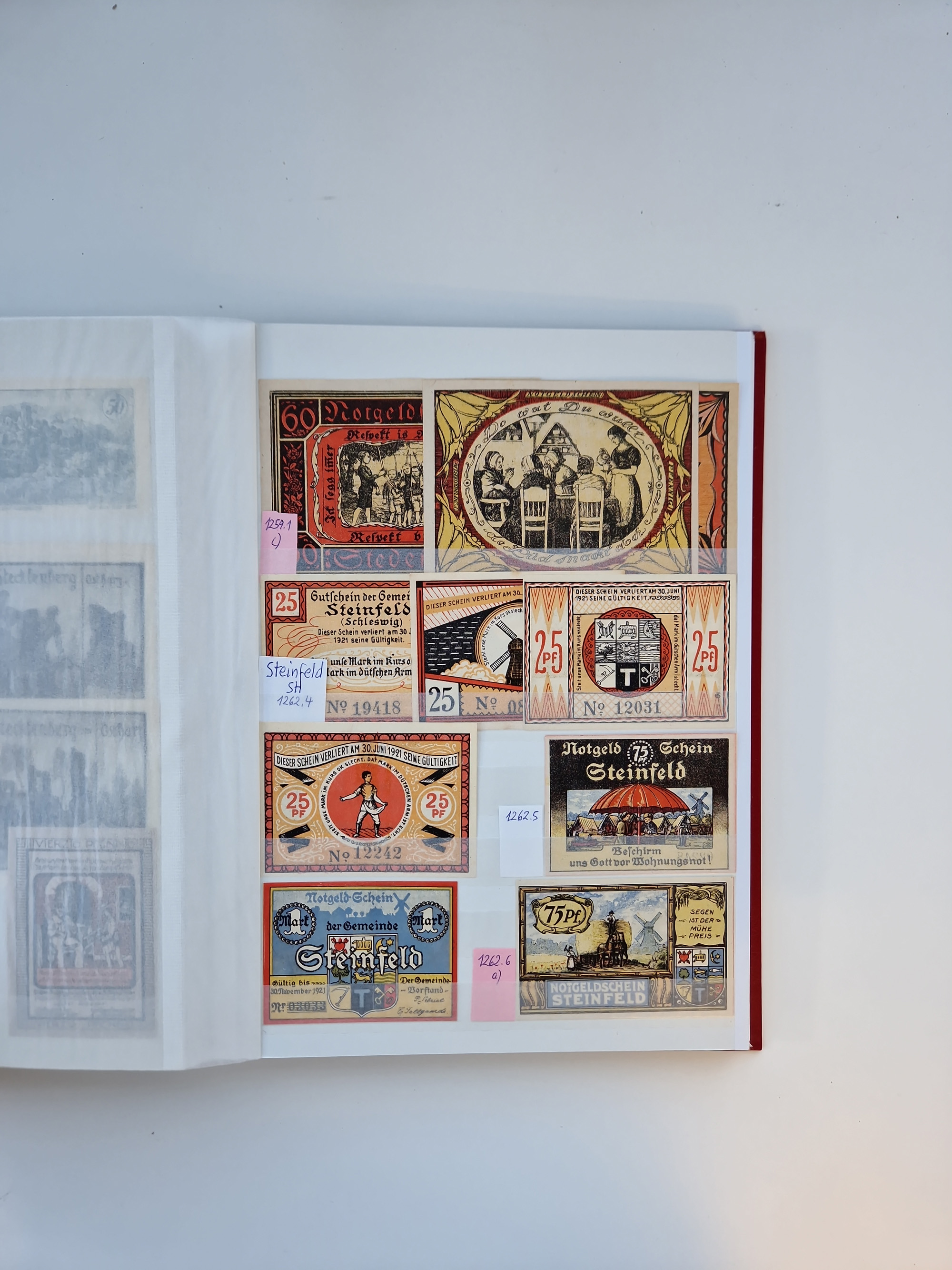 Notgeld-Serienscheine, saubere Sammlung in 16 meist dicken Steckalben, sauber nach Orten und Serien sortiert, überschlägig etwa 7/8000 Stück, dazu 4 Kataloge