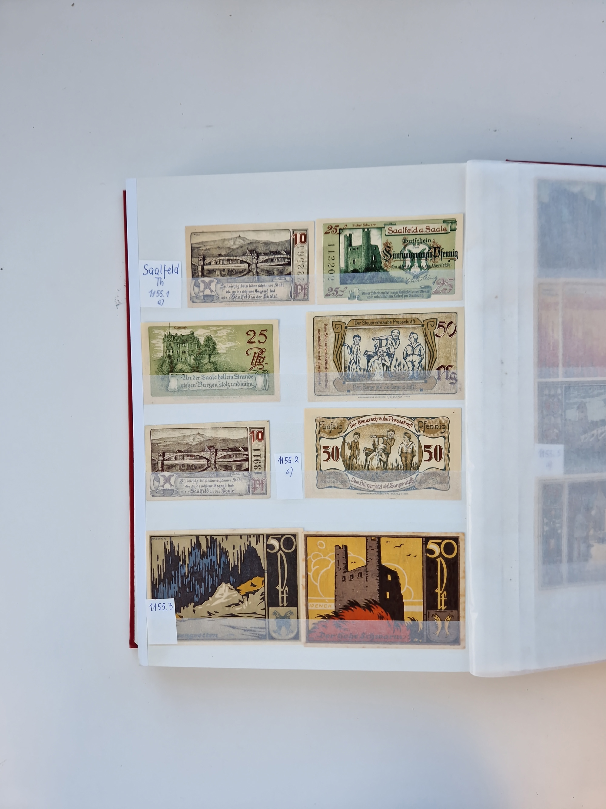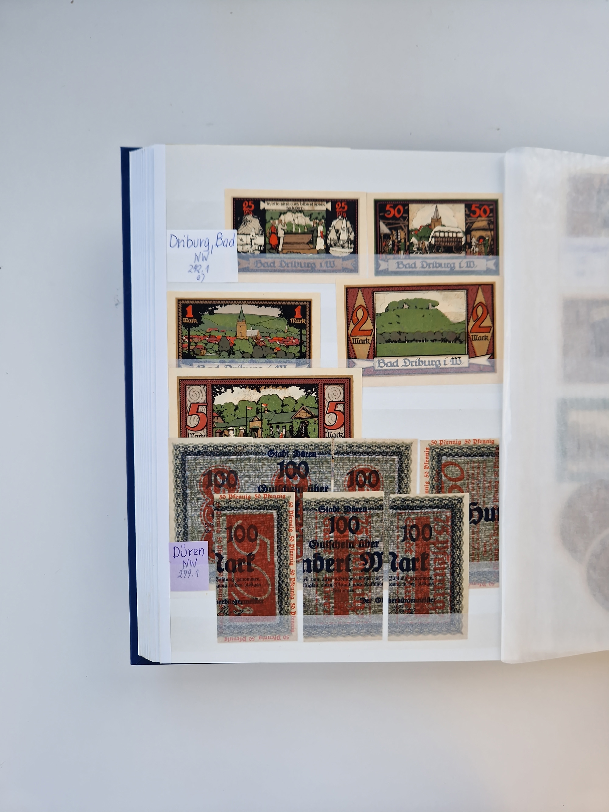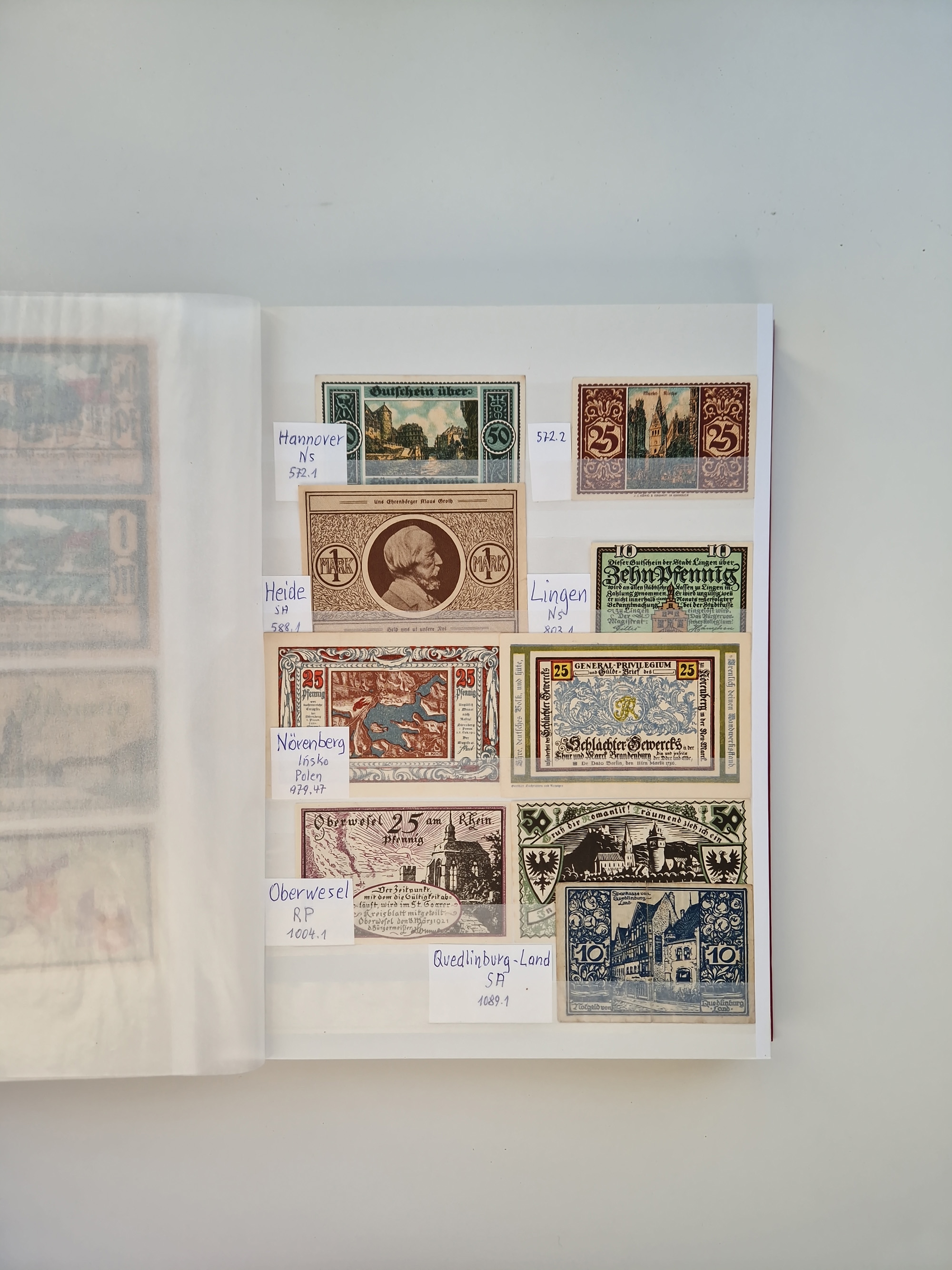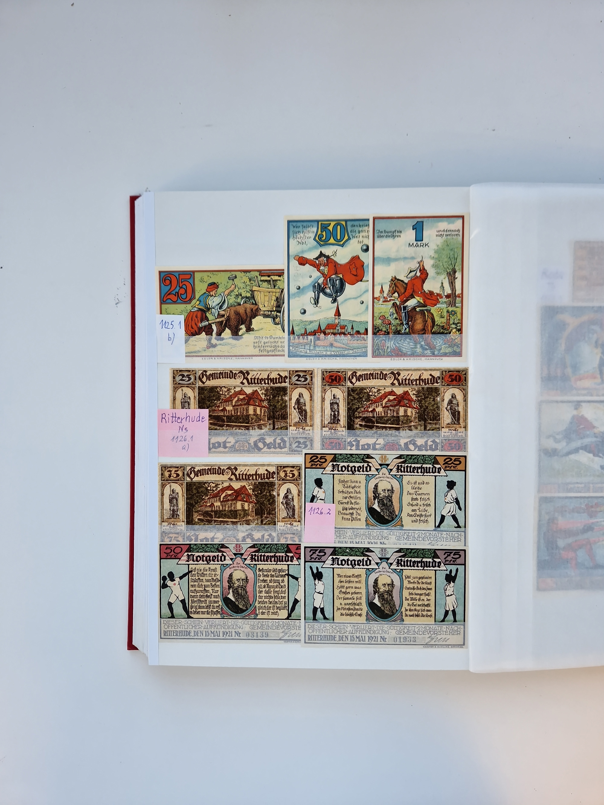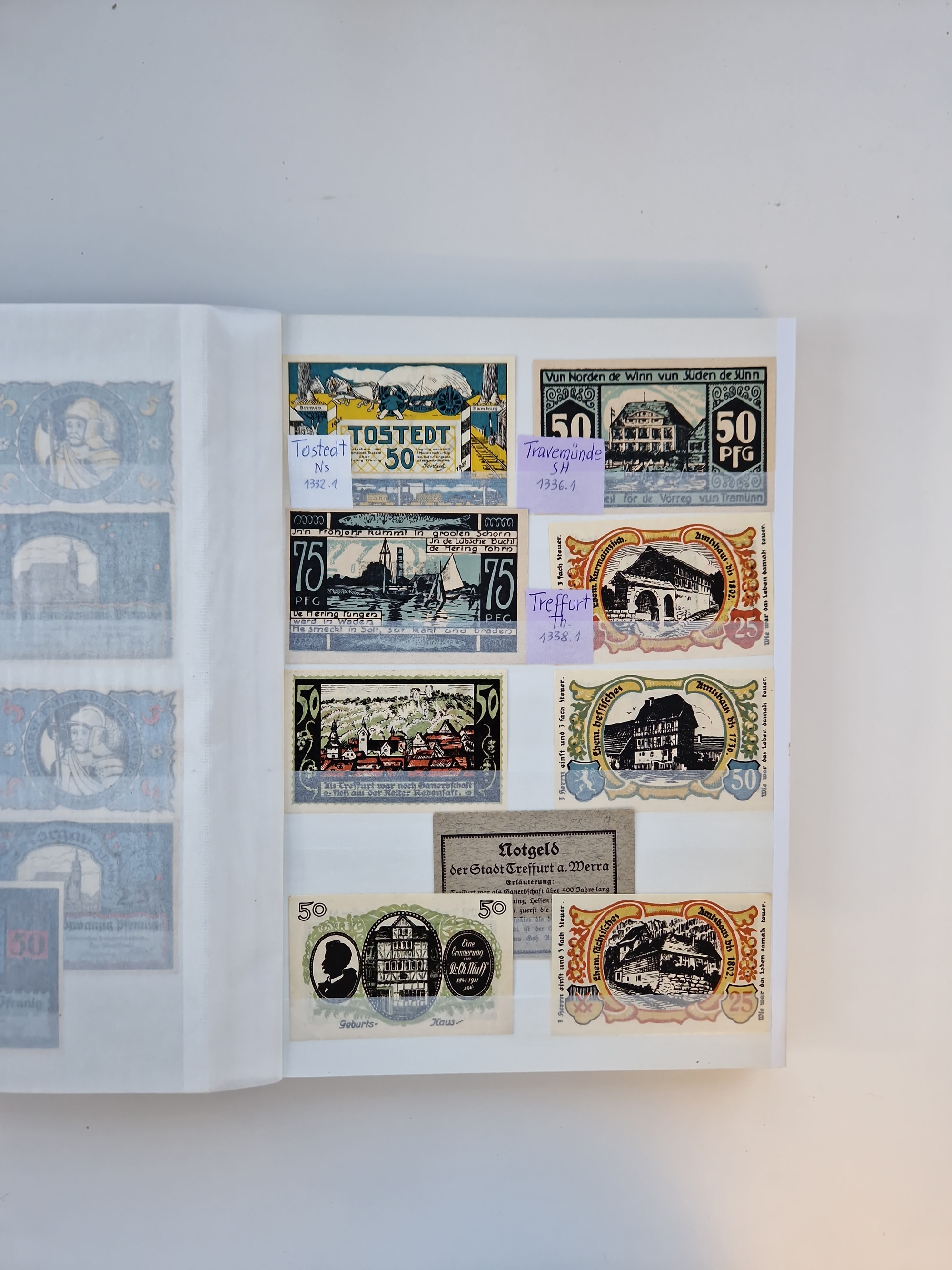 Notgeld-Serienscheine, saubere Sammlung in 16 meist dicken Steckalben, sauber nach Orten und Serien sortiert, überschlägig etwa 7/8000 Stück, dazu 4 Kataloge