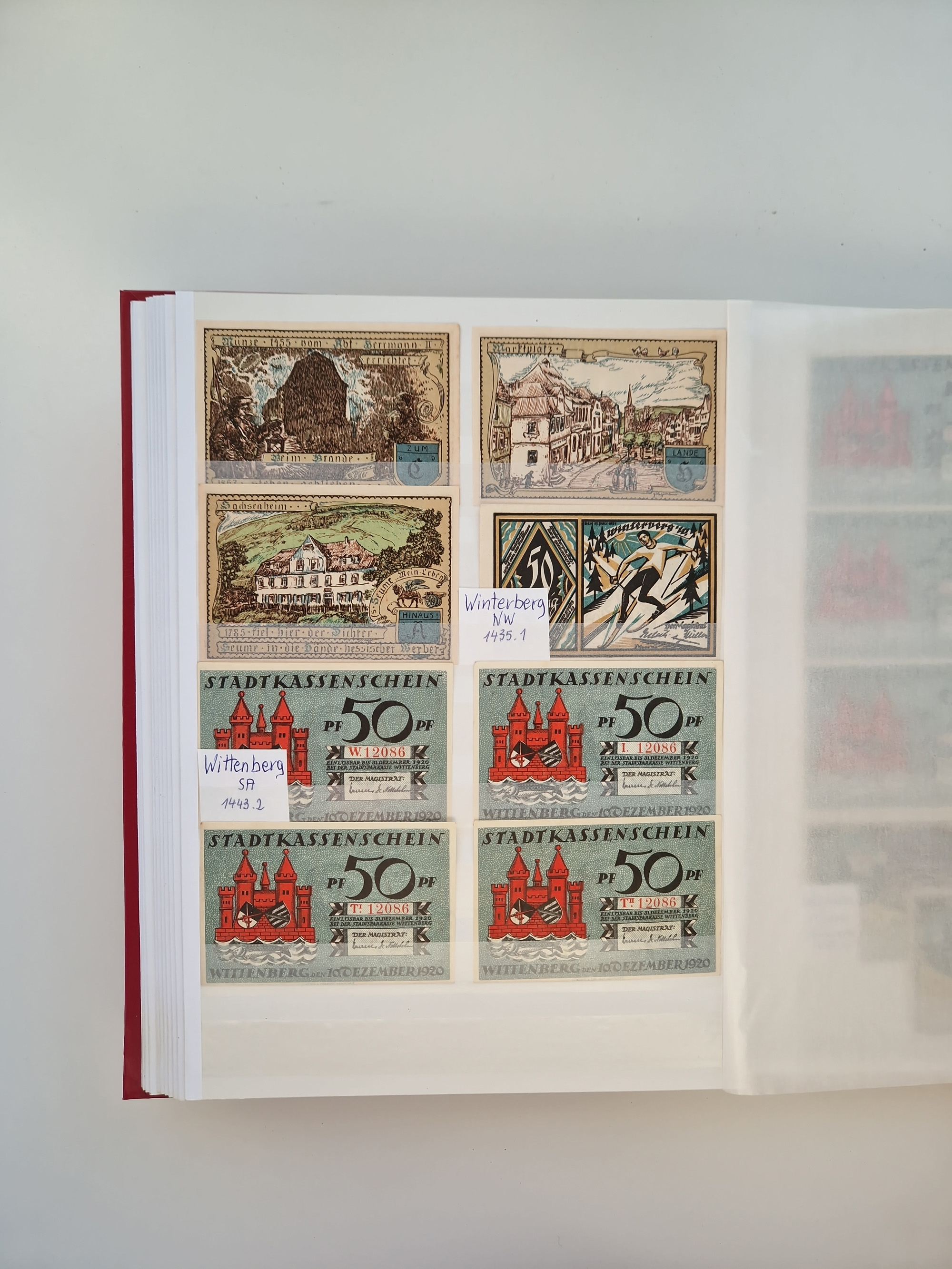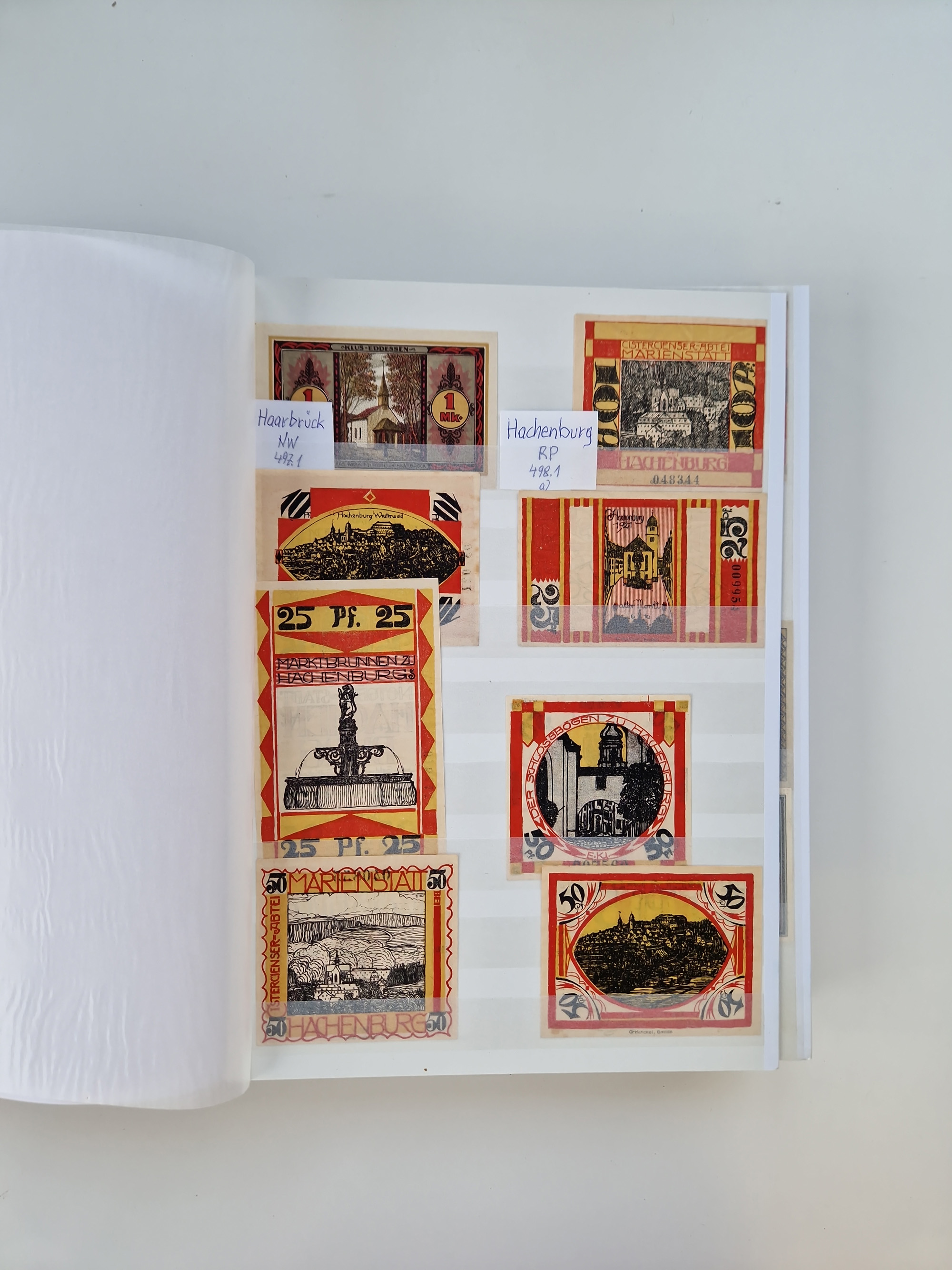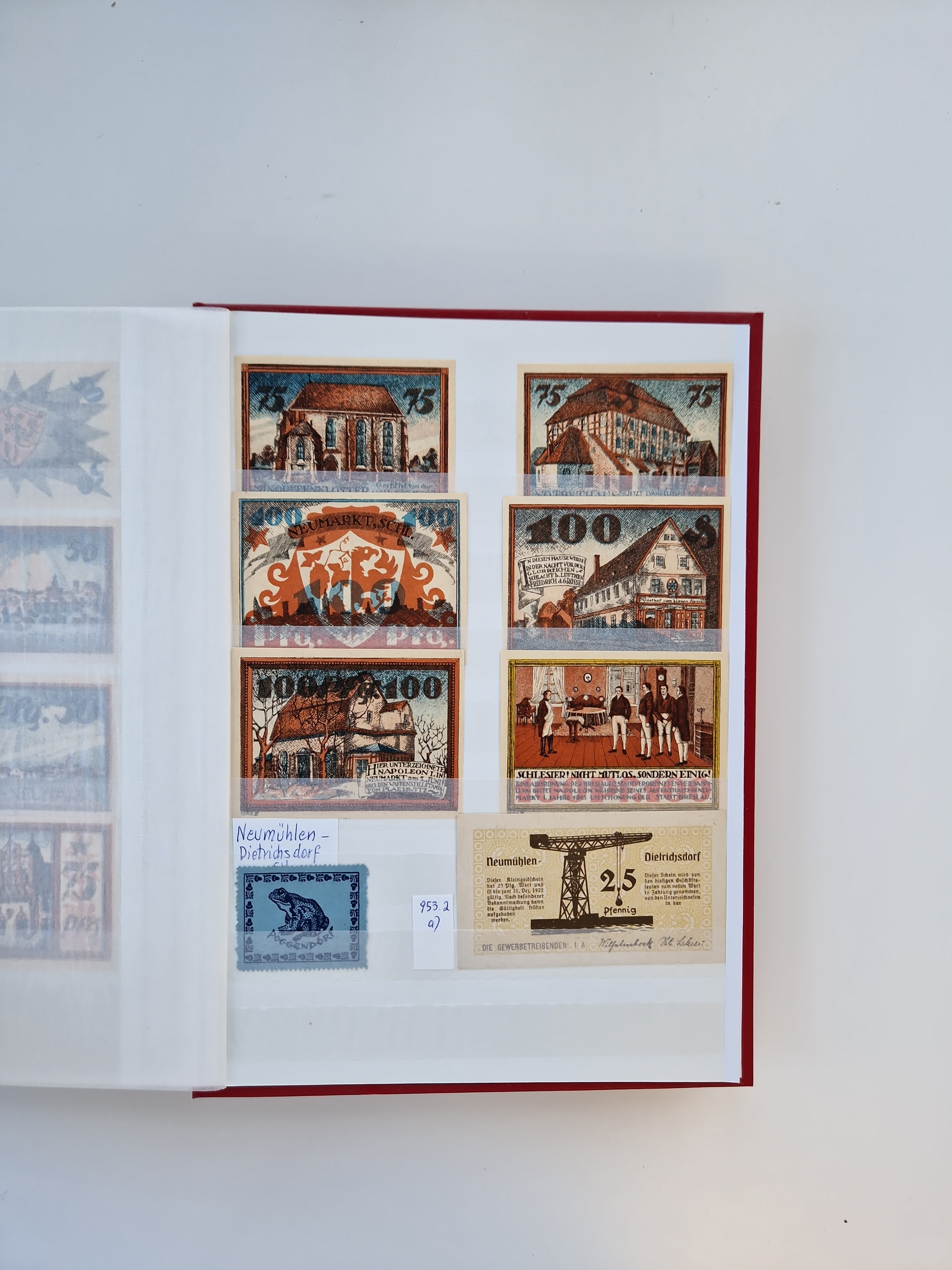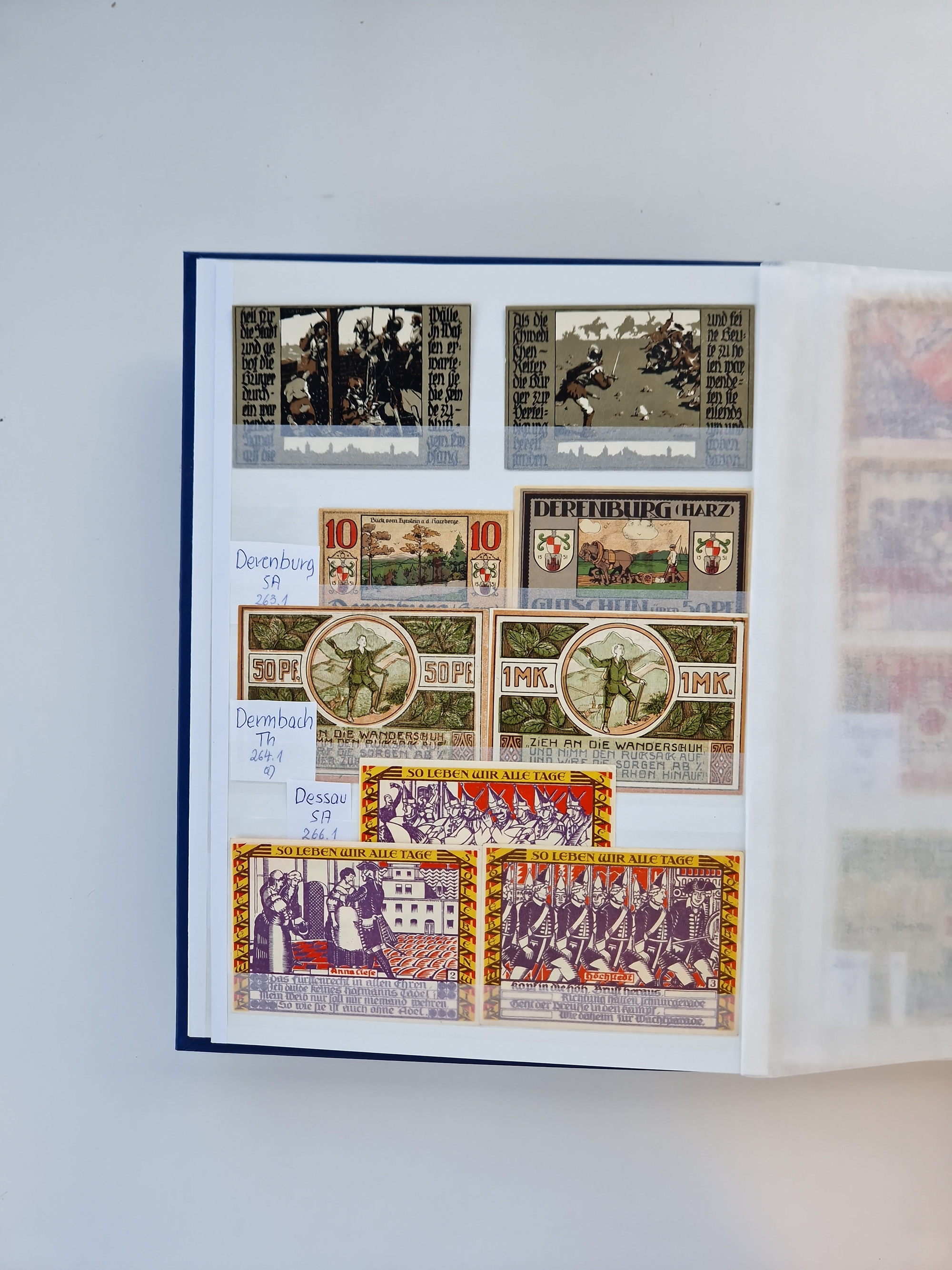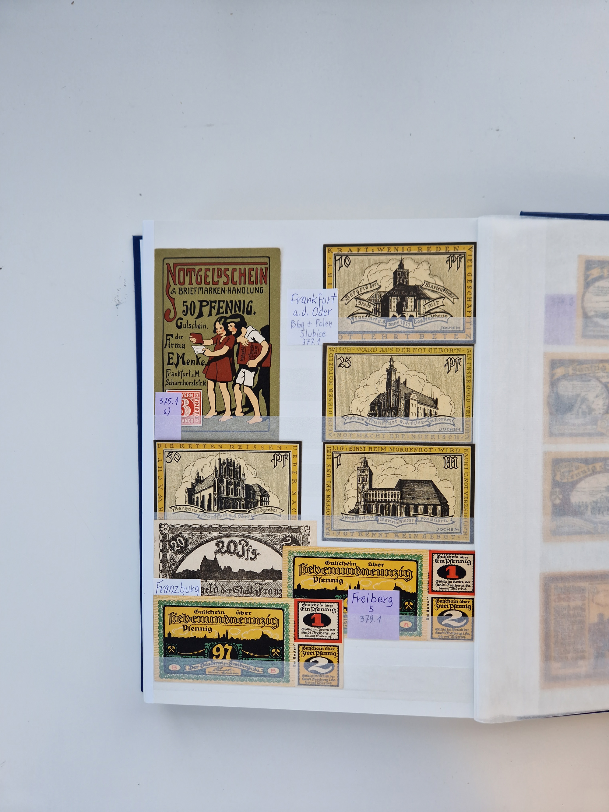 Notgeld-Serienscheine, saubere Sammlung in 16 meist dicken Steckalben, sauber nach Orten und Serien sortiert, überschlägig etwa 7/8000 Stück, dazu 4 Kataloge