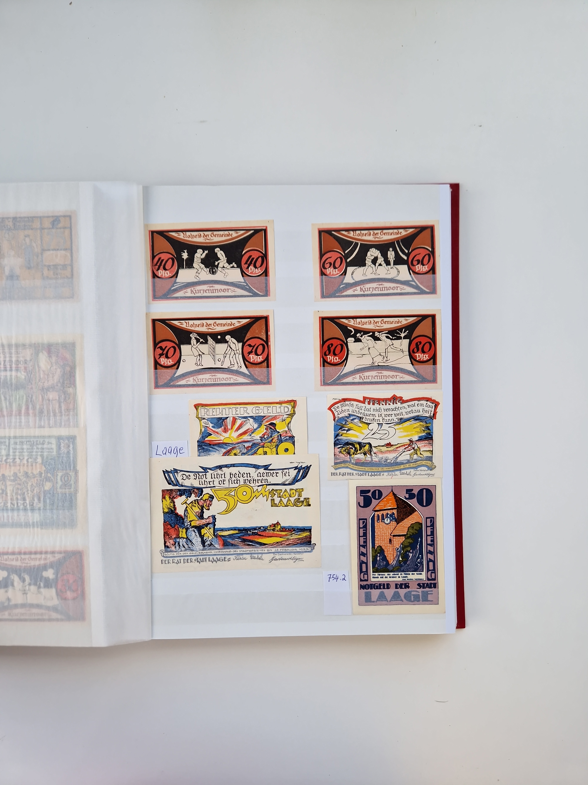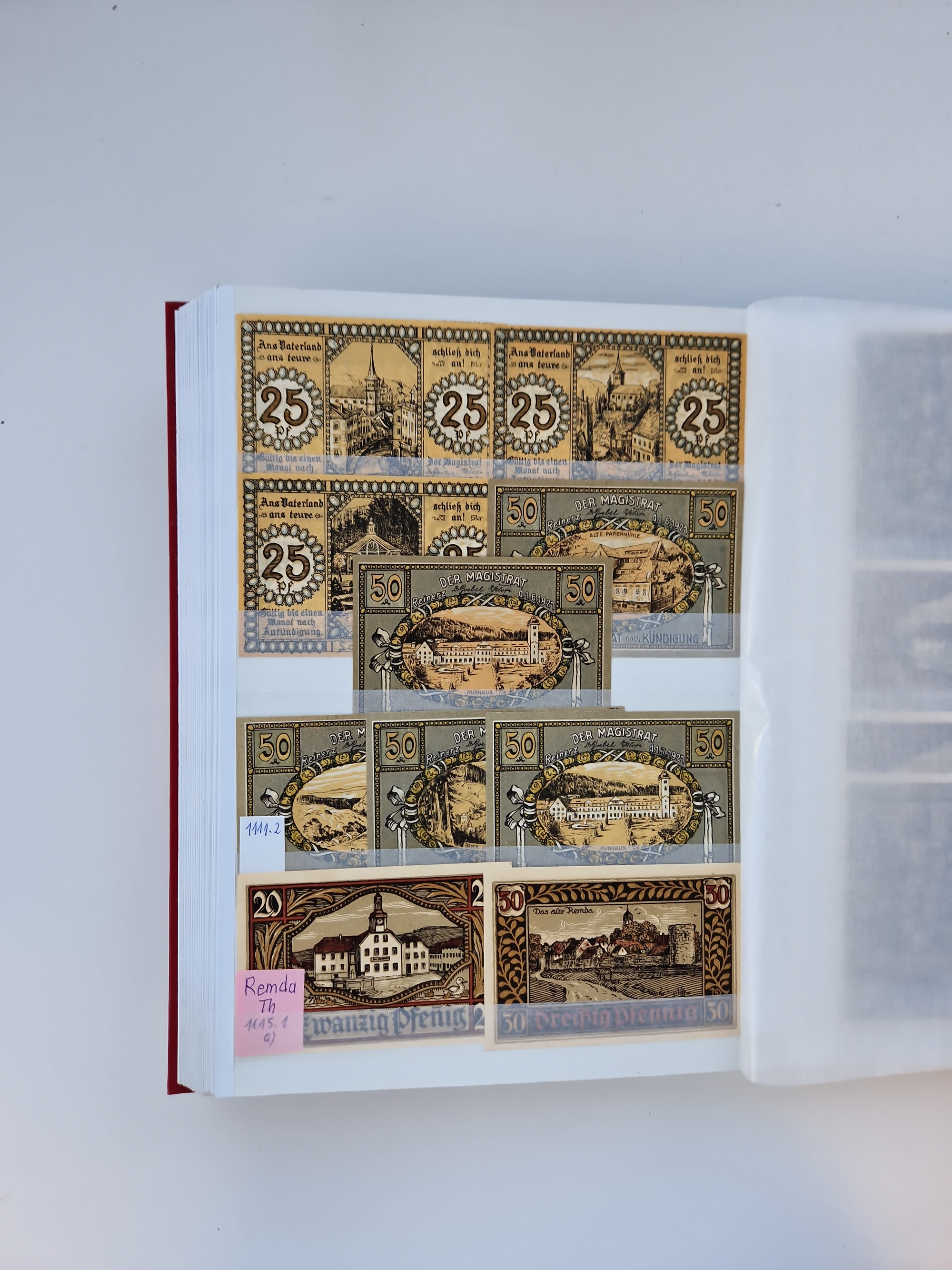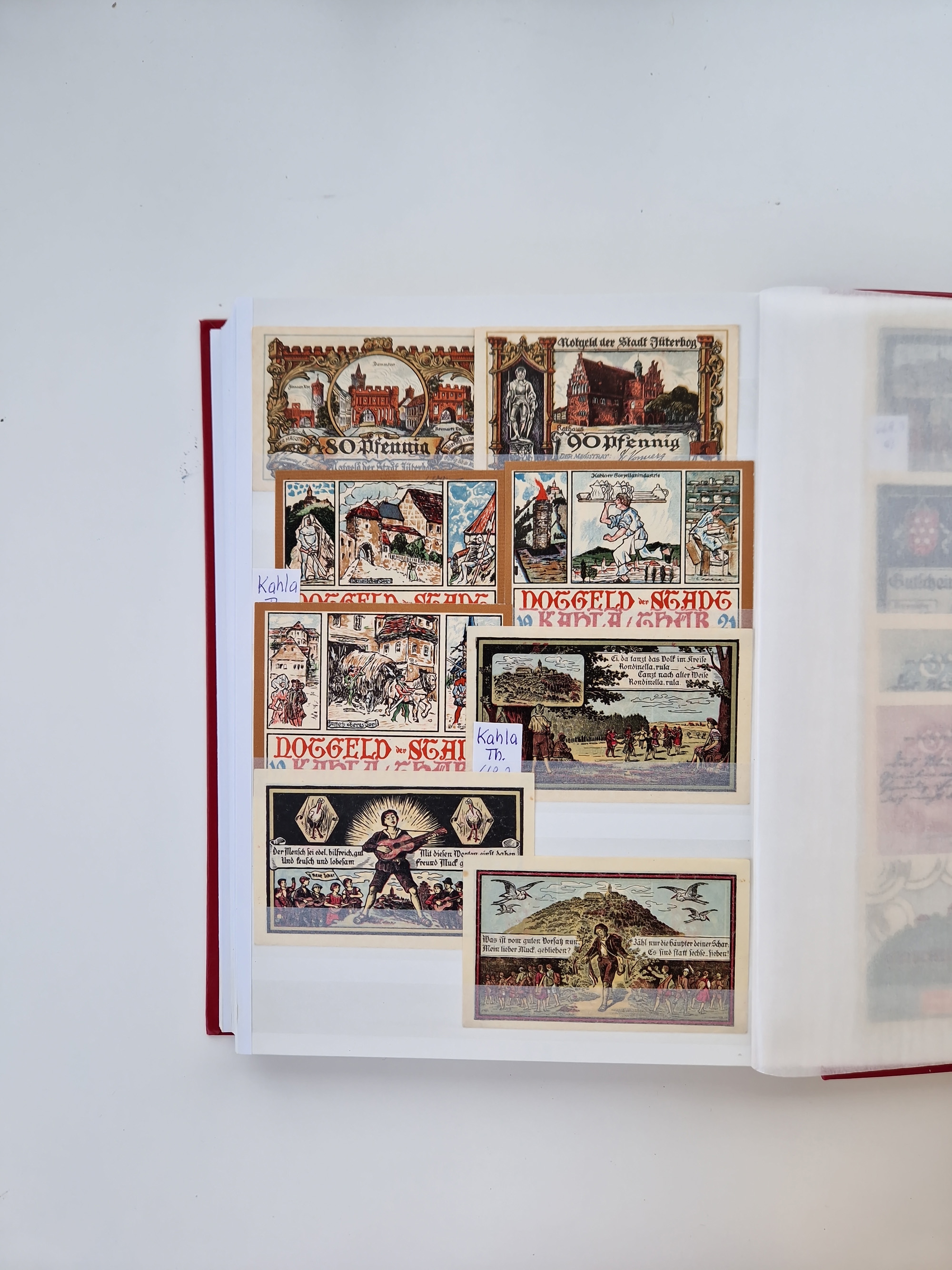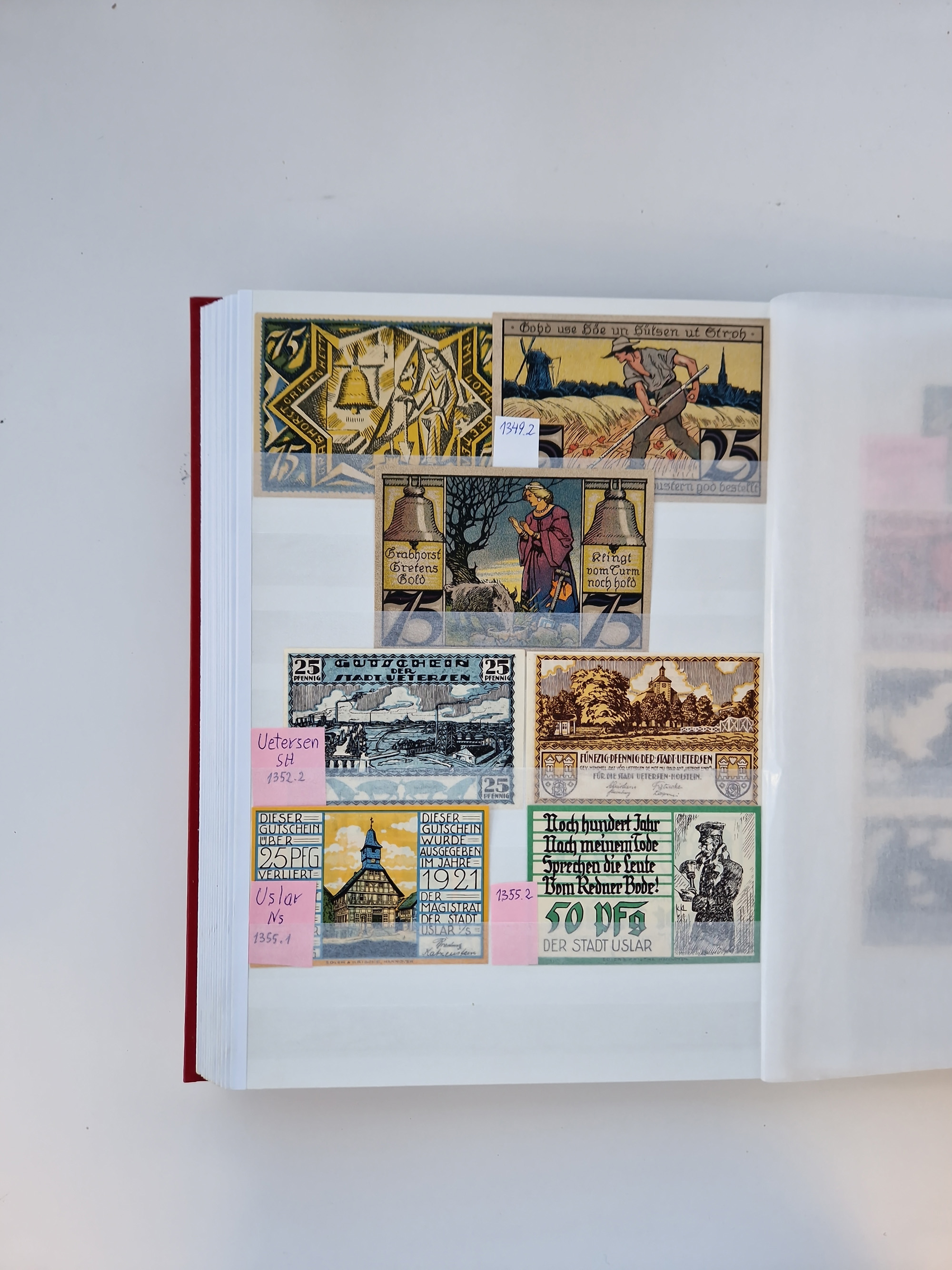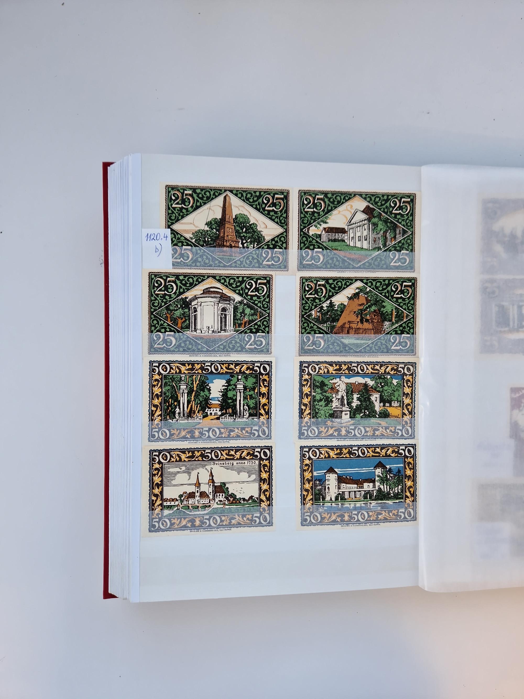 Notgeld-Serienscheine, saubere Sammlung in 16 meist dicken Steckalben, sauber nach Orten und Serien sortiert, überschlägig etwa 7/8000 Stück, dazu 4 Kataloge