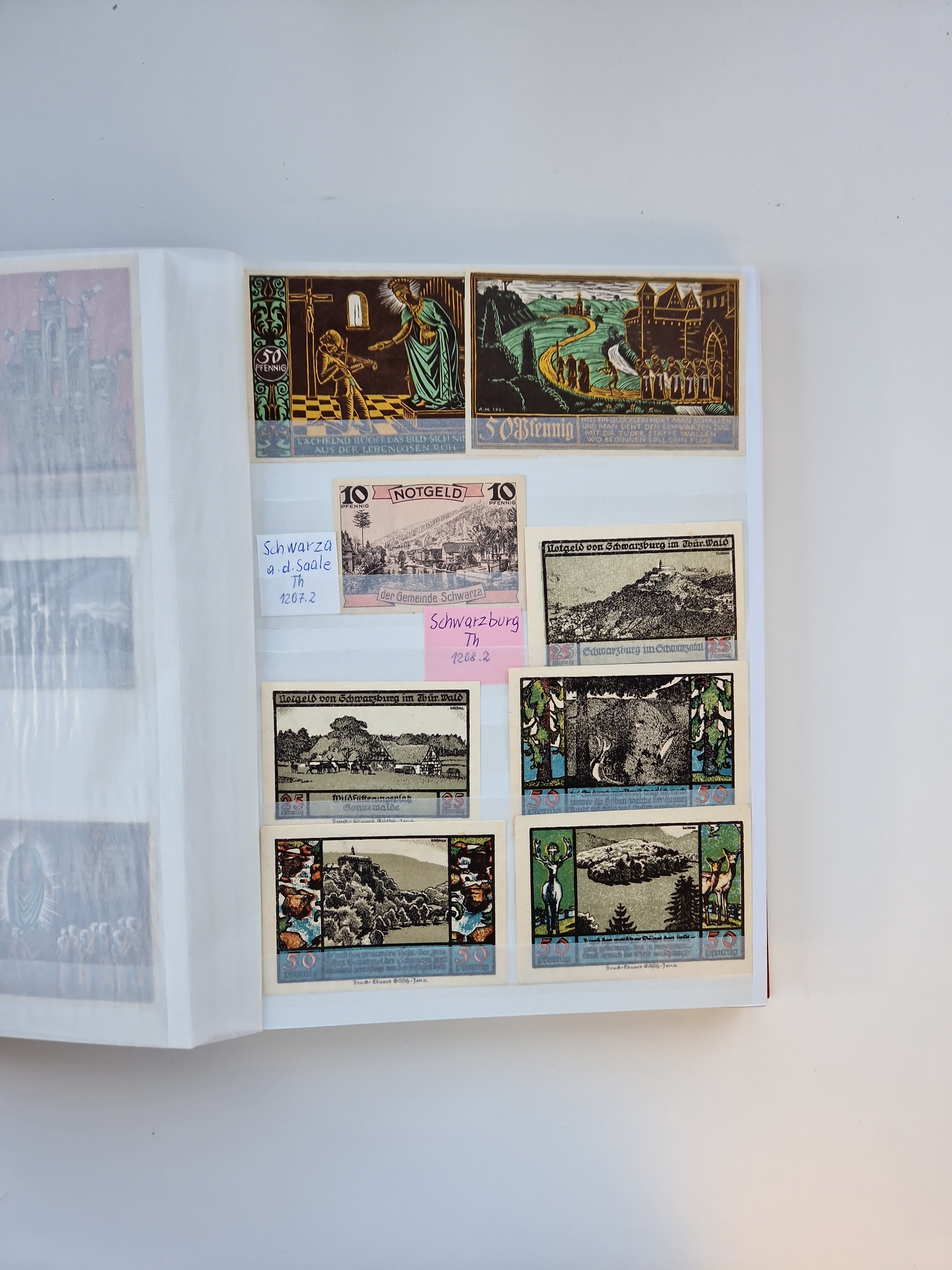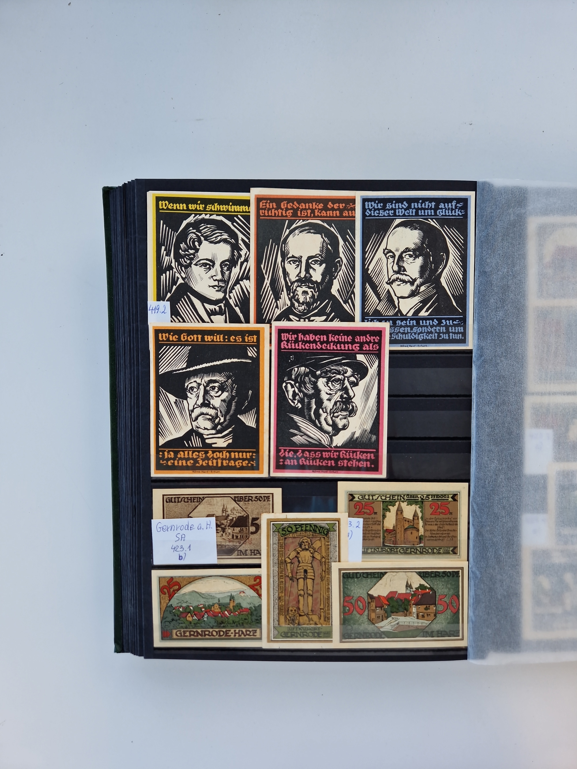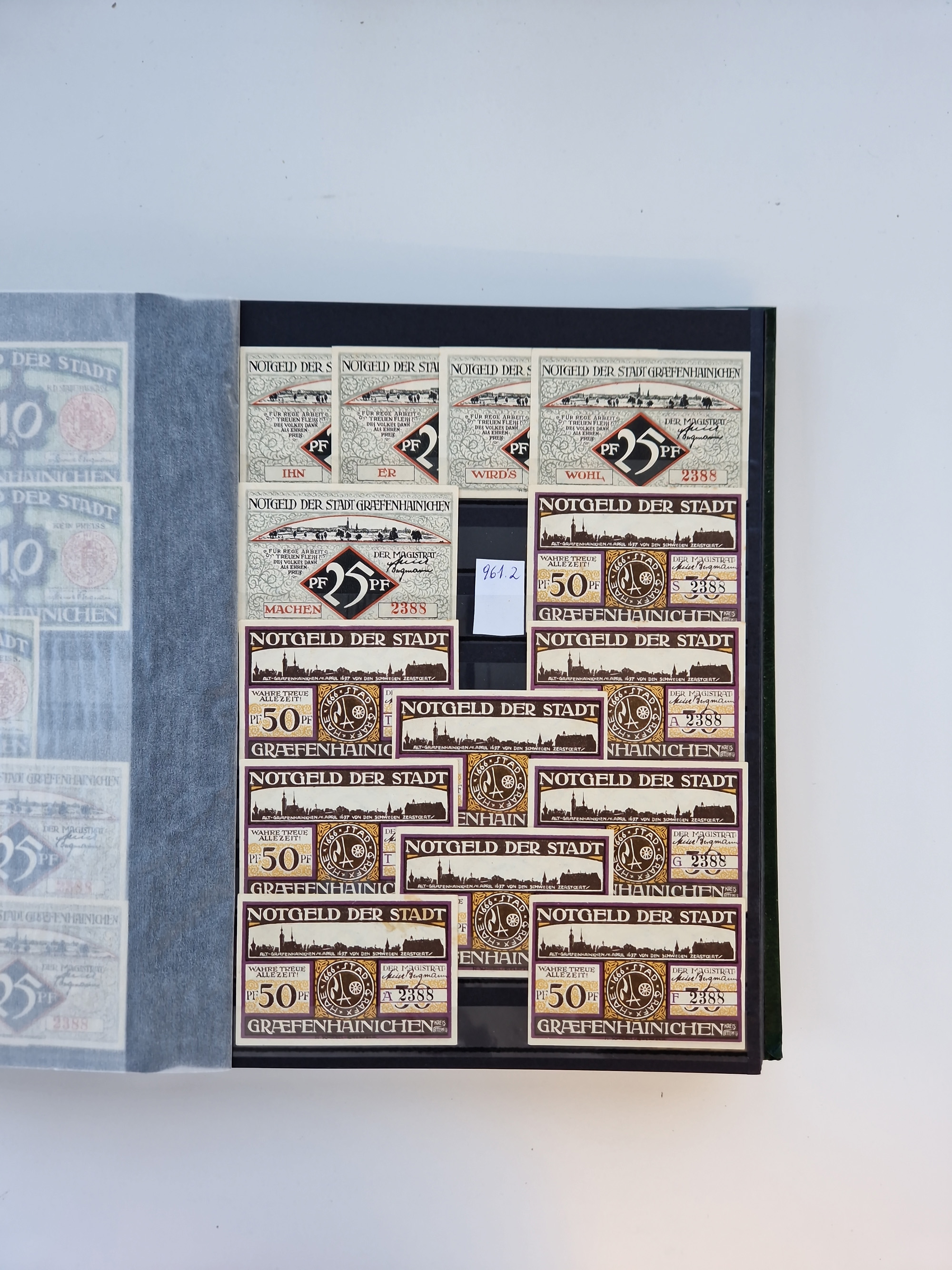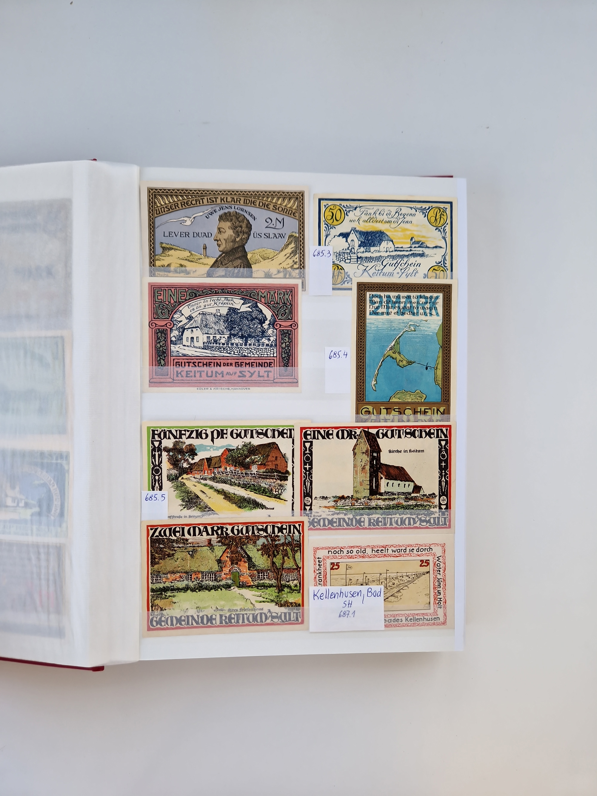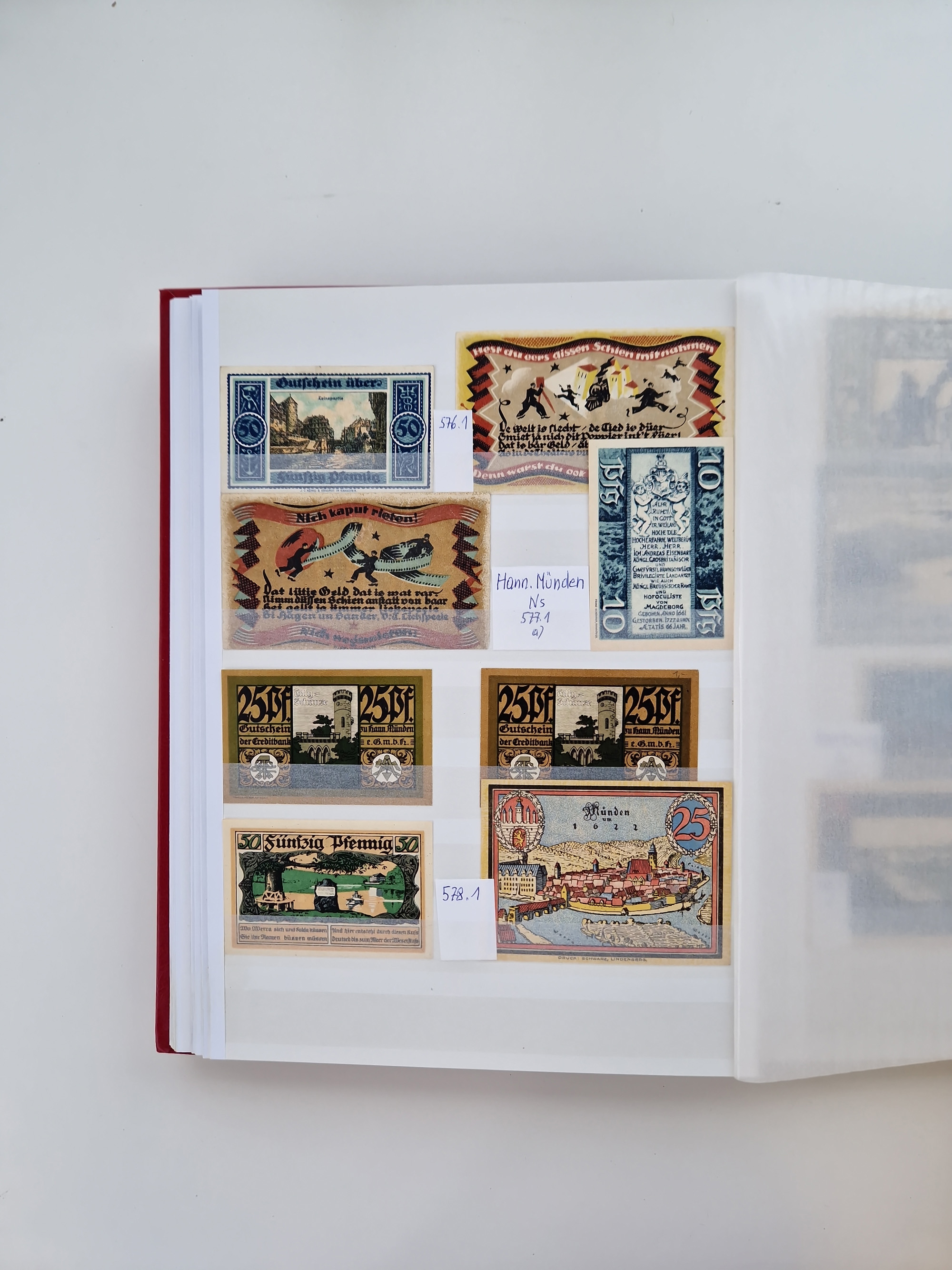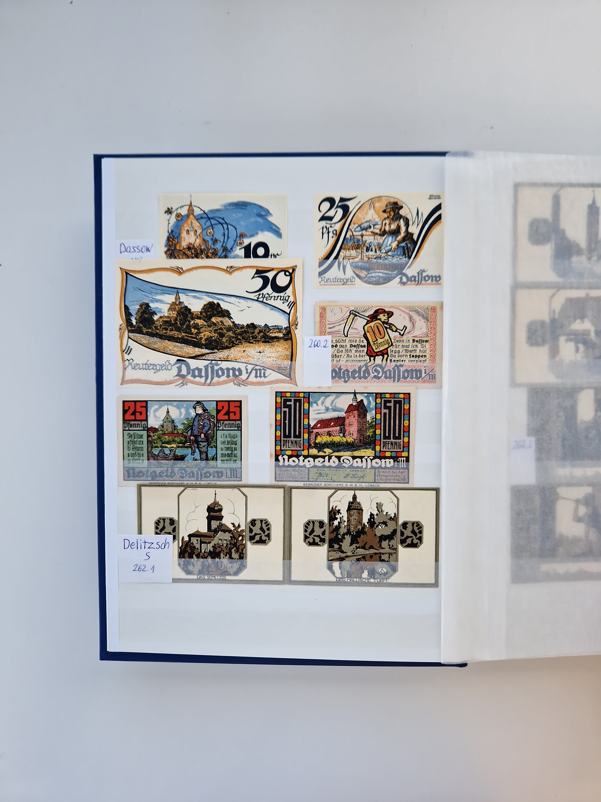 Notgeld-Serienscheine, saubere Sammlung in 16 meist dicken Steckalben, sauber nach Orten und Serien sortiert, überschlägig etwa 7/8000 Stück, dazu 4 Kataloge
