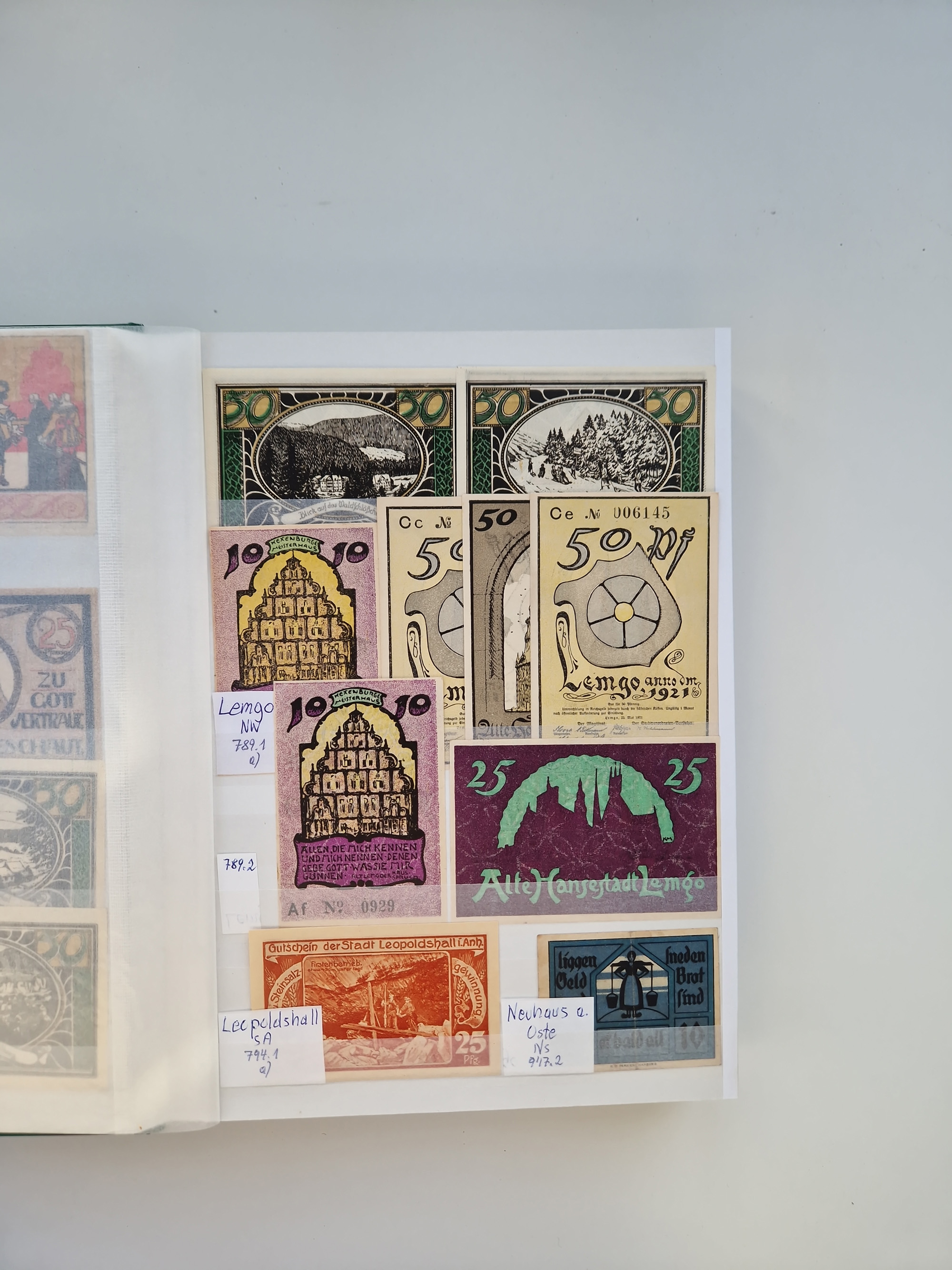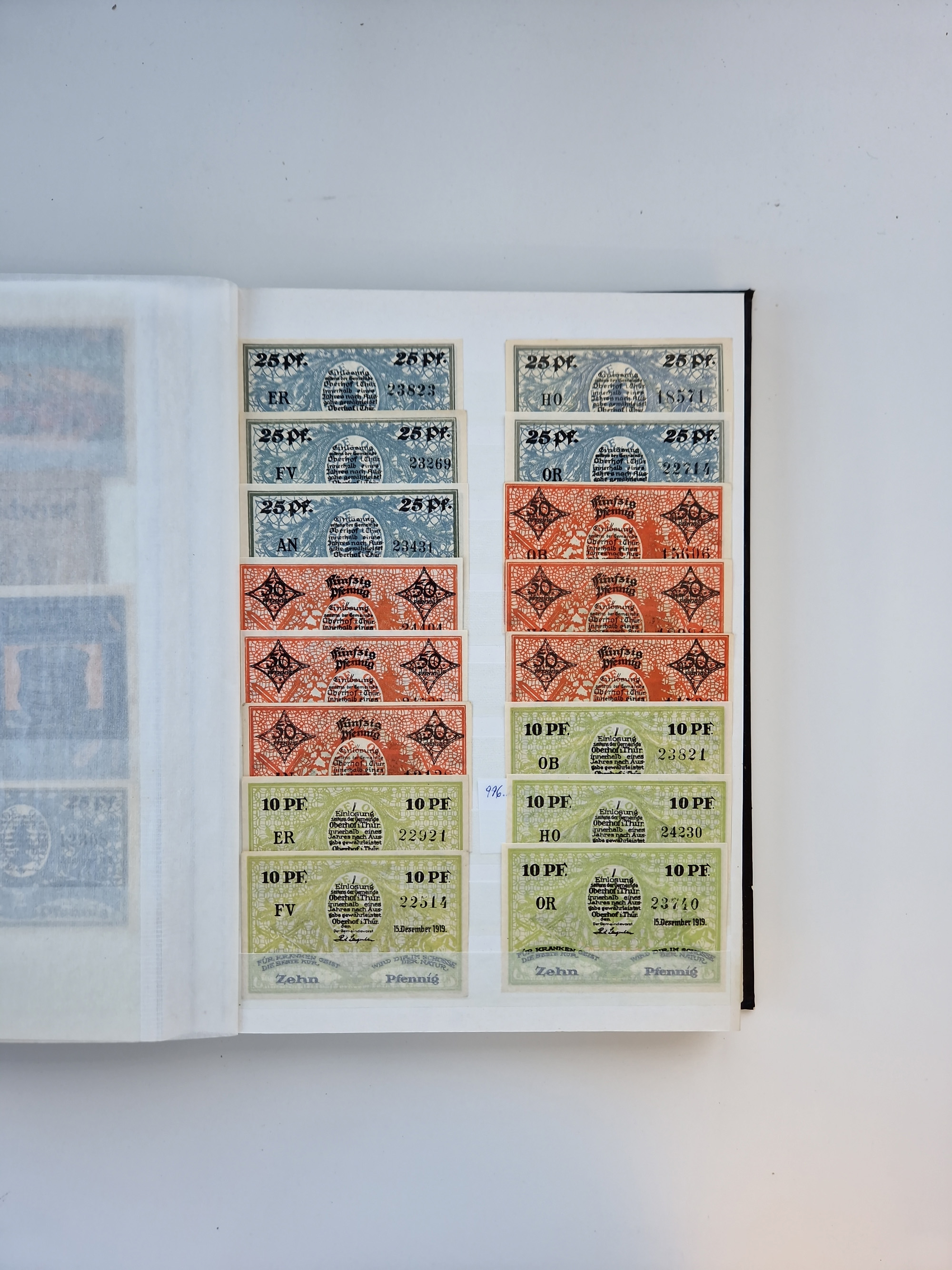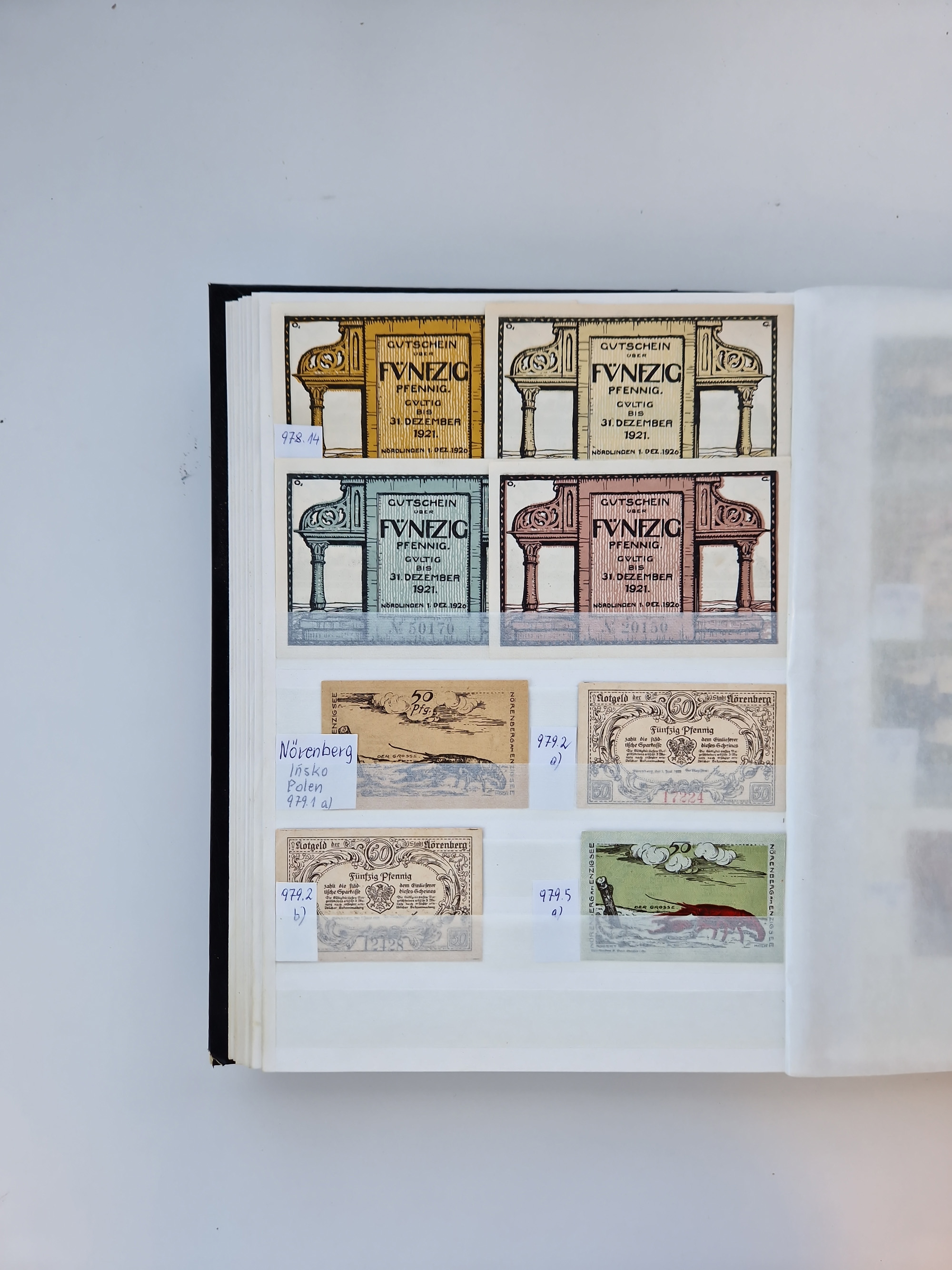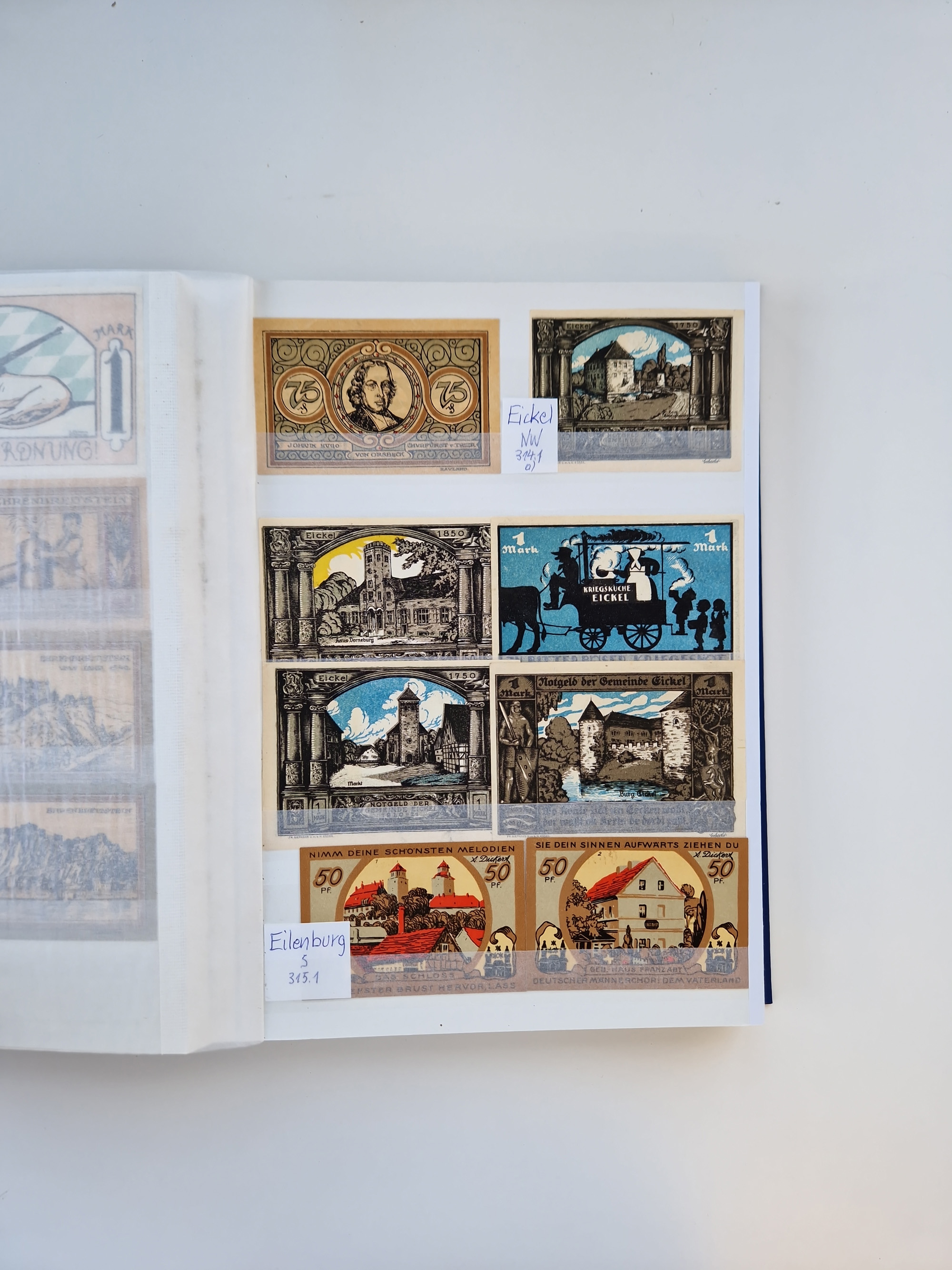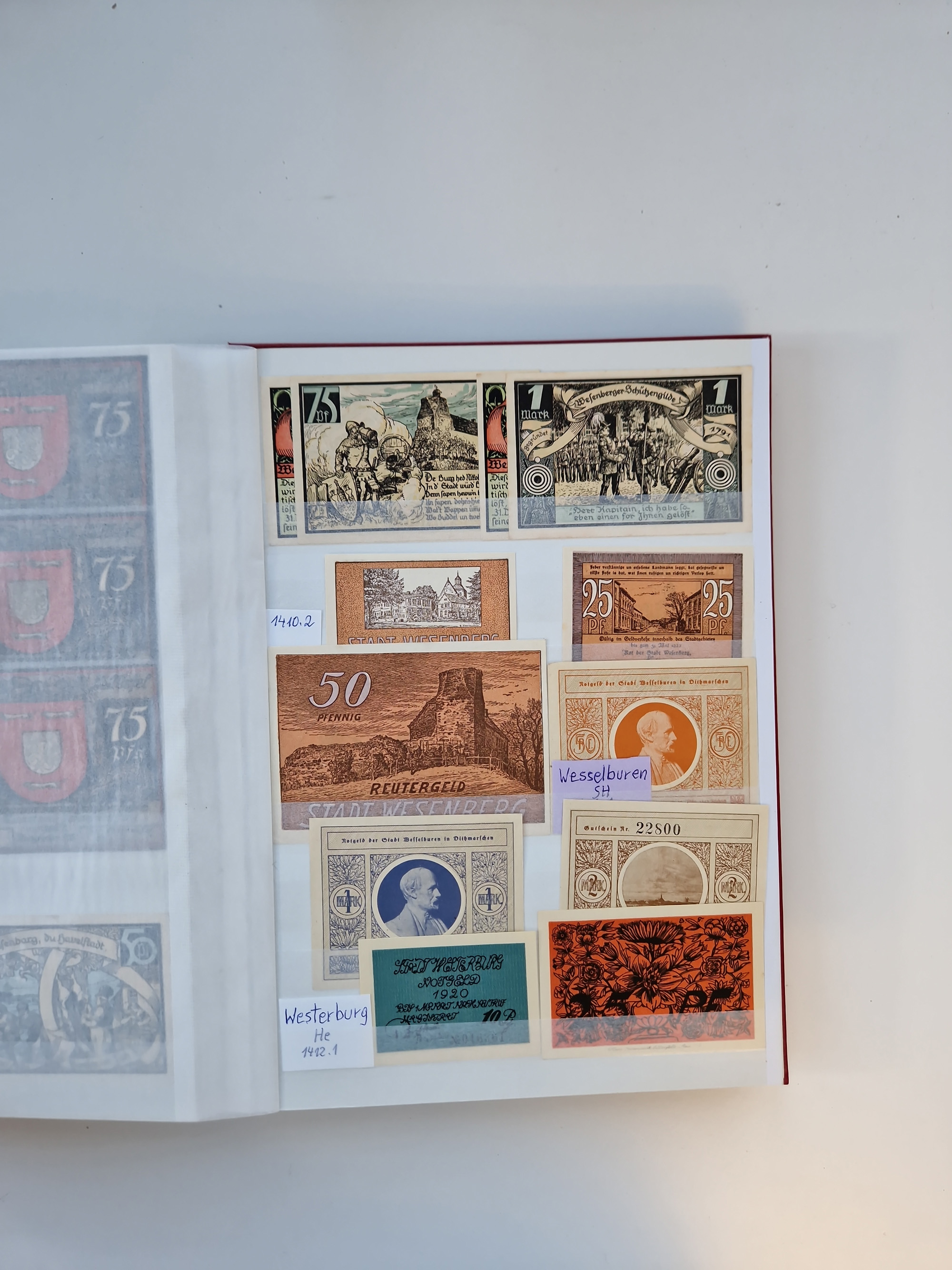 Notgeld-Serienscheine, saubere Sammlung in 16 meist dicken Steckalben, sauber nach Orten und Serien sortiert, überschlägig etwa 7/8000 Stück, dazu 4 Kataloge