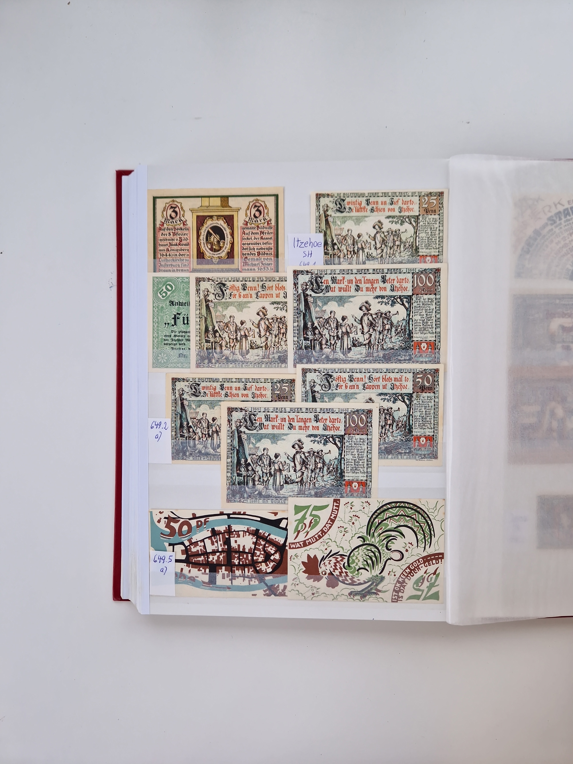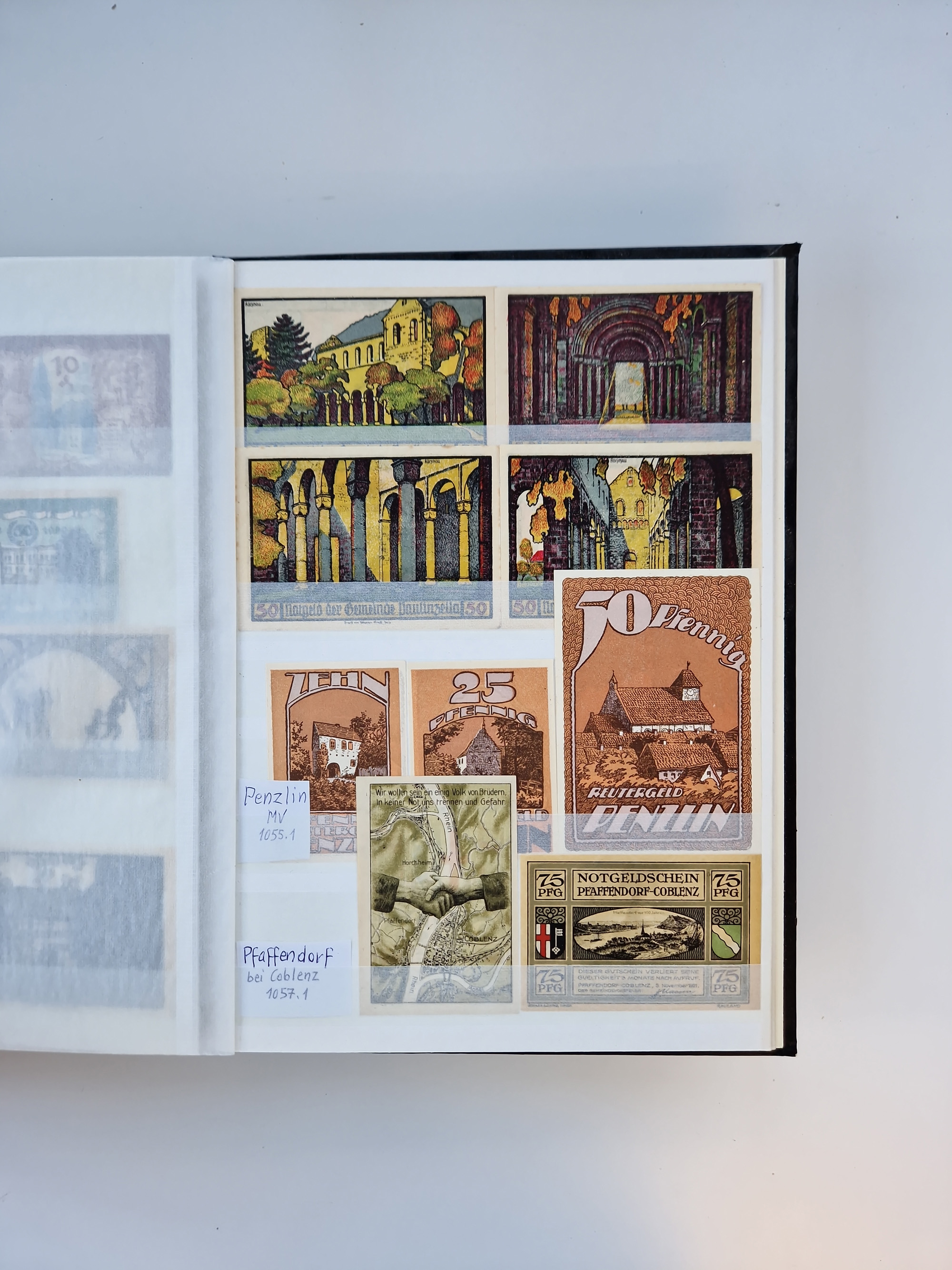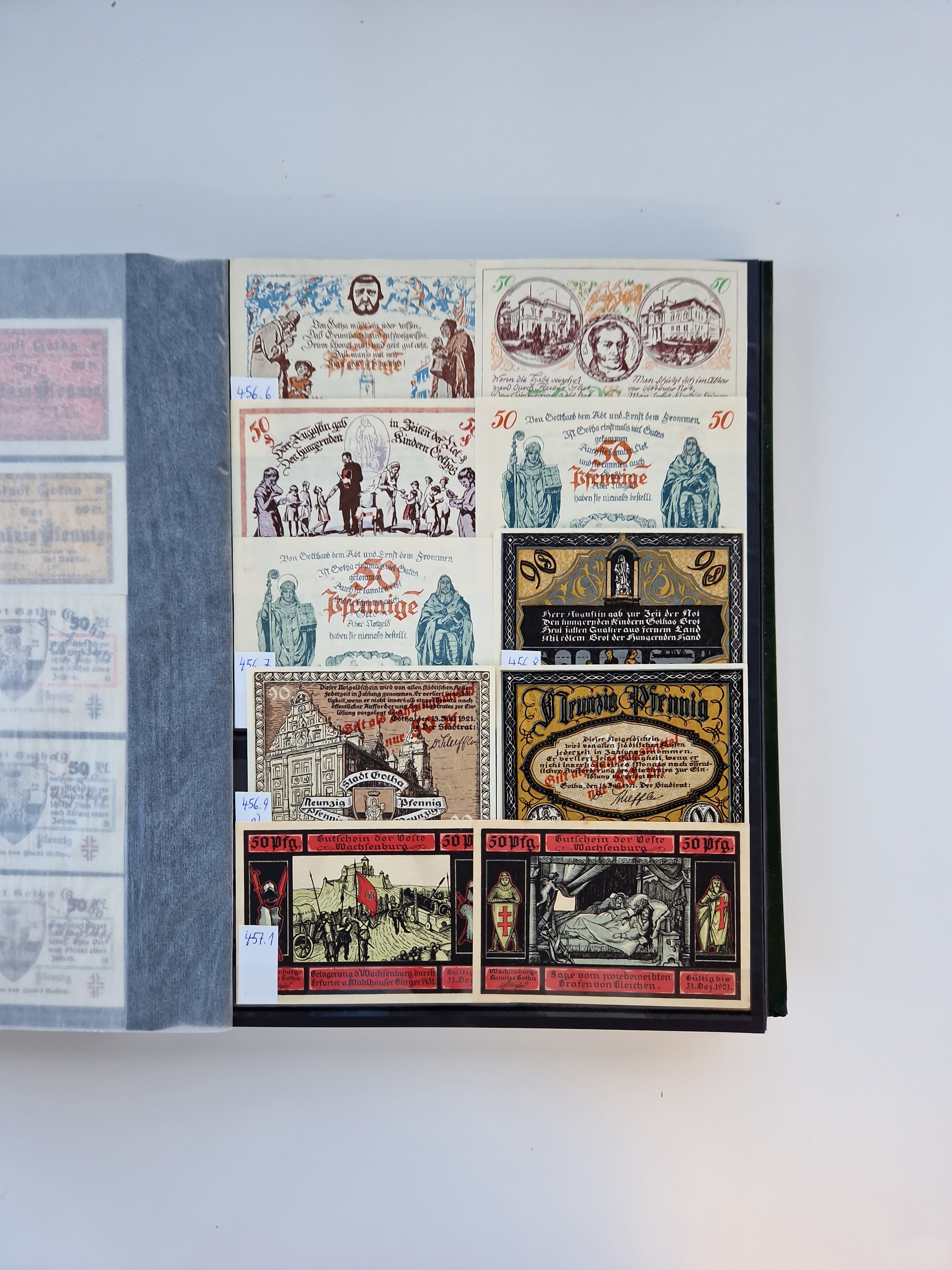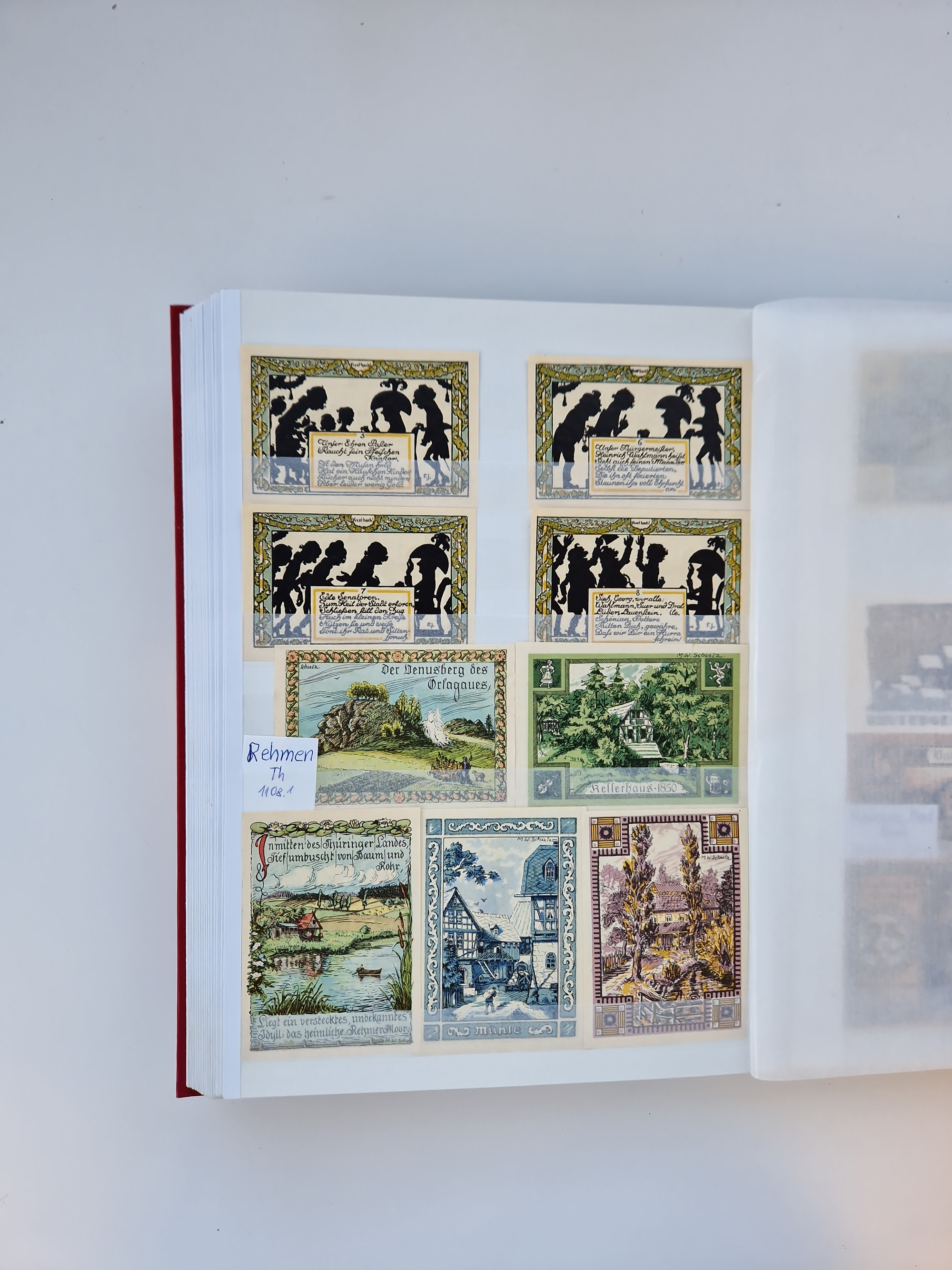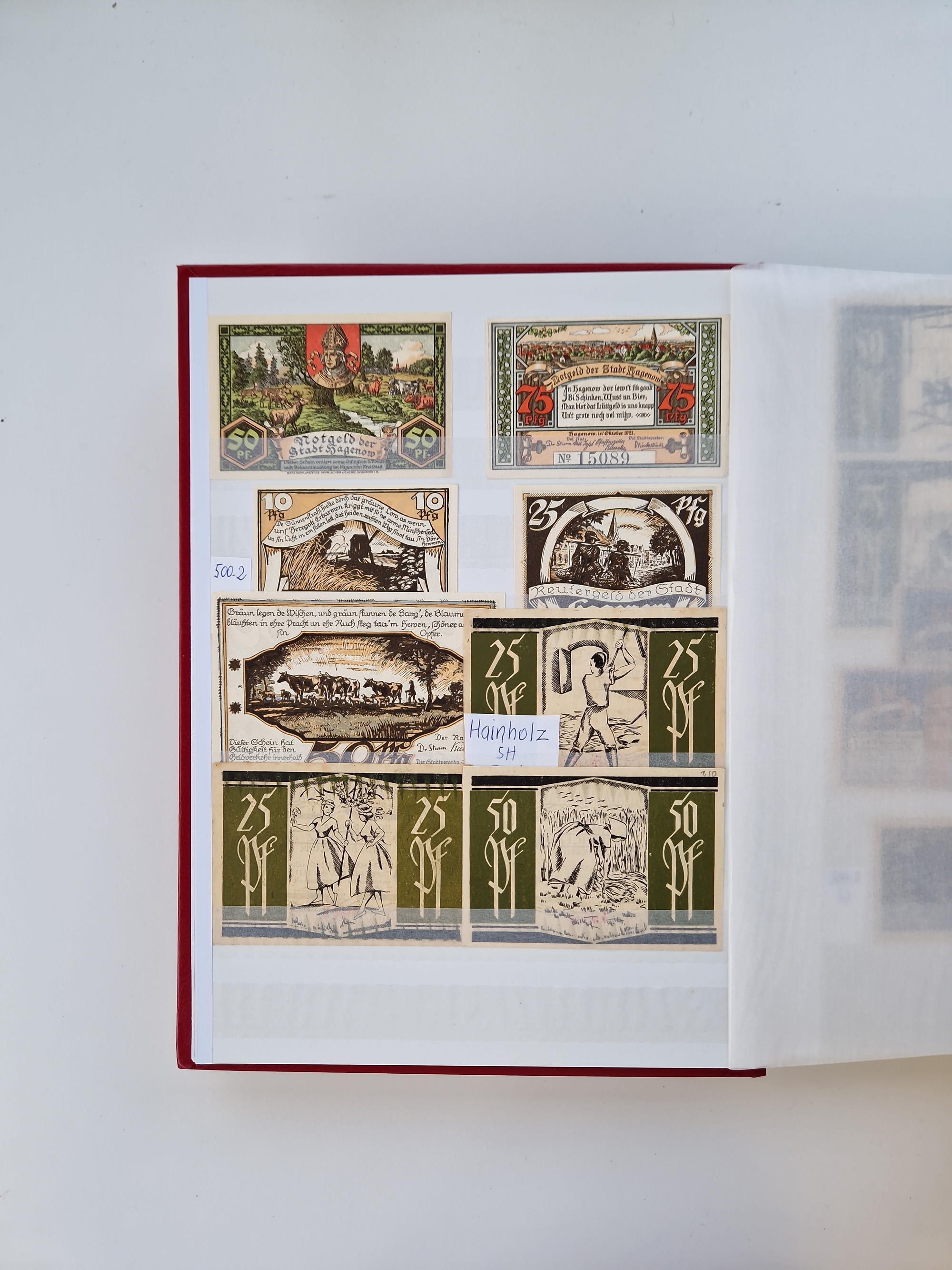 Notgeld-Serienscheine, saubere Sammlung in 16 meist dicken Steckalben, sauber nach Orten und Serien sortiert, überschlägig etwa 7/8000 Stück, dazu 4 Kataloge
