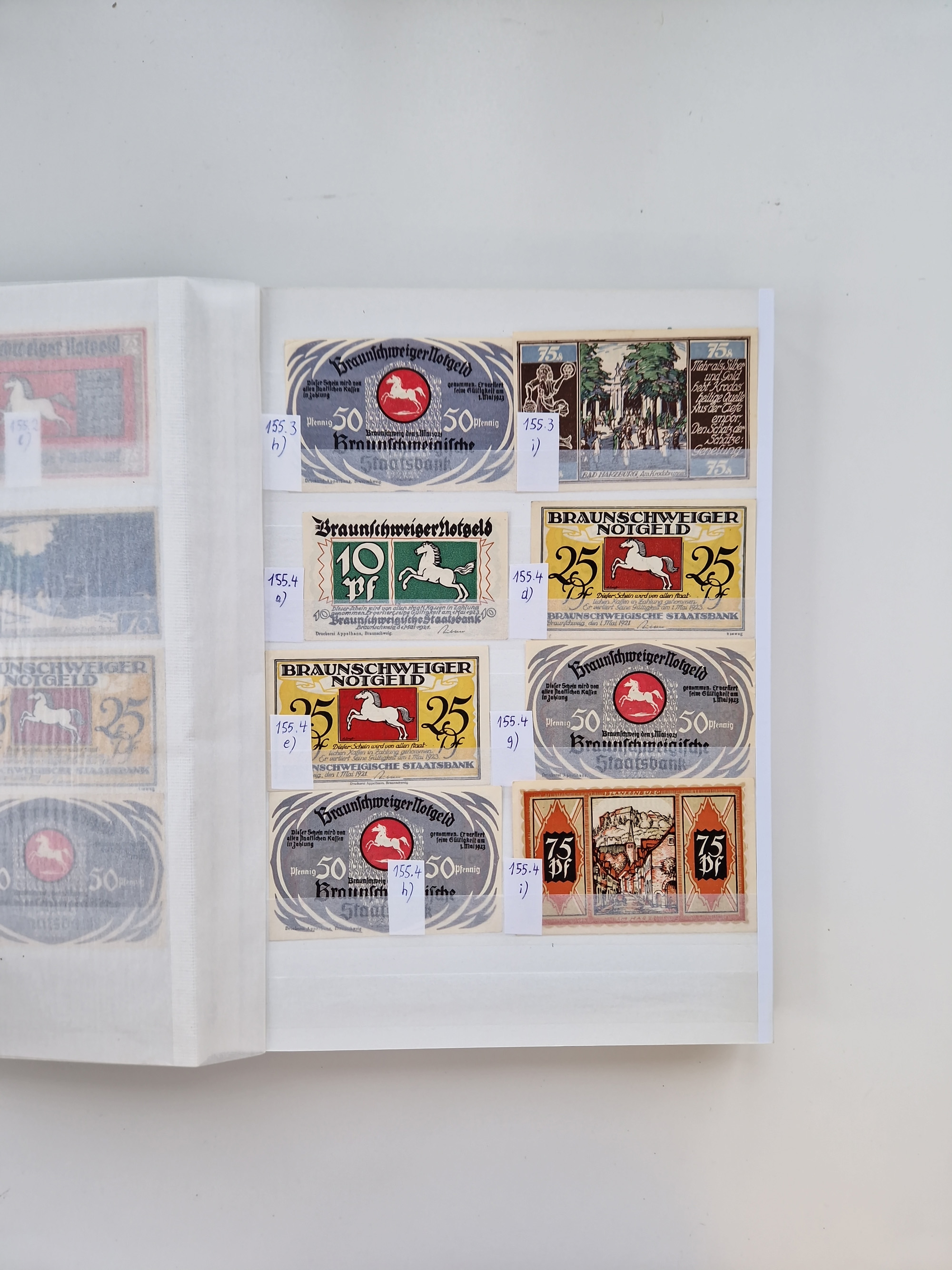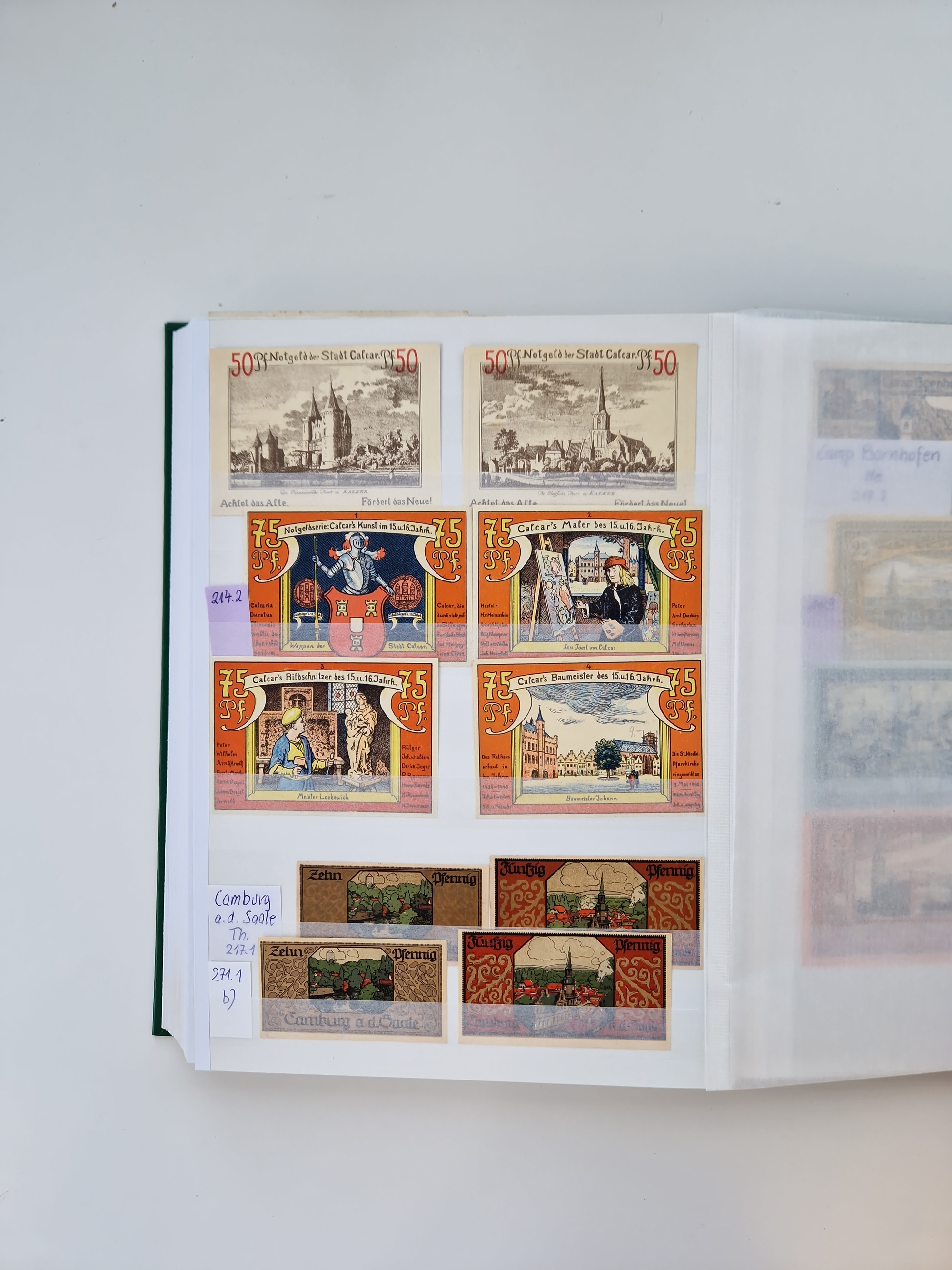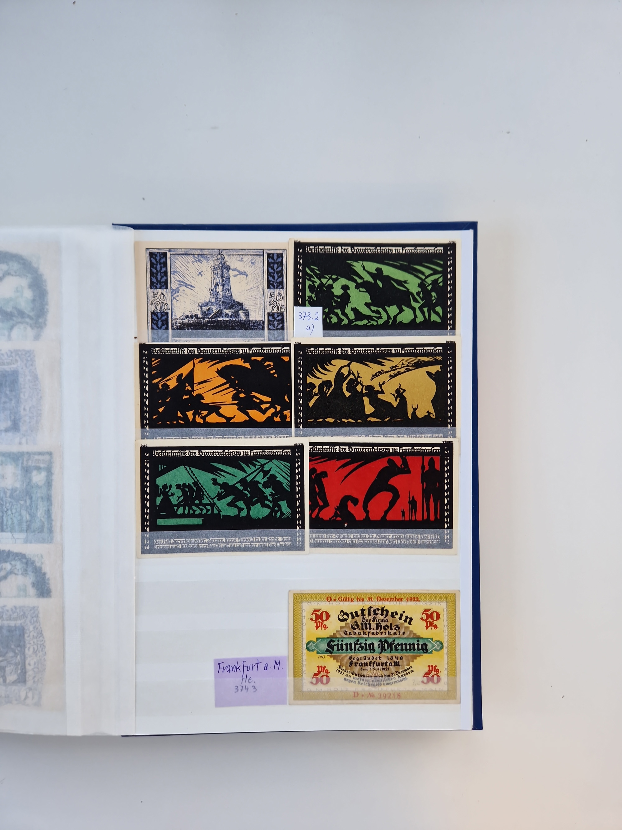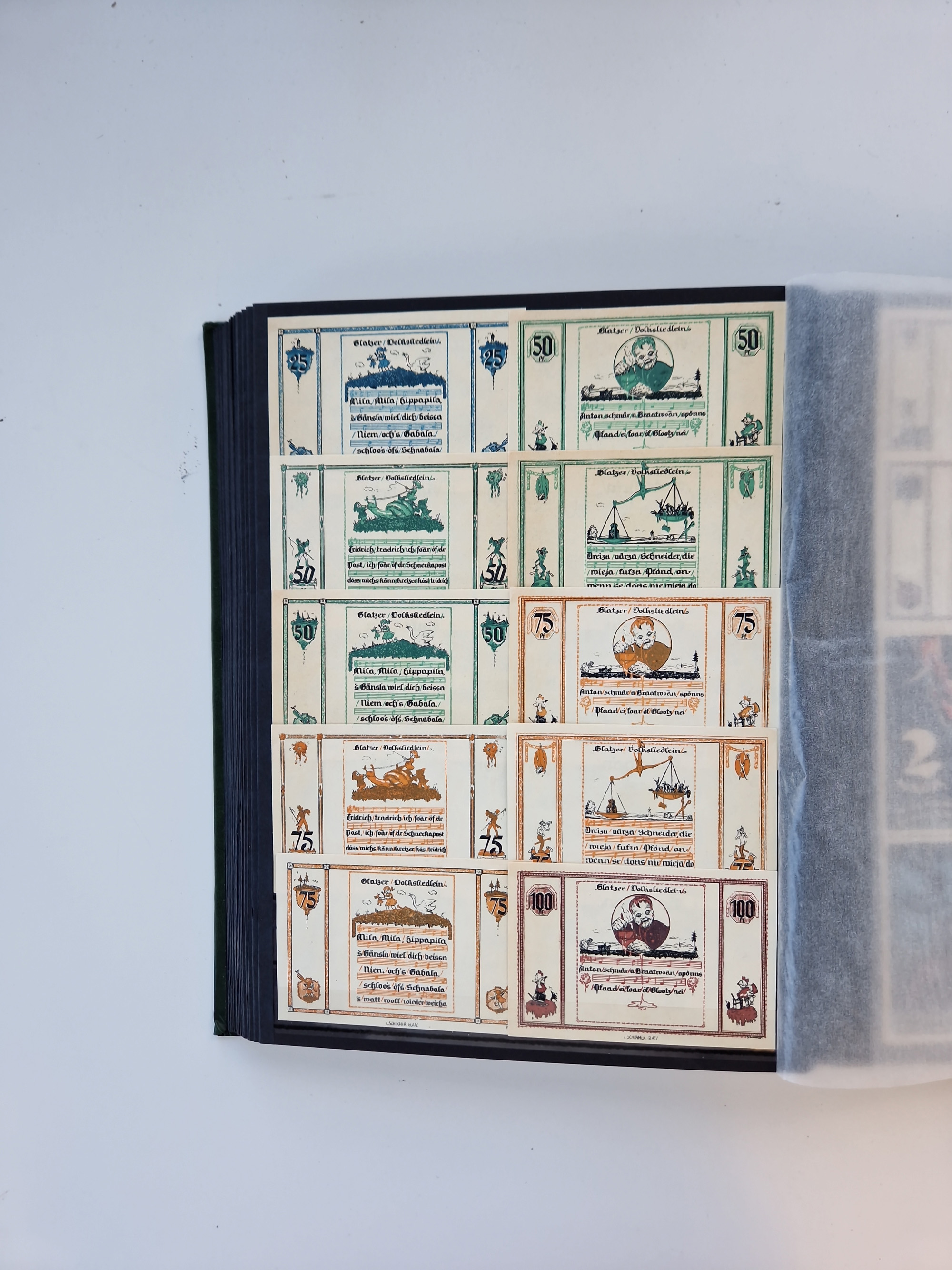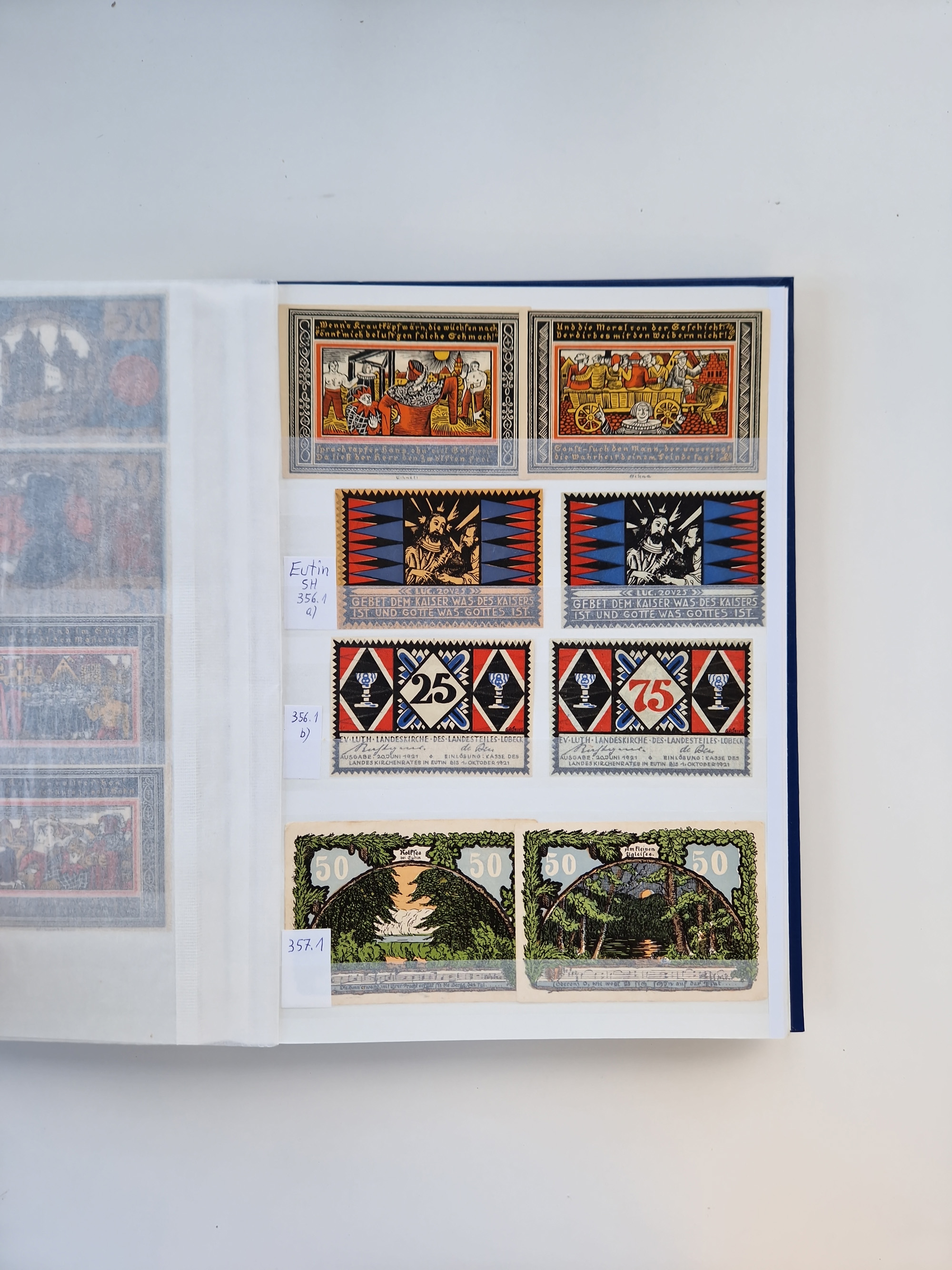 Notgeld-Serienscheine, saubere Sammlung in 16 meist dicken Steckalben, sauber nach Orten und Serien sortiert, überschlägig etwa 7/8000 Stück, dazu 4 Kataloge