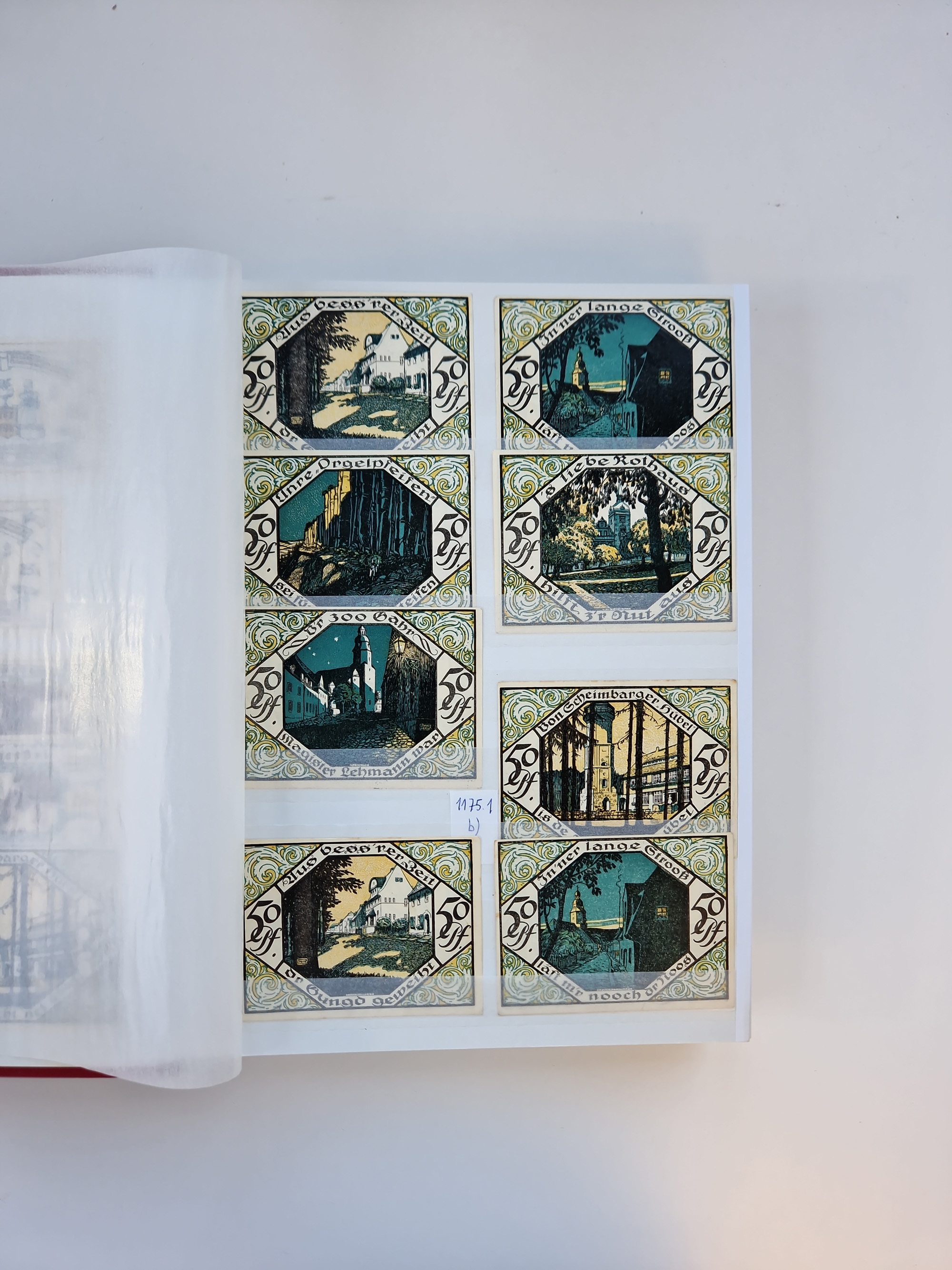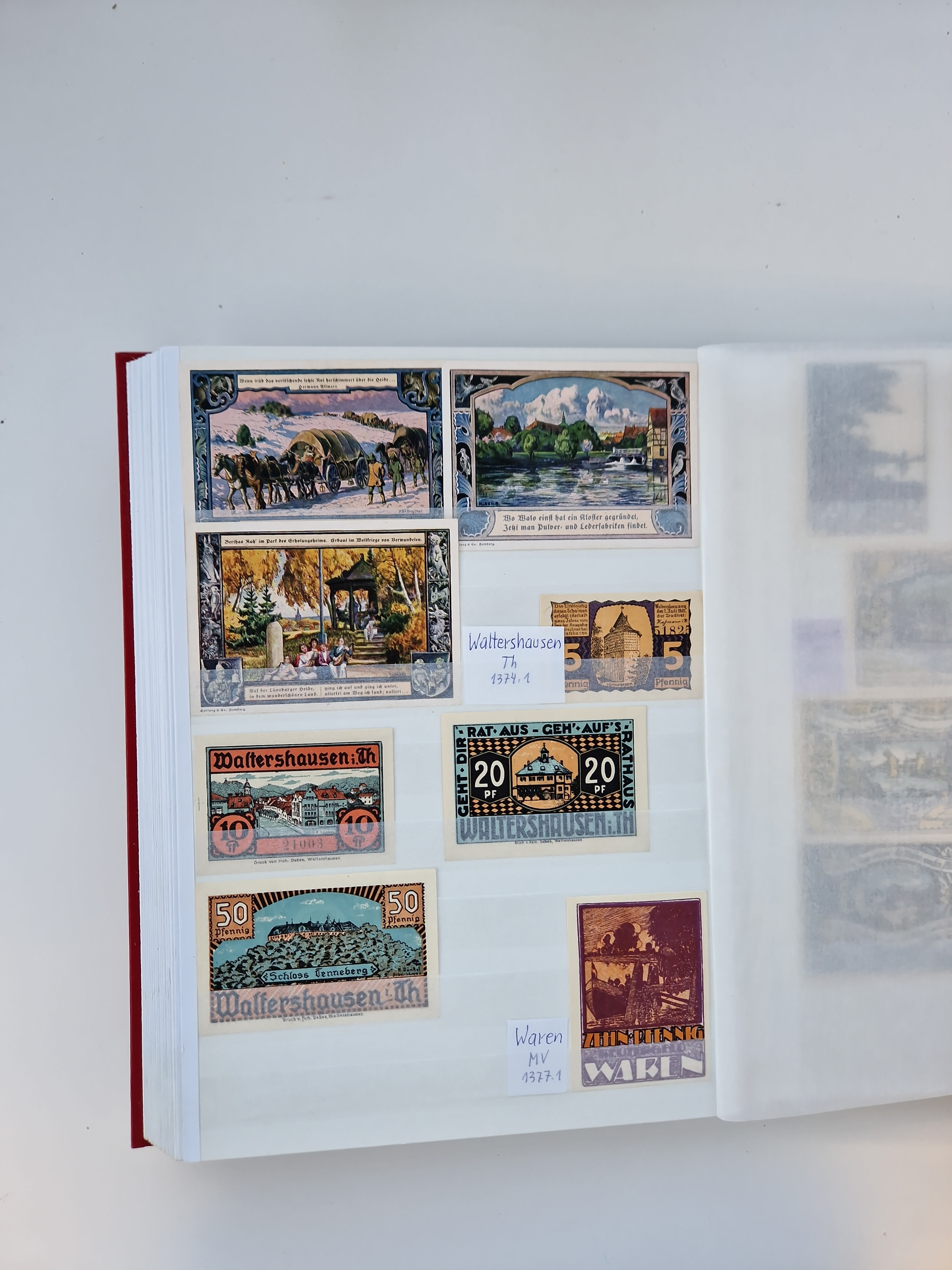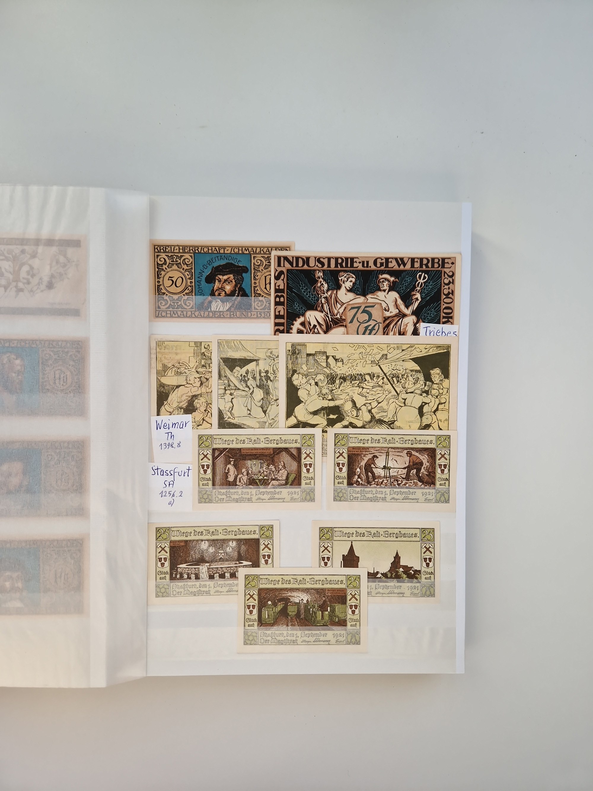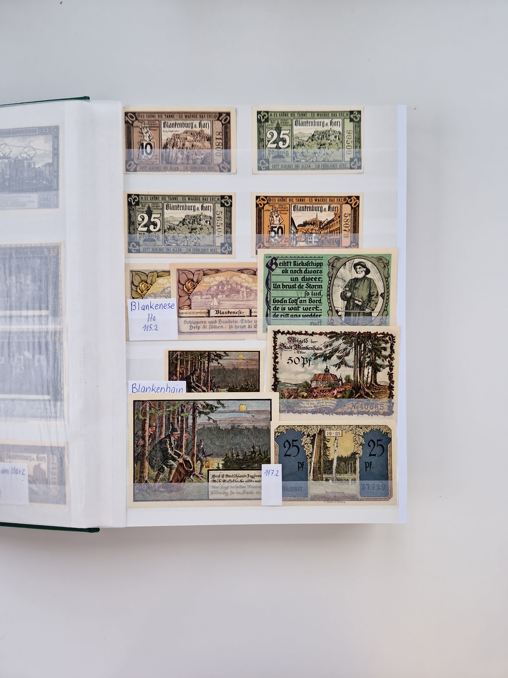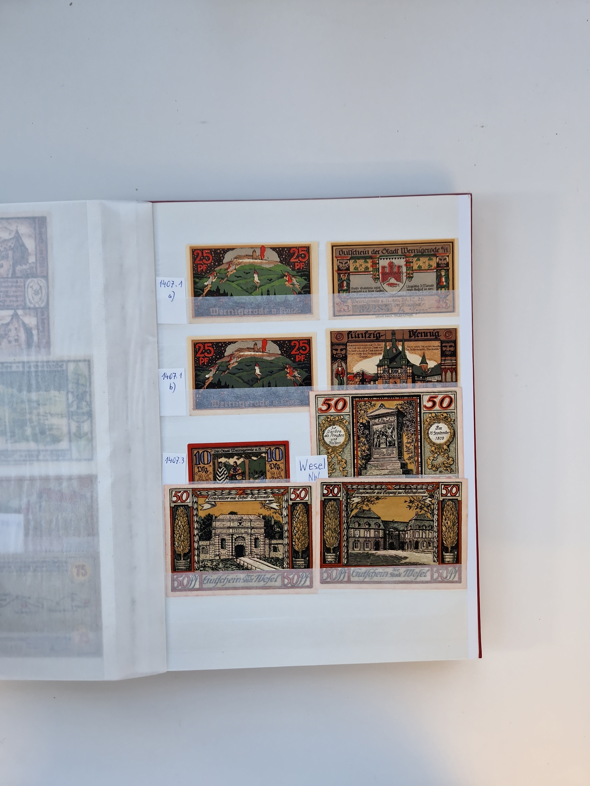 Notgeld-Serienscheine, saubere Sammlung in 16 meist dicken Steckalben, sauber nach Orten und Serien sortiert, überschlägig etwa 7/8000 Stück, dazu 4 Kataloge