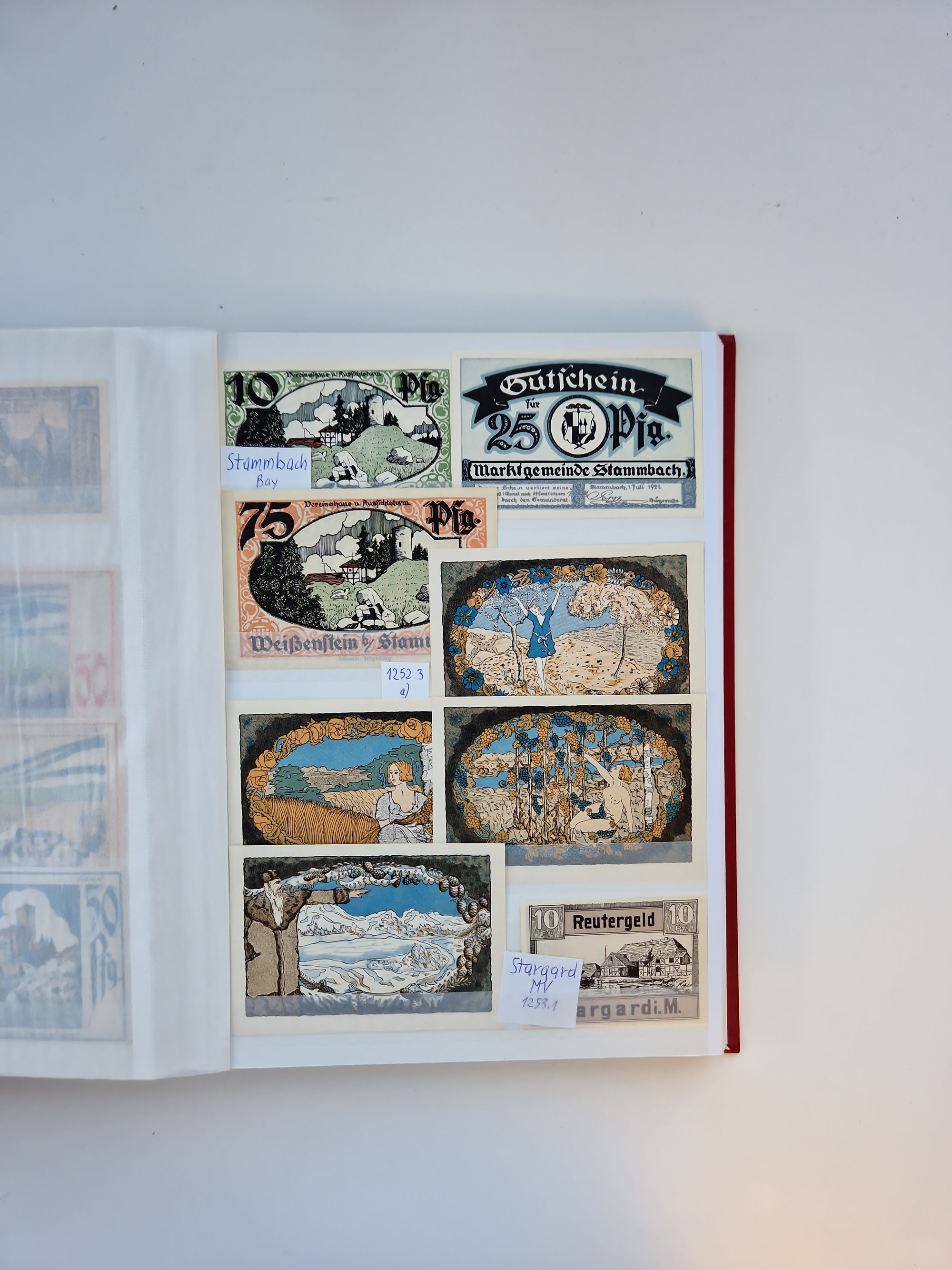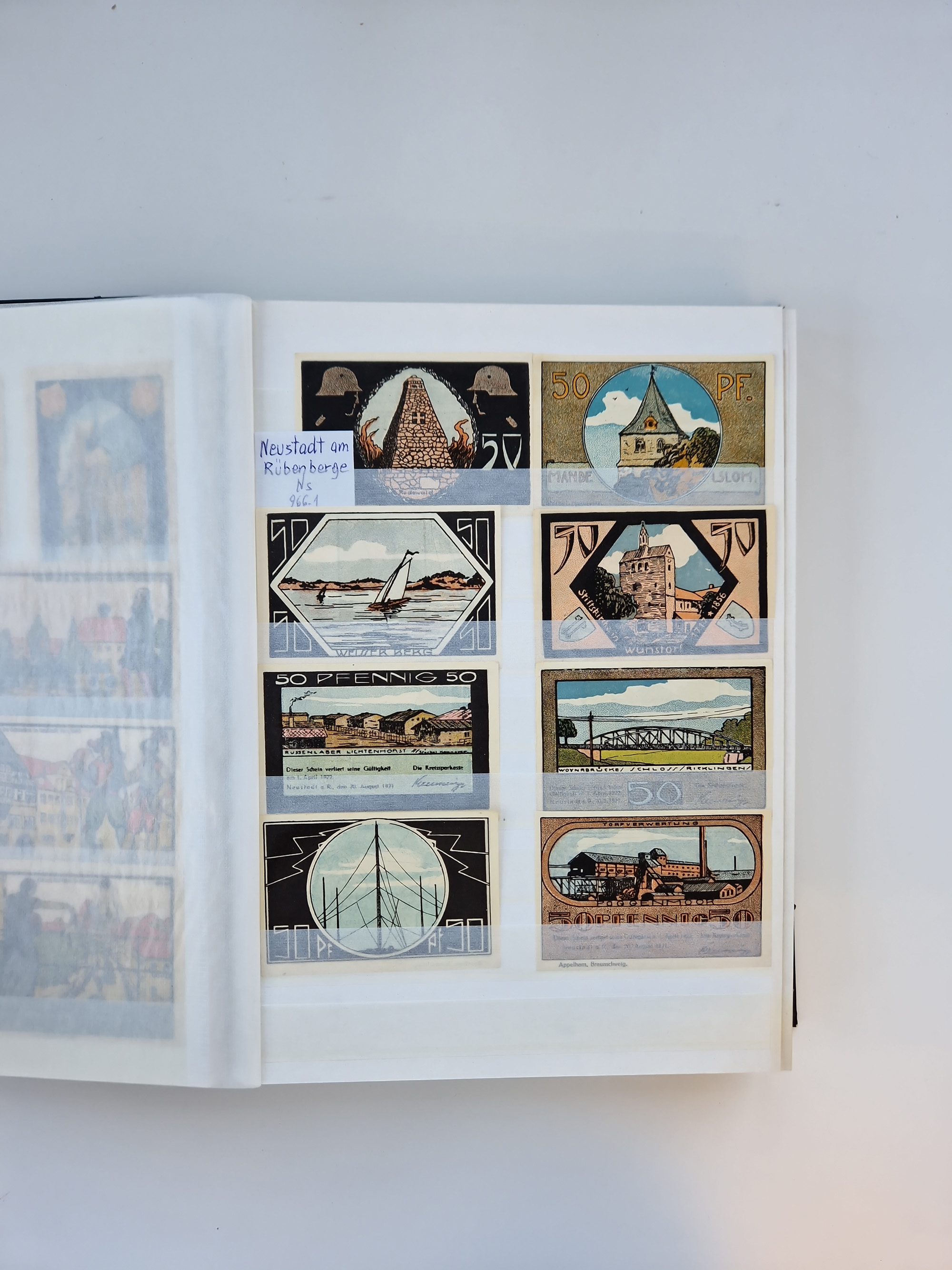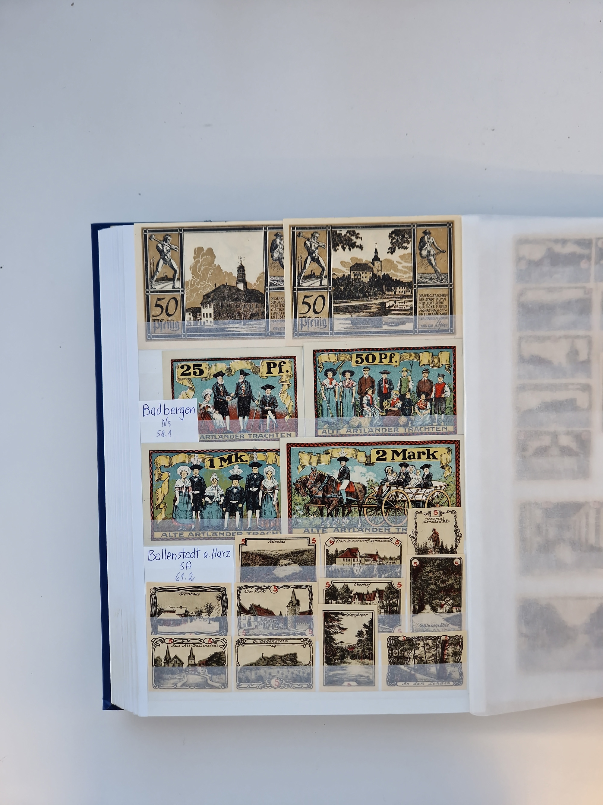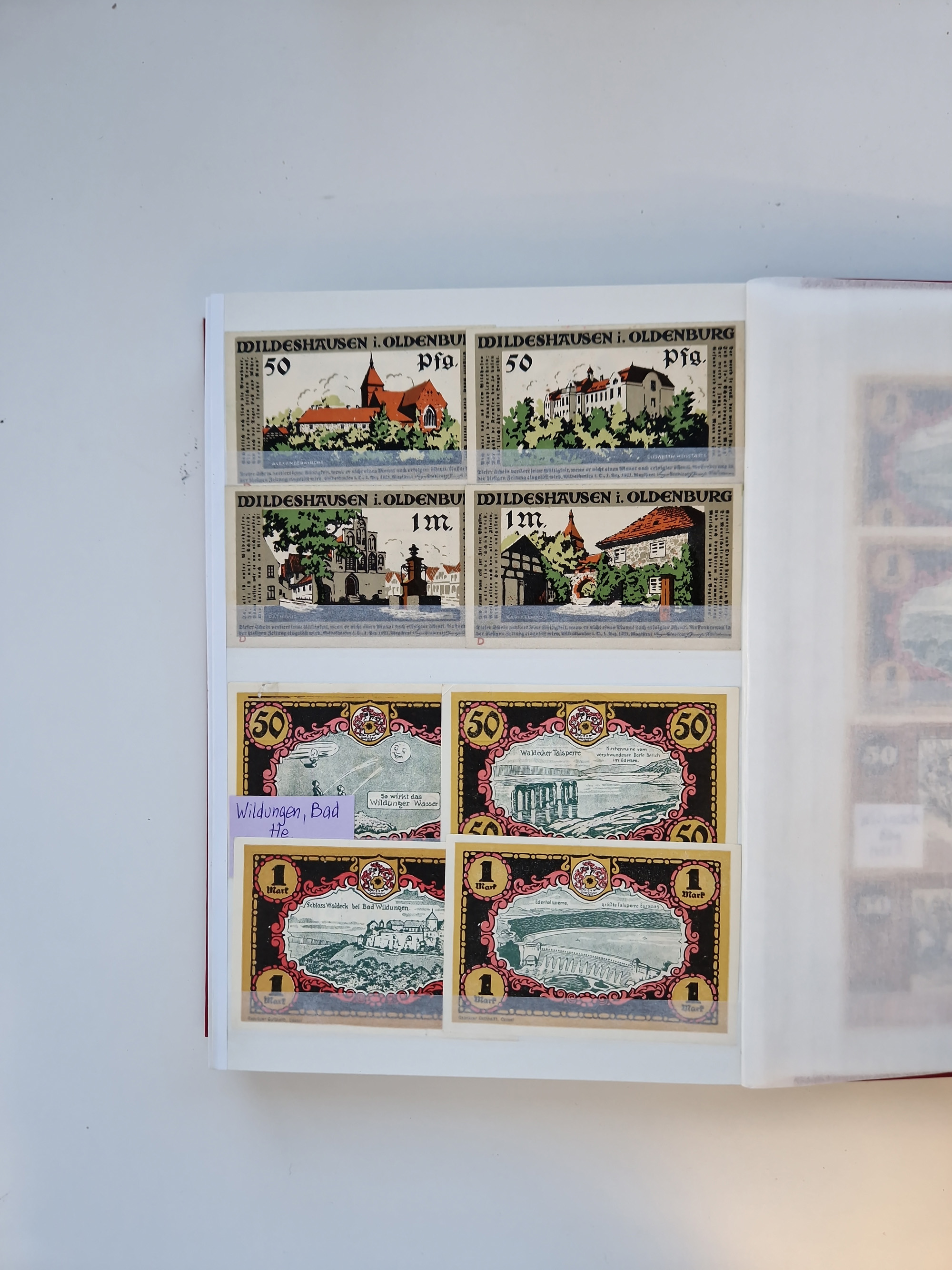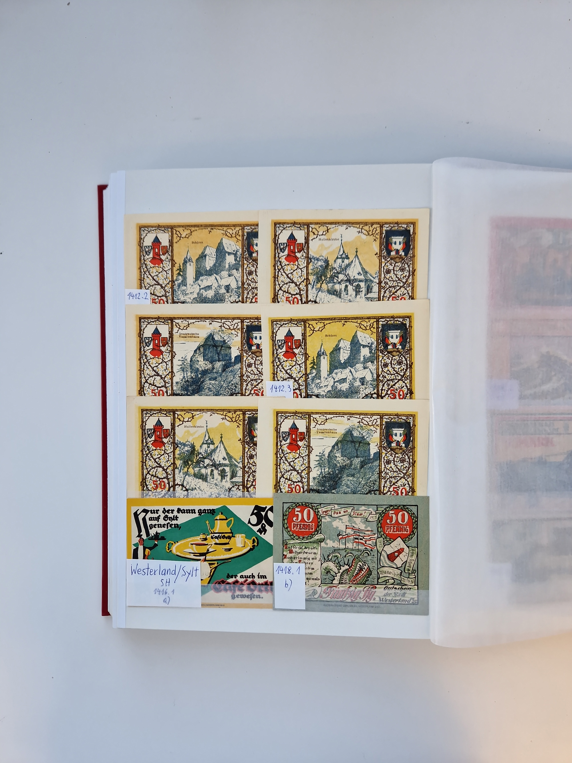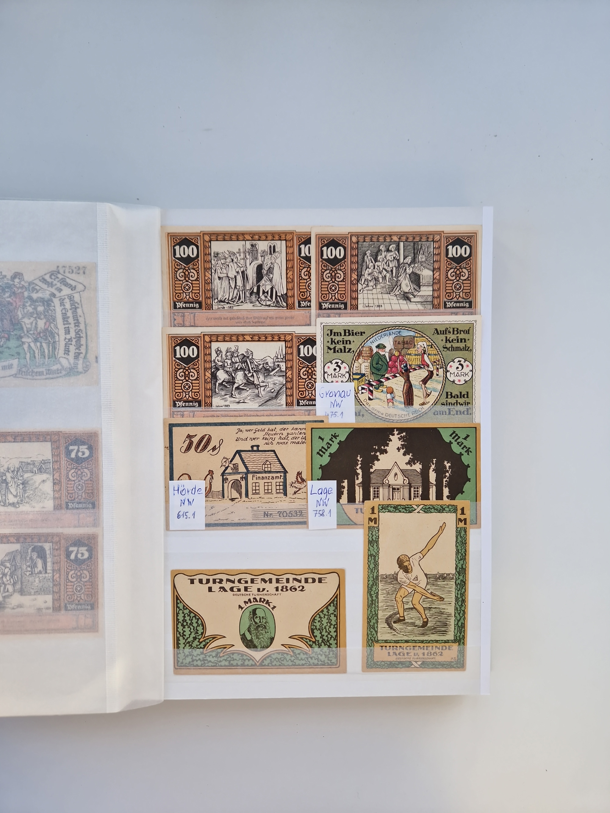 Notgeld-Serienscheine, saubere Sammlung in 16 meist dicken Steckalben, sauber nach Orten und Serien sortiert, überschlägig etwa 7/8000 Stück, dazu 4 Kataloge
