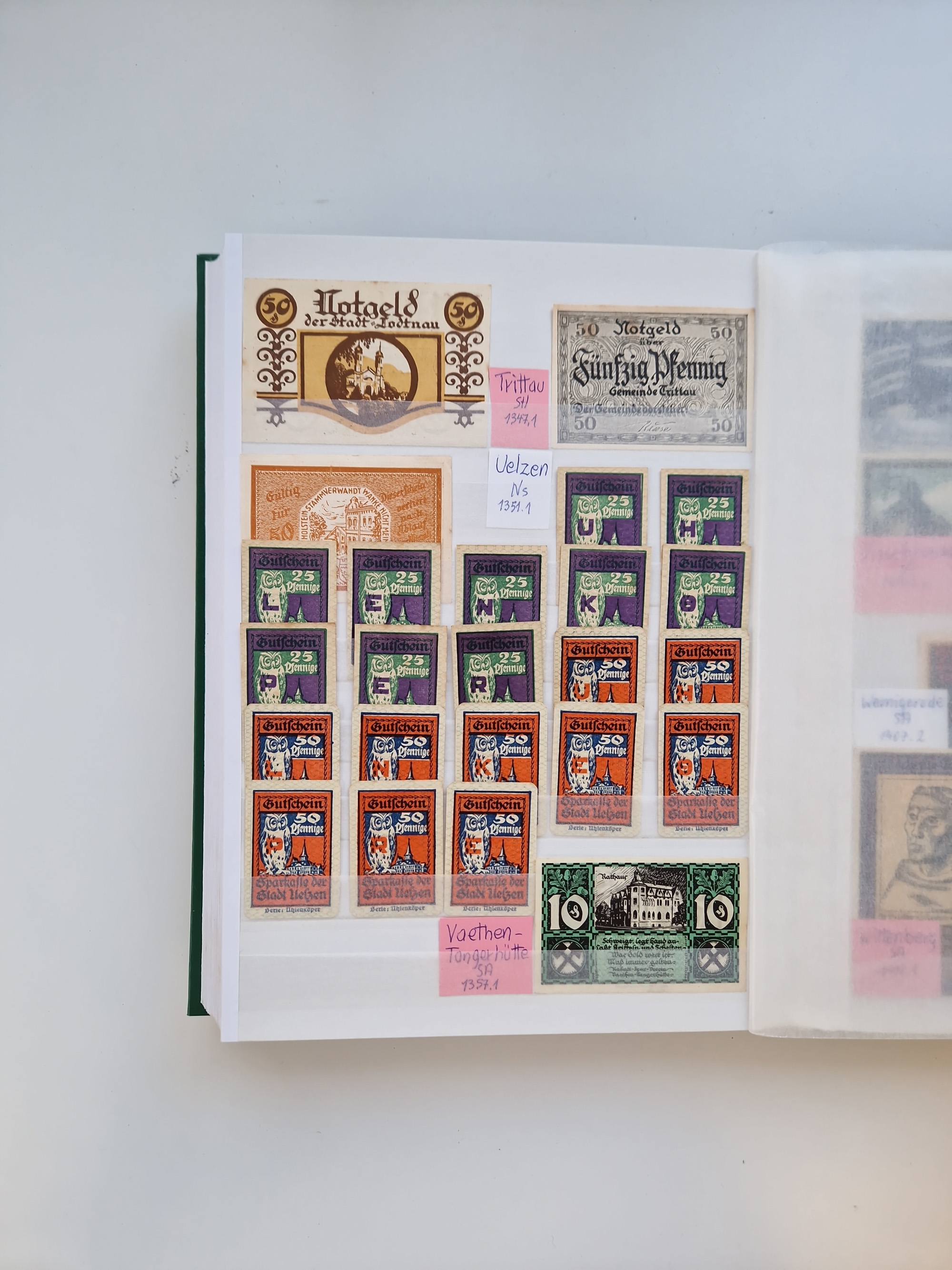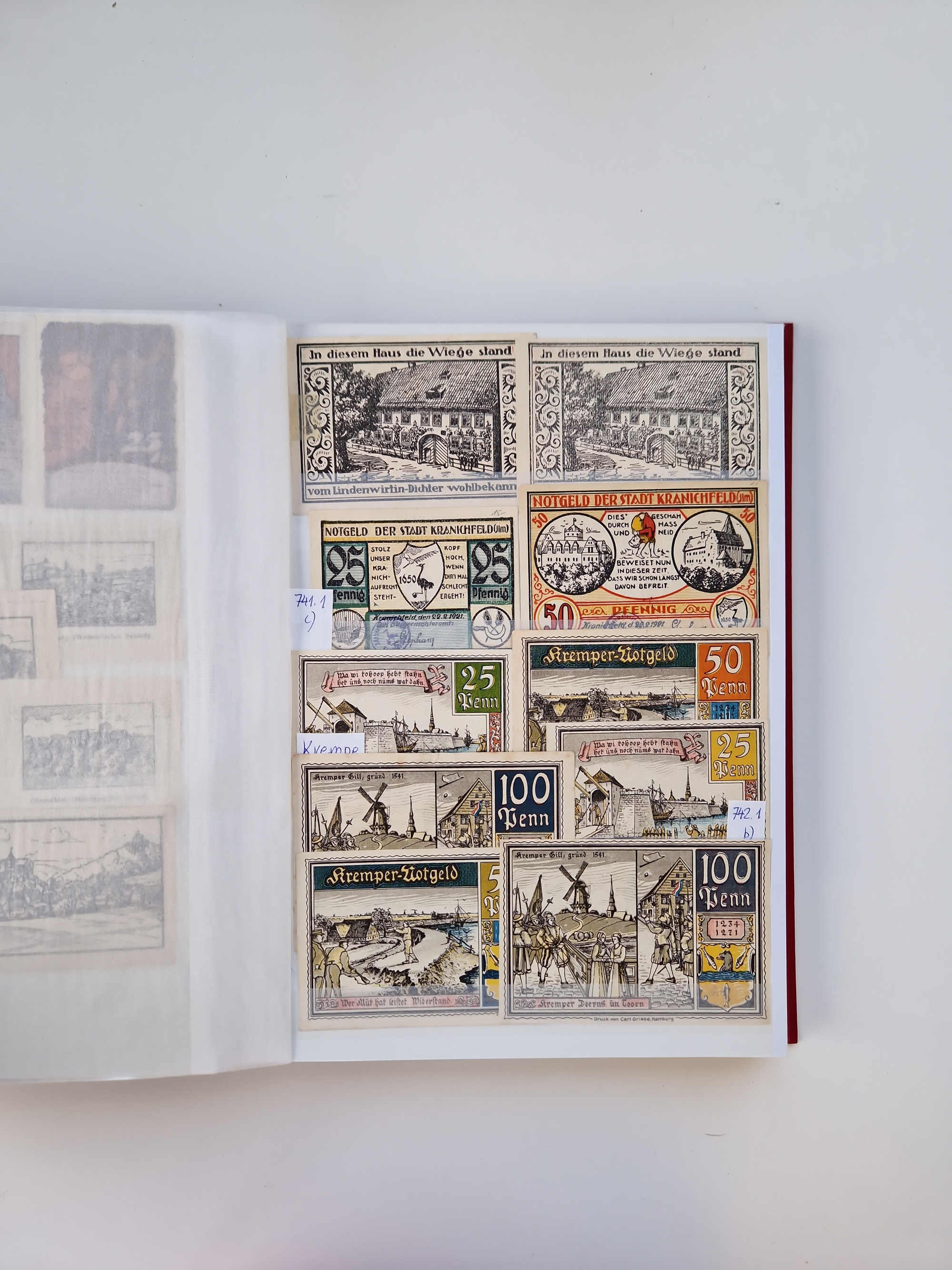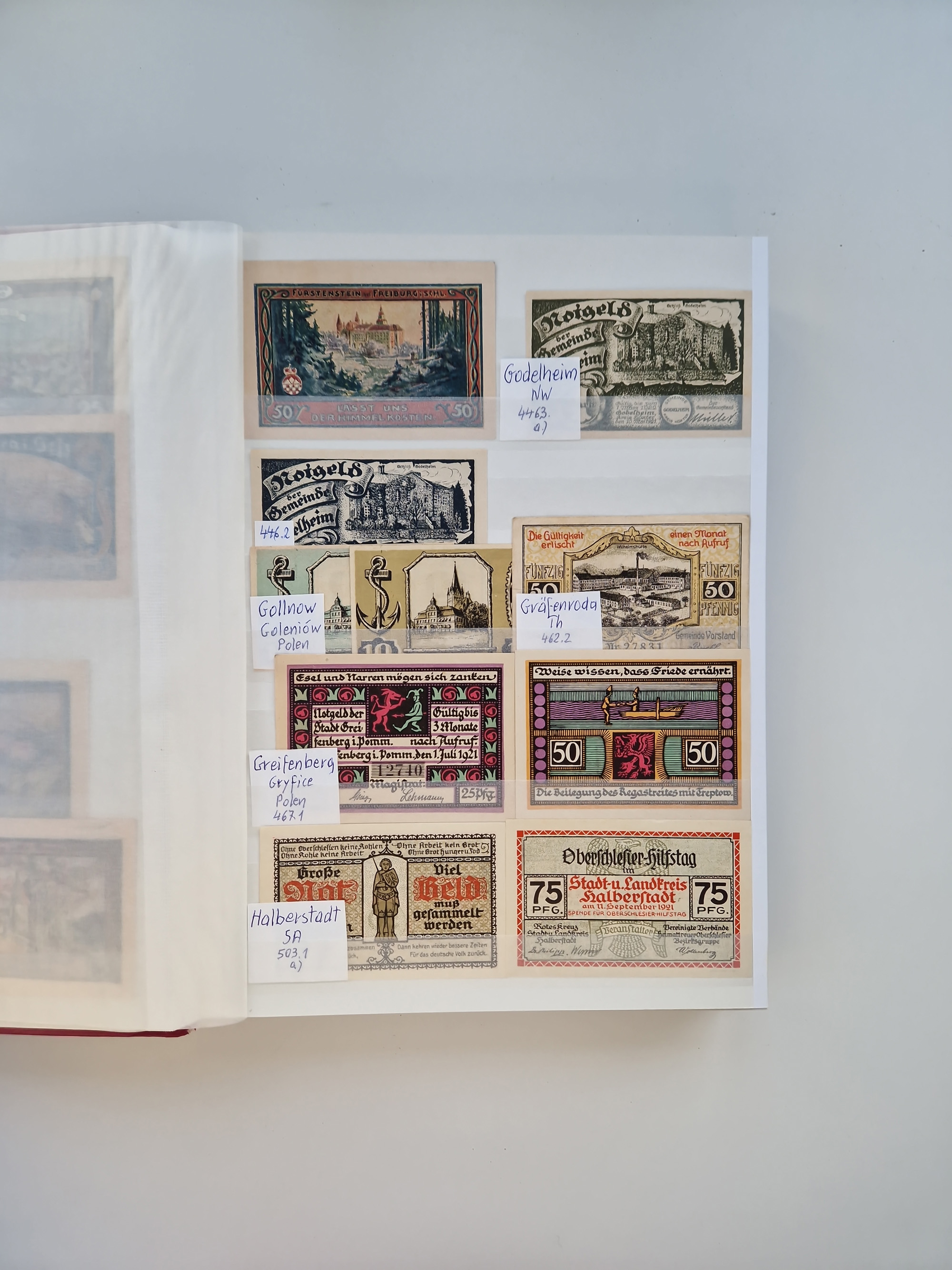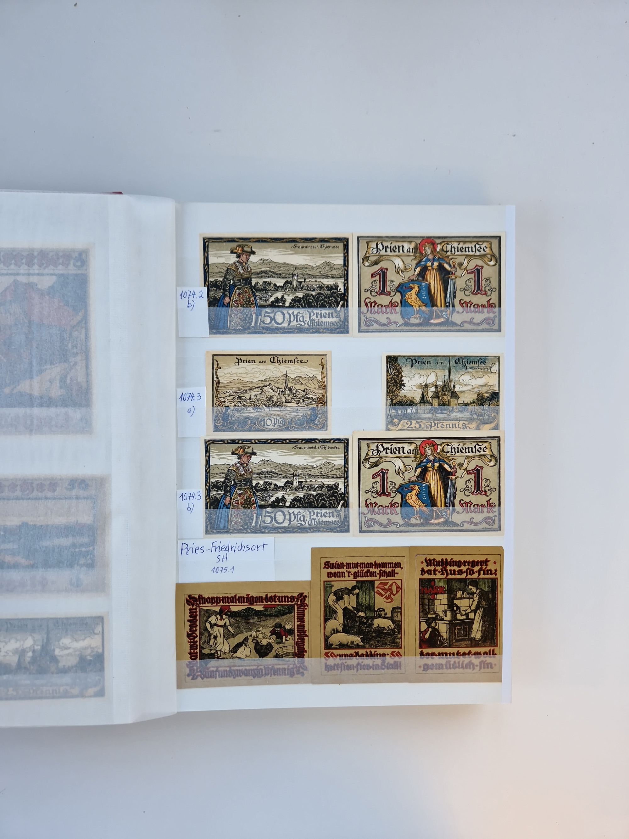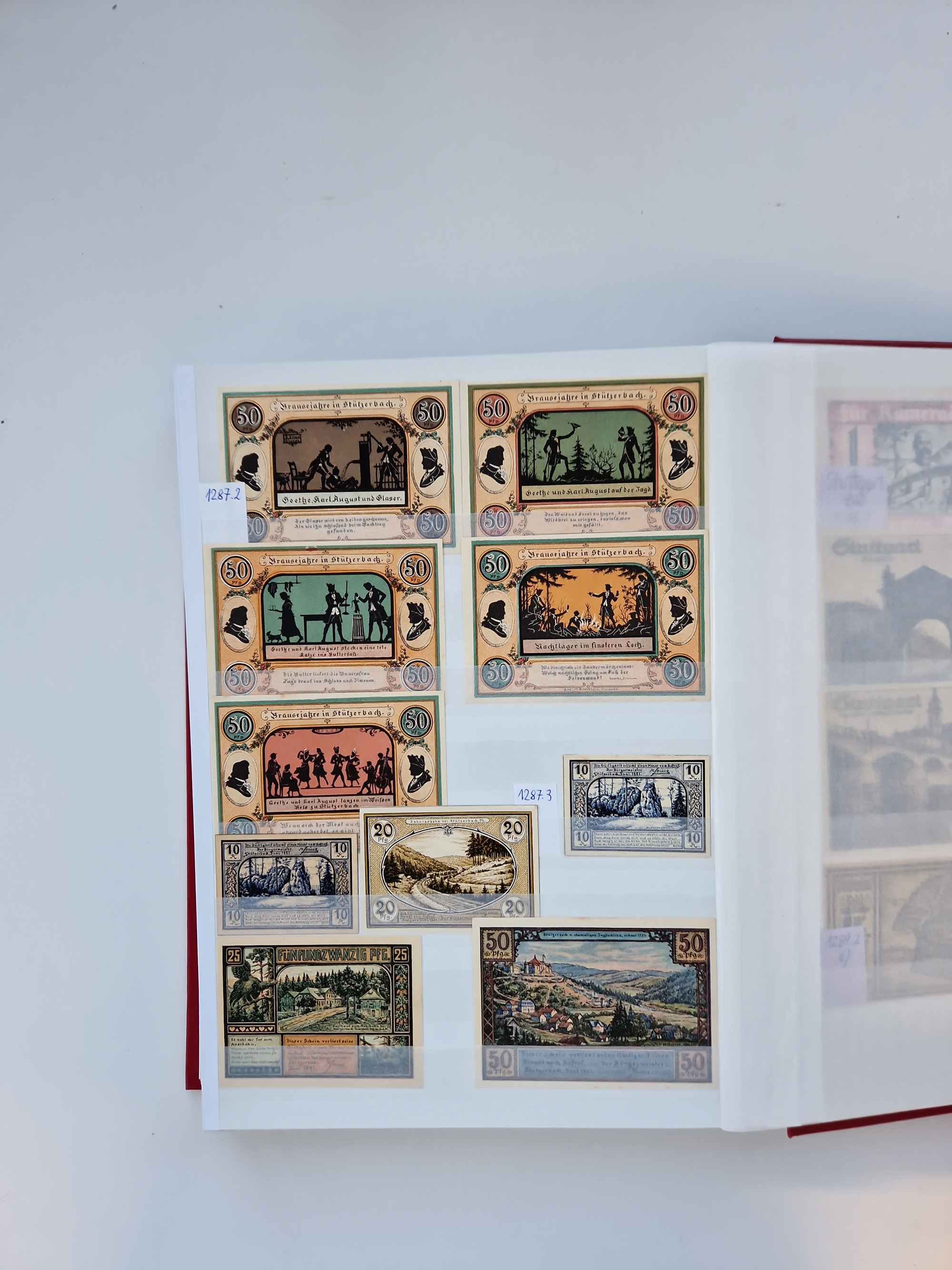 Notgeld-Serienscheine, saubere Sammlung in 16 meist dicken Steckalben, sauber nach Orten und Serien sortiert, überschlägig etwa 7/8000 Stück, dazu 4 Kataloge
