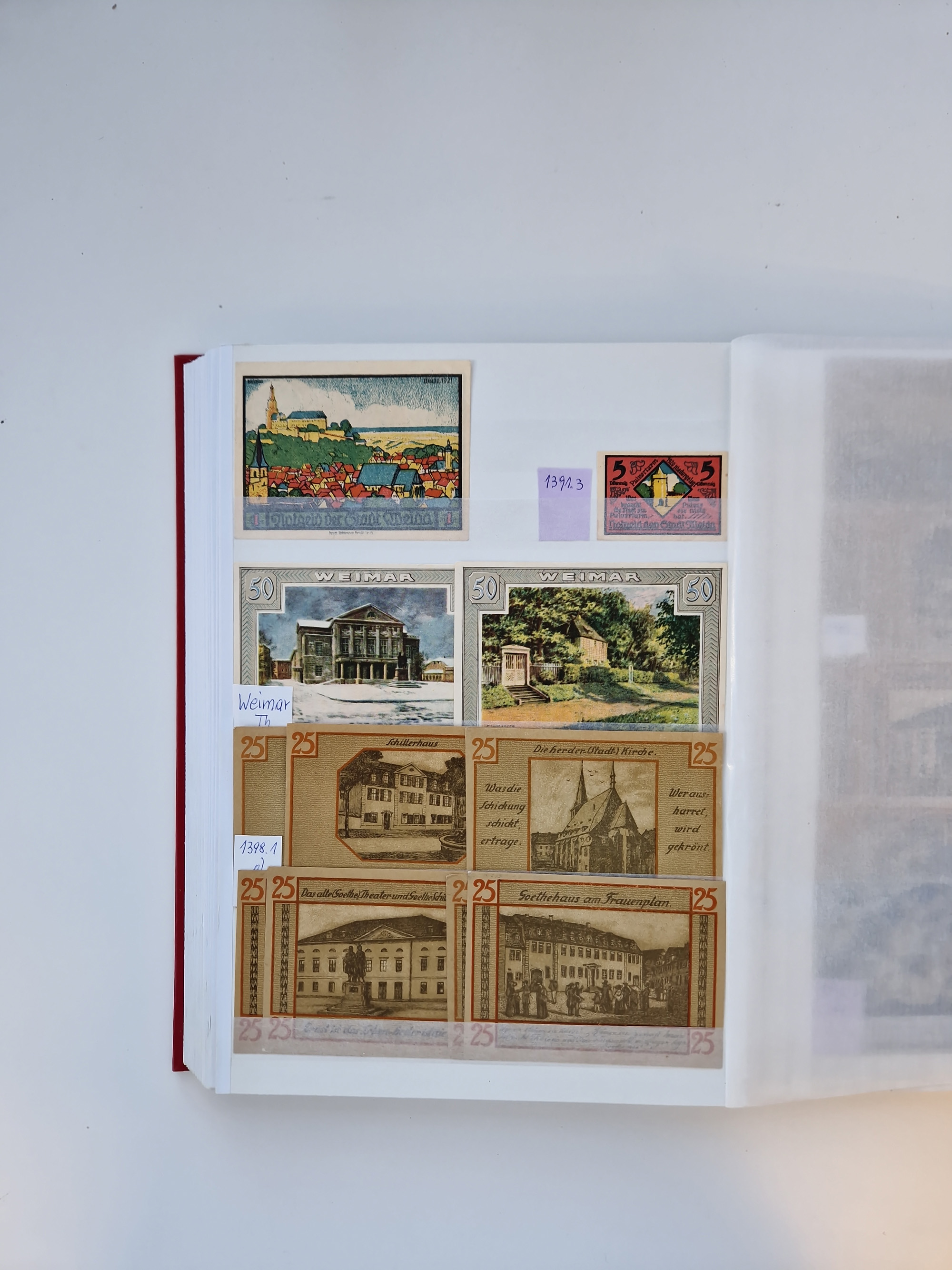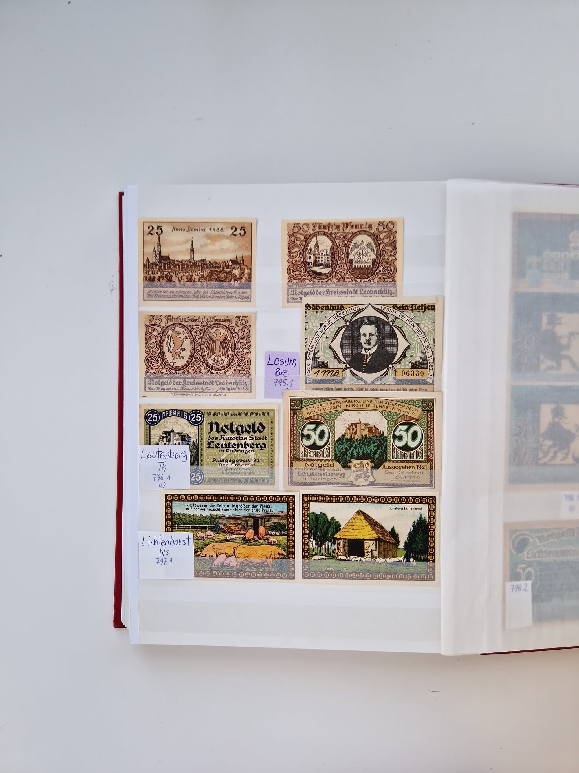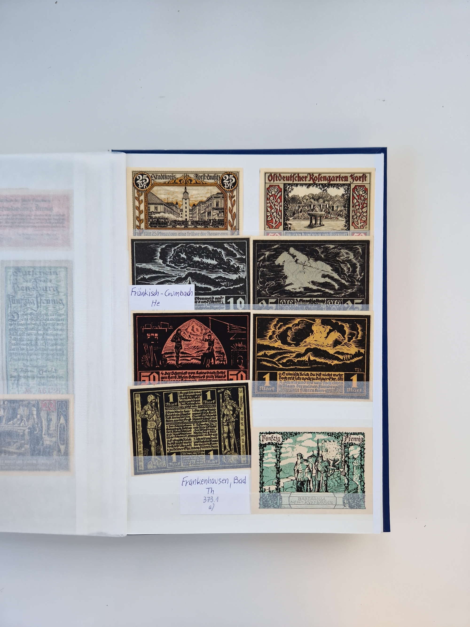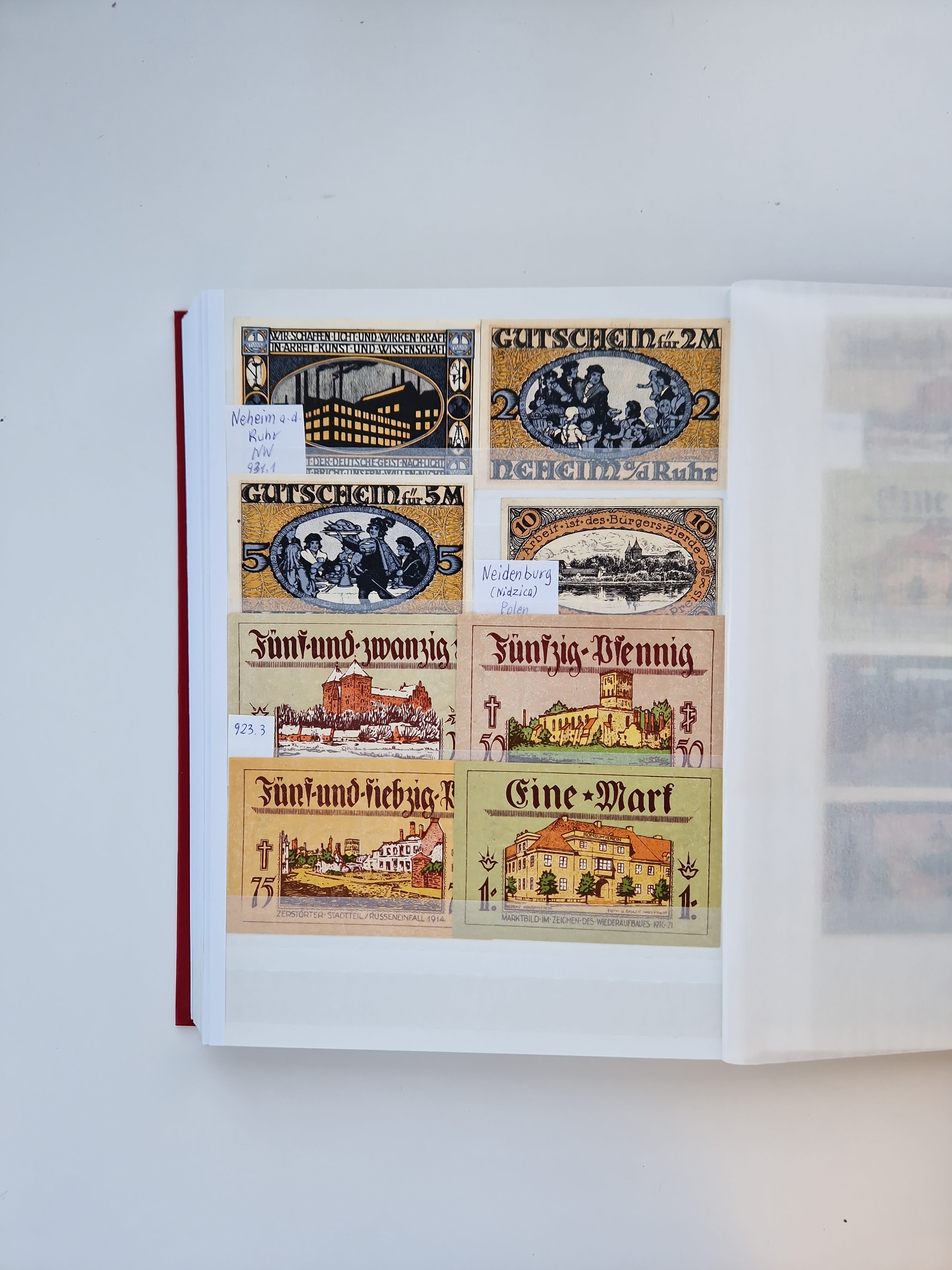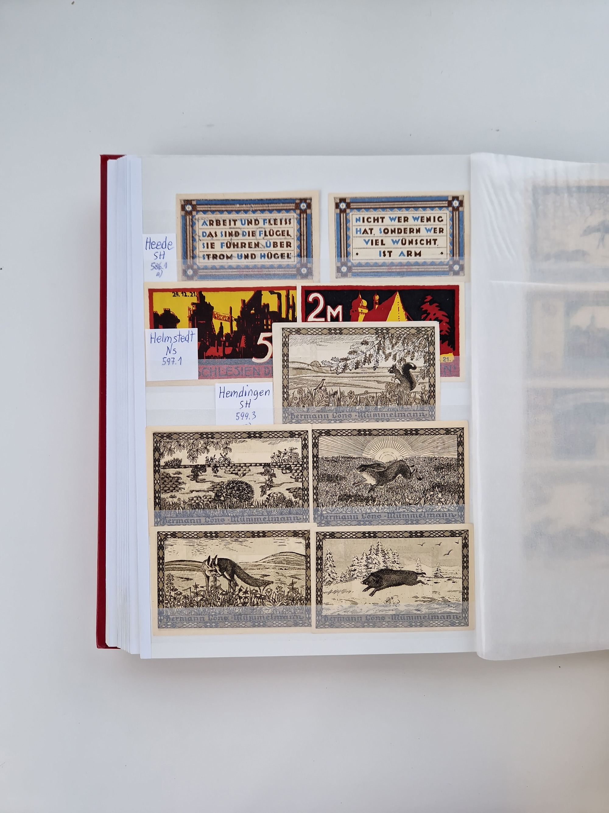 Notgeld-Serienscheine, saubere Sammlung in 16 meist dicken Steckalben, sauber nach Orten und Serien sortiert, überschlägig etwa 7/8000 Stück, dazu 4 Kataloge