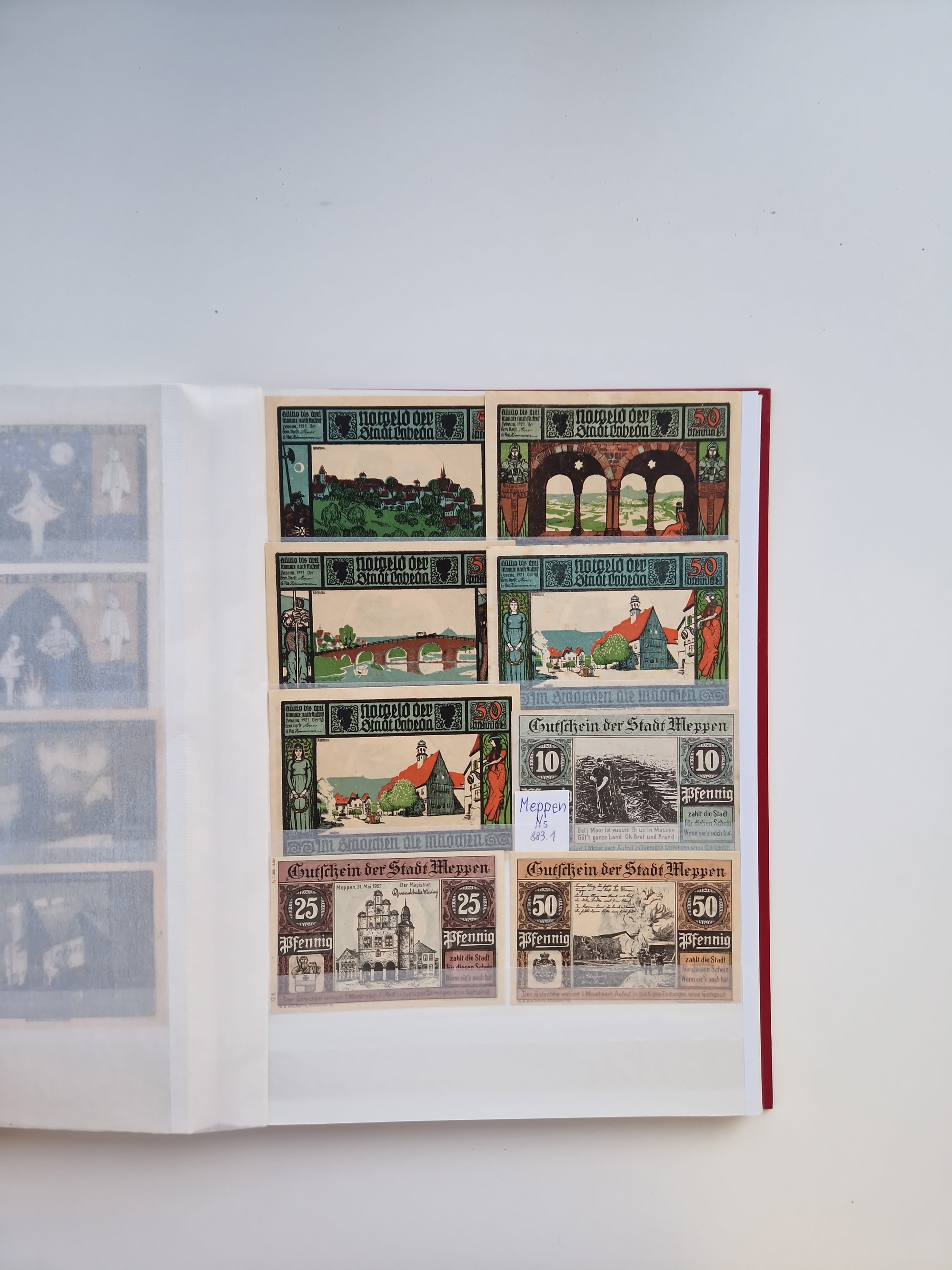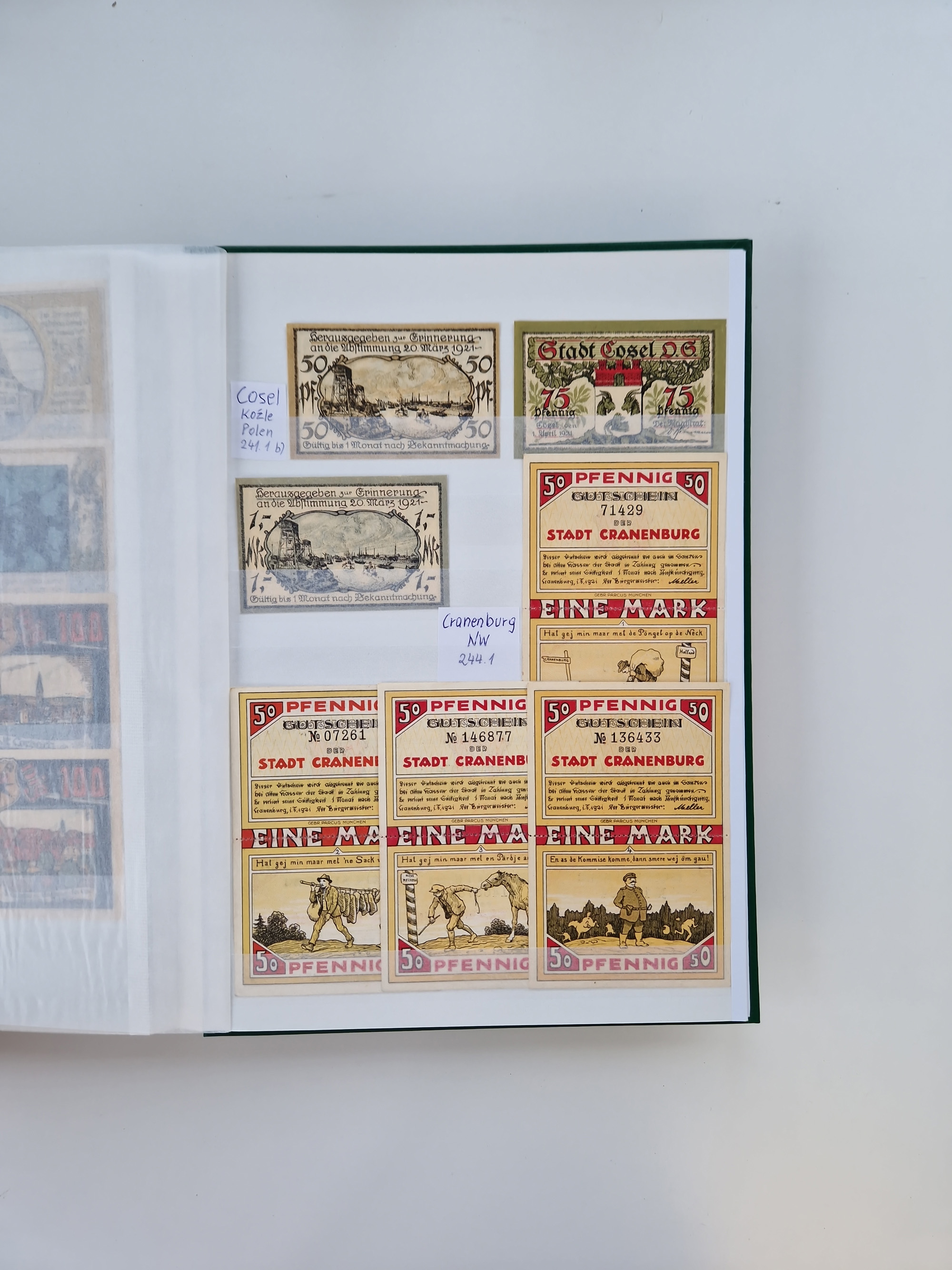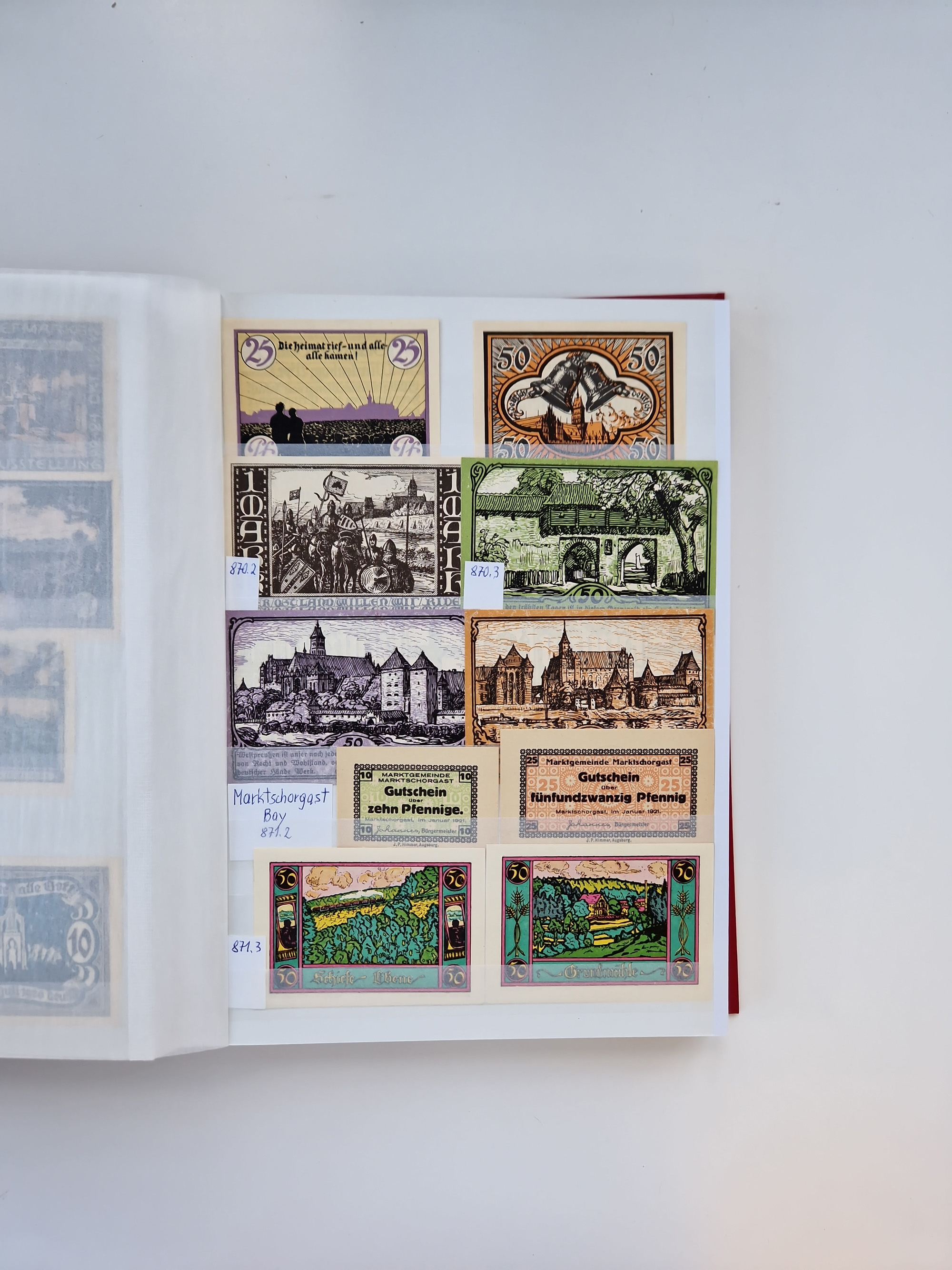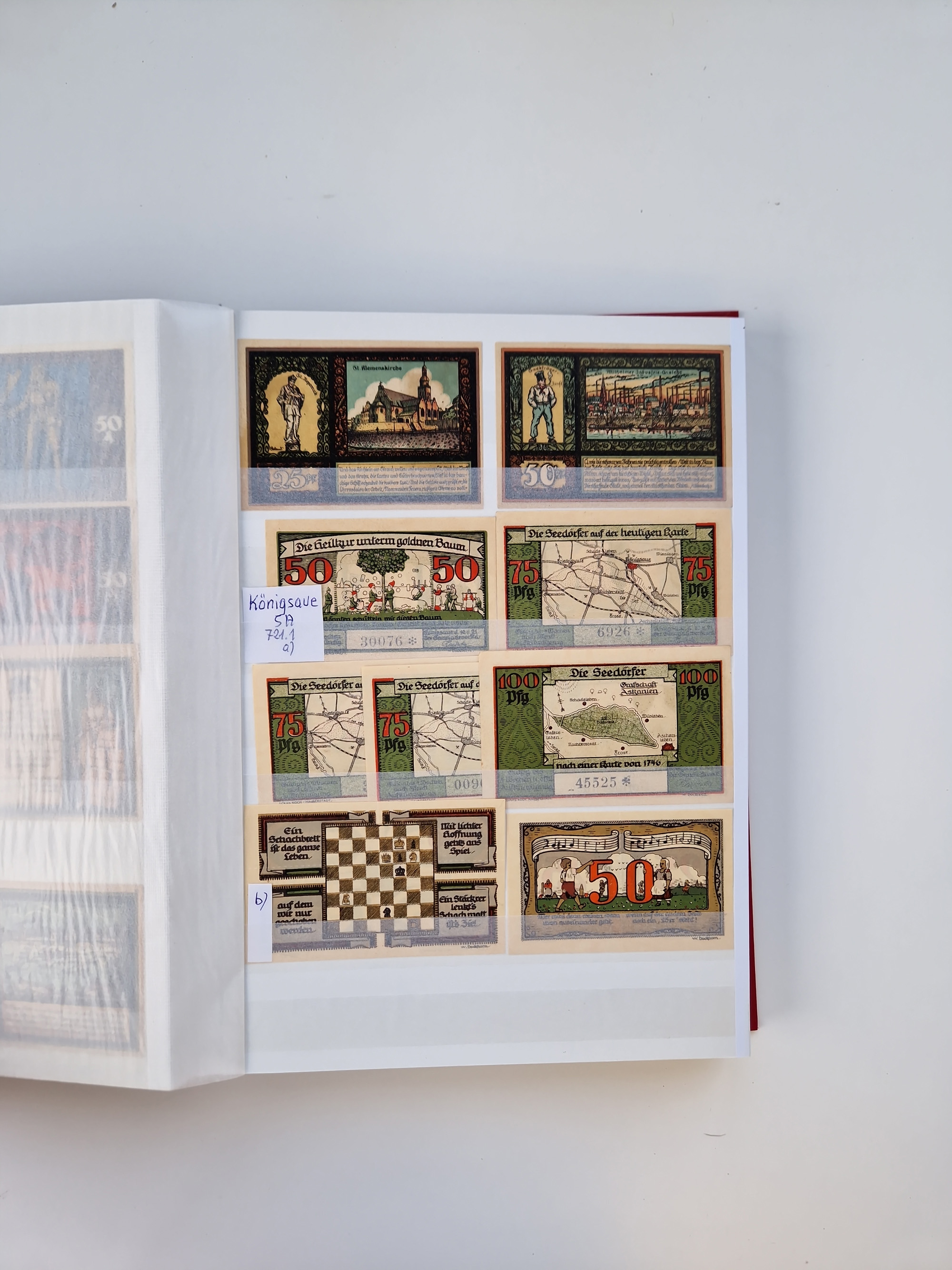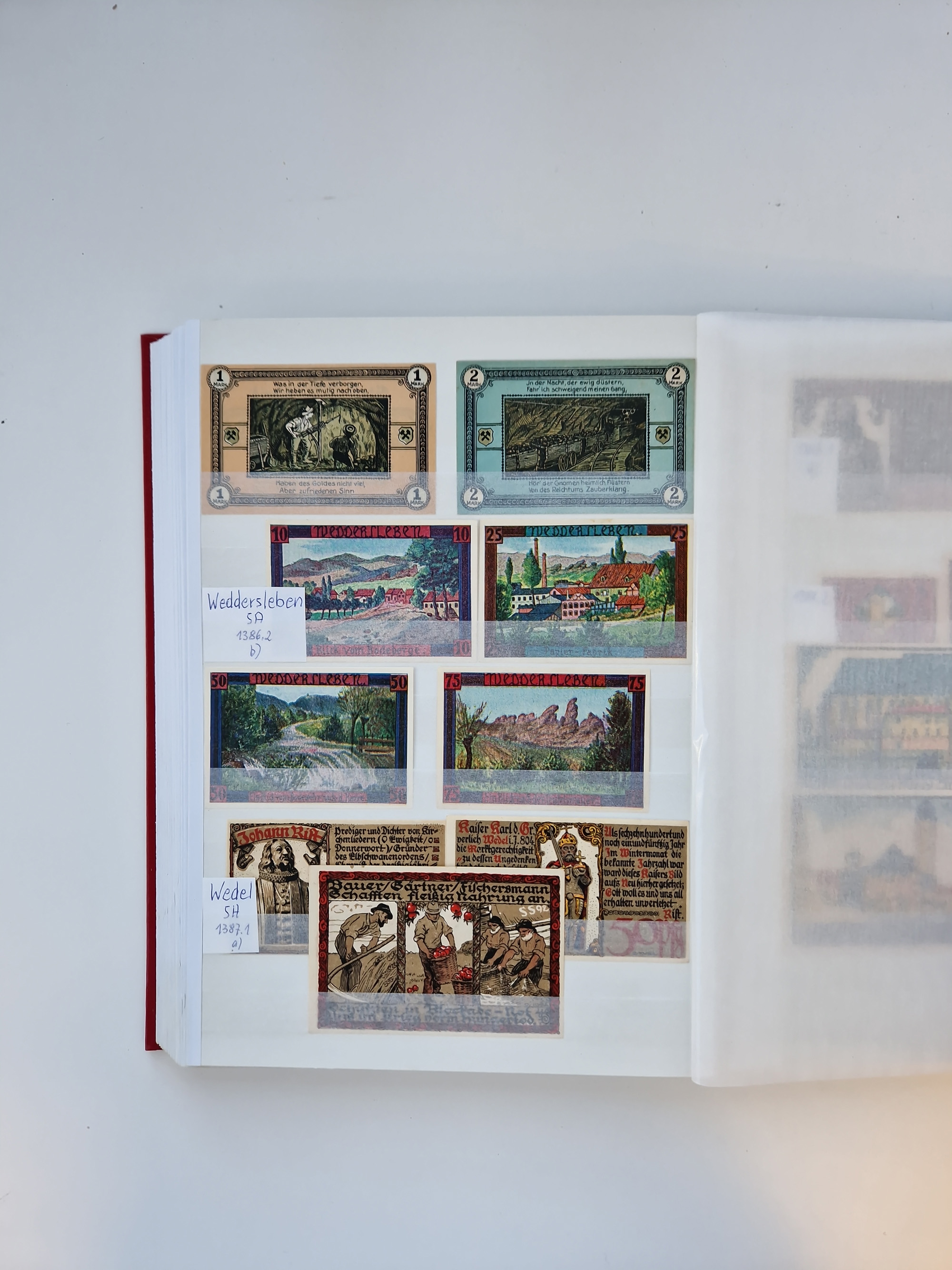 Notgeld-Serienscheine, saubere Sammlung in 16 meist dicken Steckalben, sauber nach Orten und Serien sortiert, überschlägig etwa 7/8000 Stück, dazu 4 Kataloge