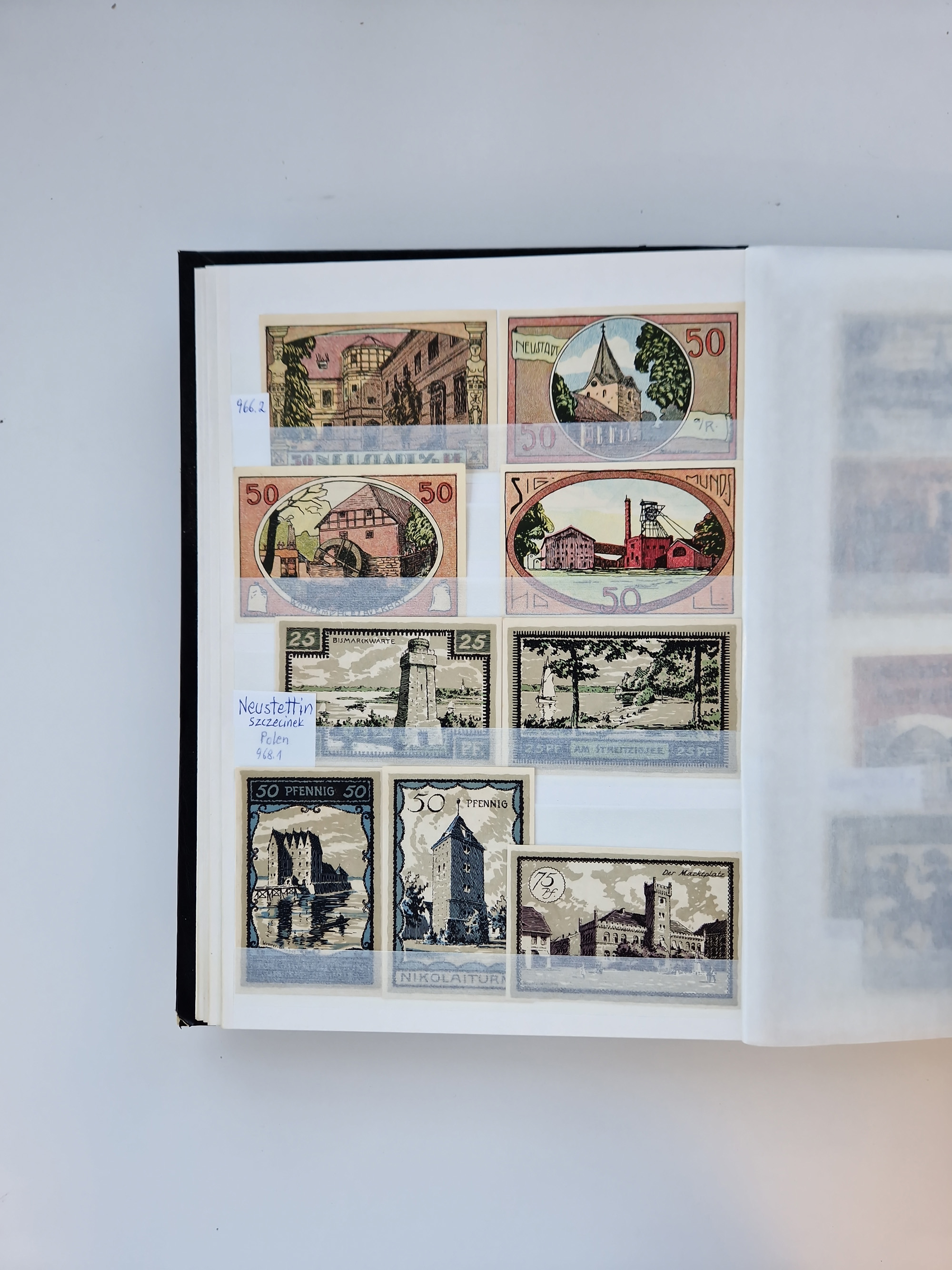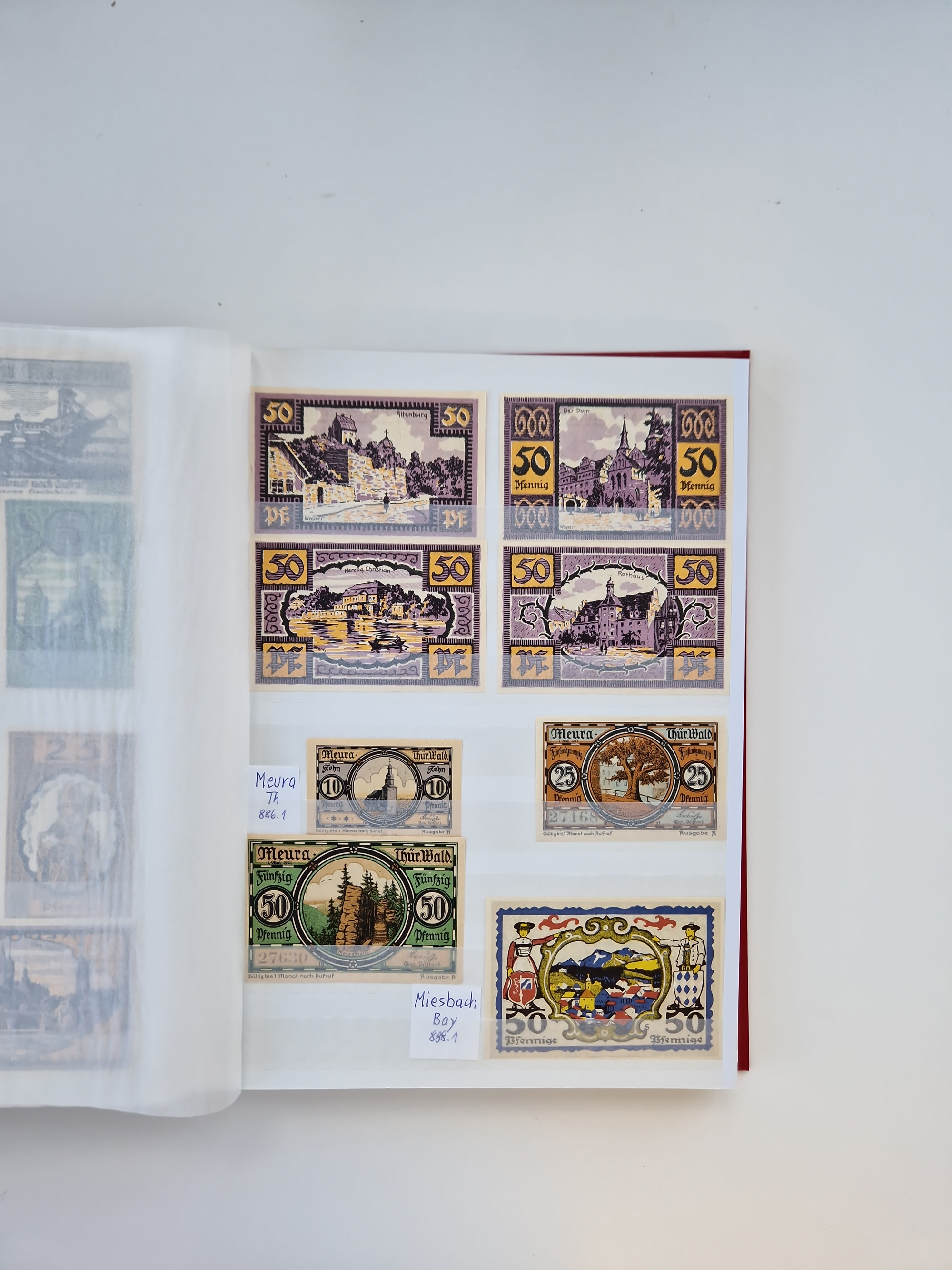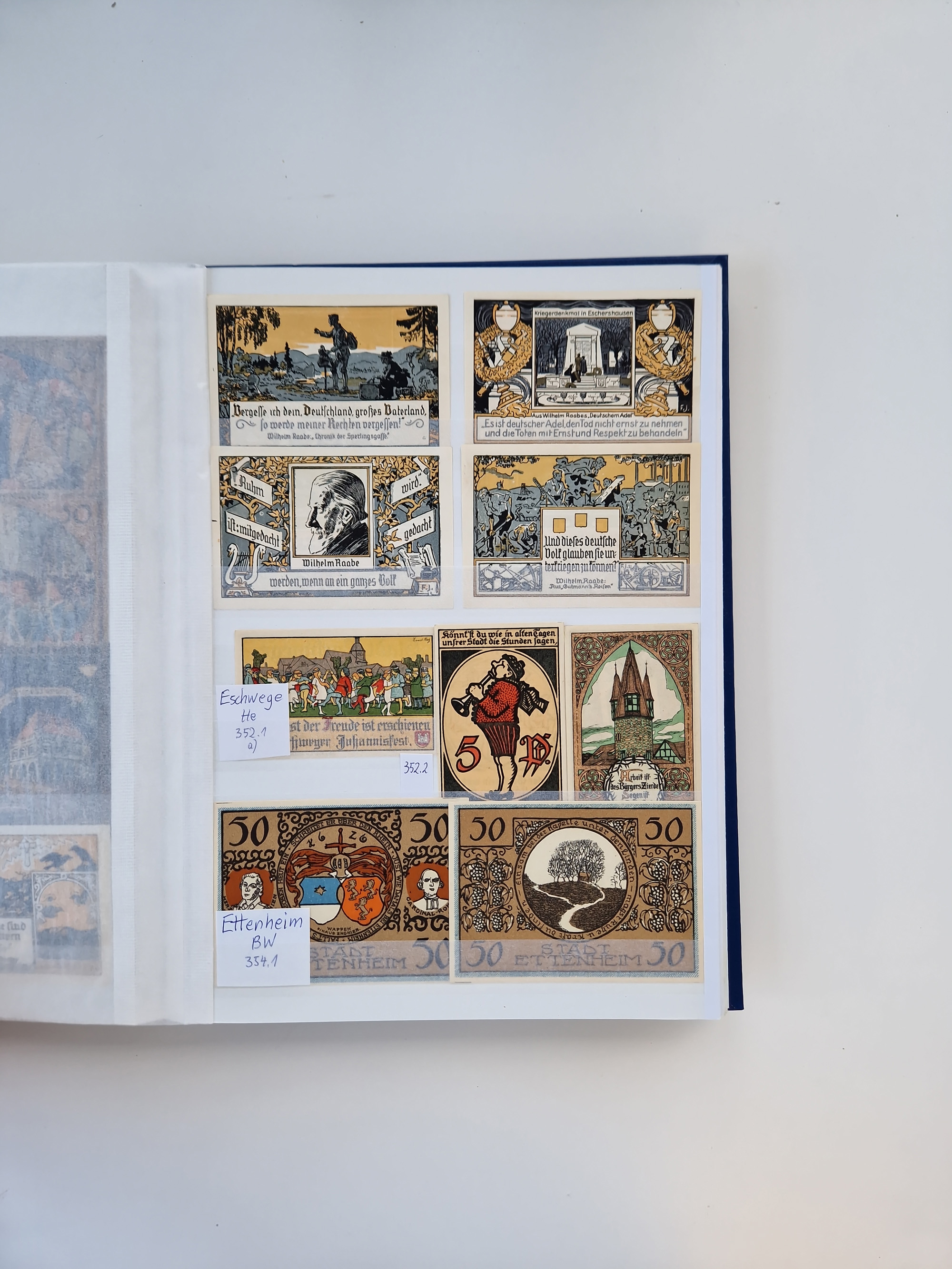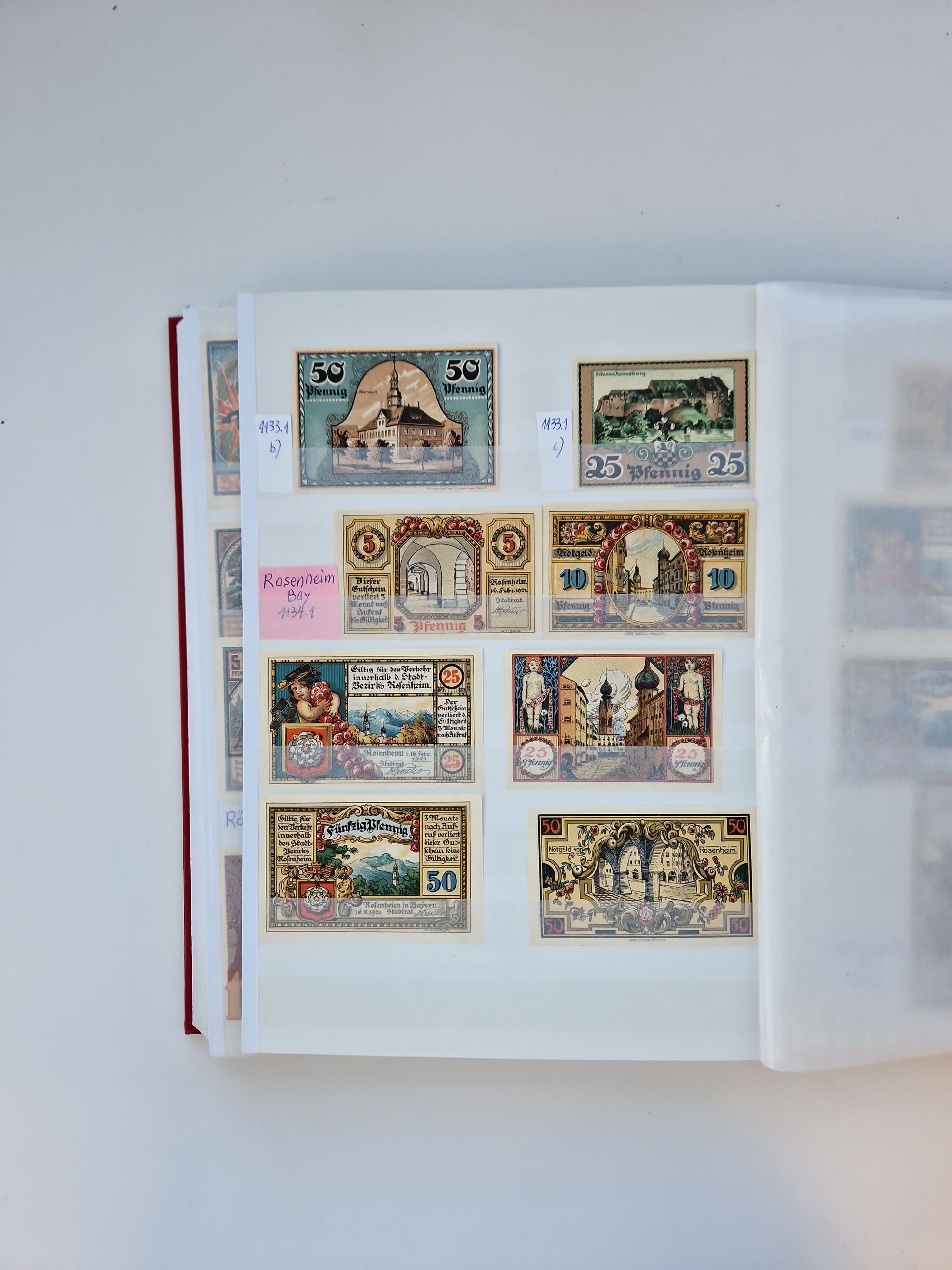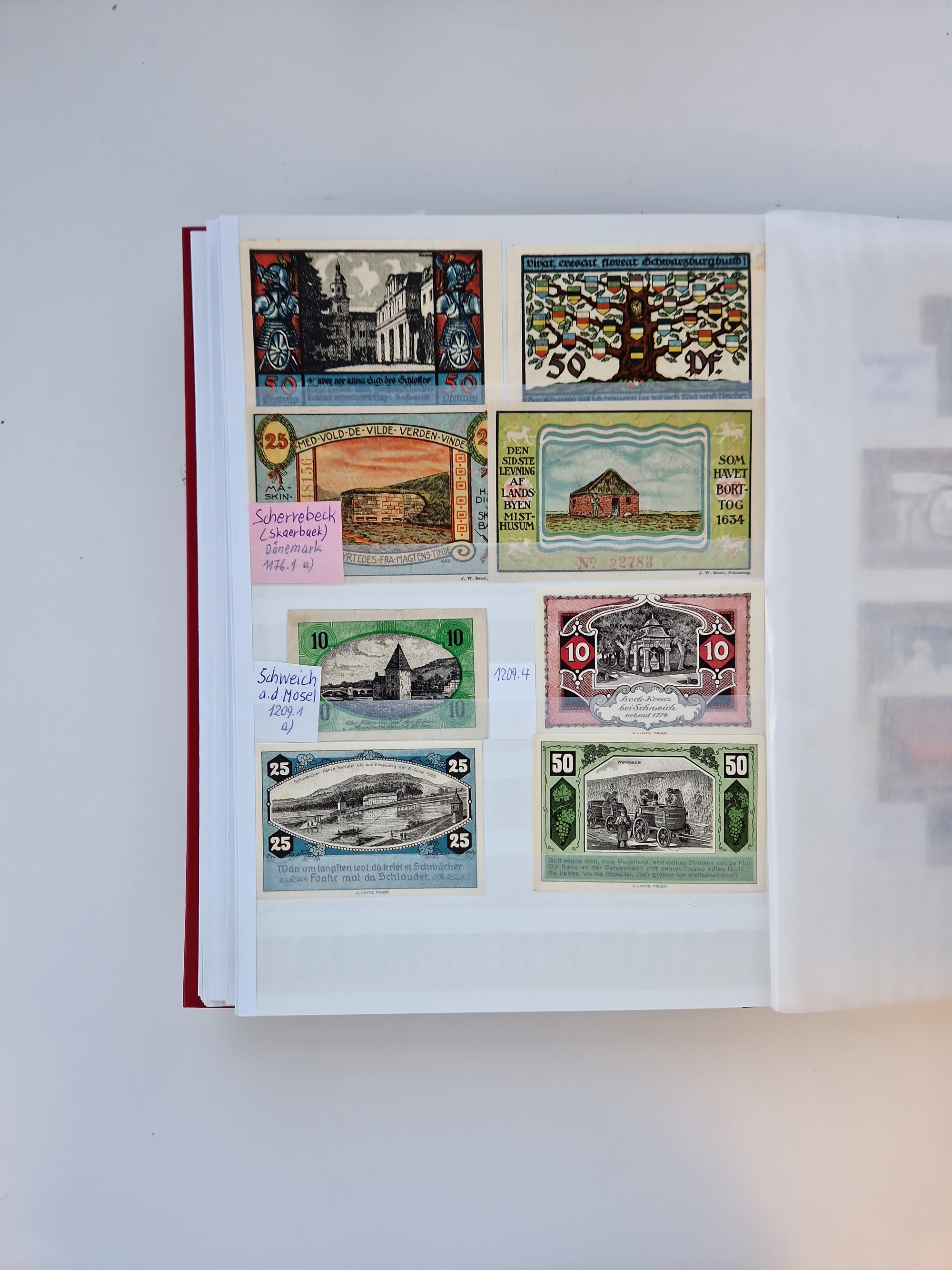 Notgeld-Serienscheine, saubere Sammlung in 16 meist dicken Steckalben, sauber nach Orten und Serien sortiert, überschlägig etwa 7/8000 Stück, dazu 4 Kataloge