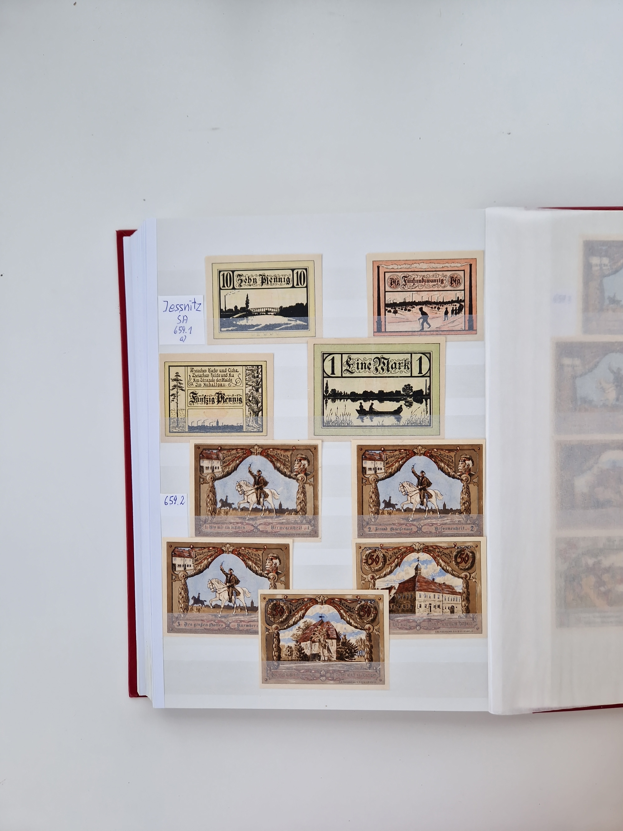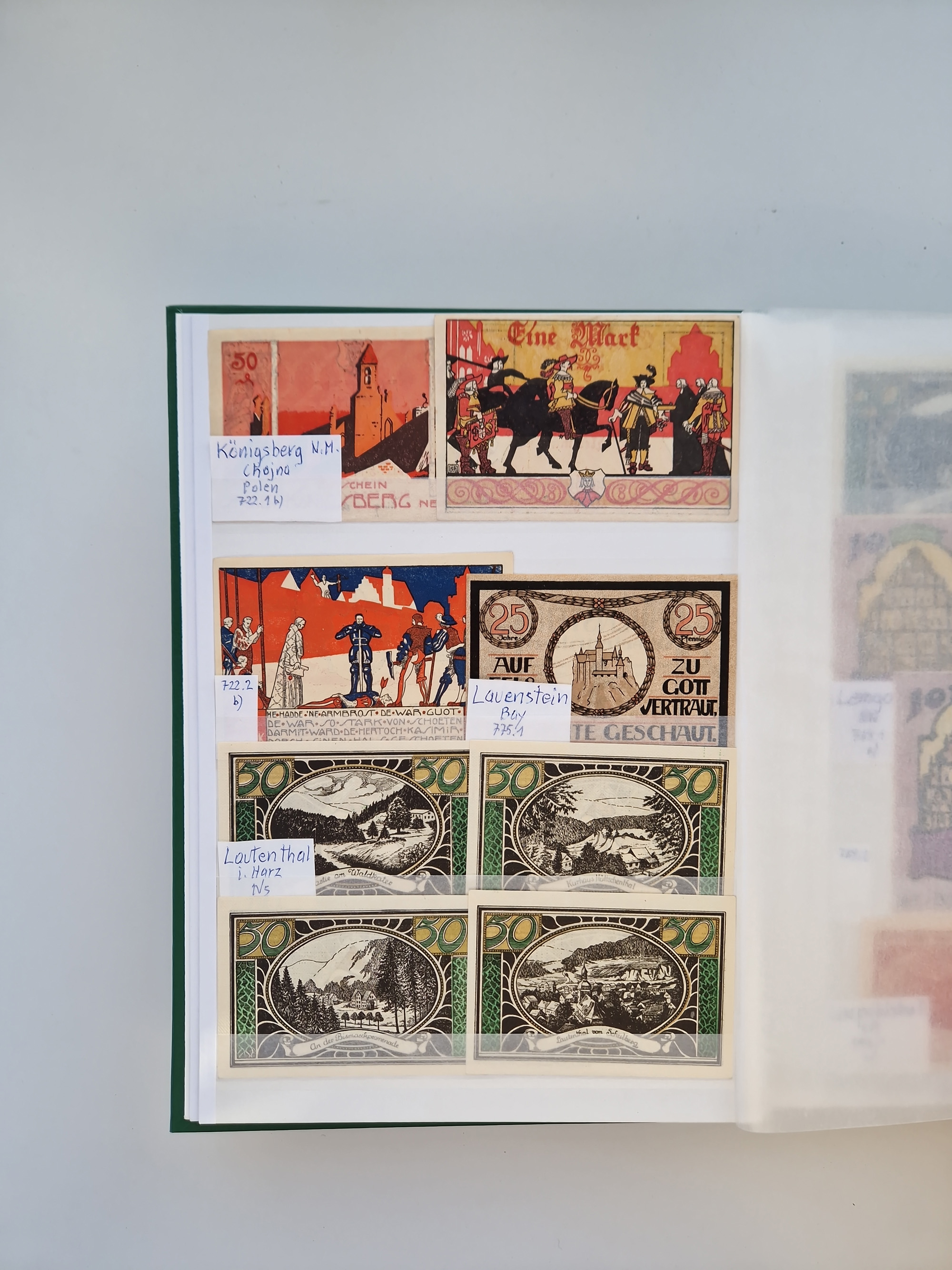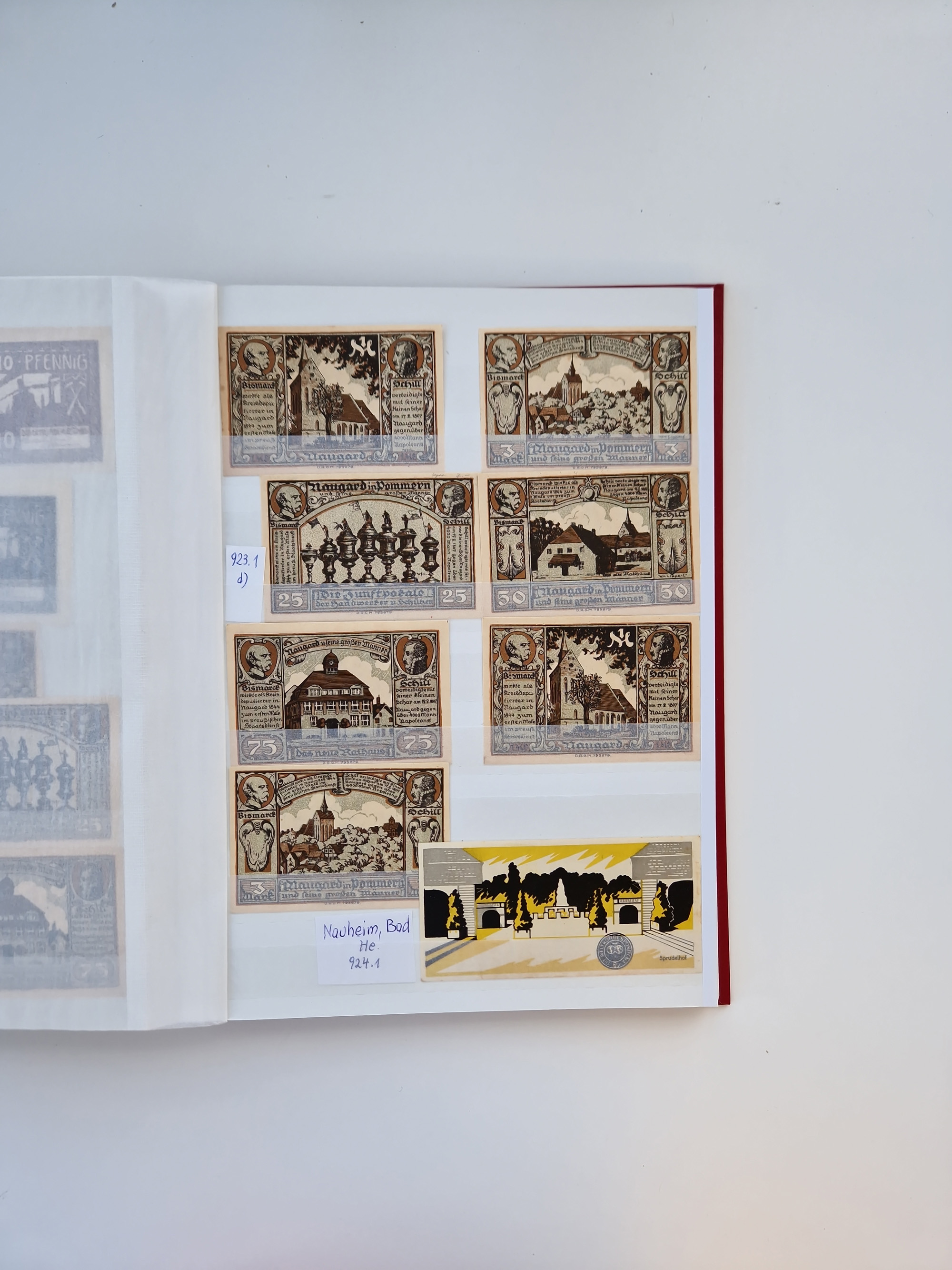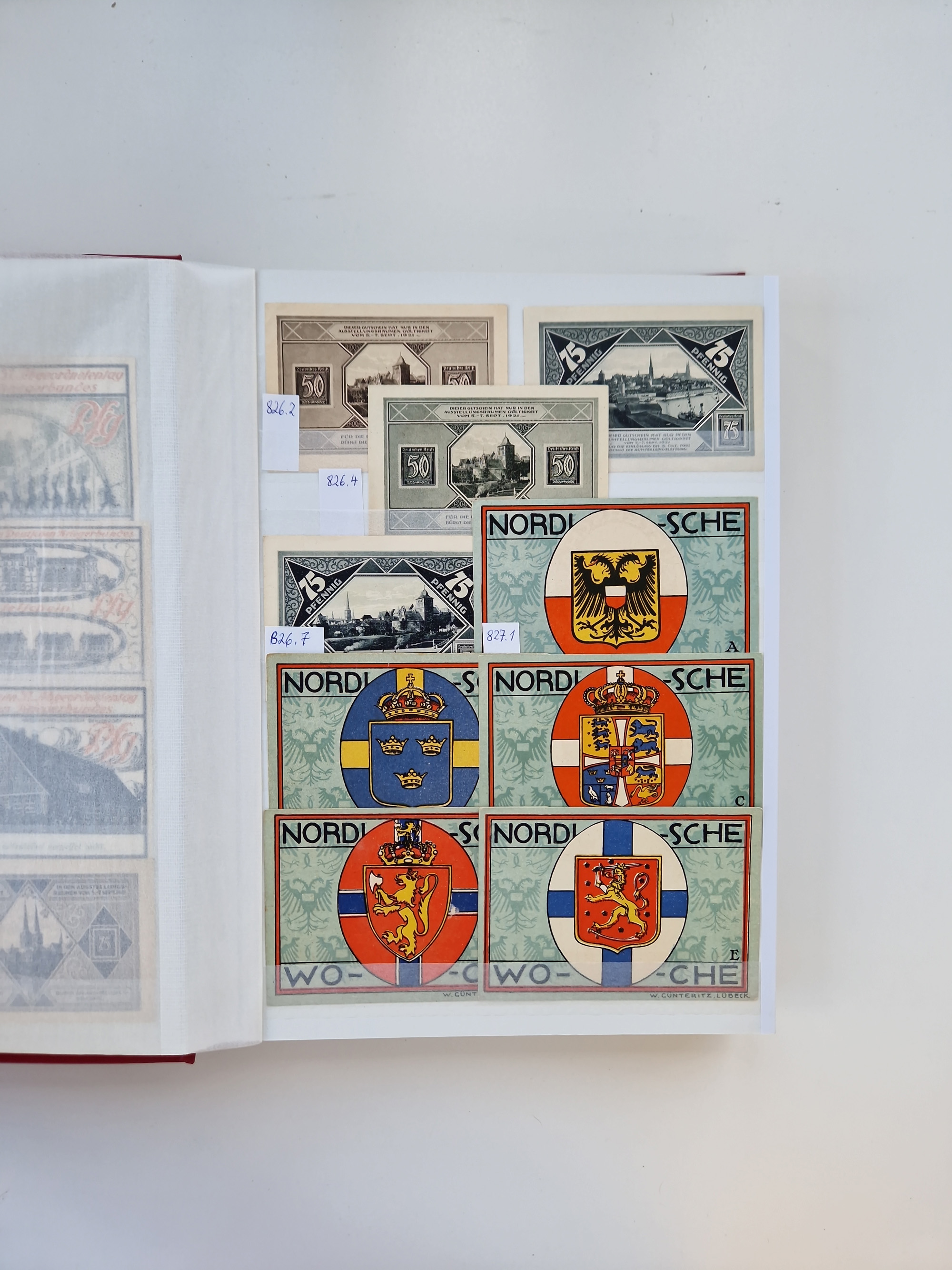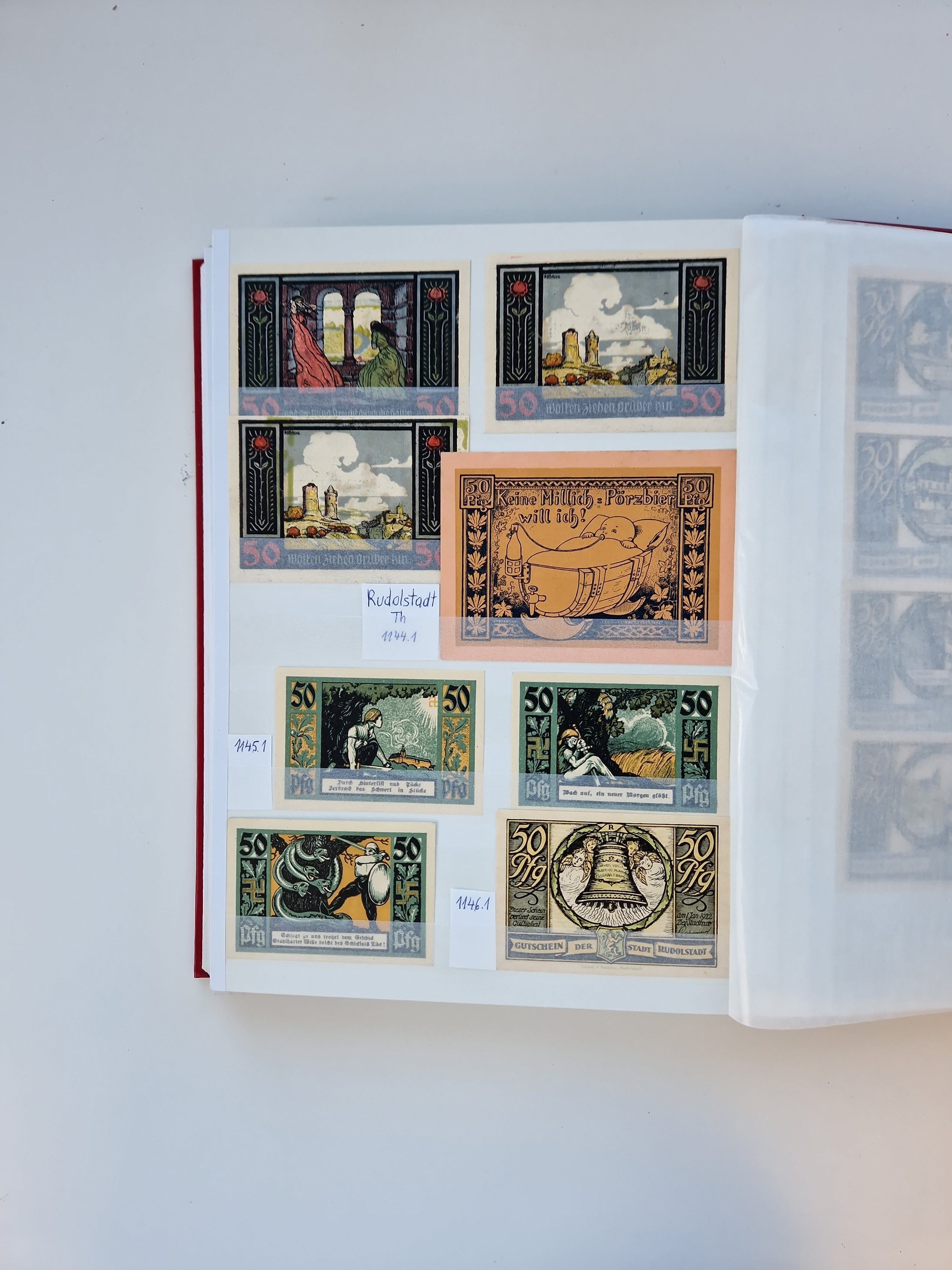 Notgeld-Serienscheine, saubere Sammlung in 16 meist dicken Steckalben, sauber nach Orten und Serien sortiert, überschlägig etwa 7/8000 Stück, dazu 4 Kataloge