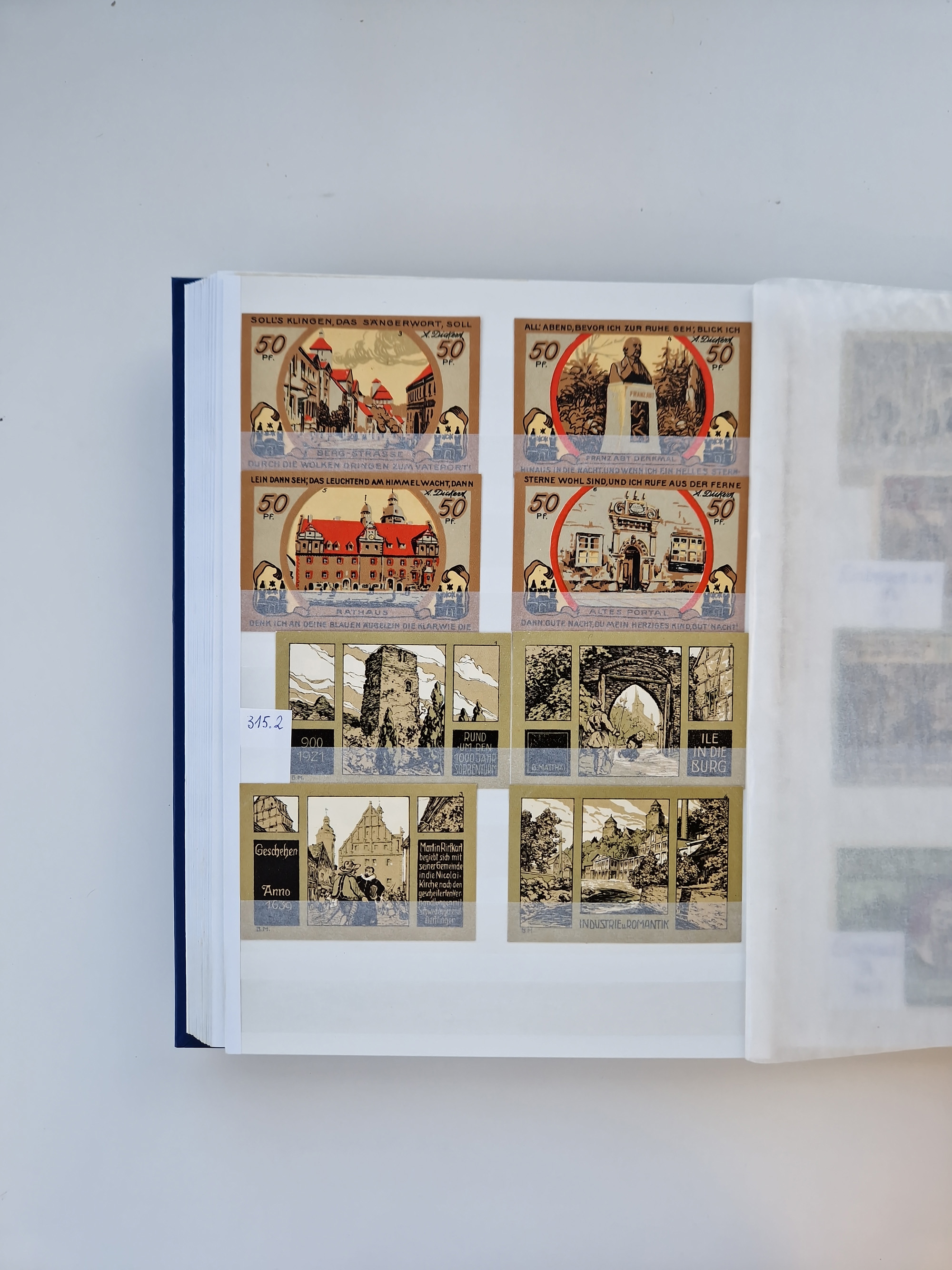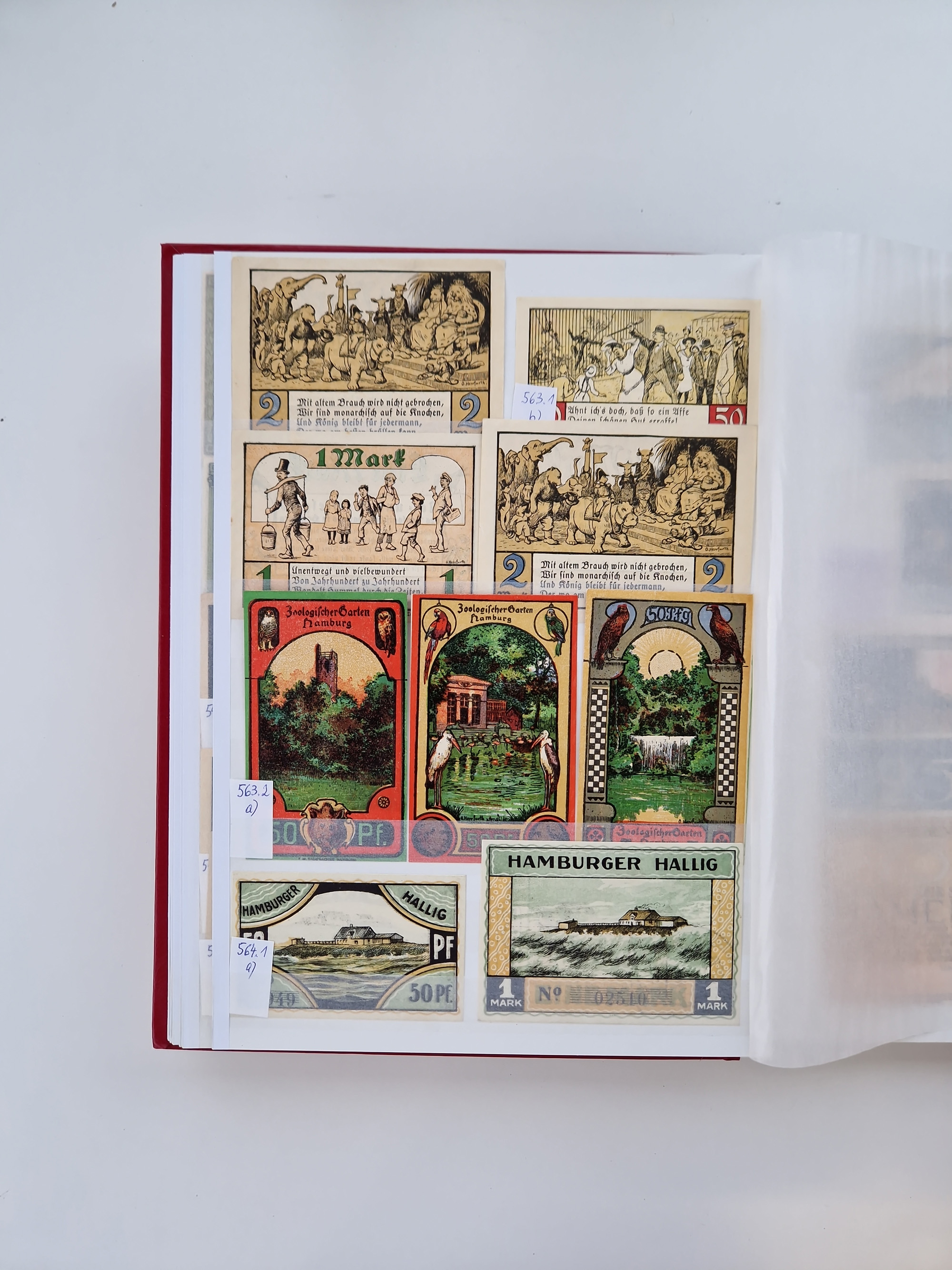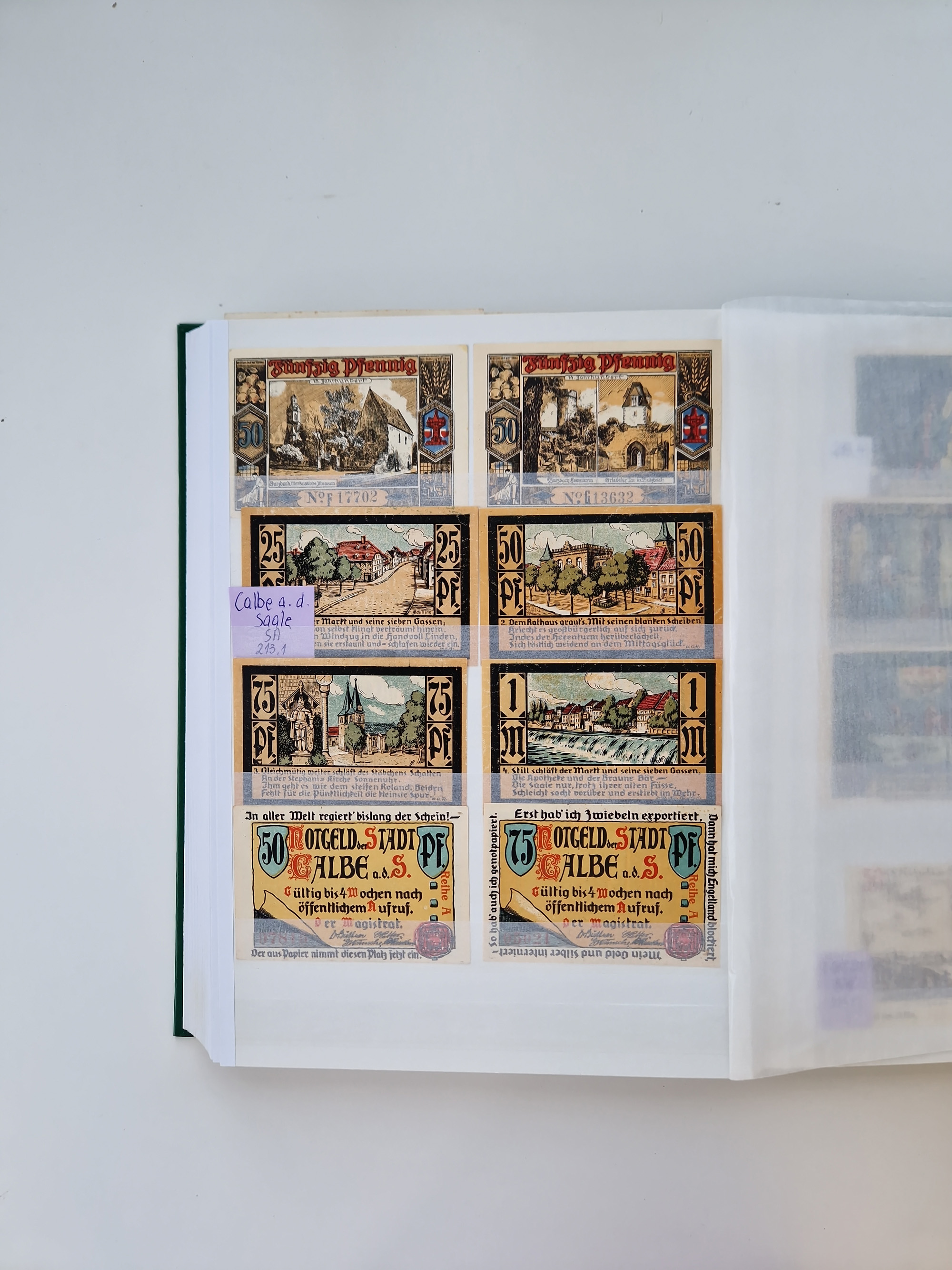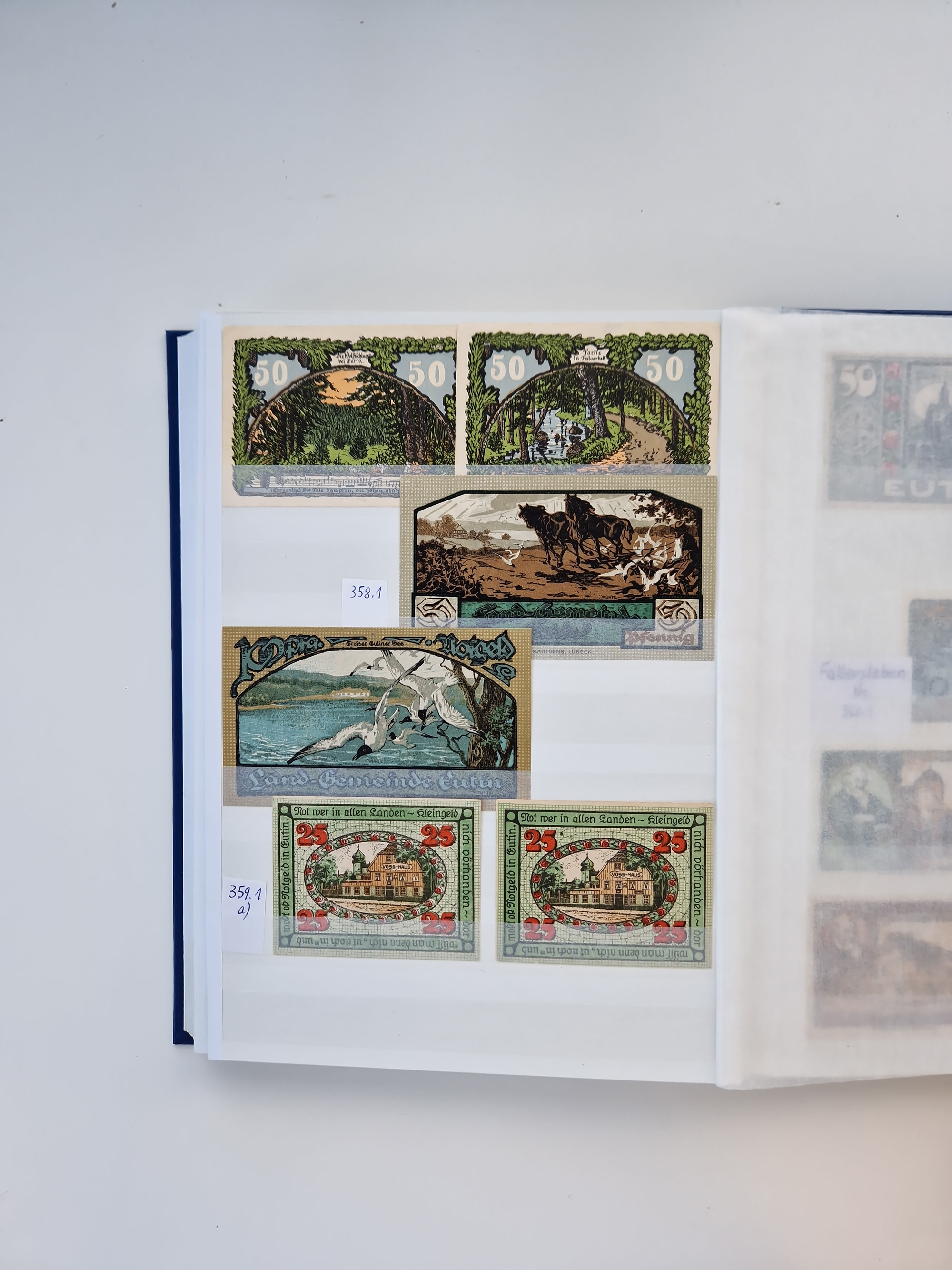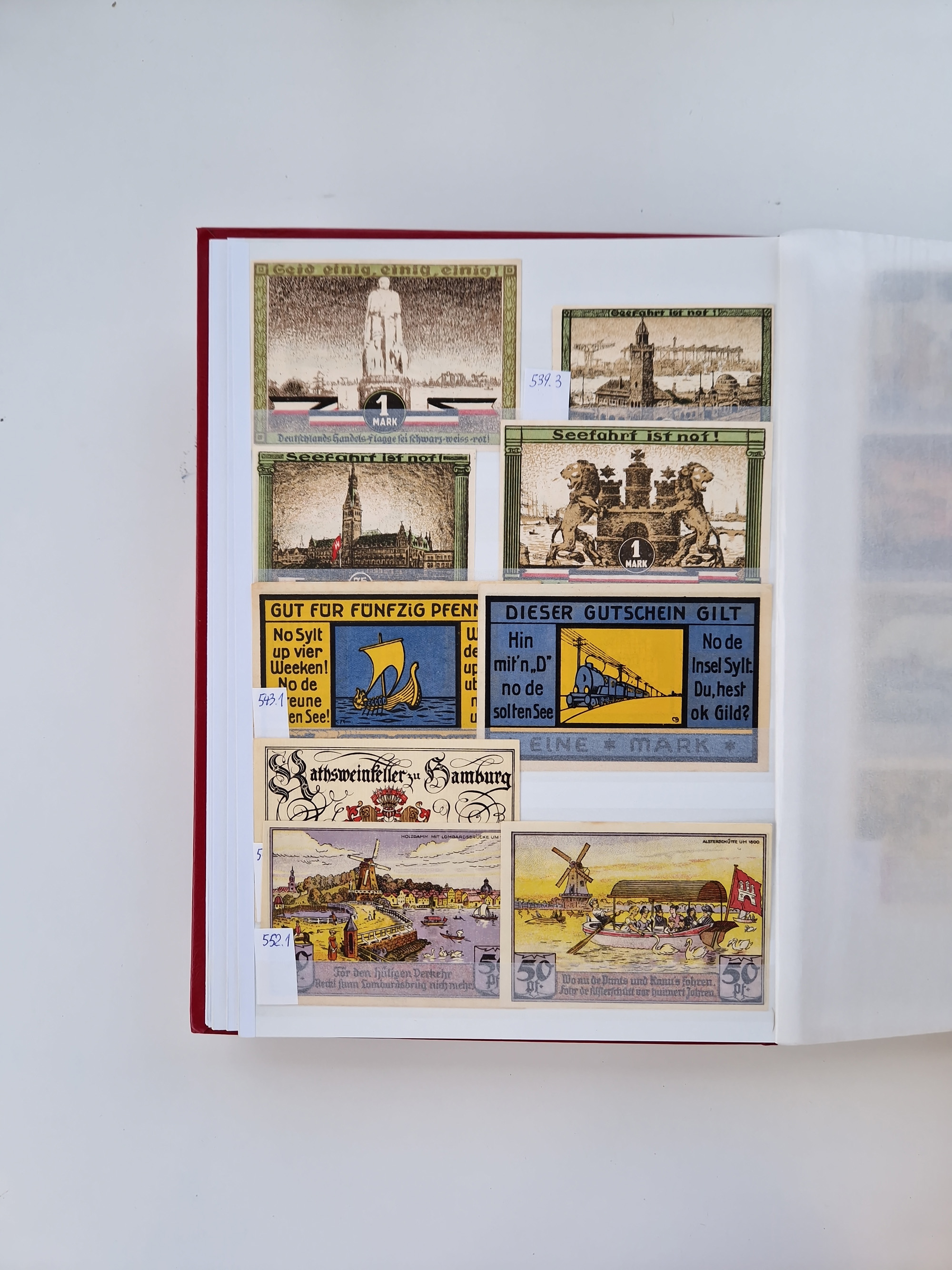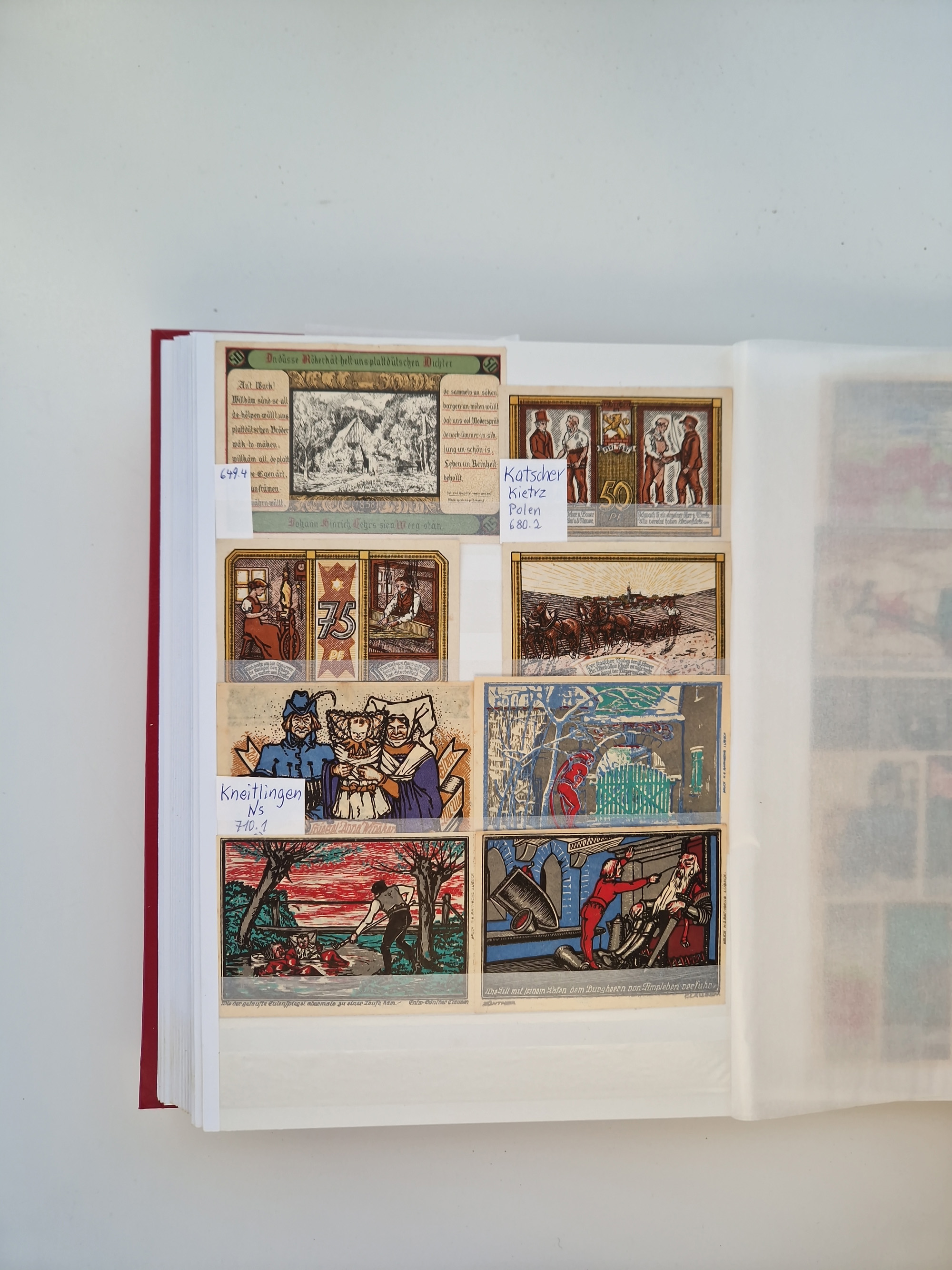Notgeld-Serienscheine, saubere Sammlung in 16 meist dicken Steckalben, sauber nach Orten und Serien sortiert, überschlägig etwa 7/8000 Stück, dazu 4 Kataloge