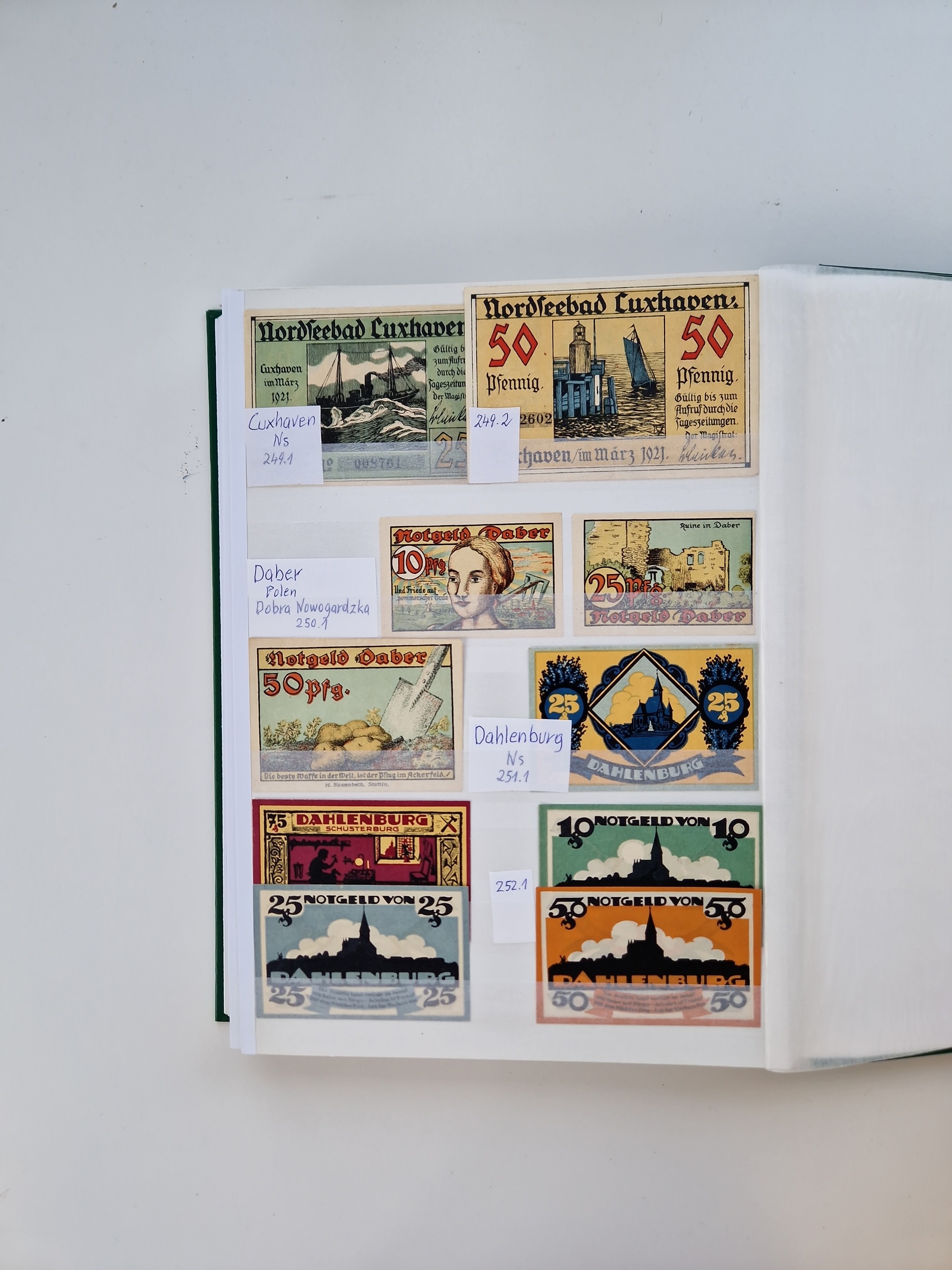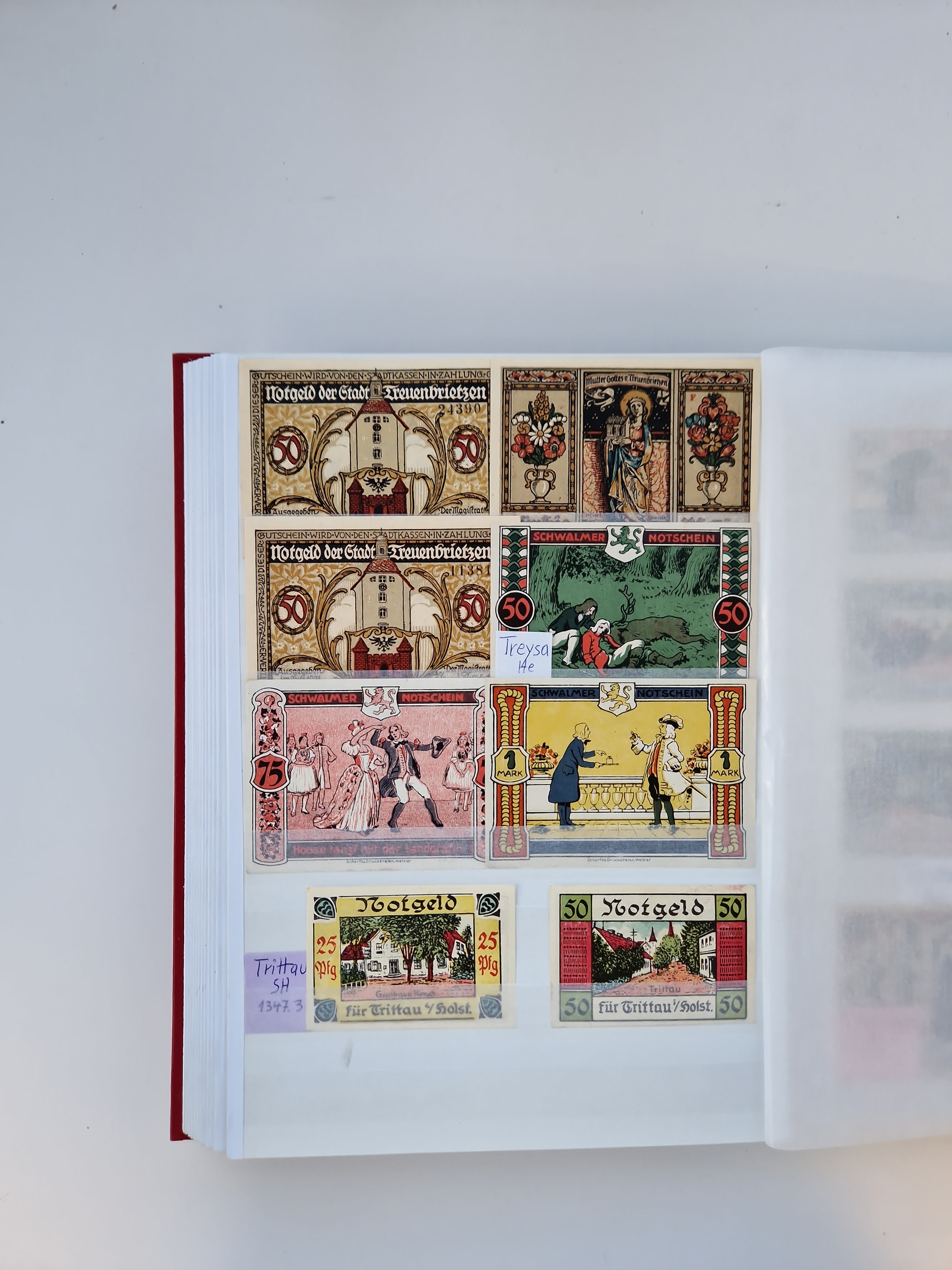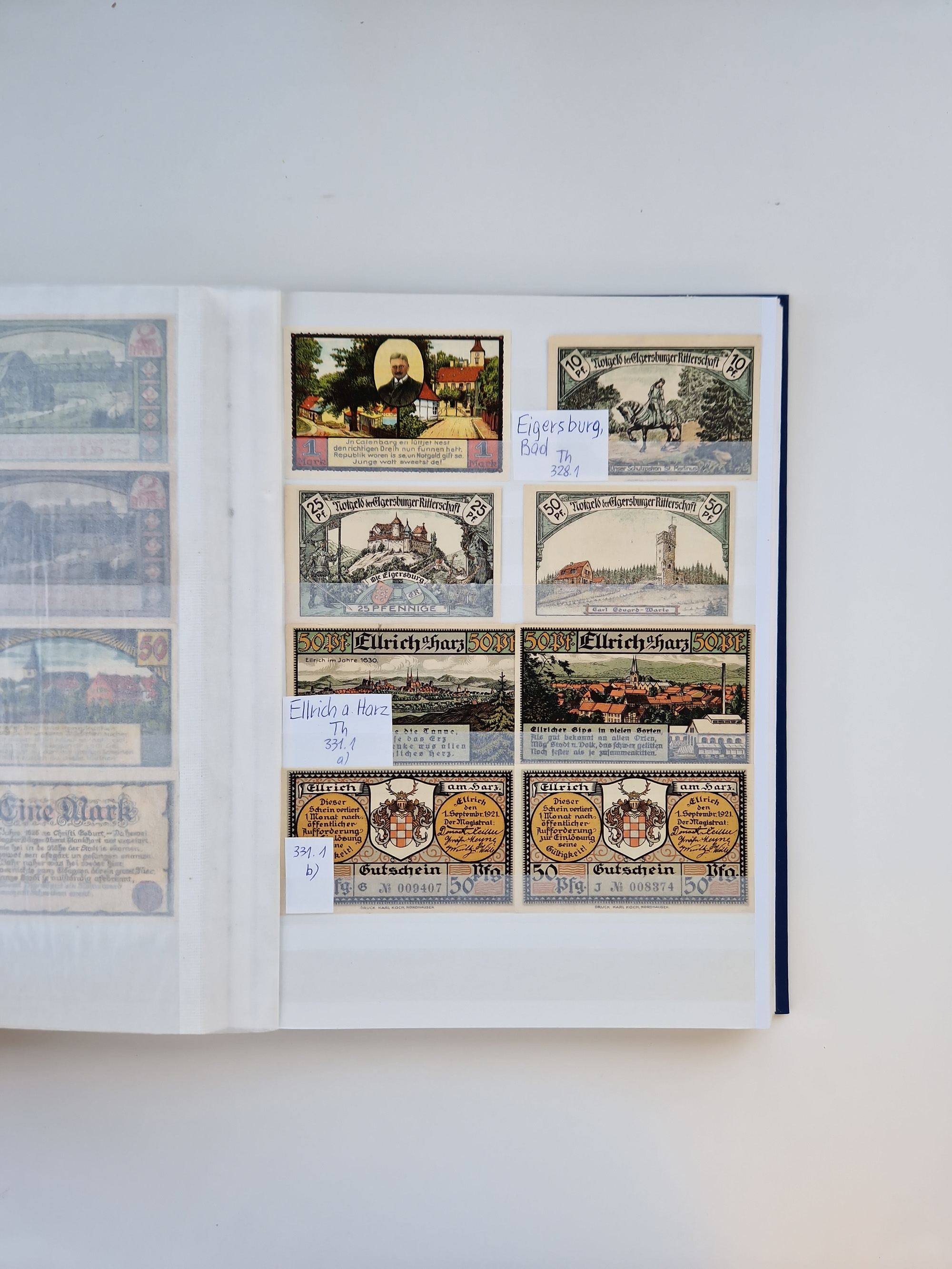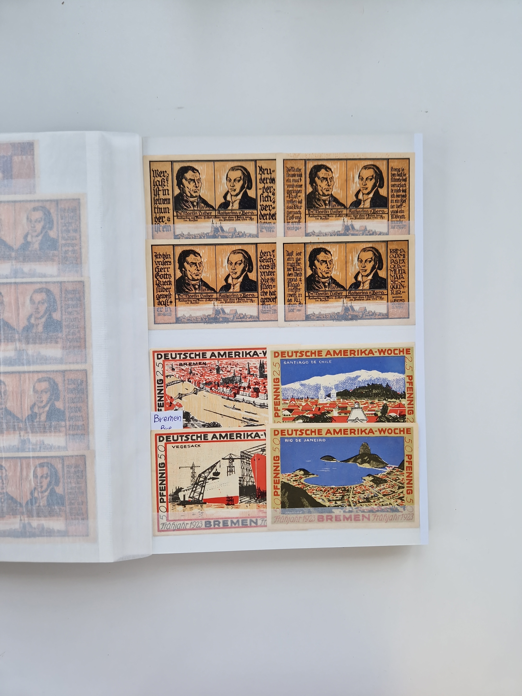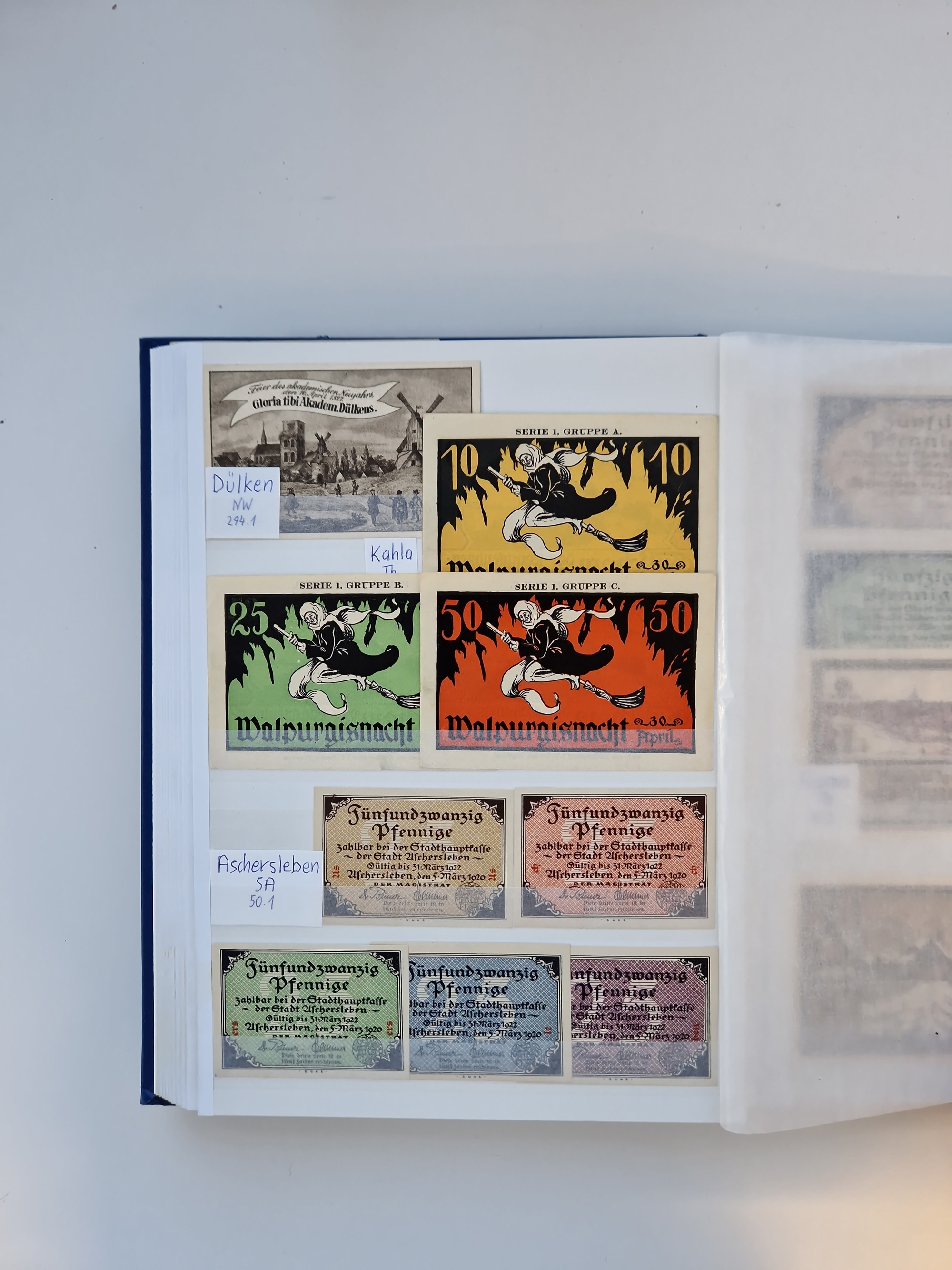 Notgeld-Serienscheine, saubere Sammlung in 16 meist dicken Steckalben, sauber nach Orten und Serien sortiert, überschlägig etwa 7/8000 Stück, dazu 4 Kataloge