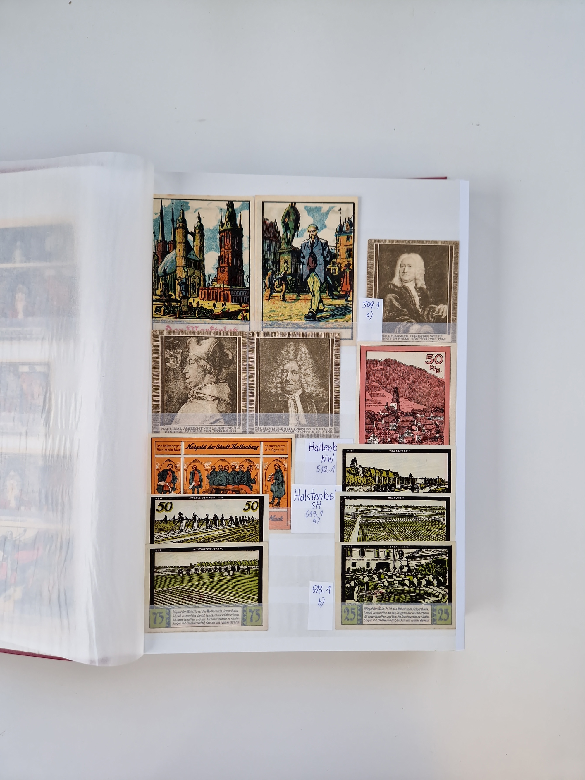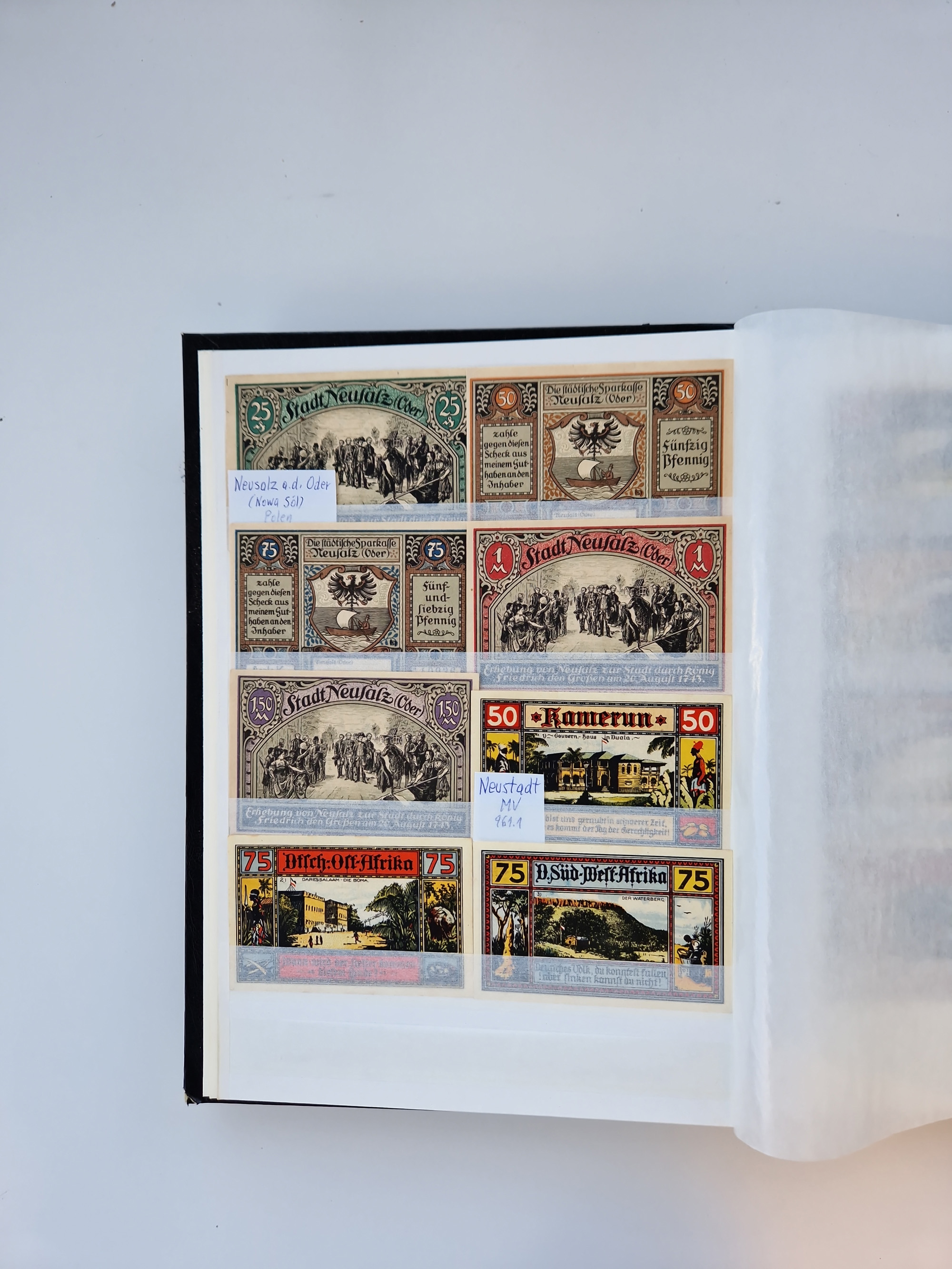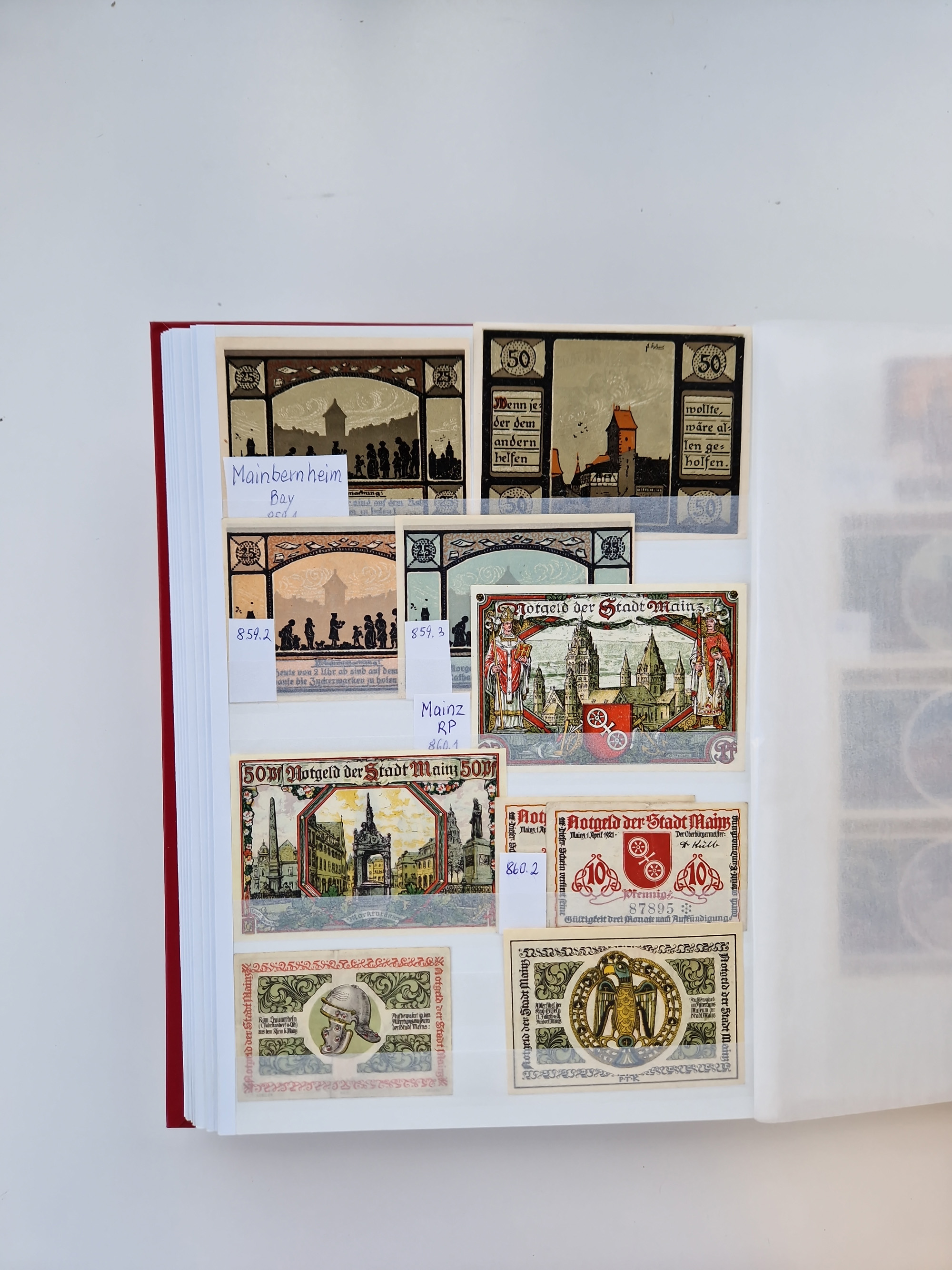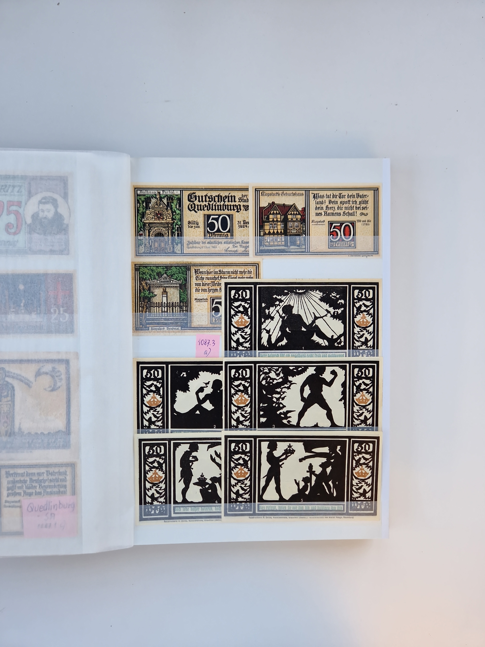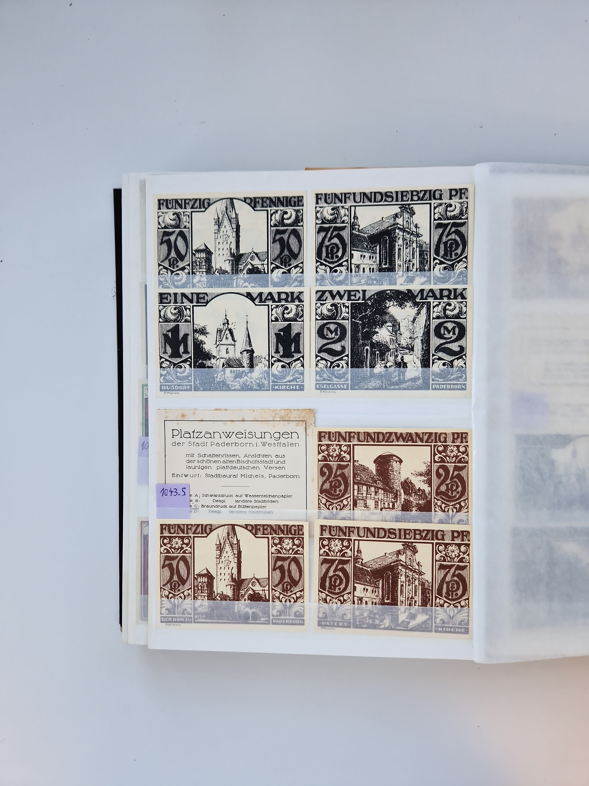 Notgeld-Serienscheine, saubere Sammlung in 16 meist dicken Steckalben, sauber nach Orten und Serien sortiert, überschlägig etwa 7/8000 Stück, dazu 4 Kataloge