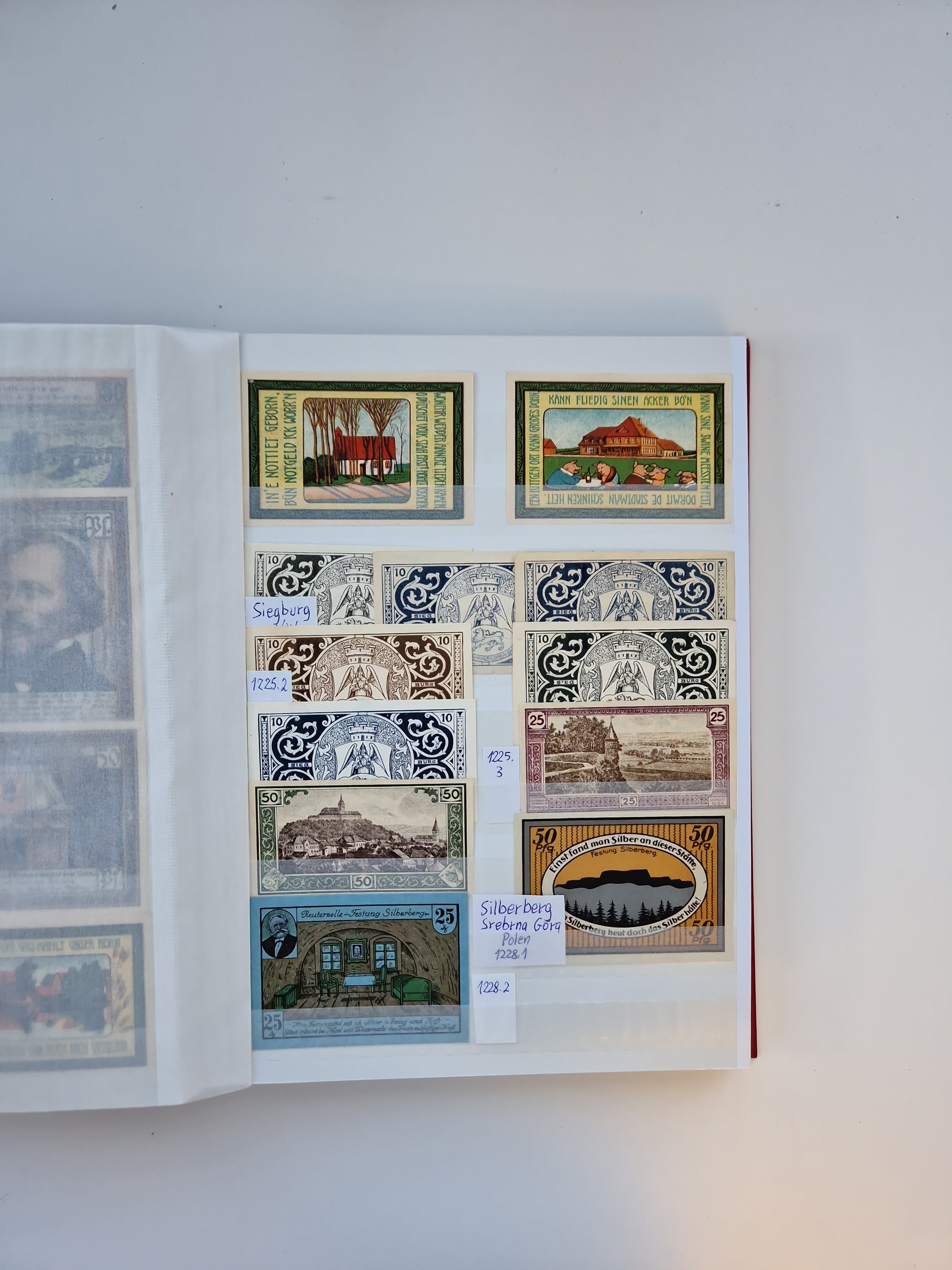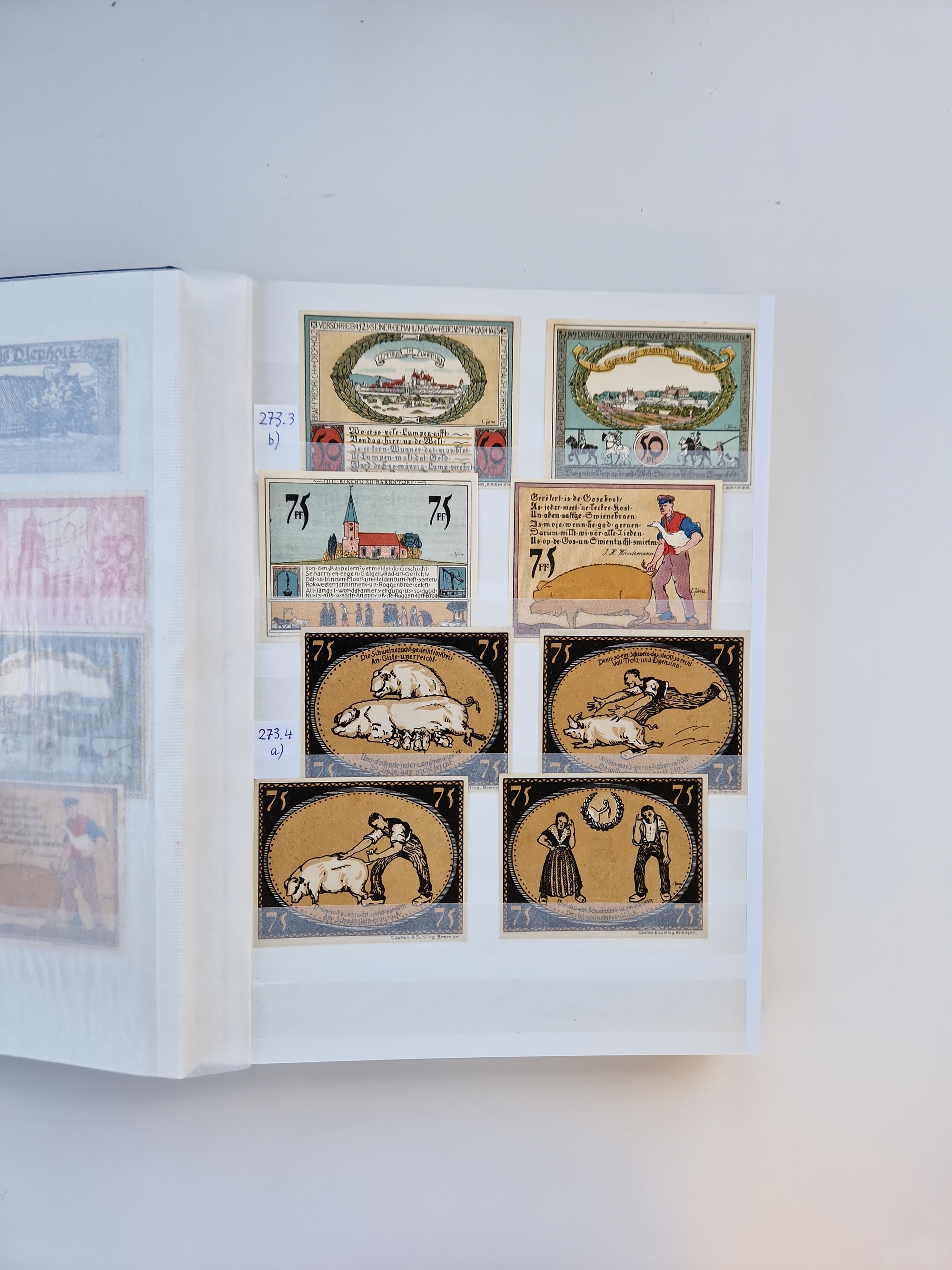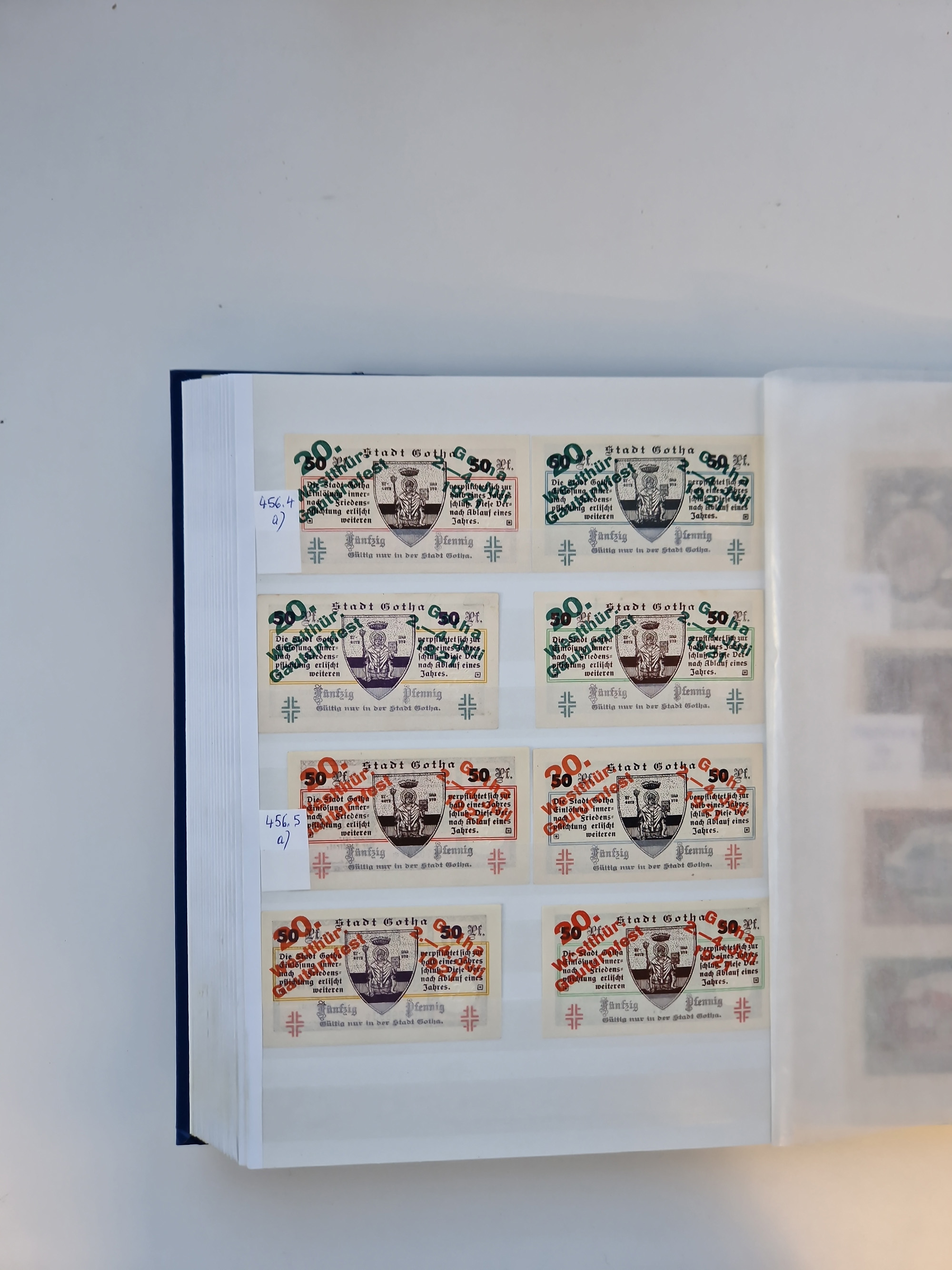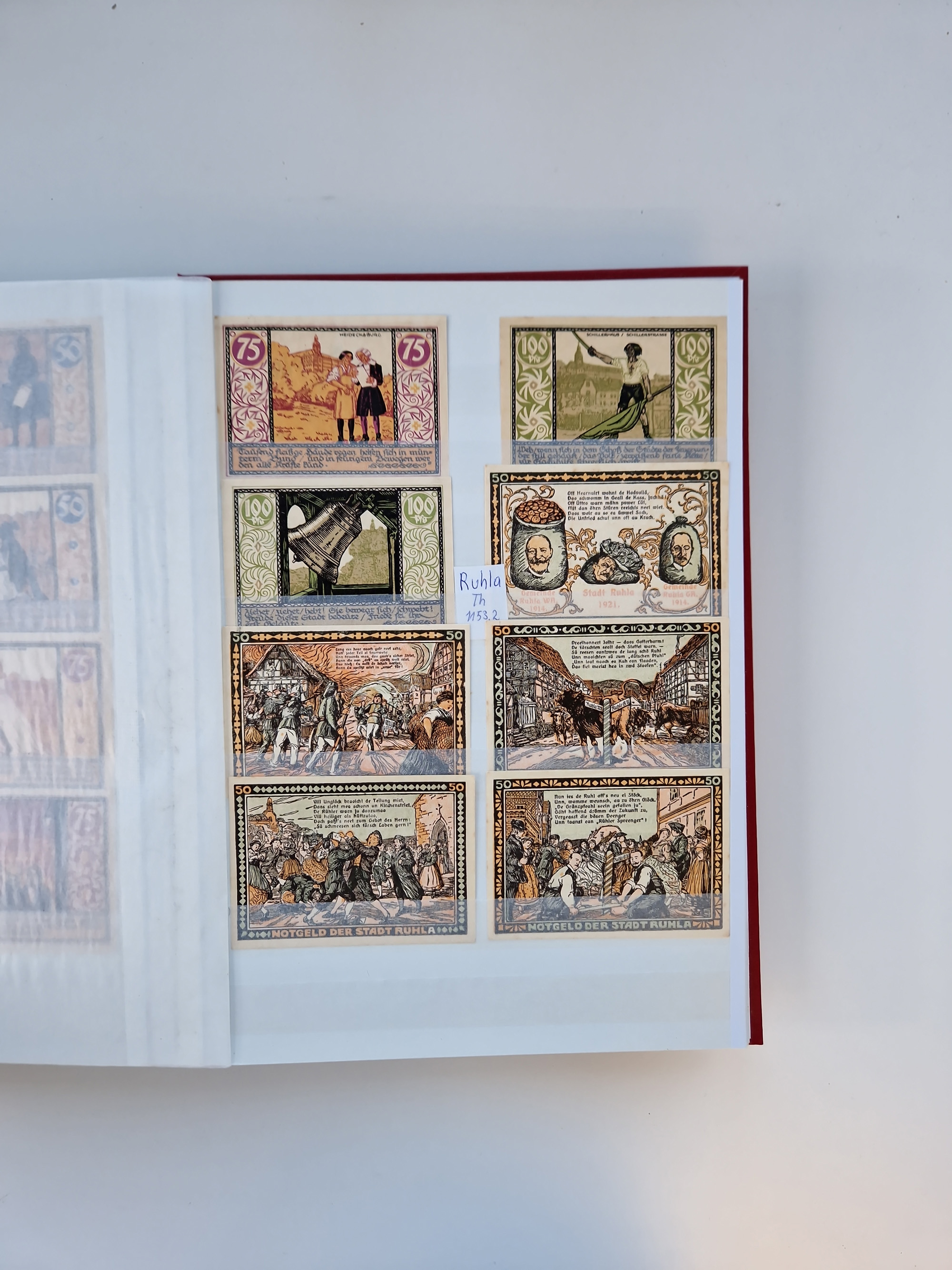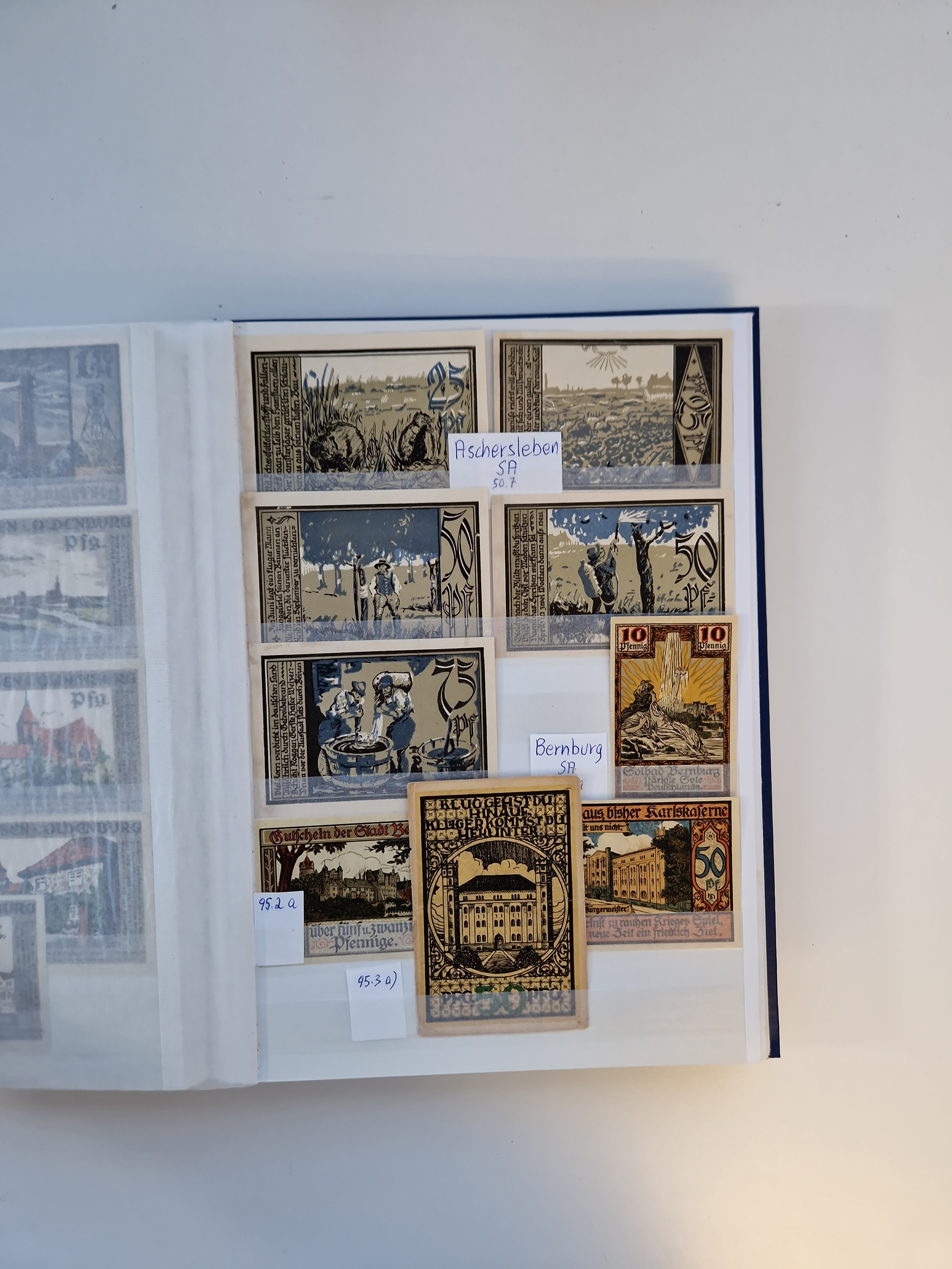 Notgeld-Serienscheine, saubere Sammlung in 16 meist dicken Steckalben, sauber nach Orten und Serien sortiert, überschlägig etwa 7/8000 Stück, dazu 4 Kataloge