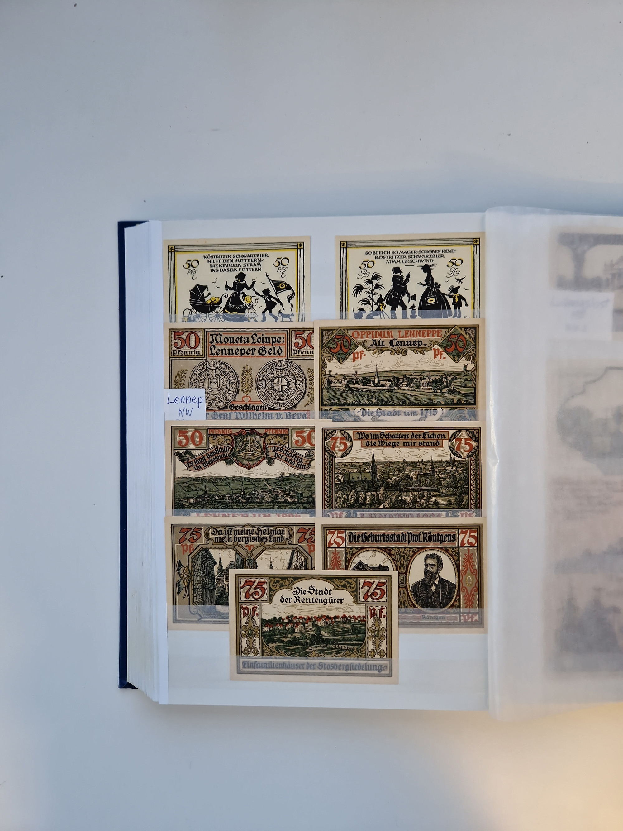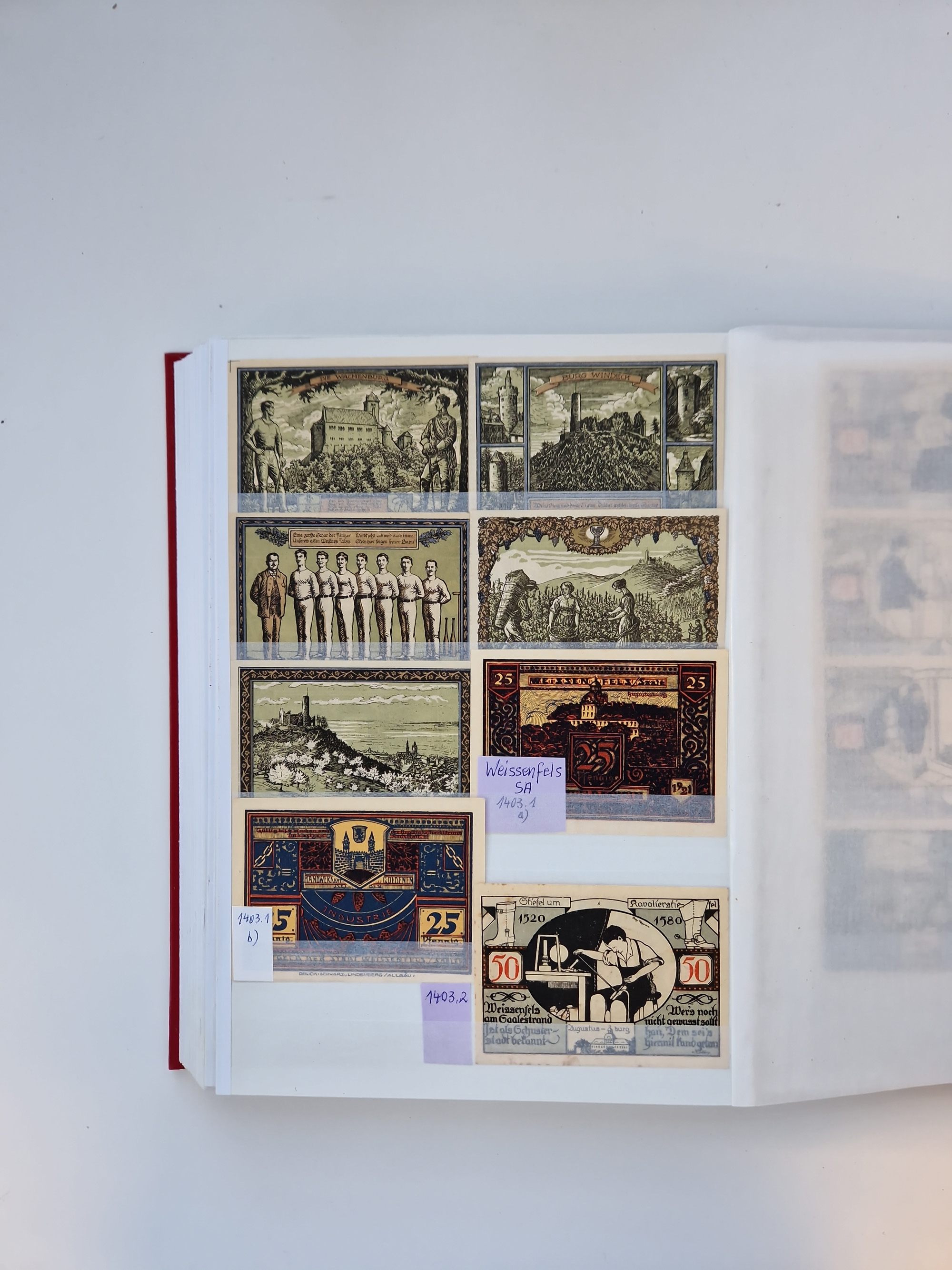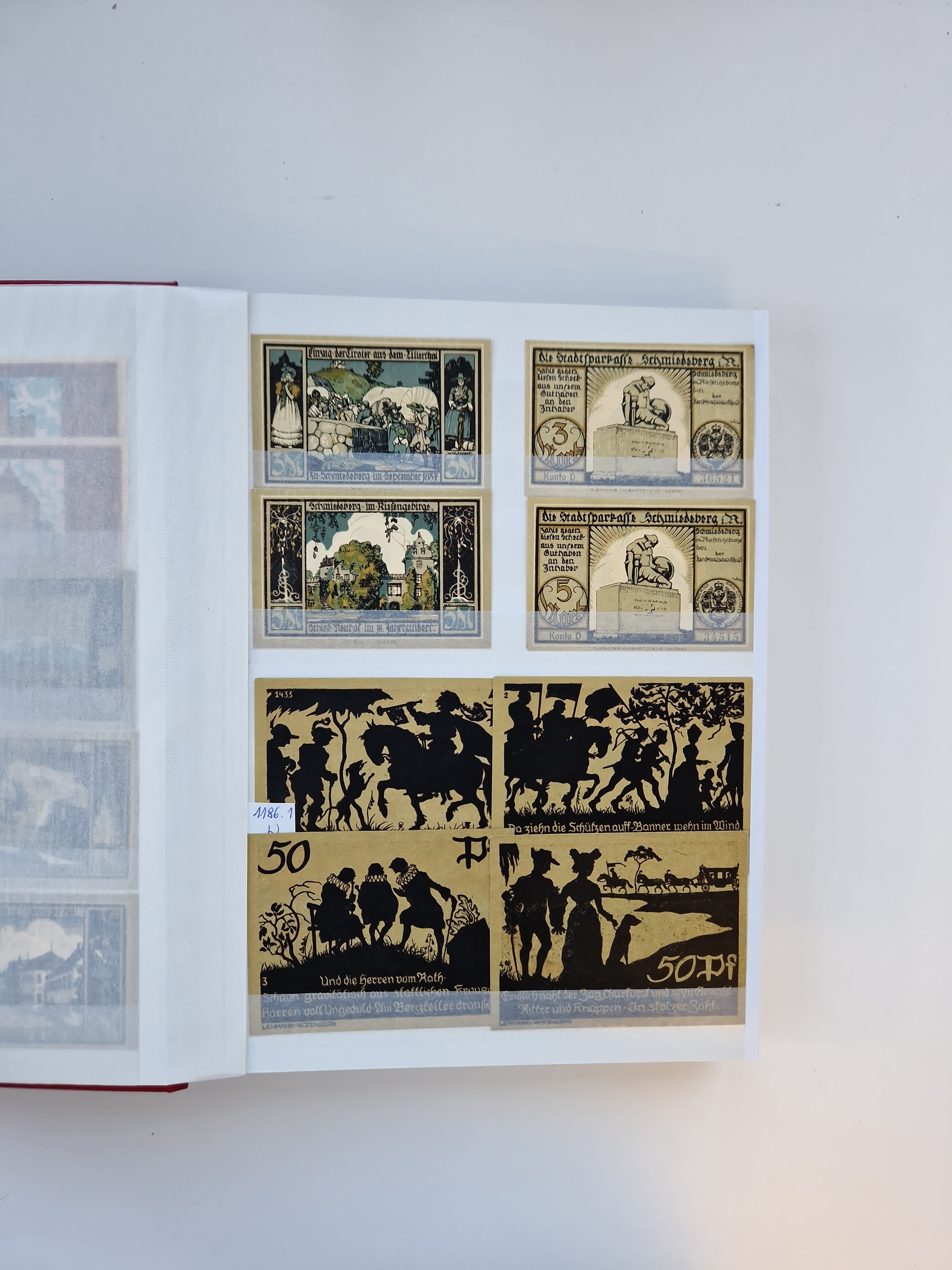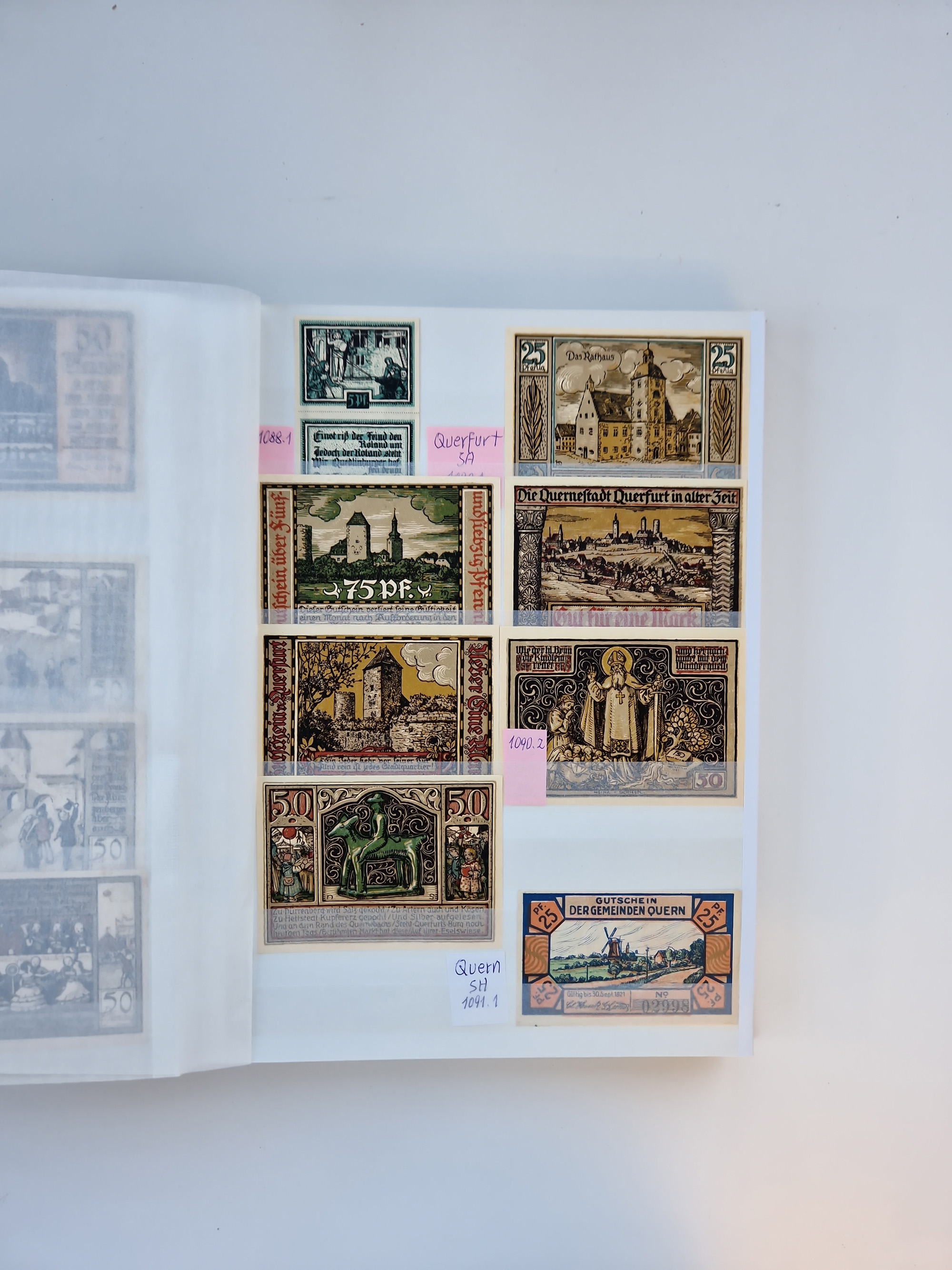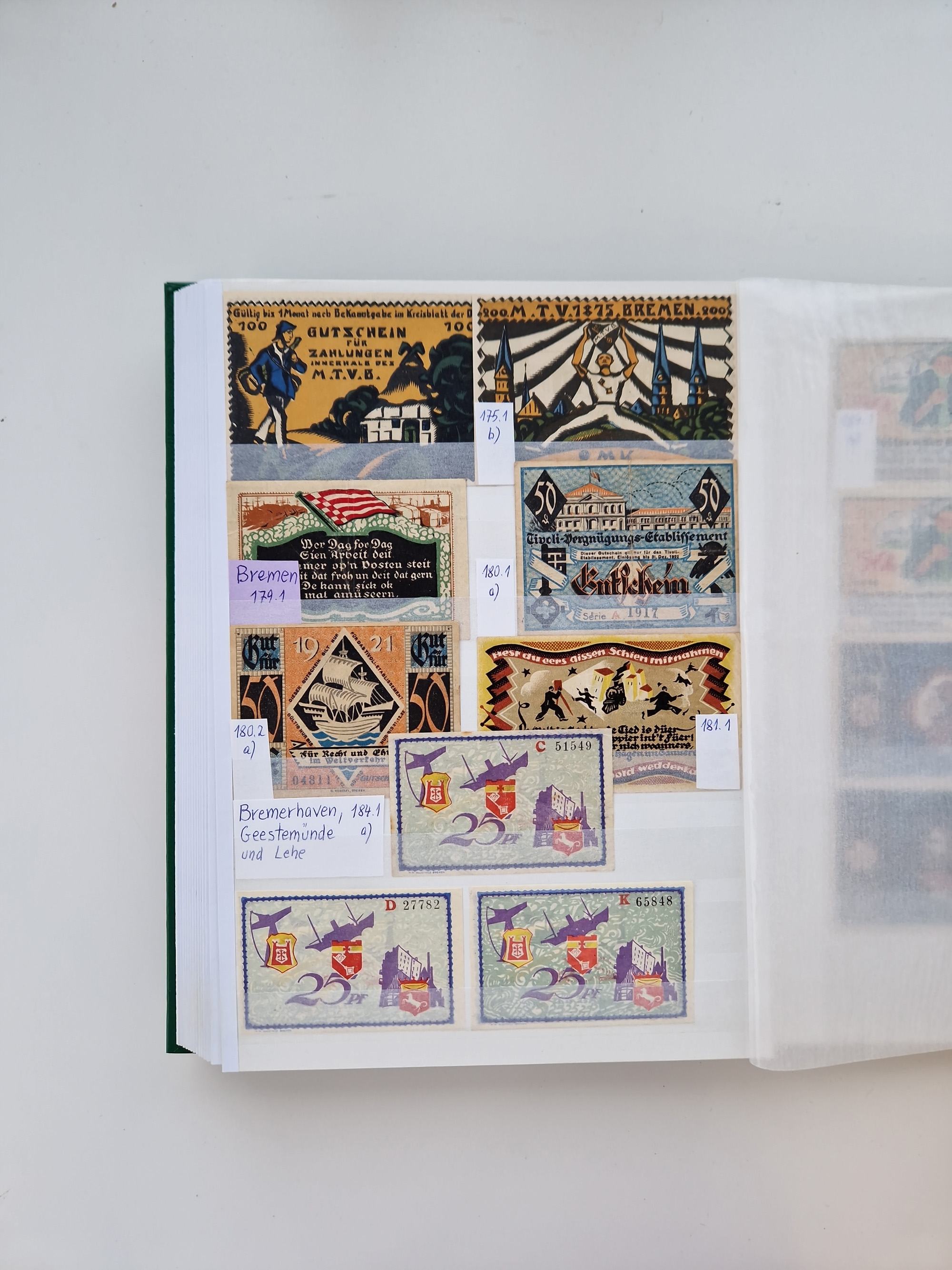 Notgeld-Serienscheine, saubere Sammlung in 16 meist dicken Steckalben, sauber nach Orten und Serien sortiert, überschlägig etwa 7/8000 Stück, dazu 4 Kataloge