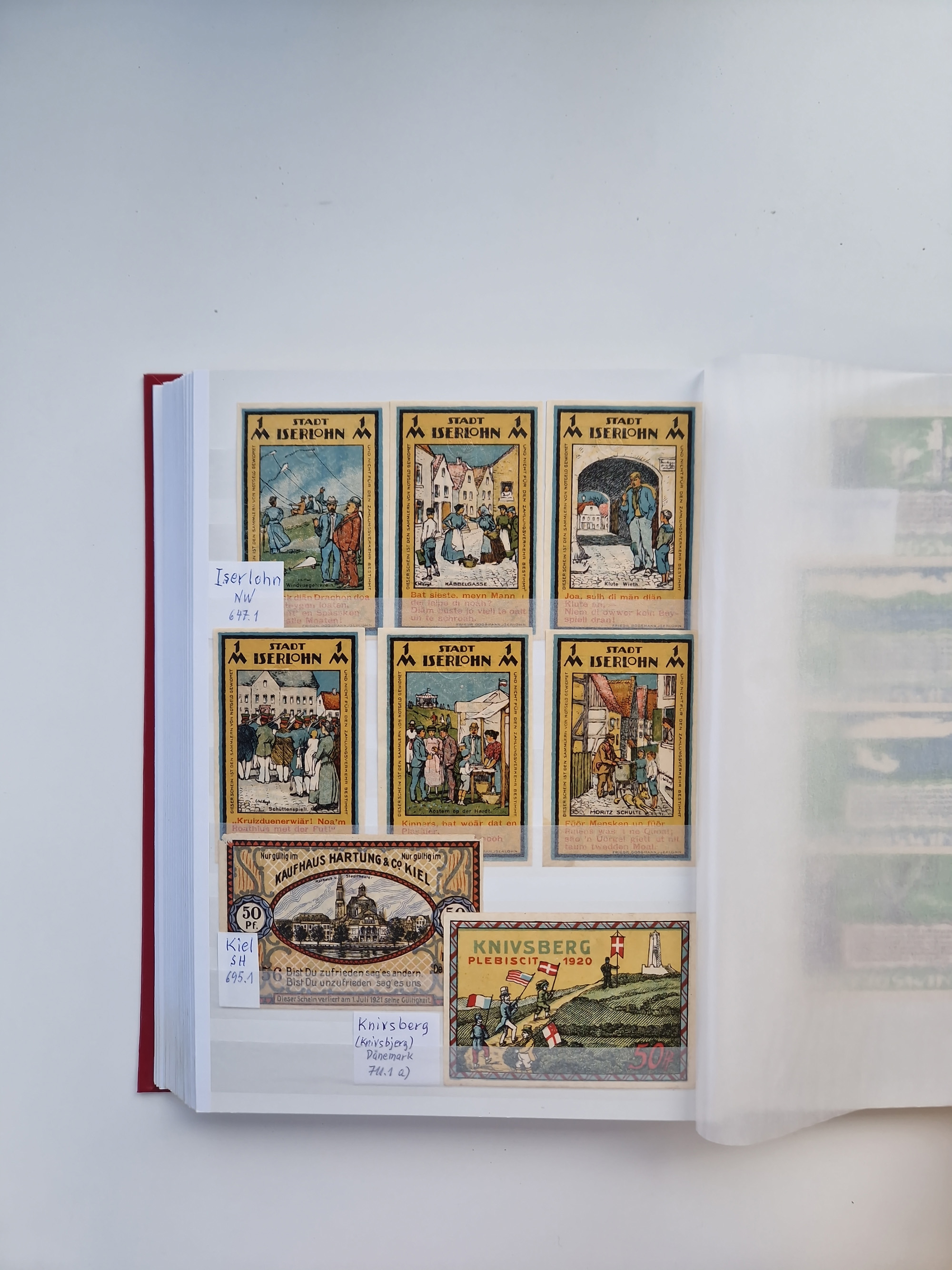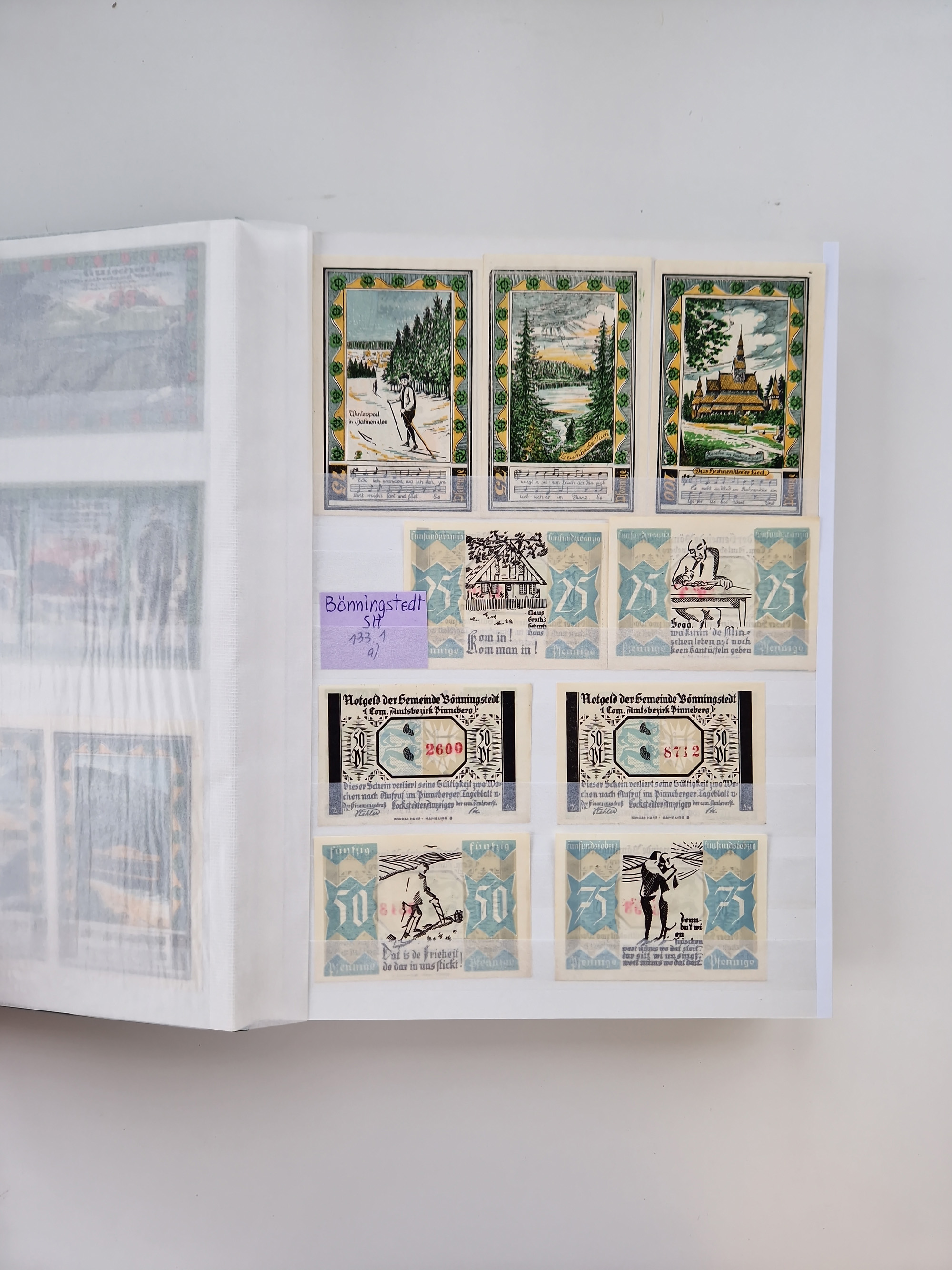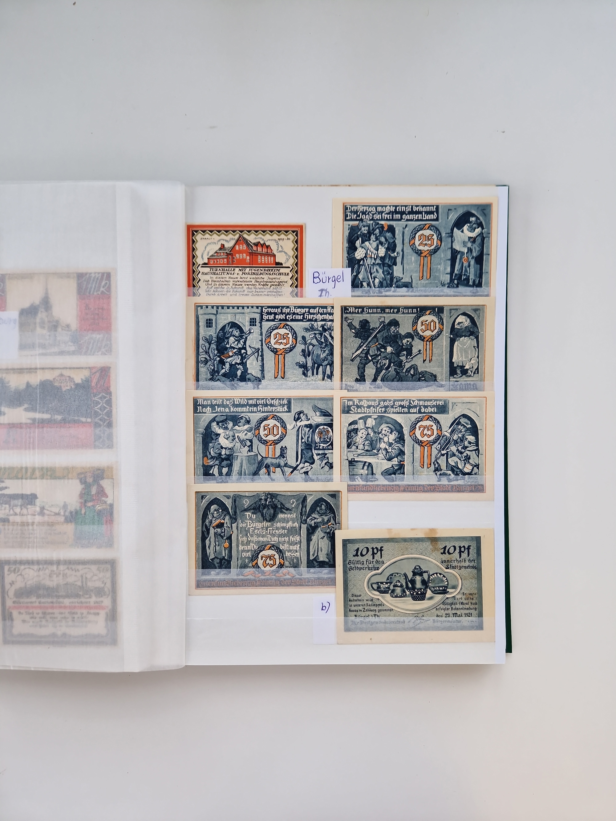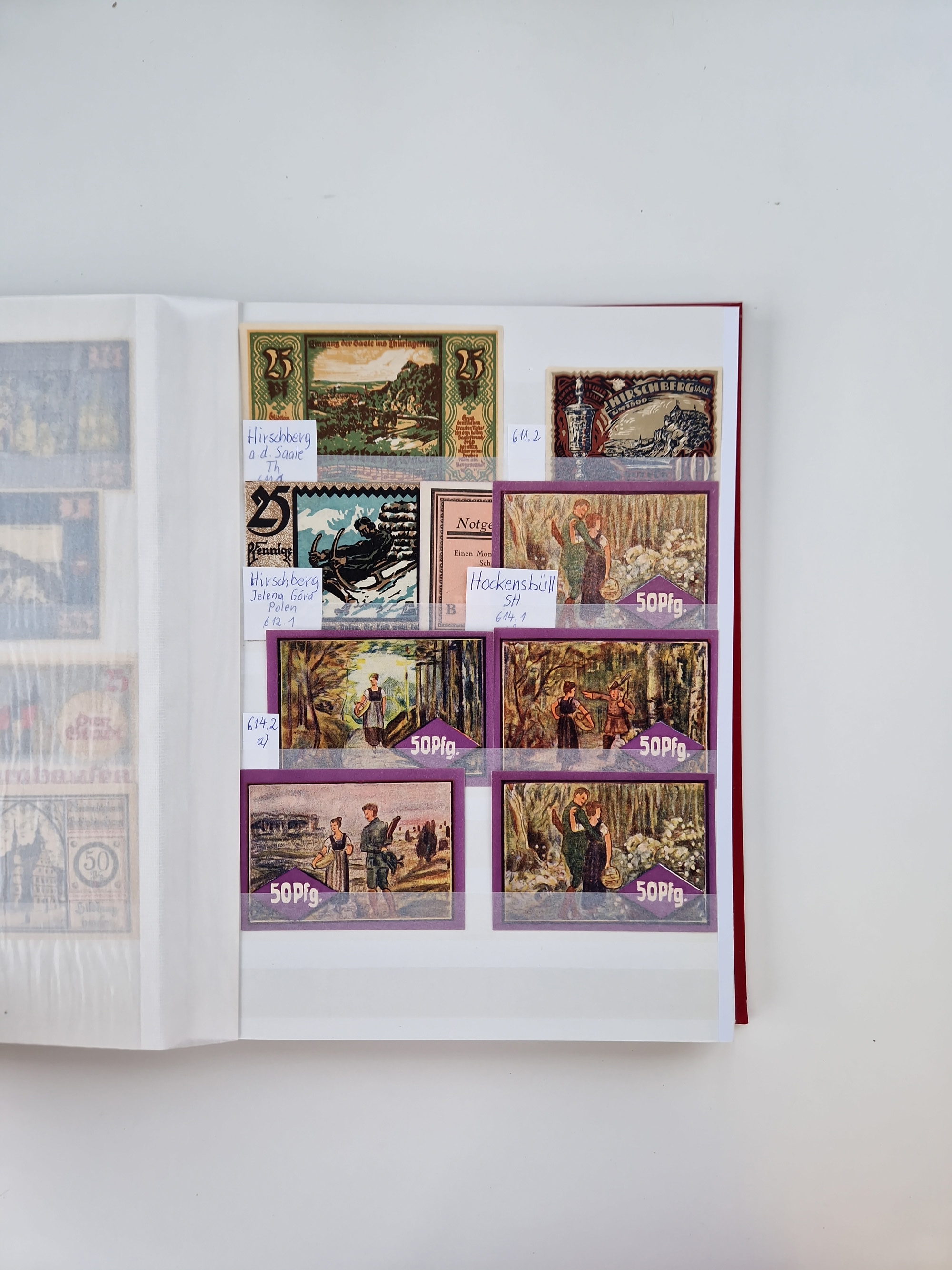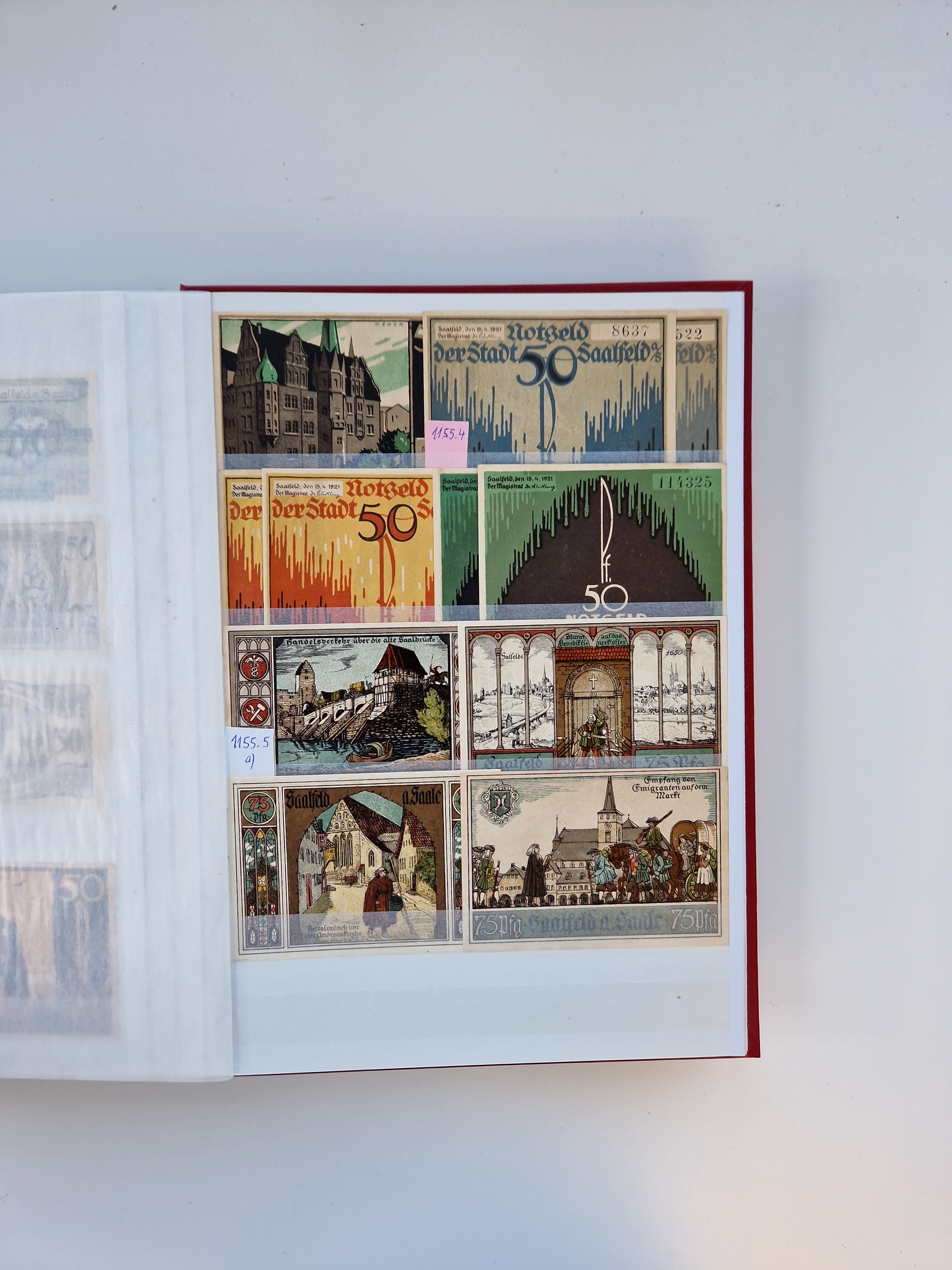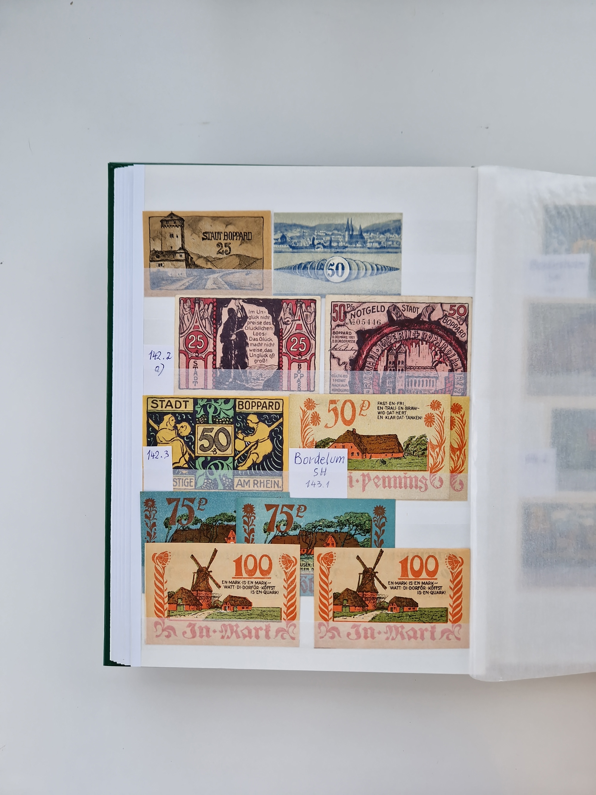 Notgeld-Serienscheine, saubere Sammlung in 16 meist dicken Steckalben, sauber nach Orten und Serien sortiert, überschlägig etwa 7/8000 Stück, dazu 4 Kataloge