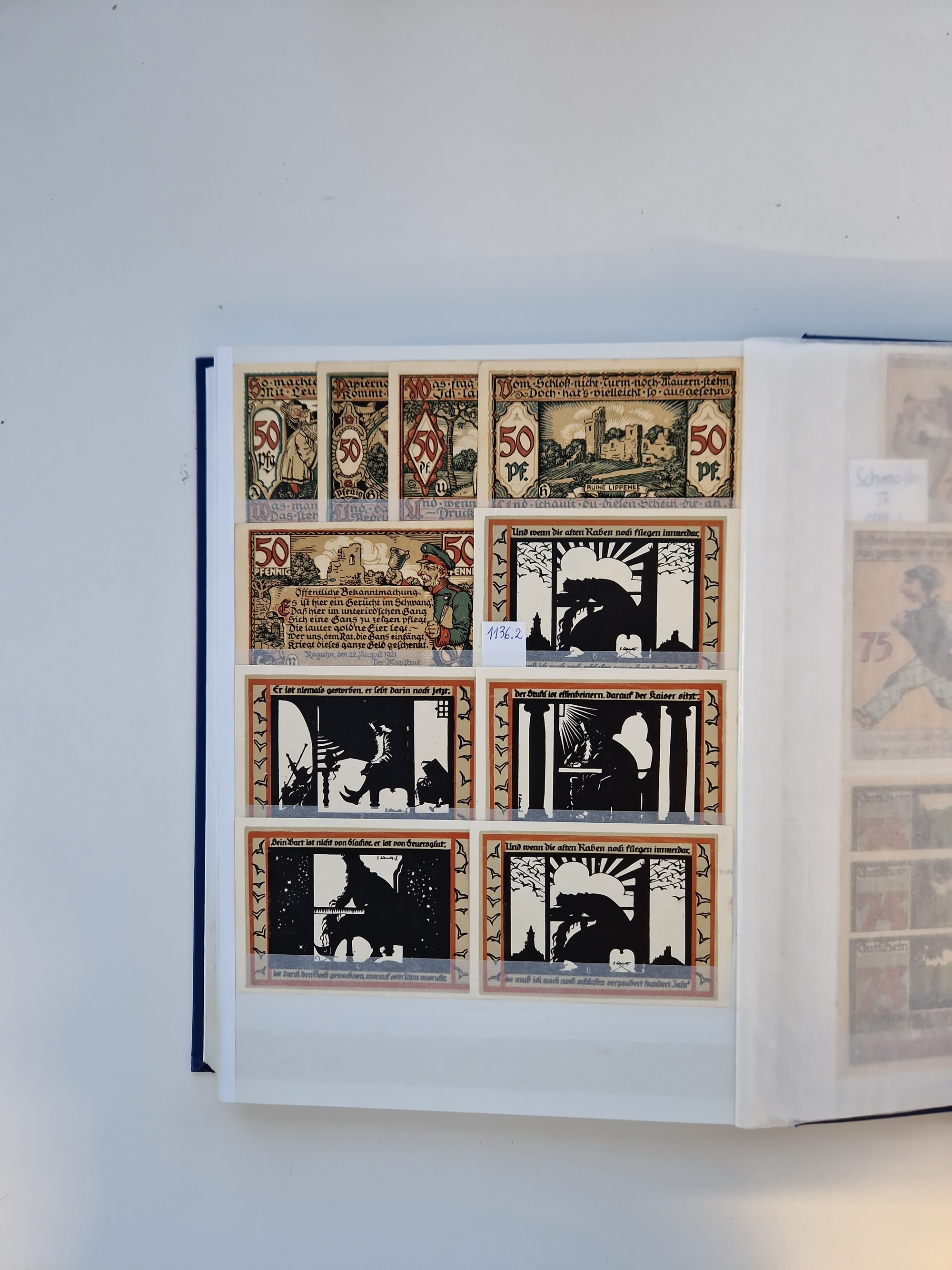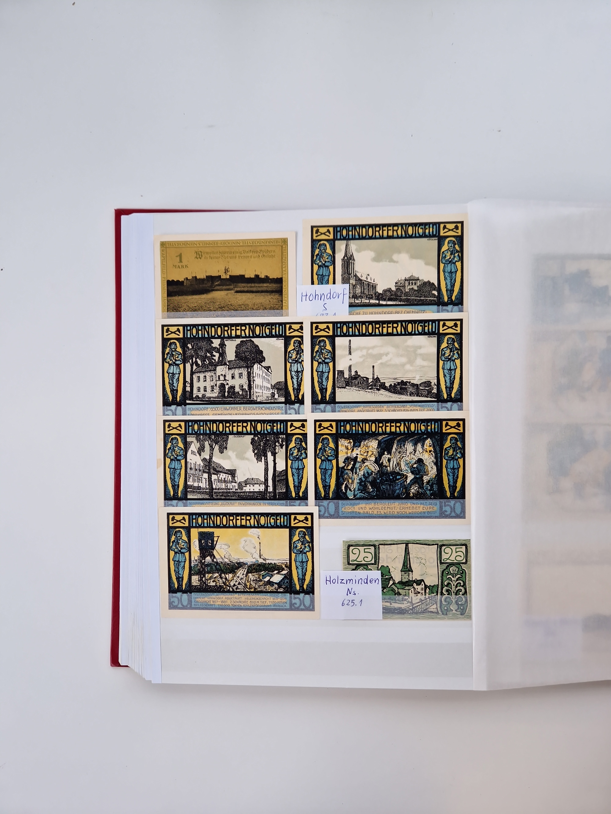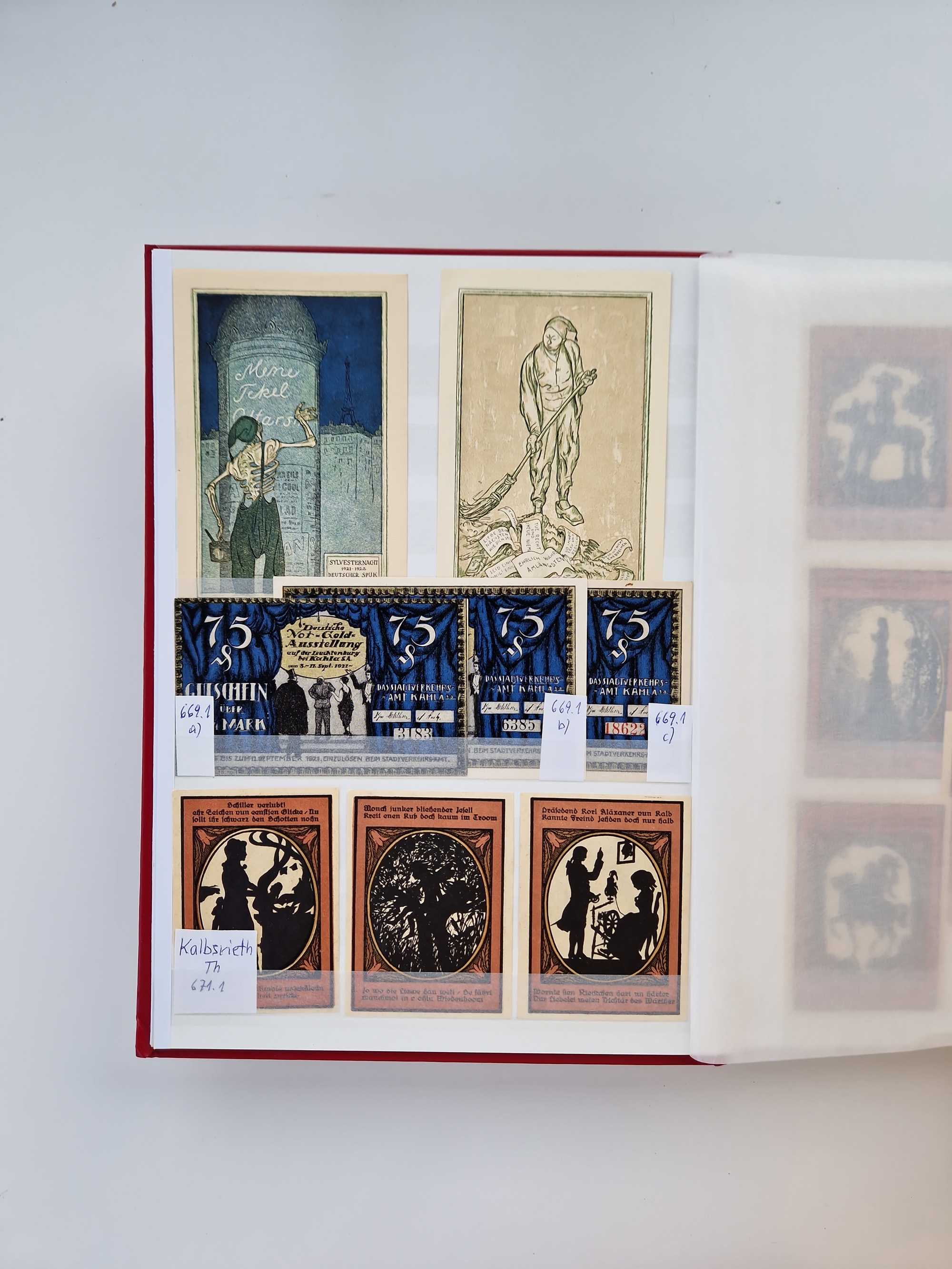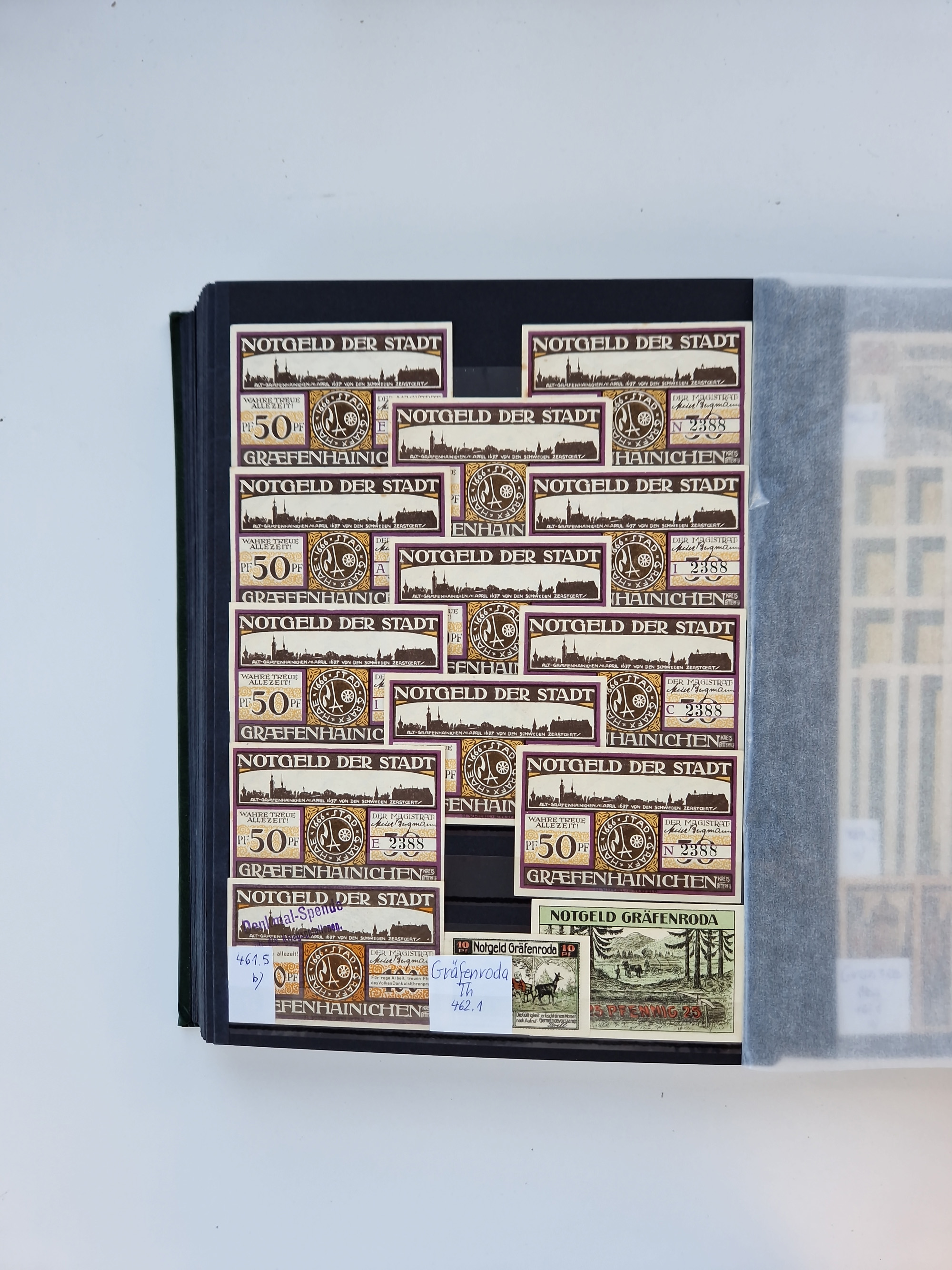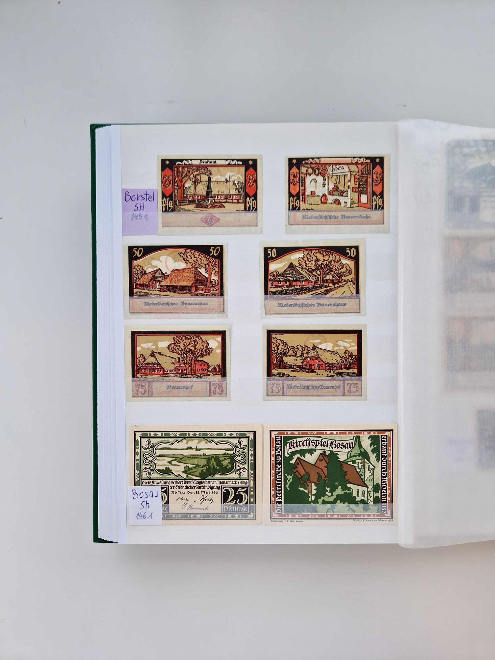 Notgeld-Serienscheine, saubere Sammlung in 16 meist dicken Steckalben, sauber nach Orten und Serien sortiert, überschlägig etwa 7/8000 Stück, dazu 4 Kataloge