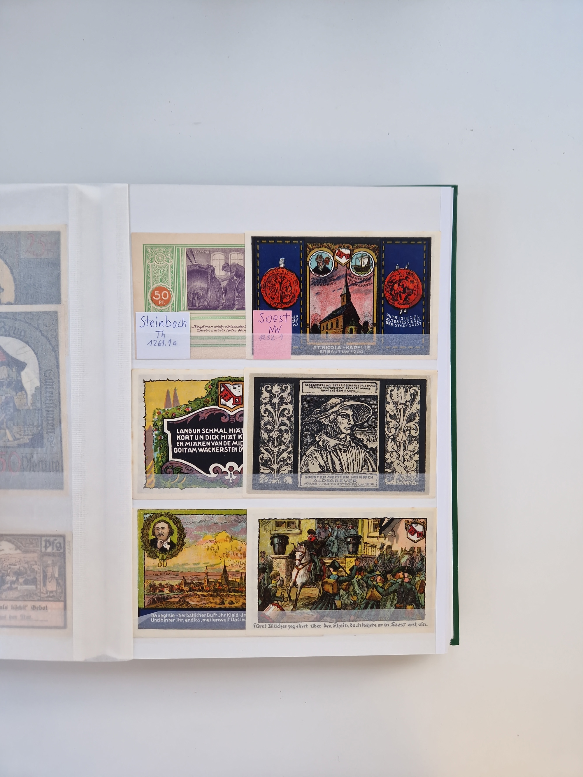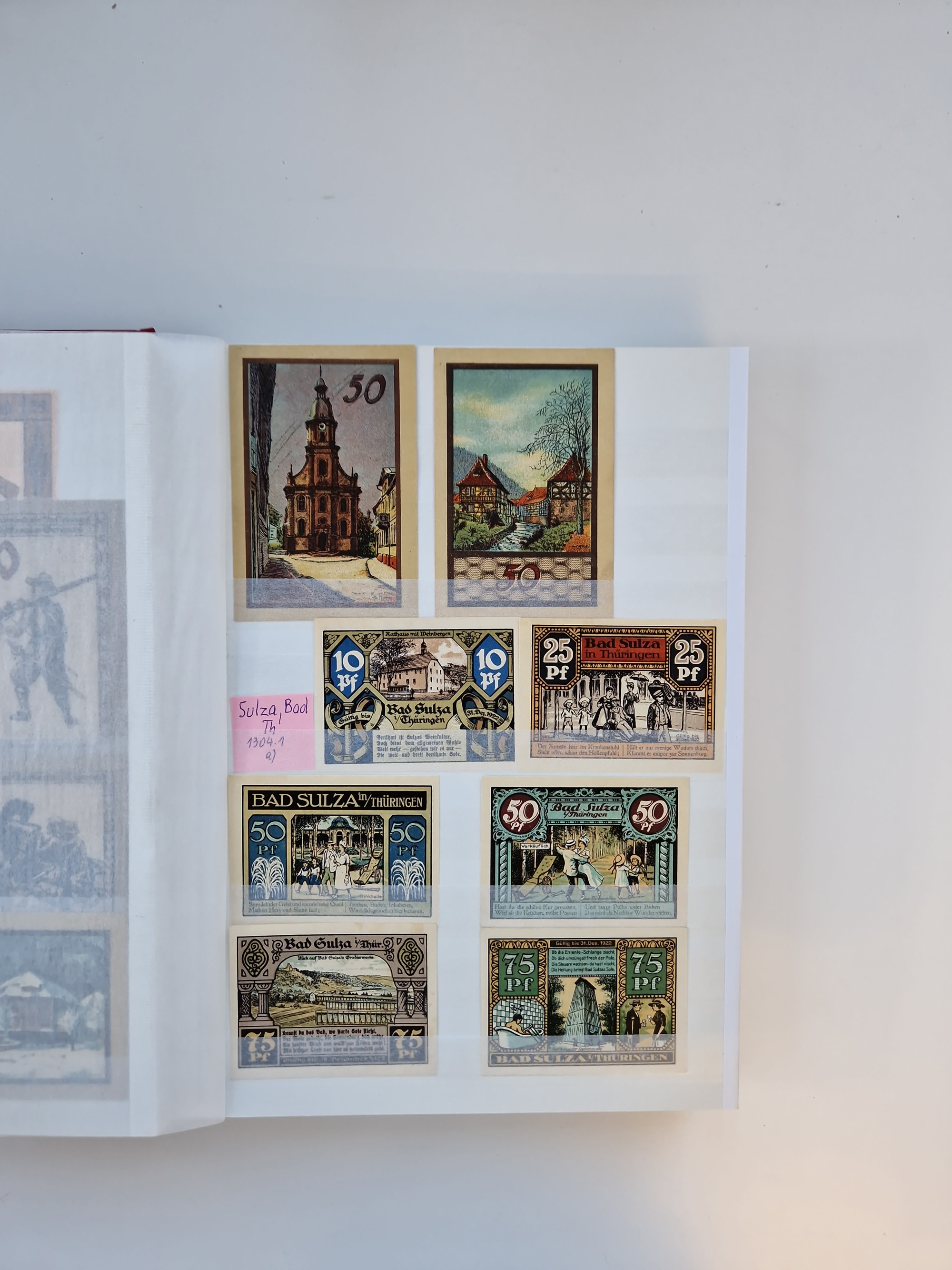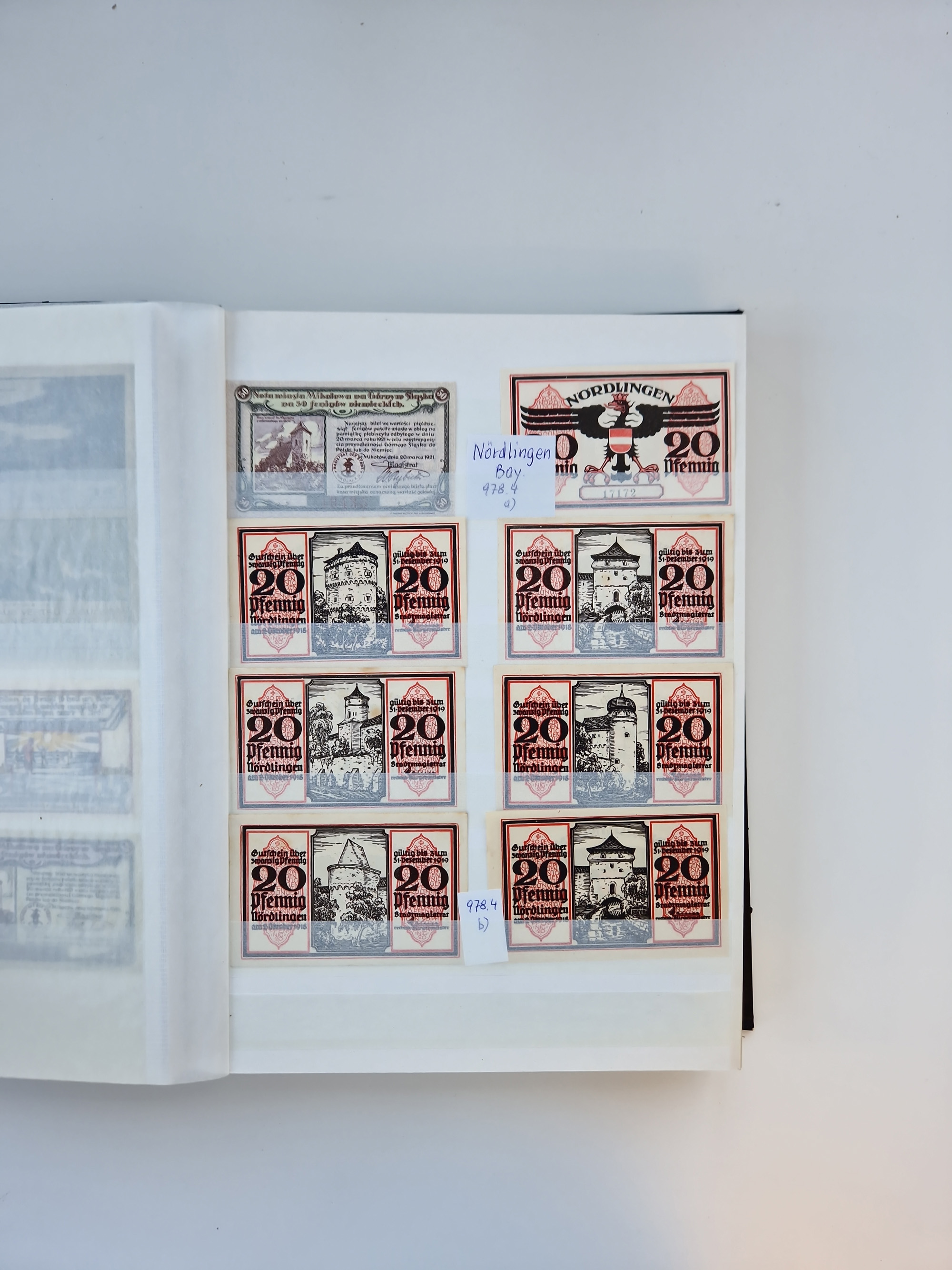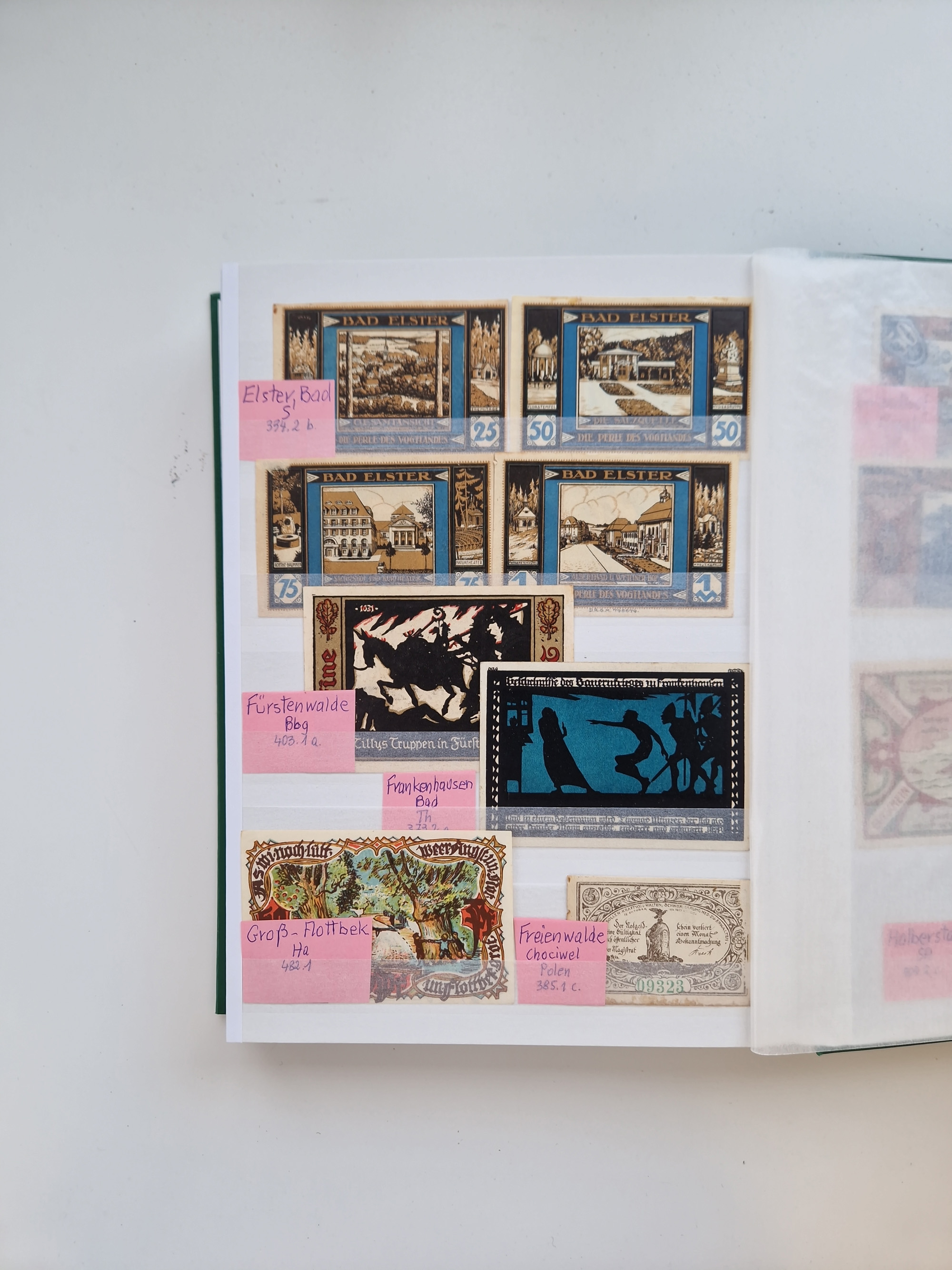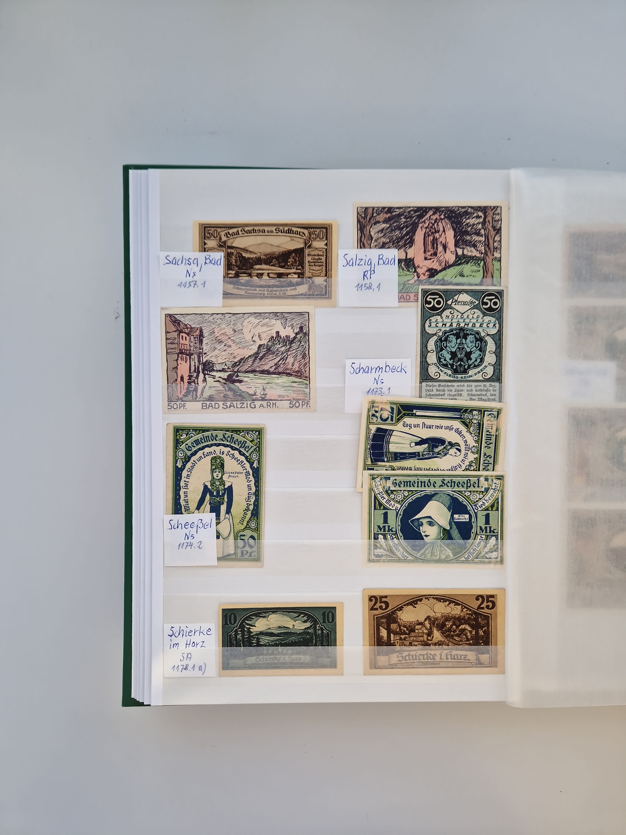 Notgeld-Serienscheine, saubere Sammlung in 16 meist dicken Steckalben, sauber nach Orten und Serien sortiert, überschlägig etwa 7/8000 Stück, dazu 4 Kataloge