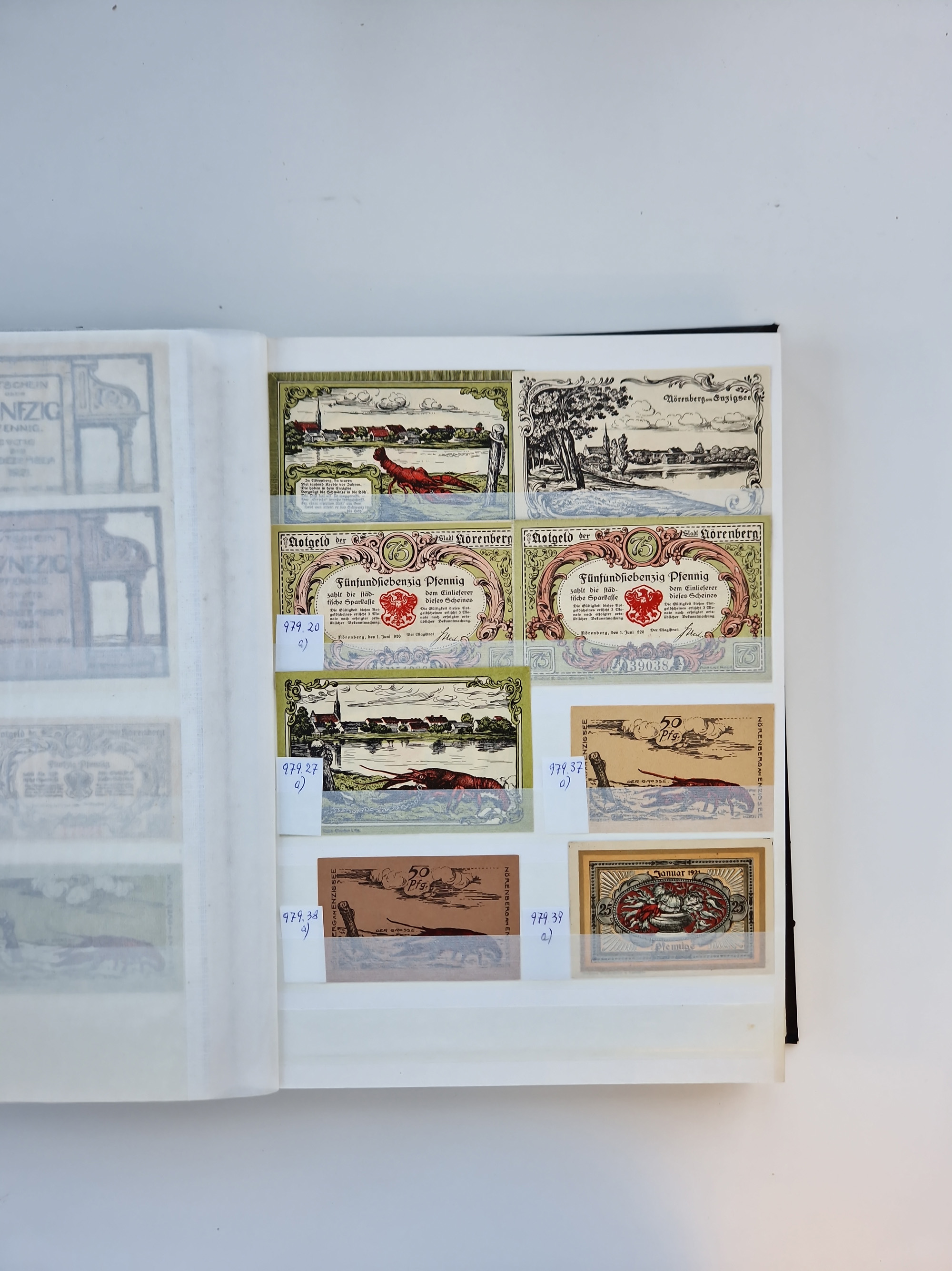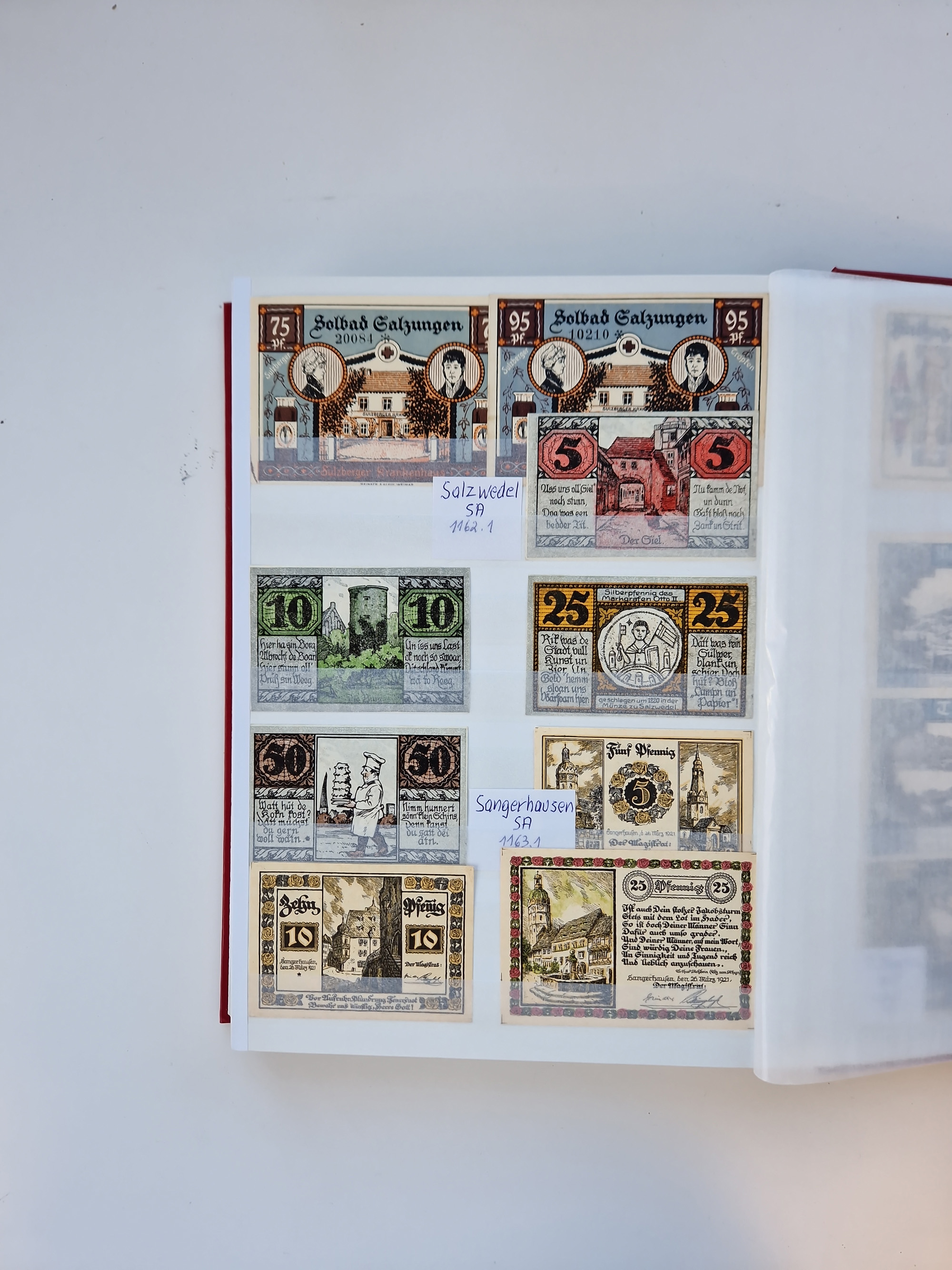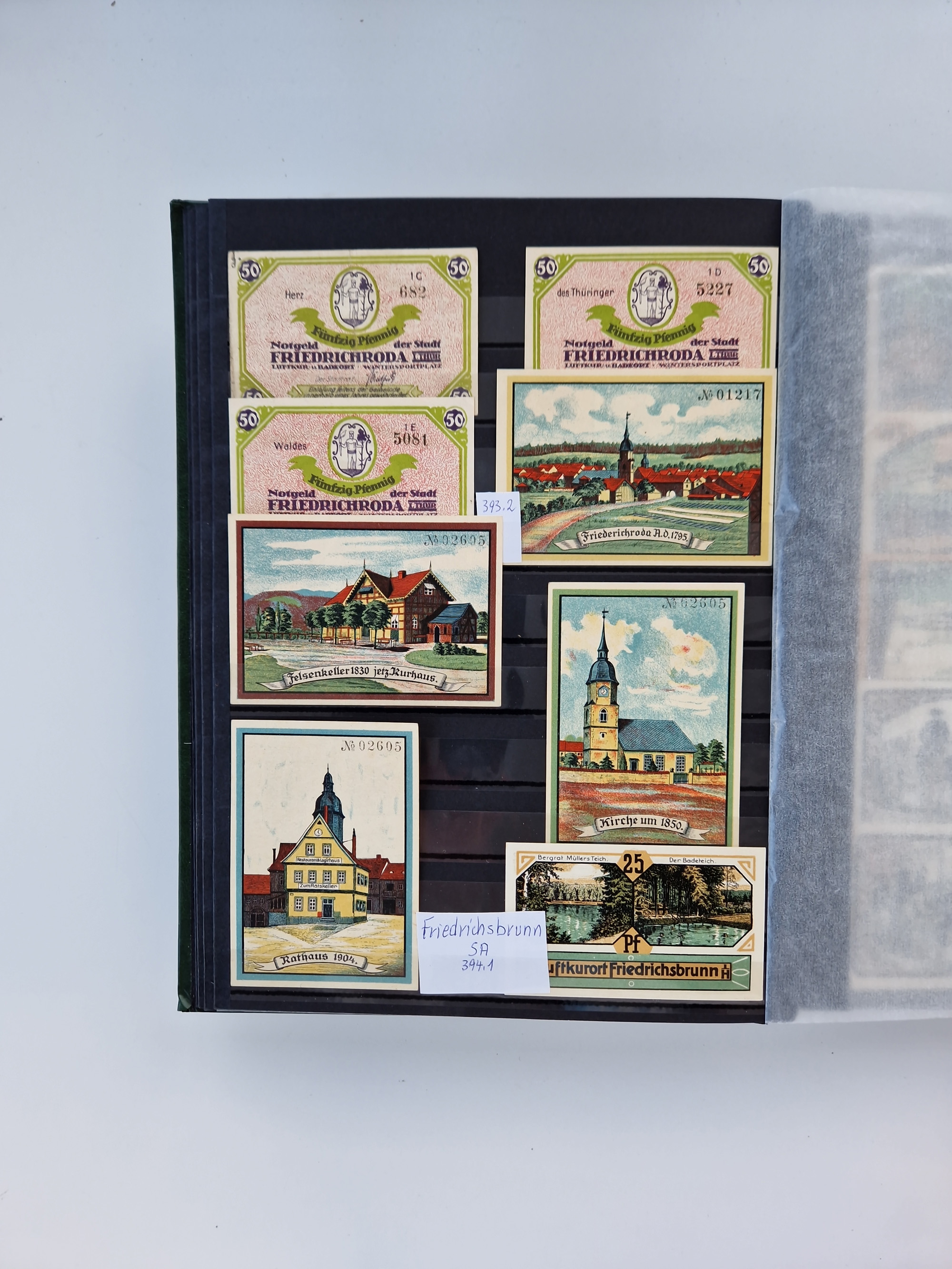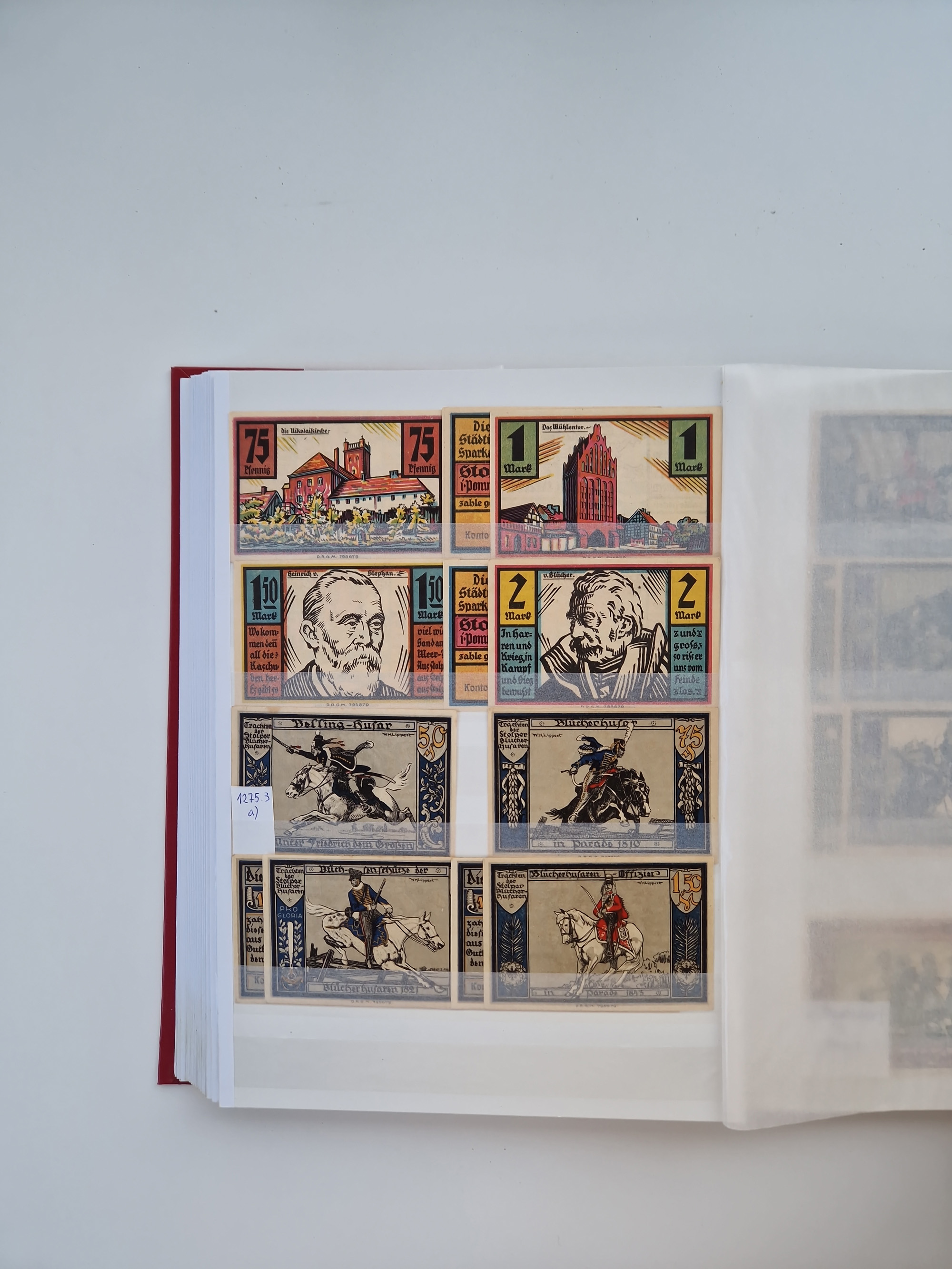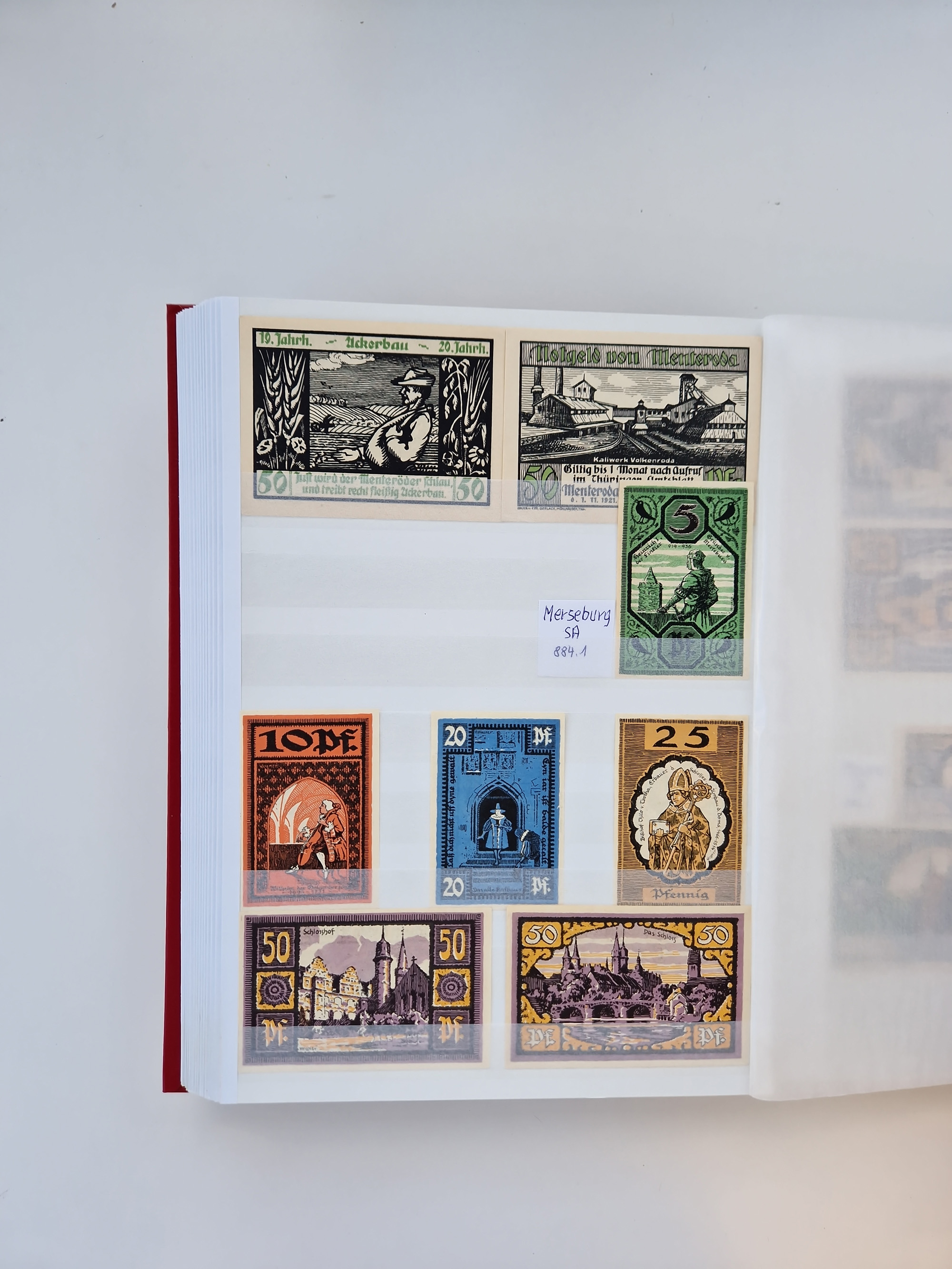 Notgeld-Serienscheine, saubere Sammlung in 16 meist dicken Steckalben, sauber nach Orten und Serien sortiert, überschlägig etwa 7/8000 Stück, dazu 4 Kataloge