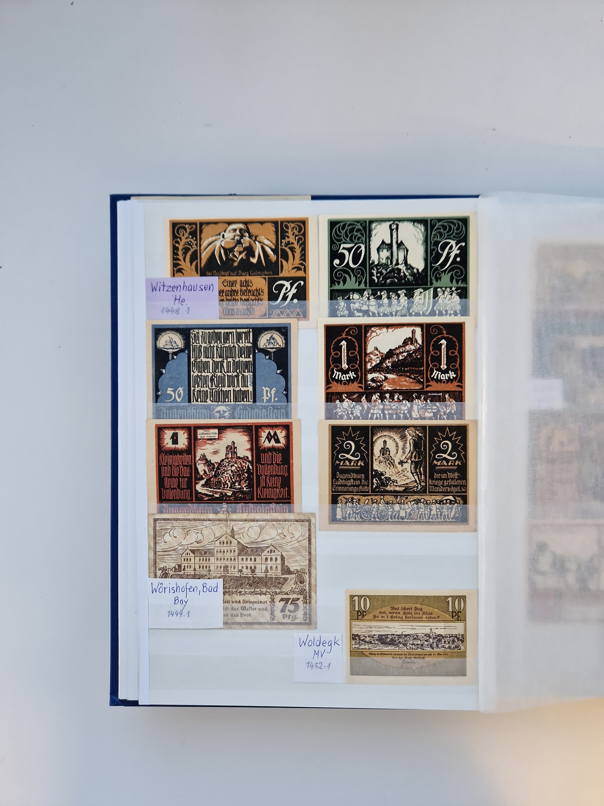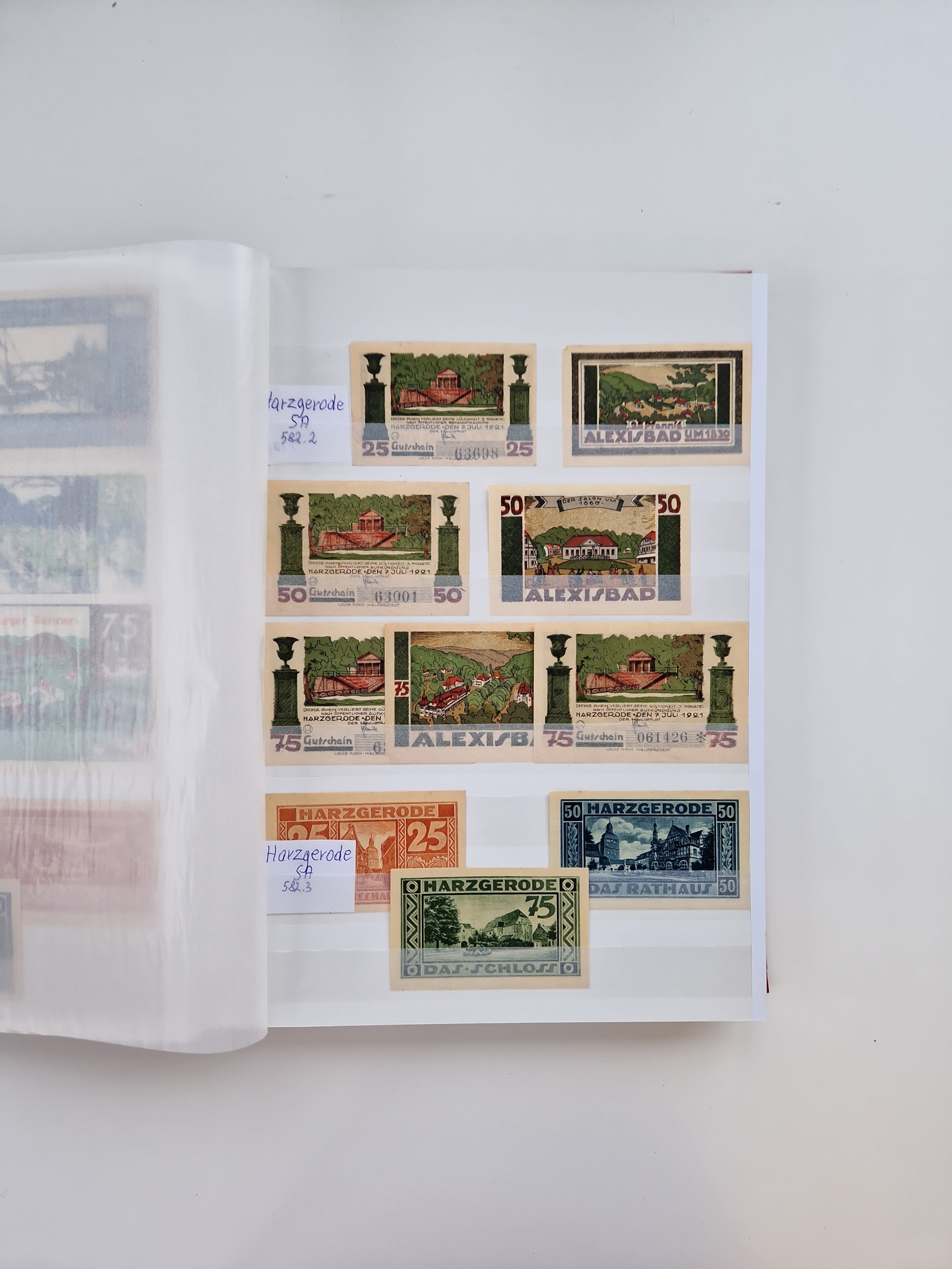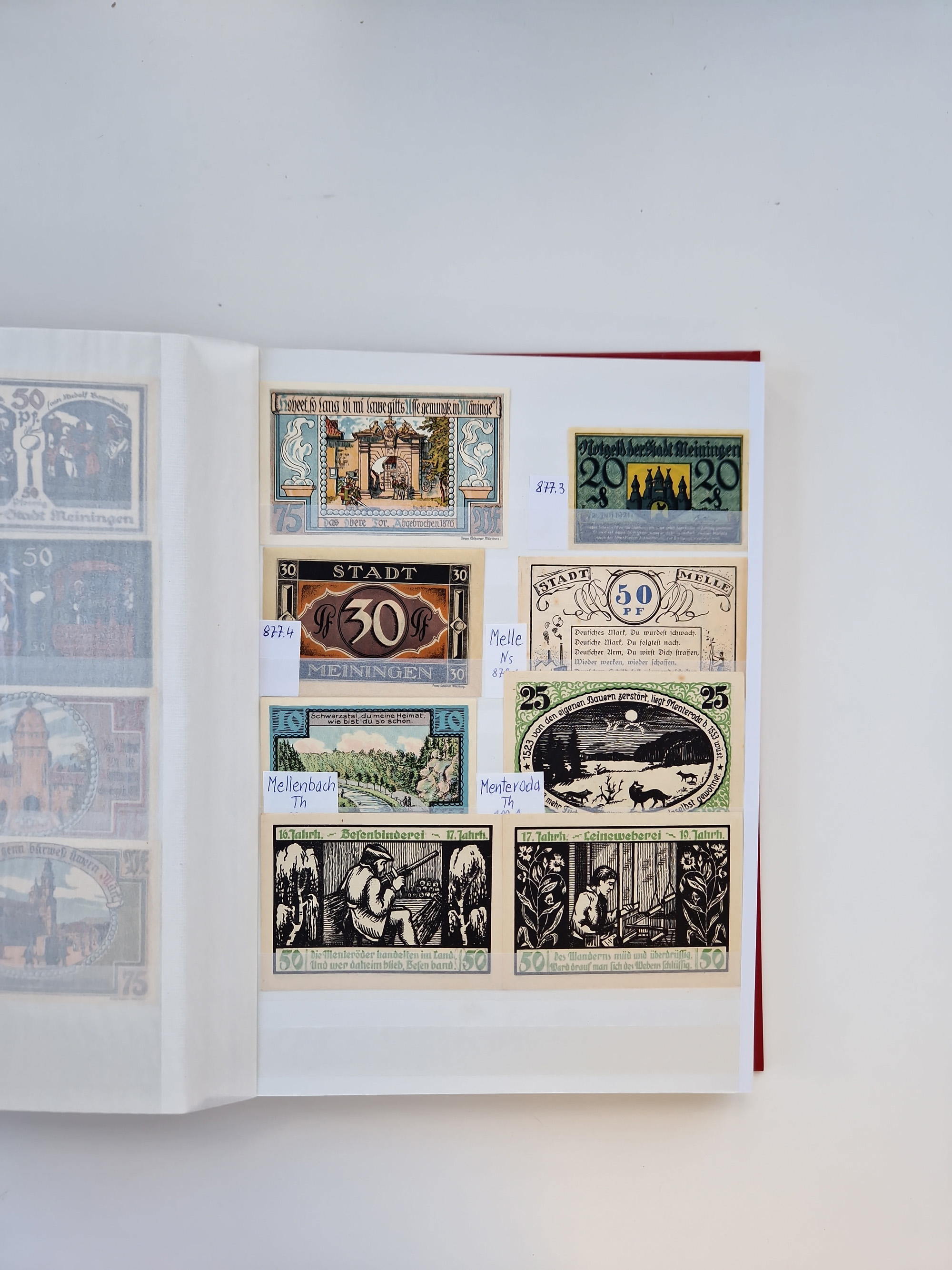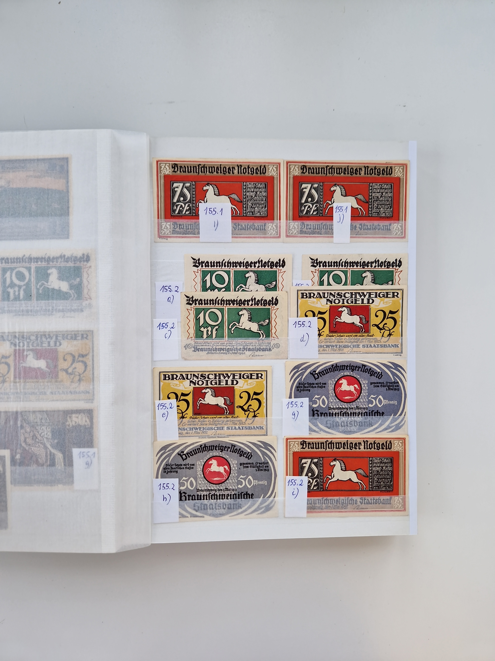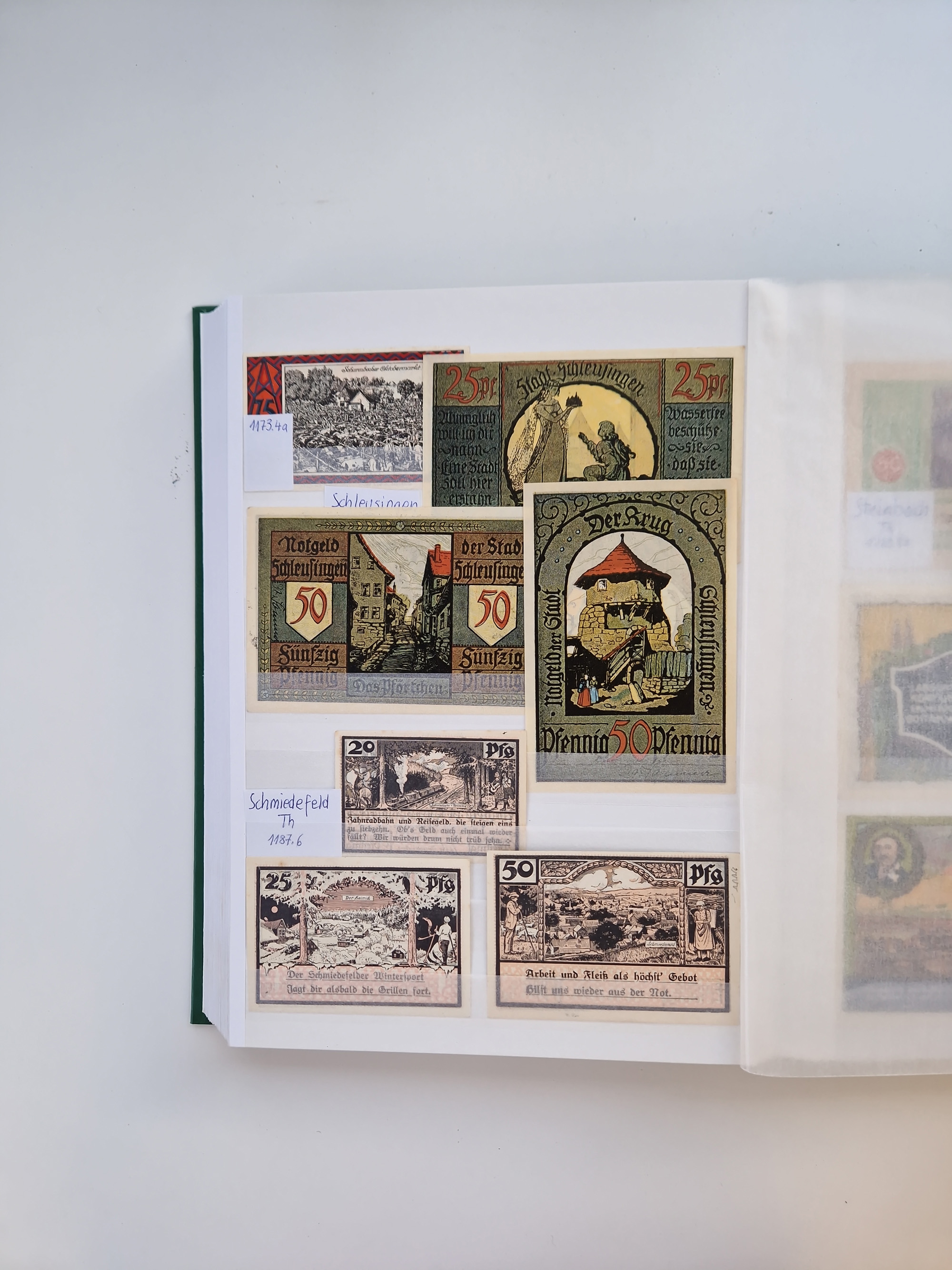 Notgeld-Serienscheine, saubere Sammlung in 16 meist dicken Steckalben, sauber nach Orten und Serien sortiert, überschlägig etwa 7/8000 Stück, dazu 4 Kataloge