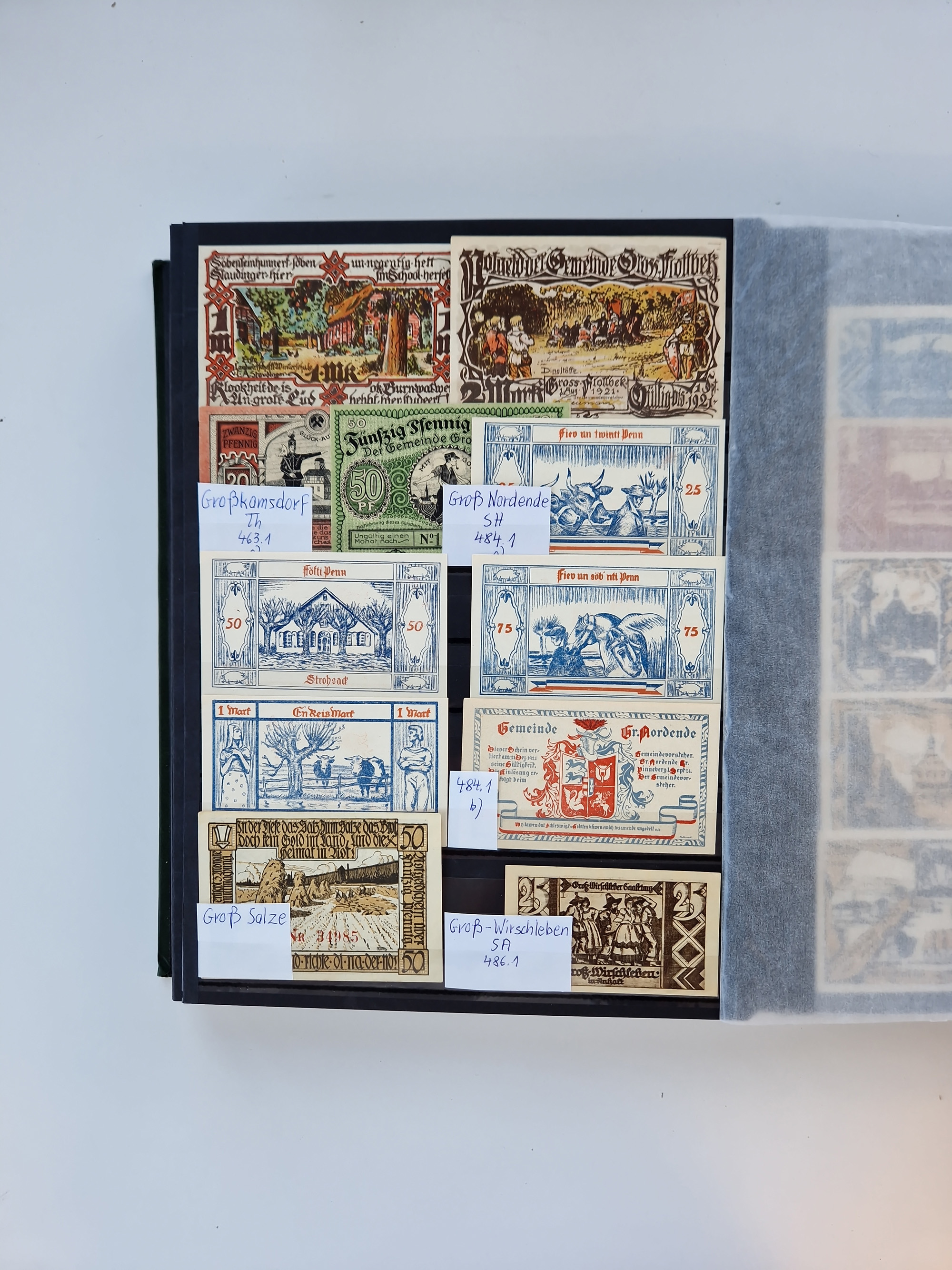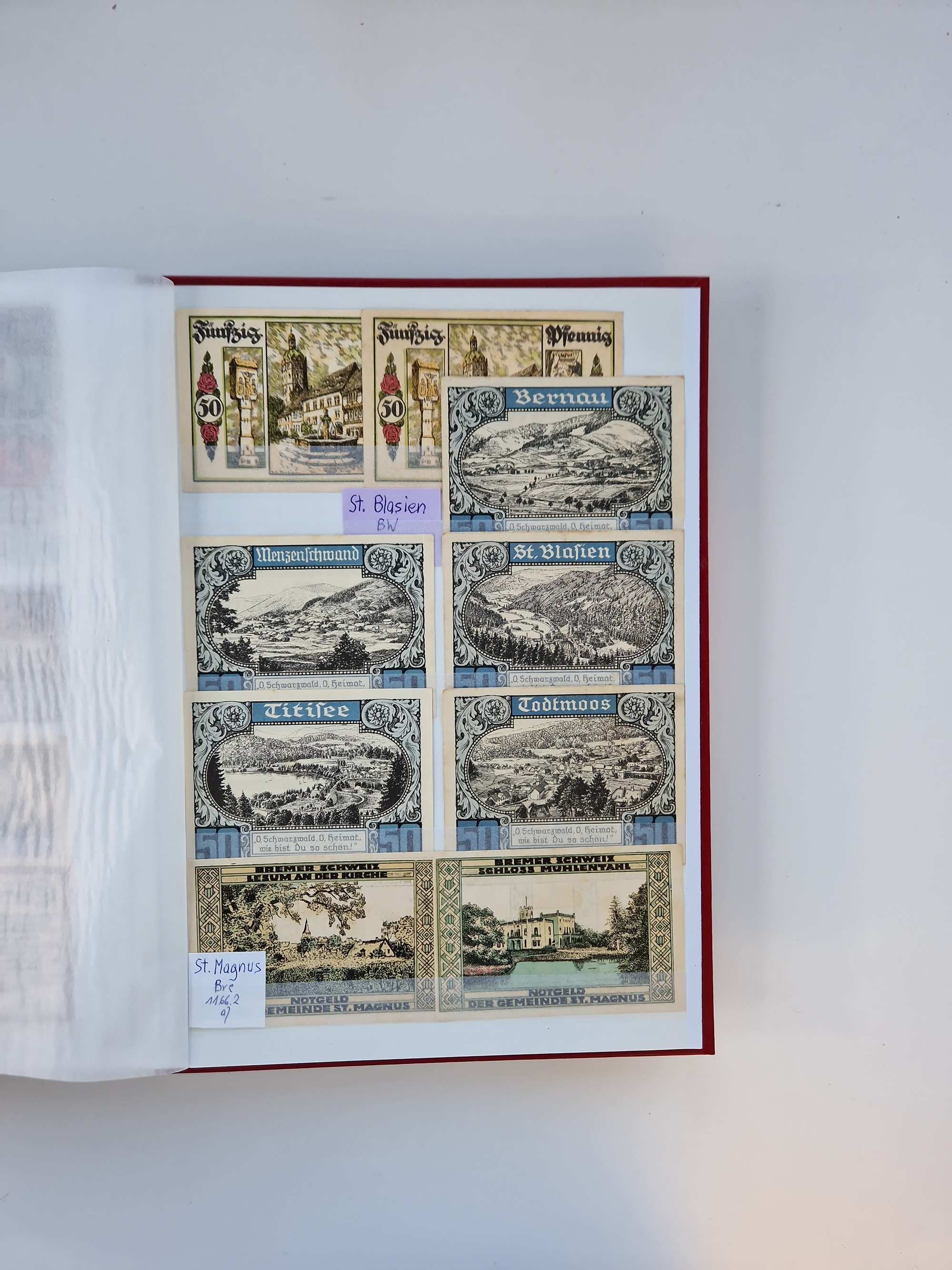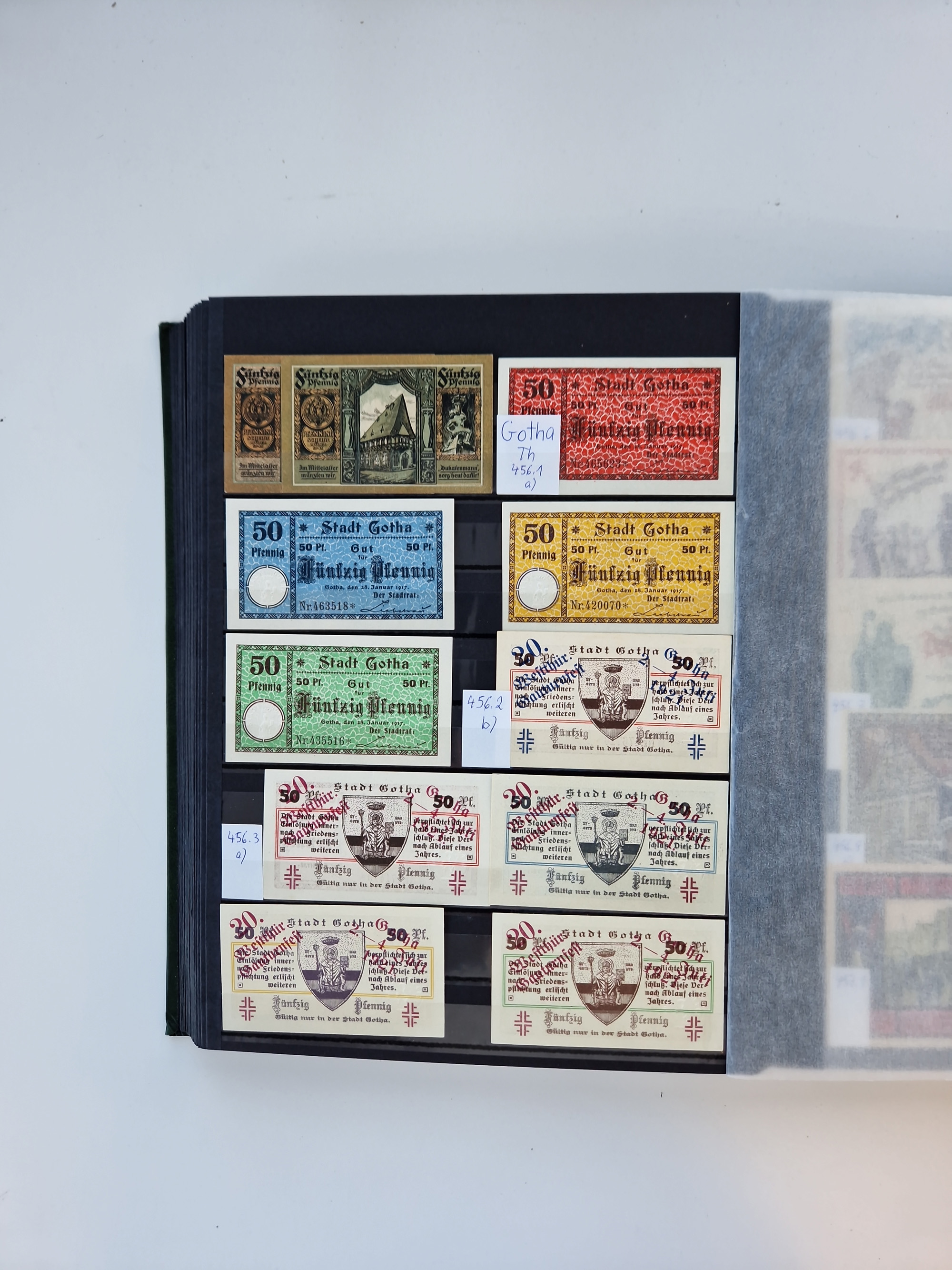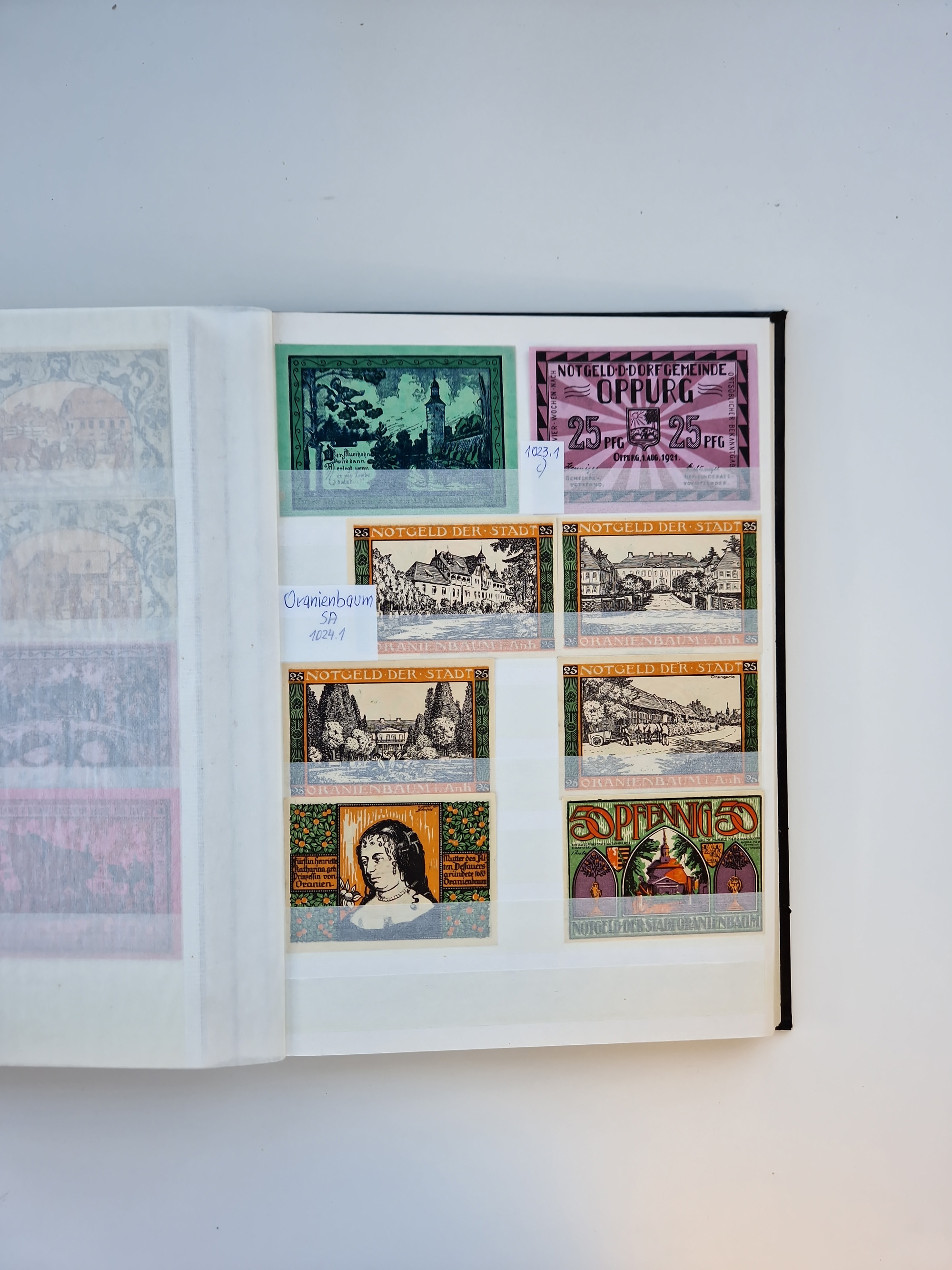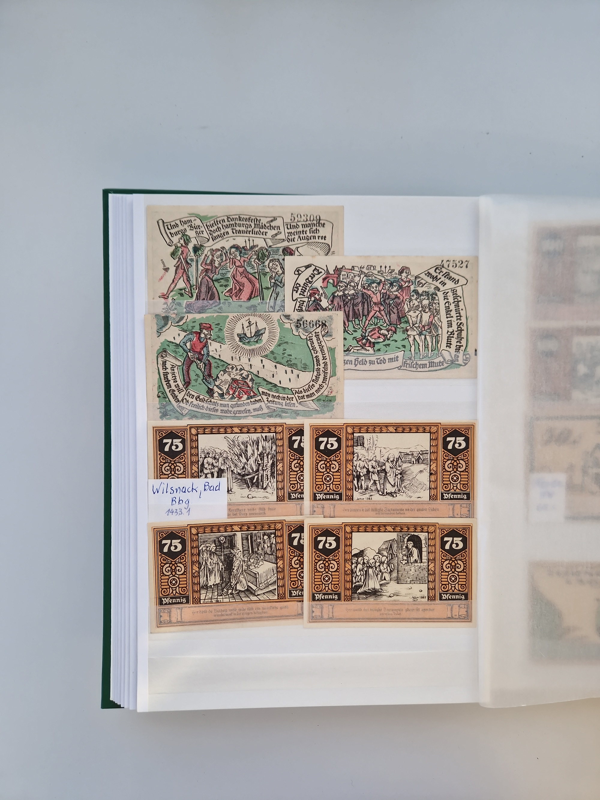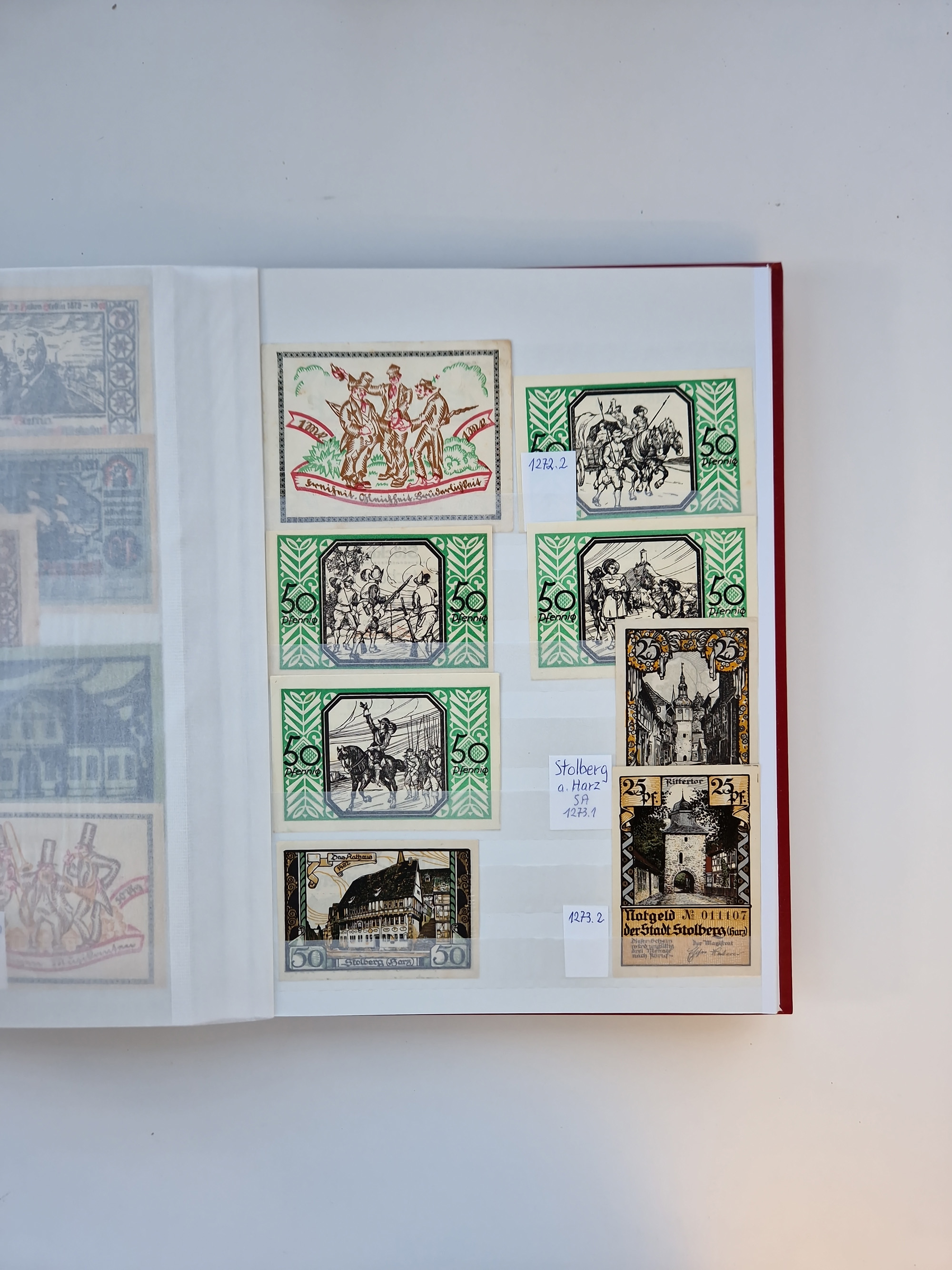 Notgeld-Serienscheine, saubere Sammlung in 16 meist dicken Steckalben, sauber nach Orten und Serien sortiert, überschlägig etwa 7/8000 Stück, dazu 4 Kataloge