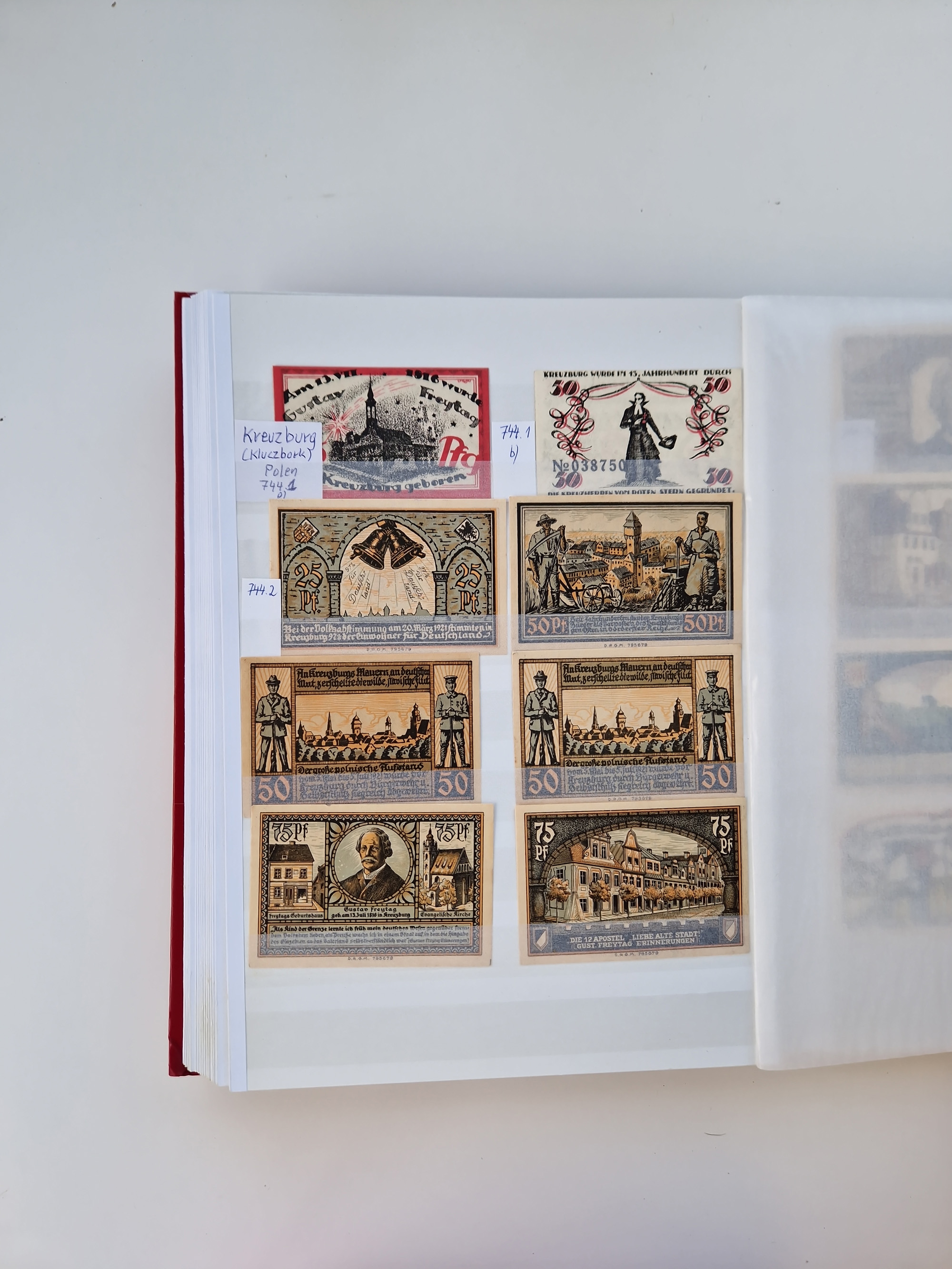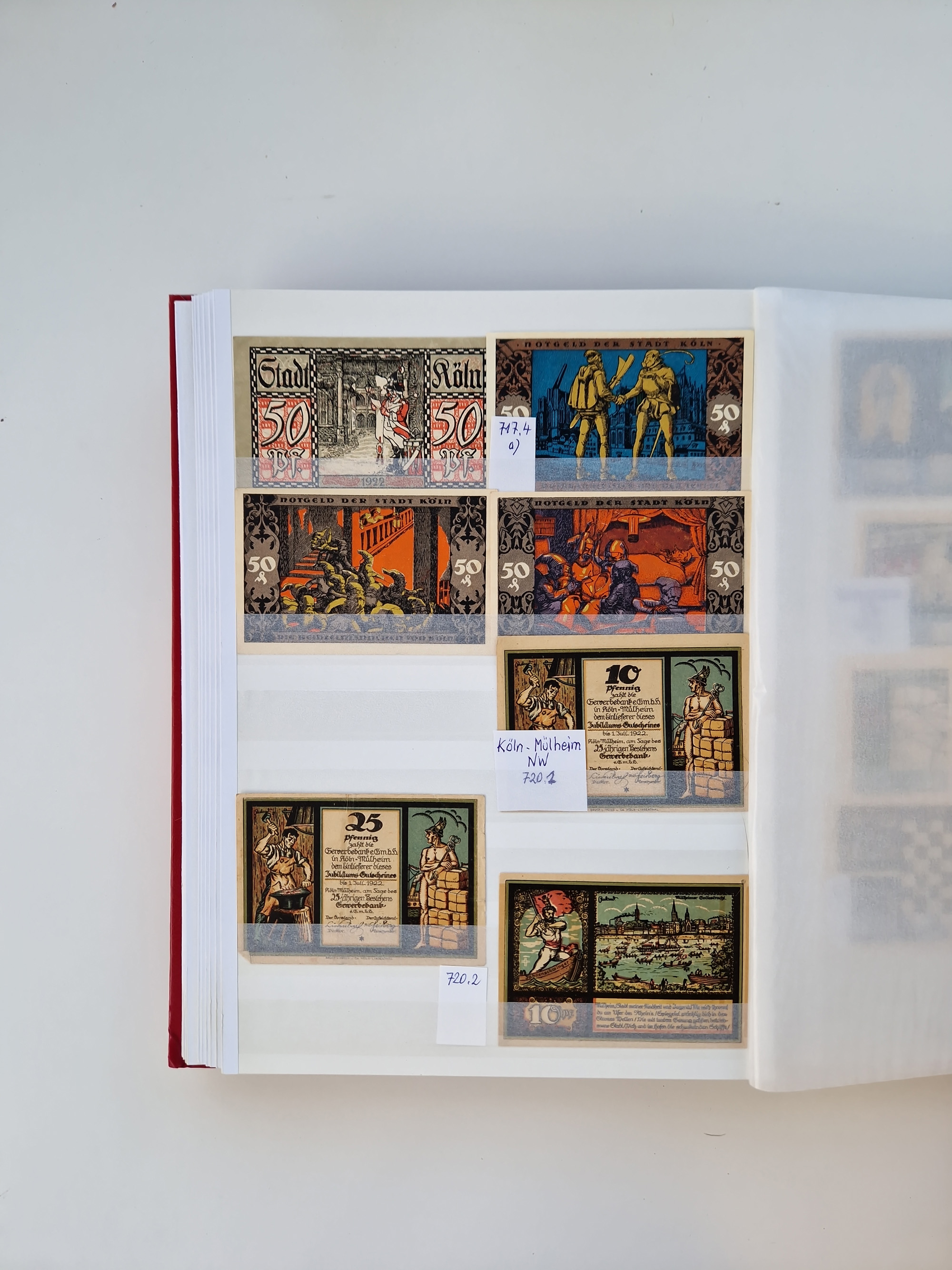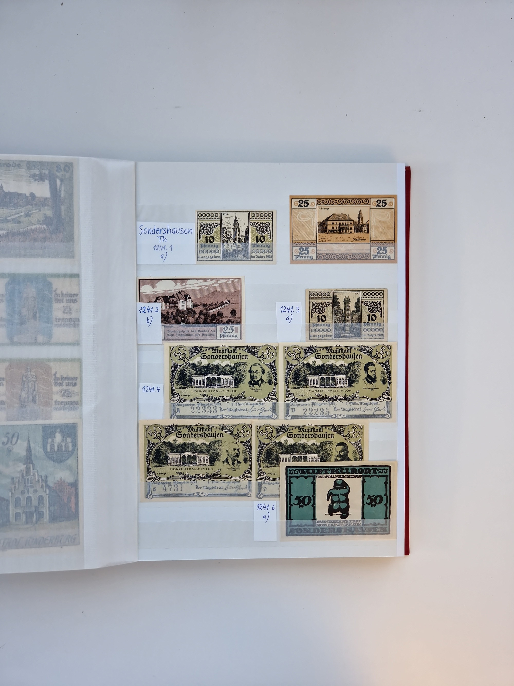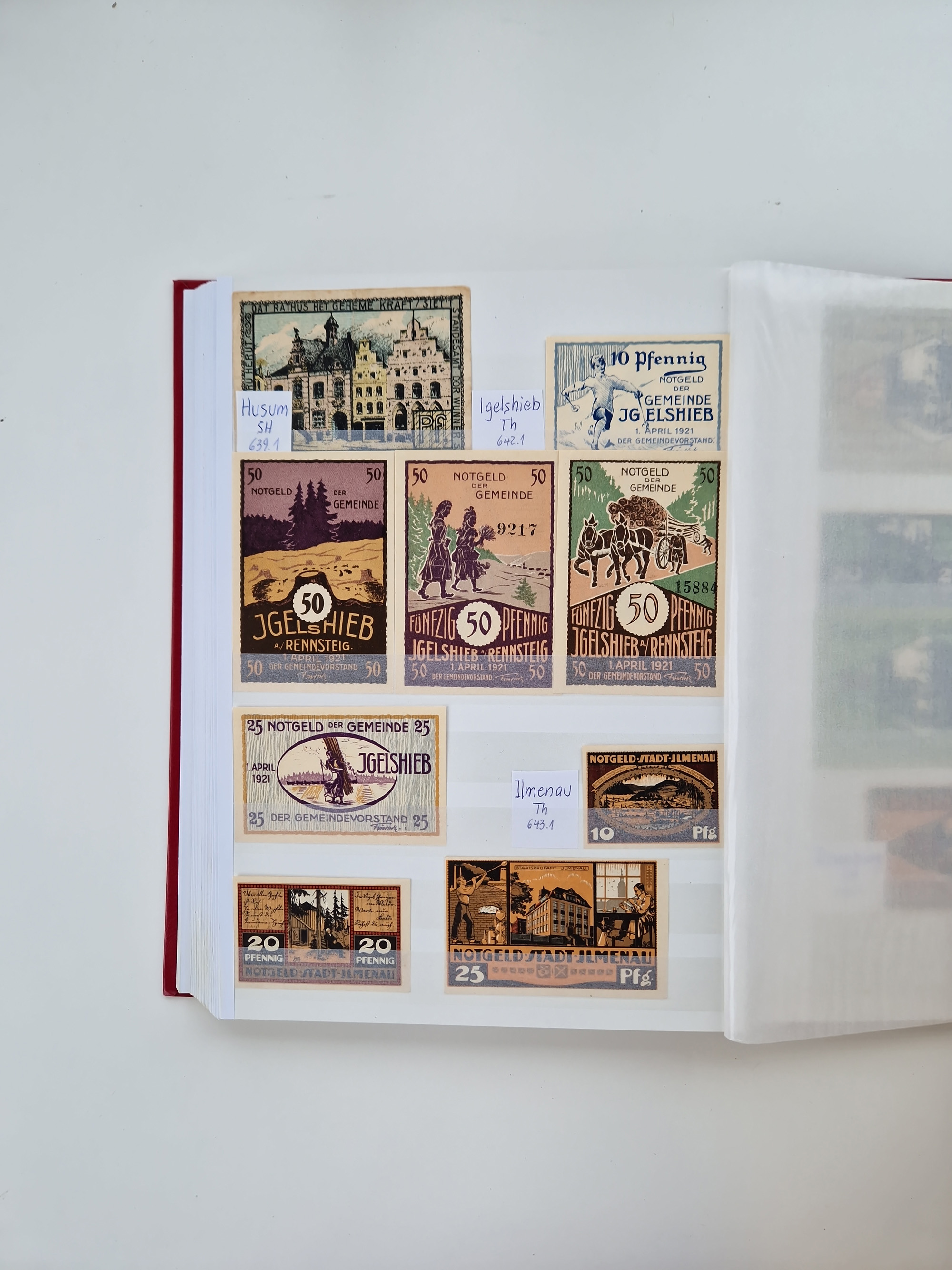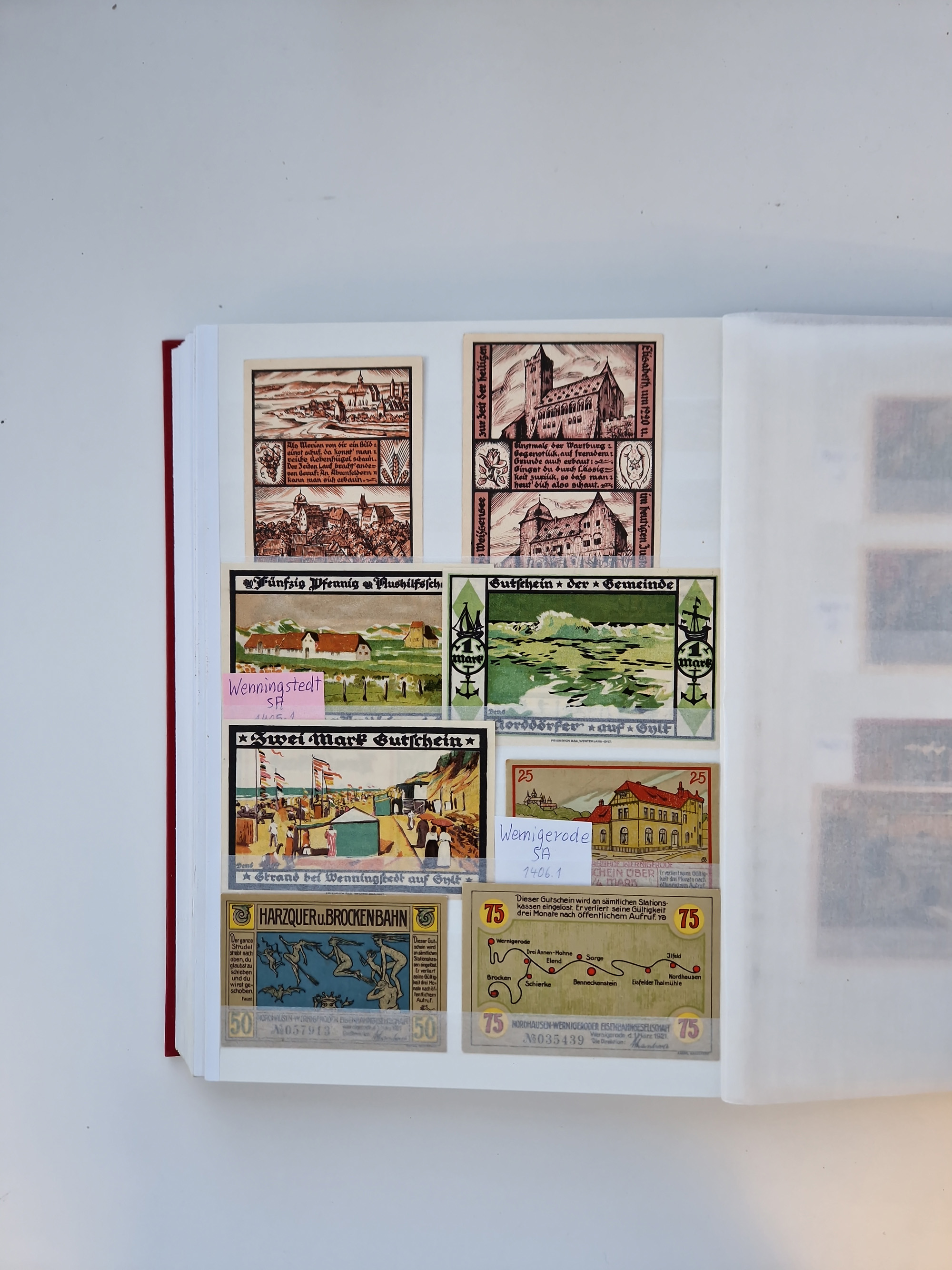 Notgeld-Serienscheine, saubere Sammlung in 16 meist dicken Steckalben, sauber nach Orten und Serien sortiert, überschlägig etwa 7/8000 Stück, dazu 4 Kataloge