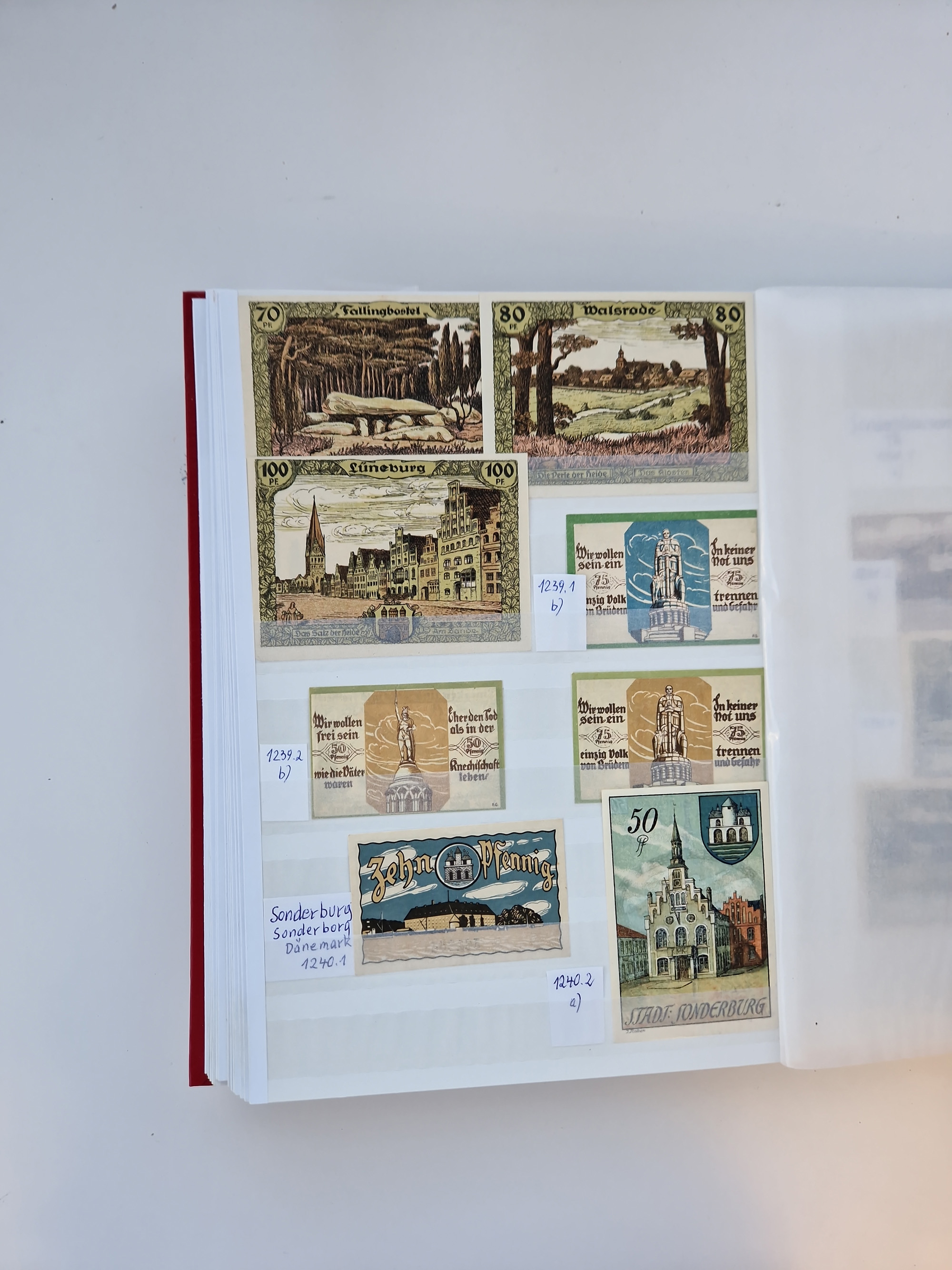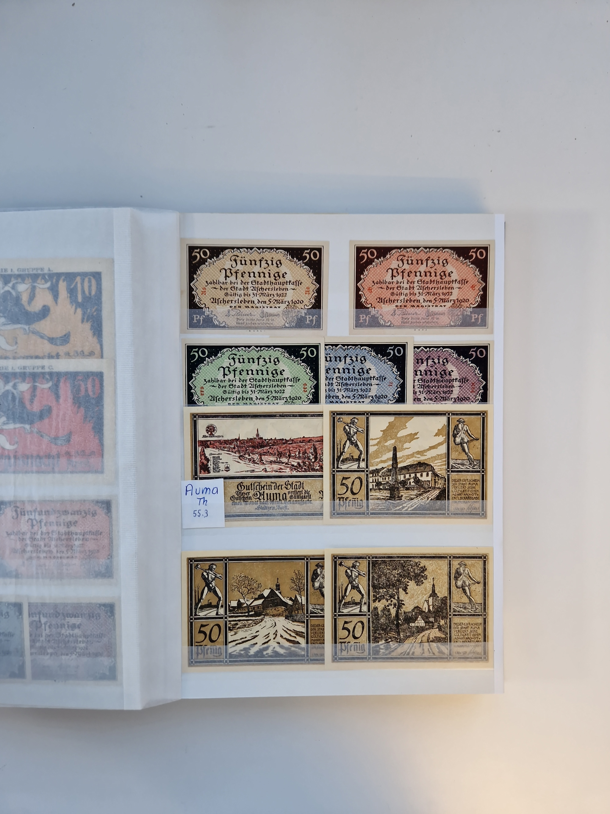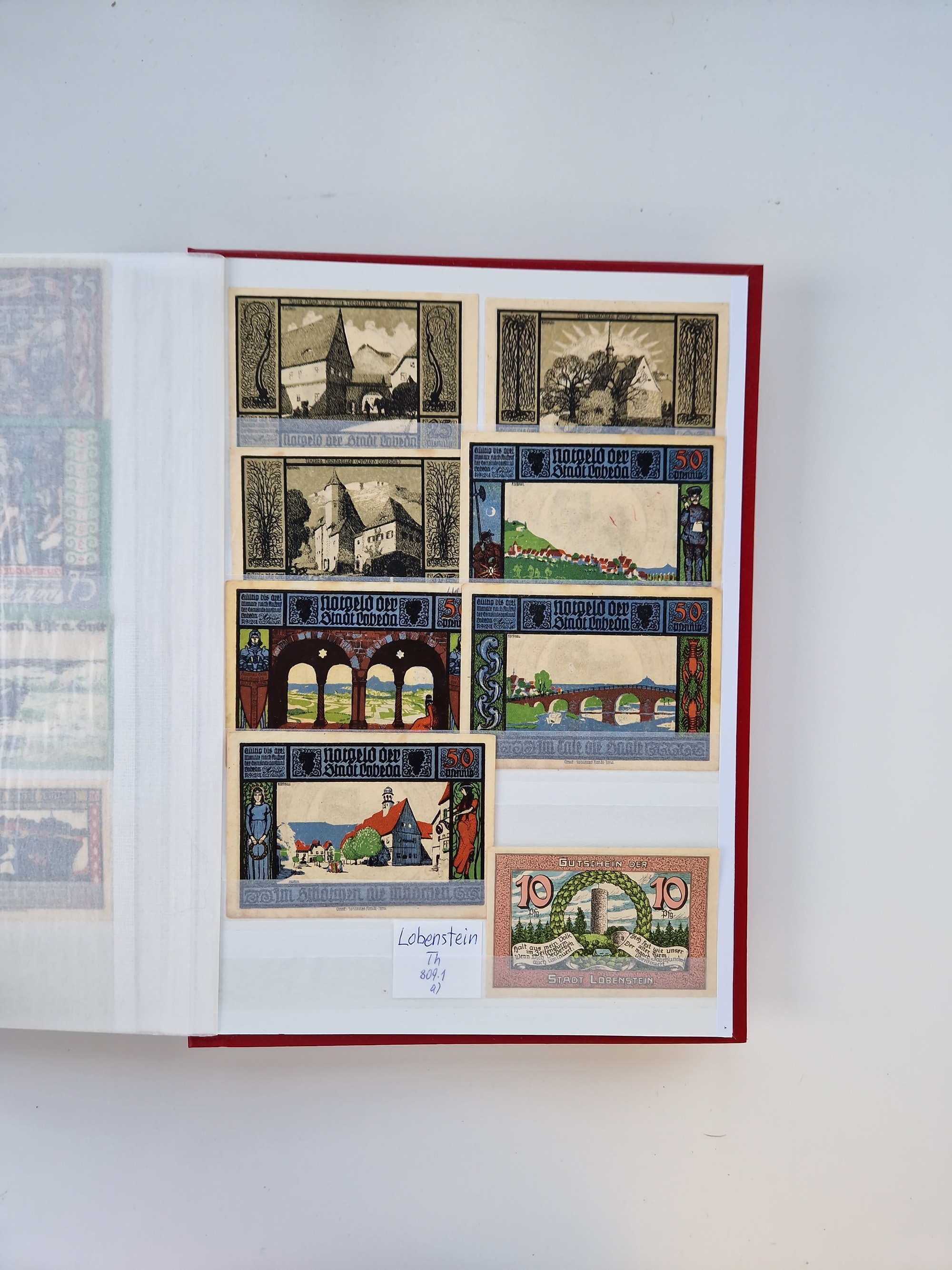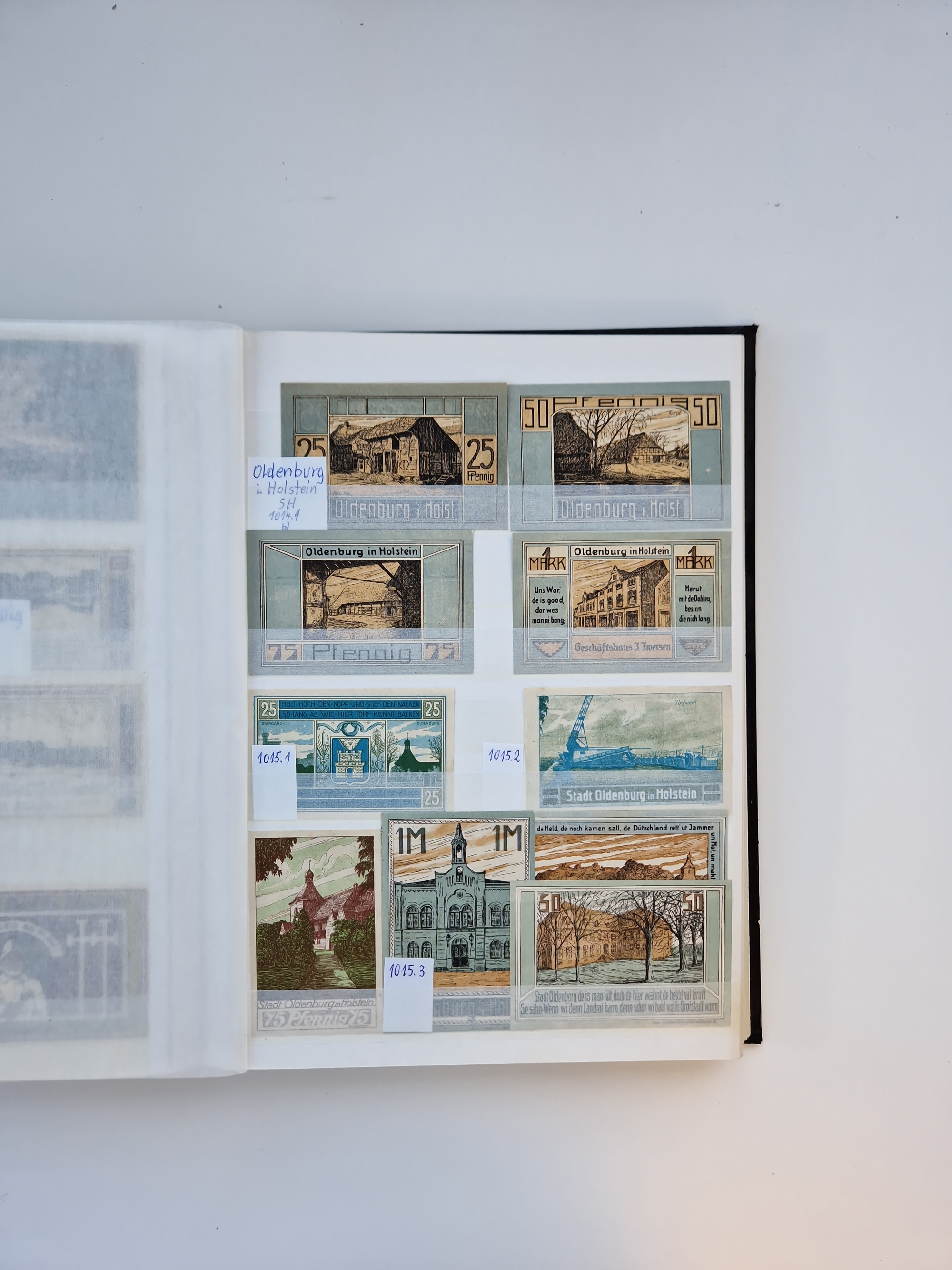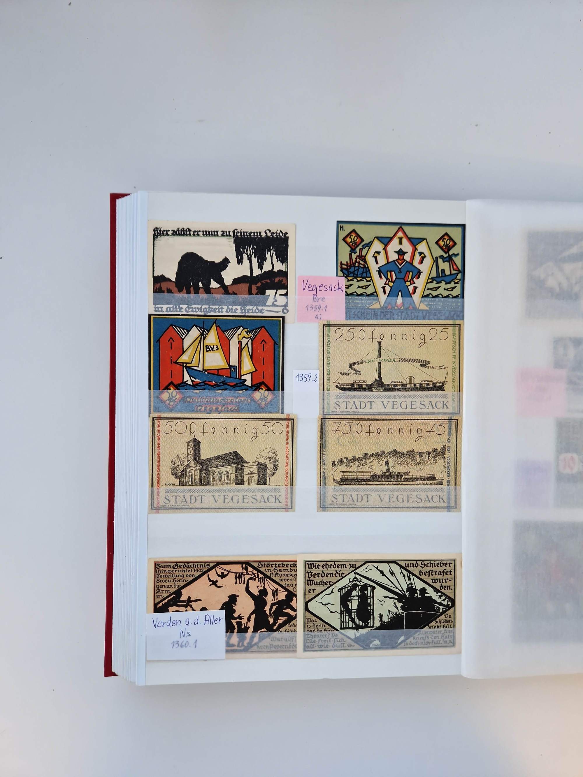 Notgeld-Serienscheine, saubere Sammlung in 16 meist dicken Steckalben, sauber nach Orten und Serien sortiert, überschlägig etwa 7/8000 Stück, dazu 4 Kataloge