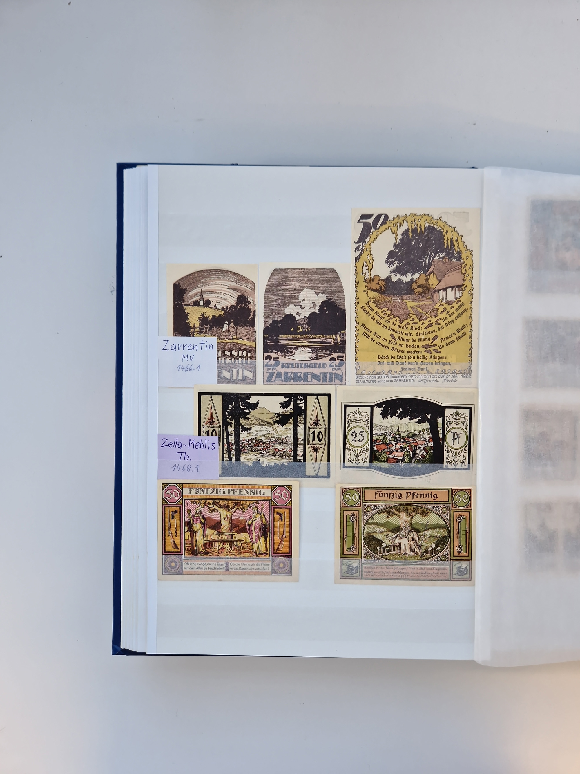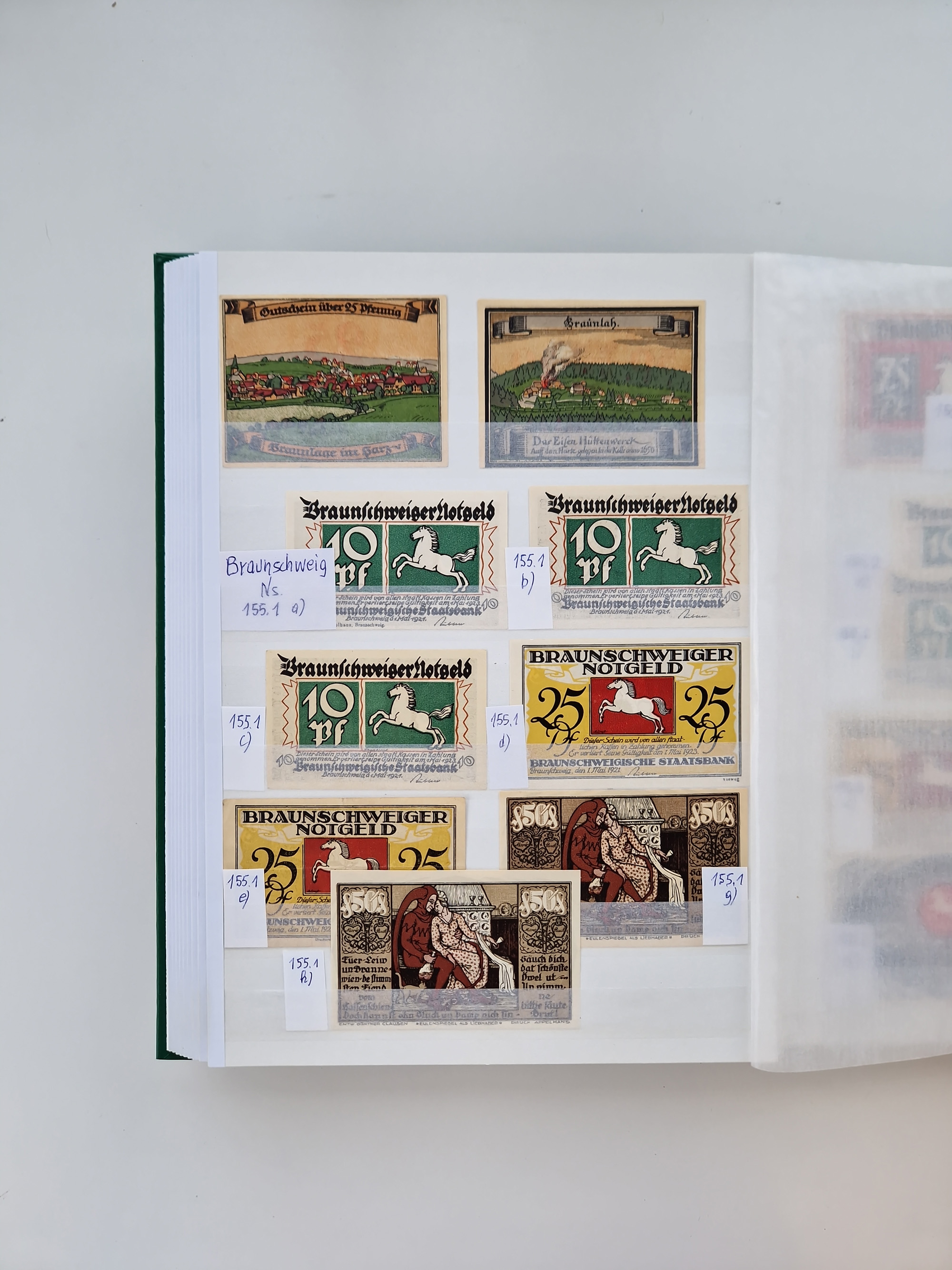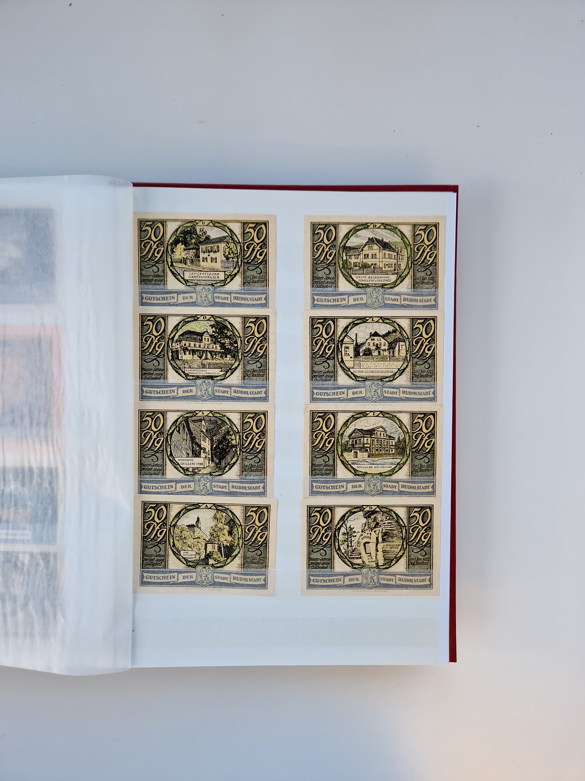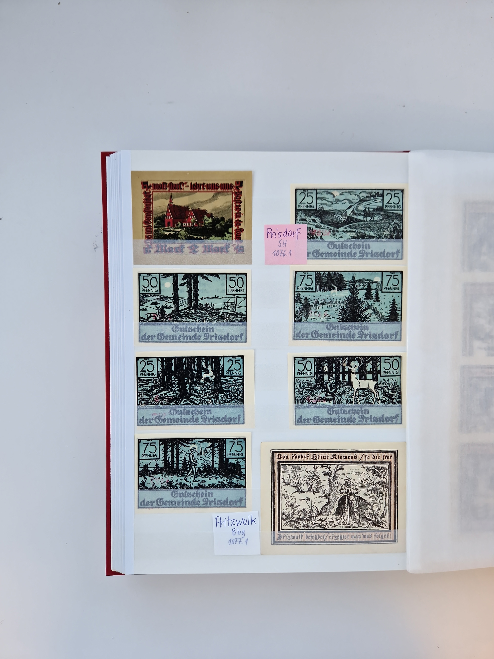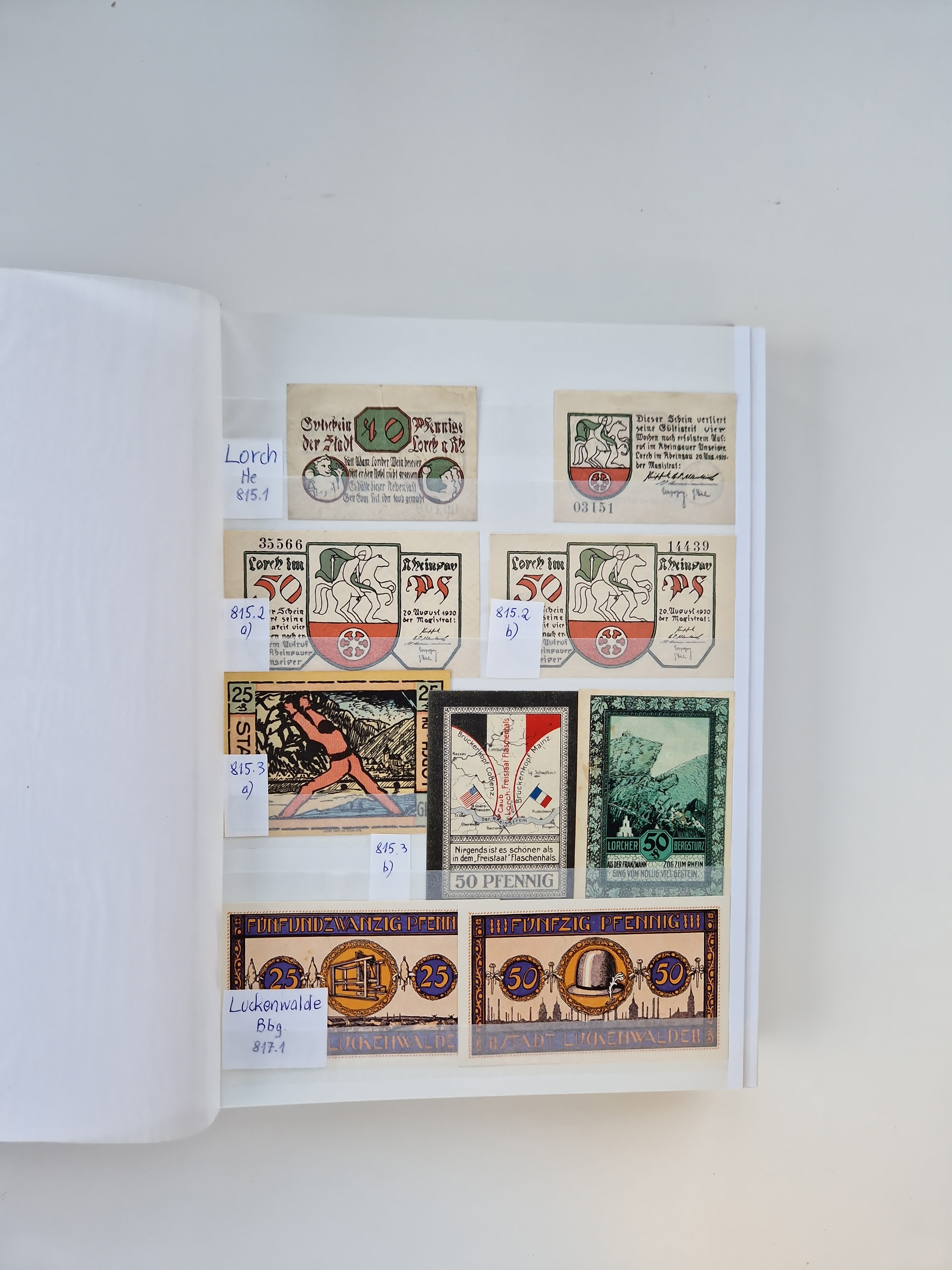 Notgeld-Serienscheine, saubere Sammlung in 16 meist dicken Steckalben, sauber nach Orten und Serien sortiert, überschlägig etwa 7/8000 Stück, dazu 4 Kataloge