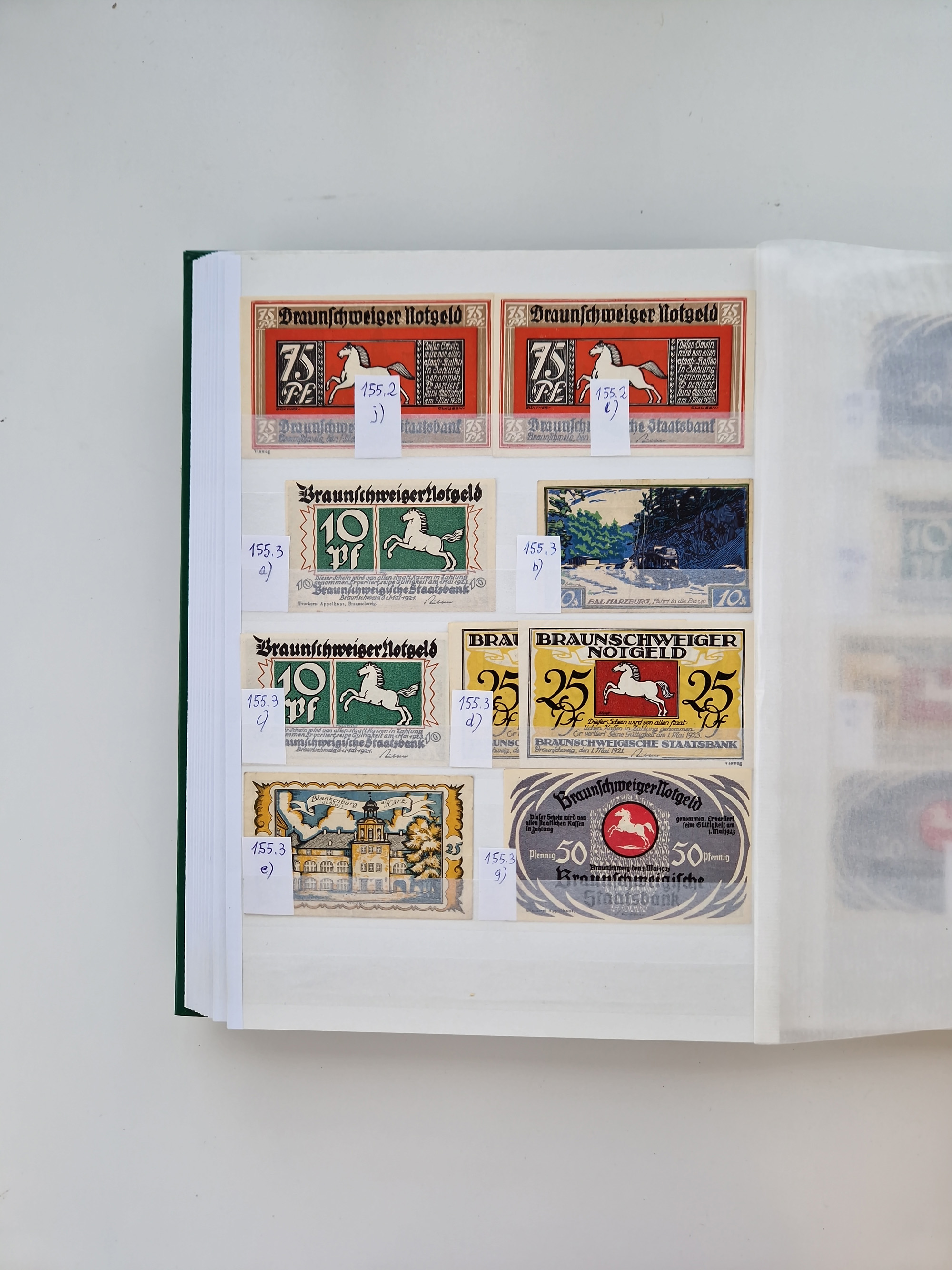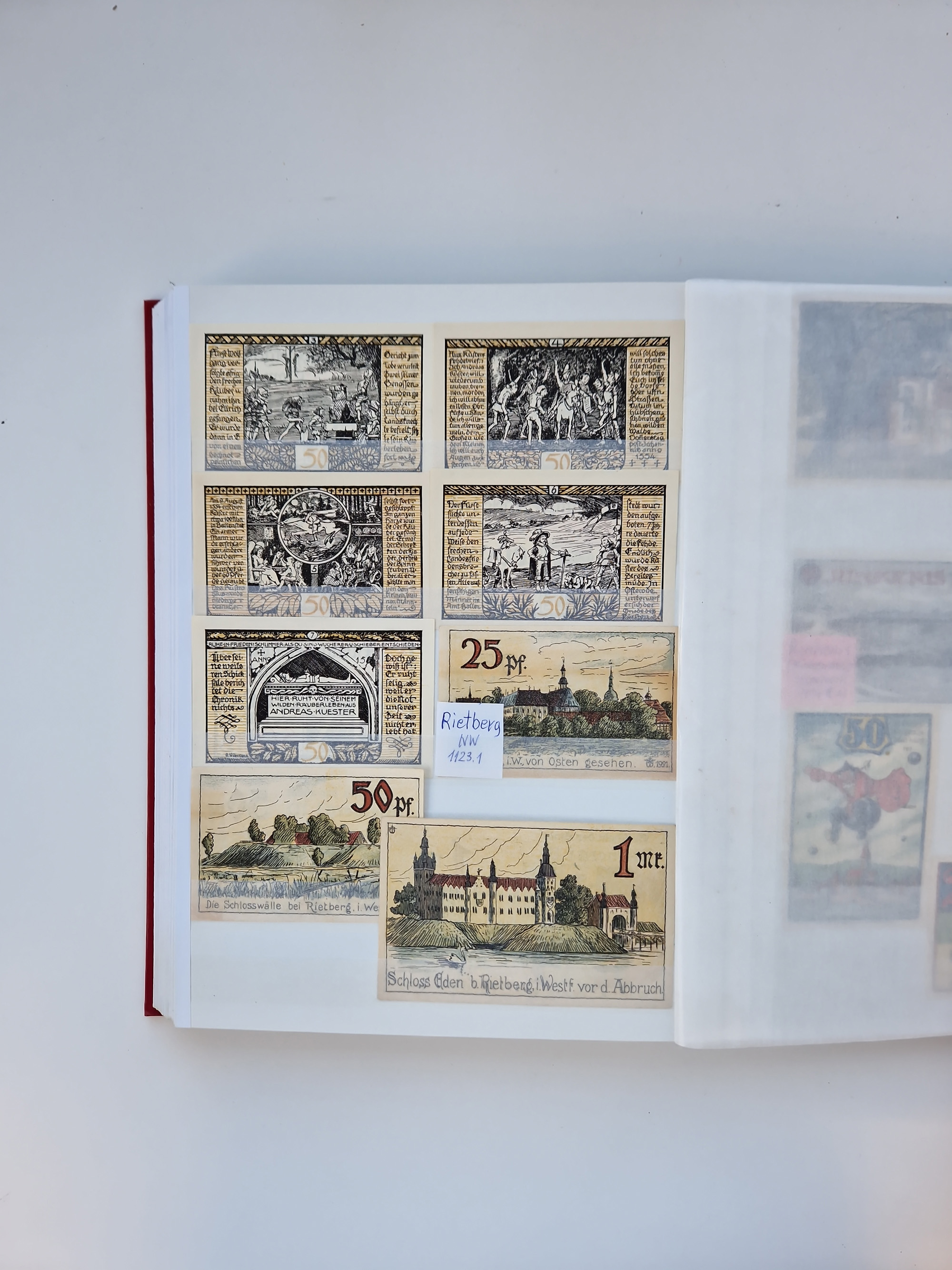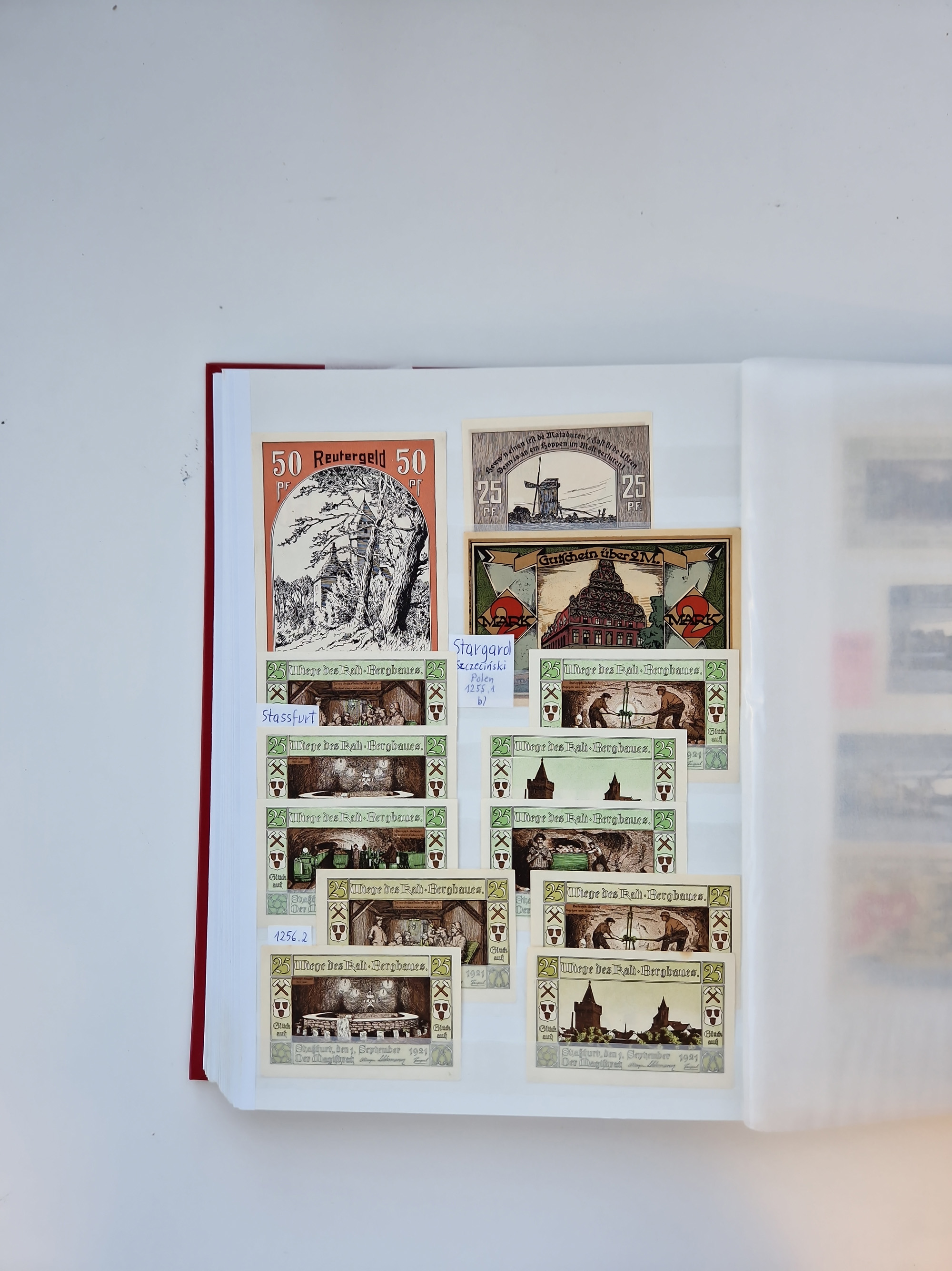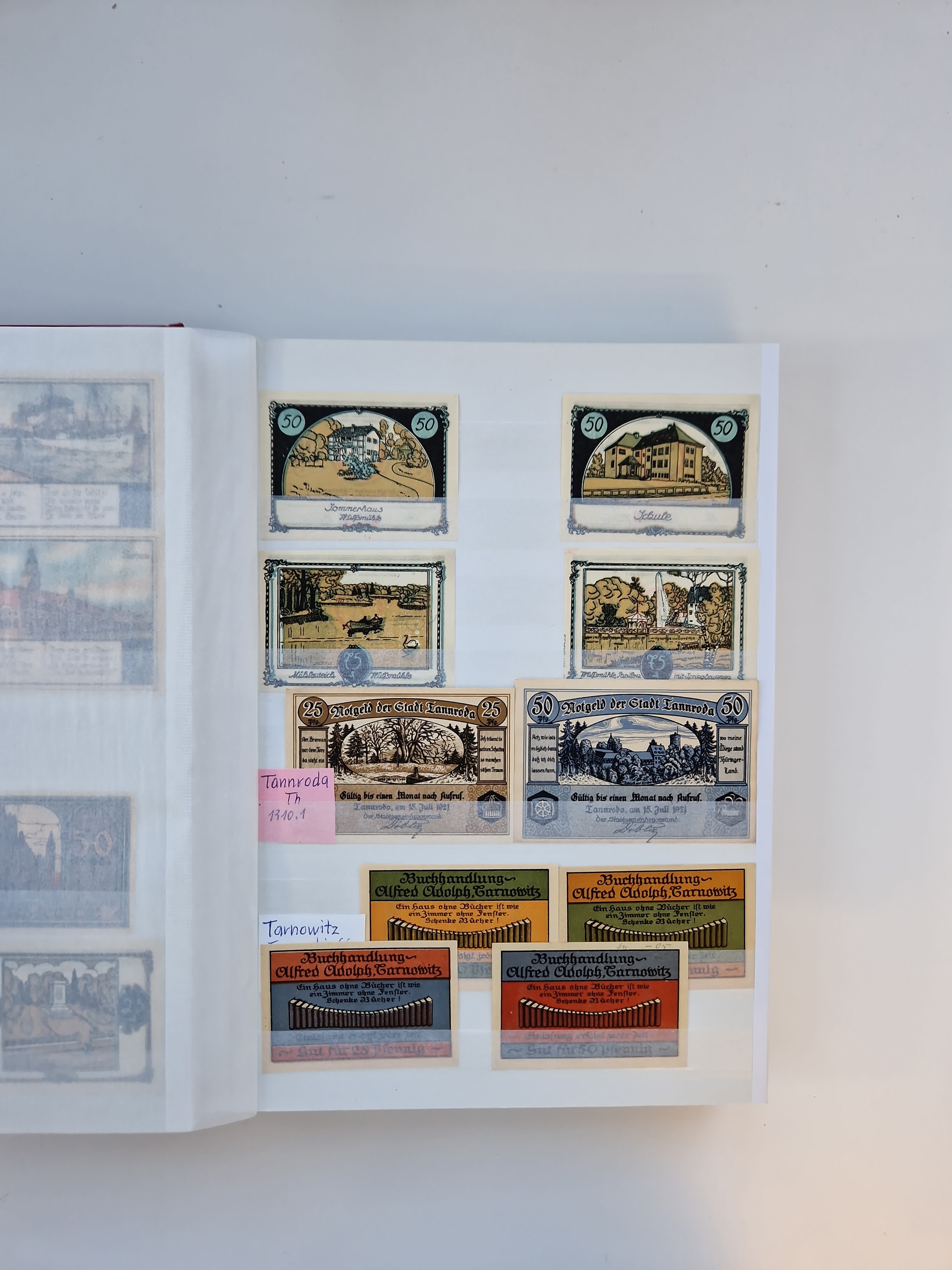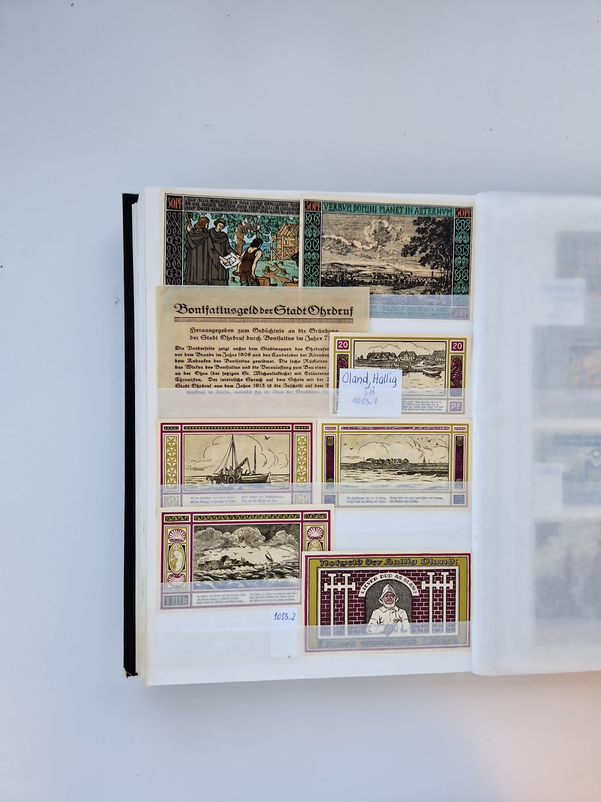Notgeld-Serienscheine, saubere Sammlung in 16 meist dicken Steckalben, sauber nach Orten und Serien sortiert, überschlägig etwa 7/8000 Stück, dazu 4 Kataloge
