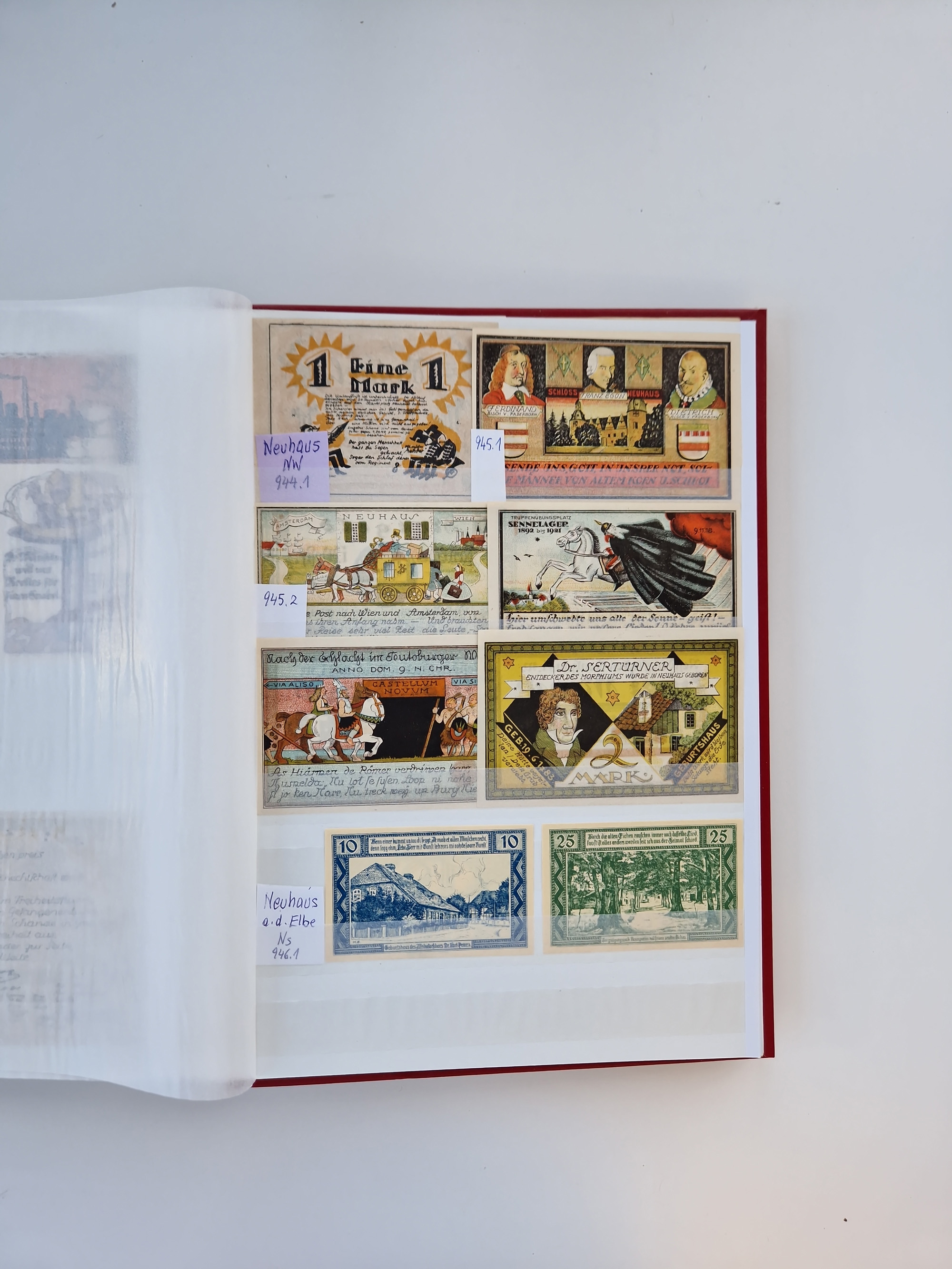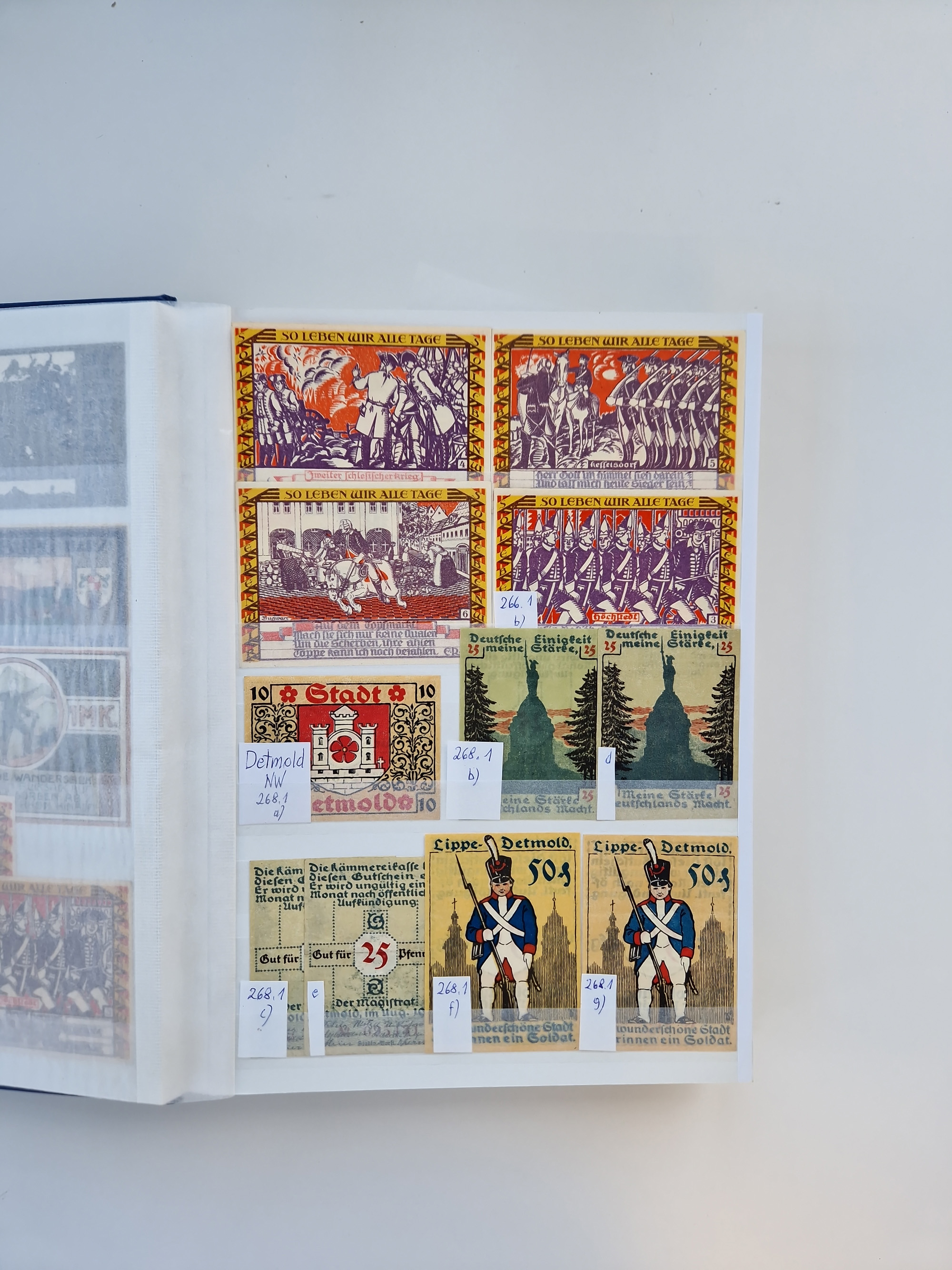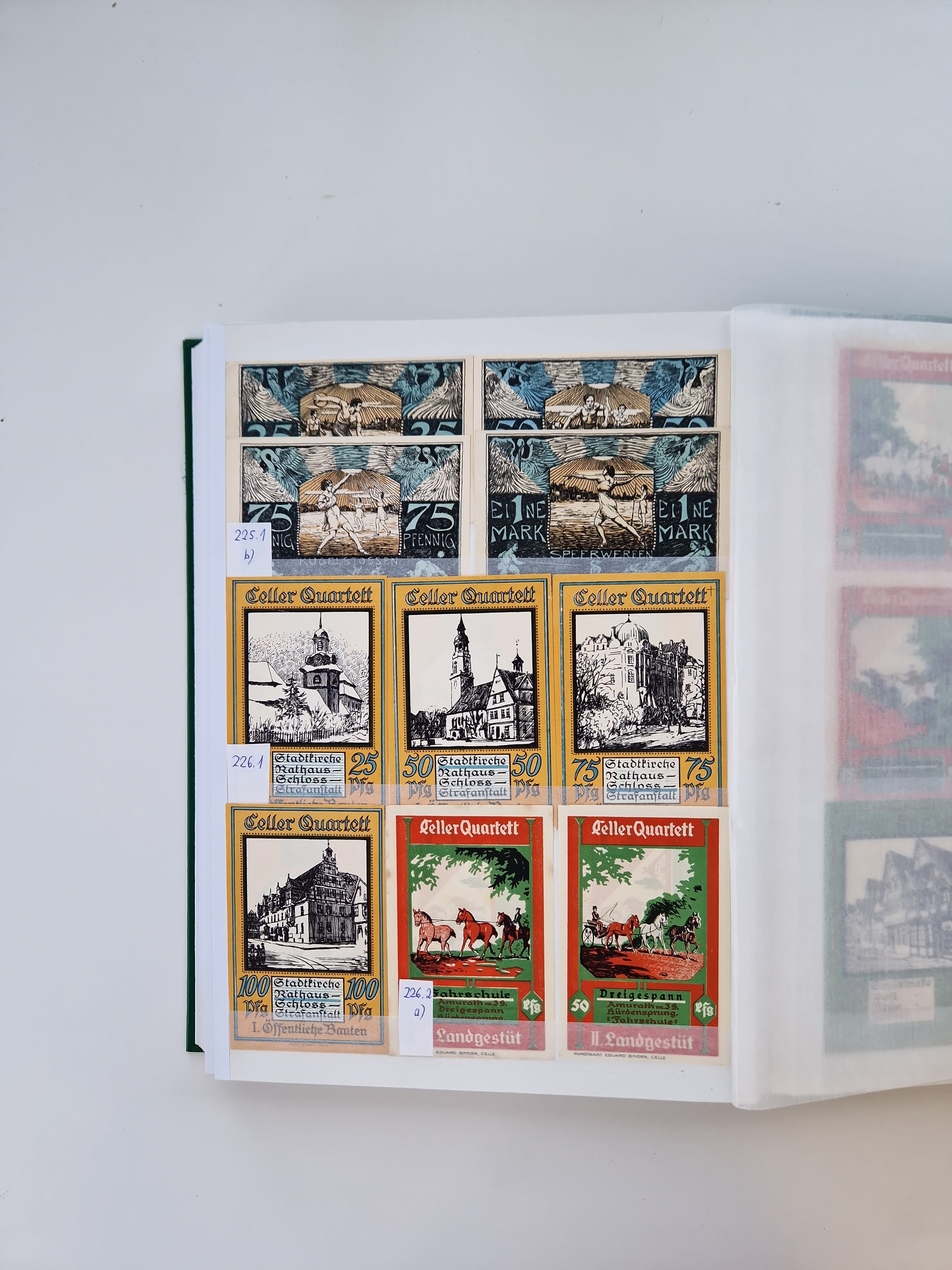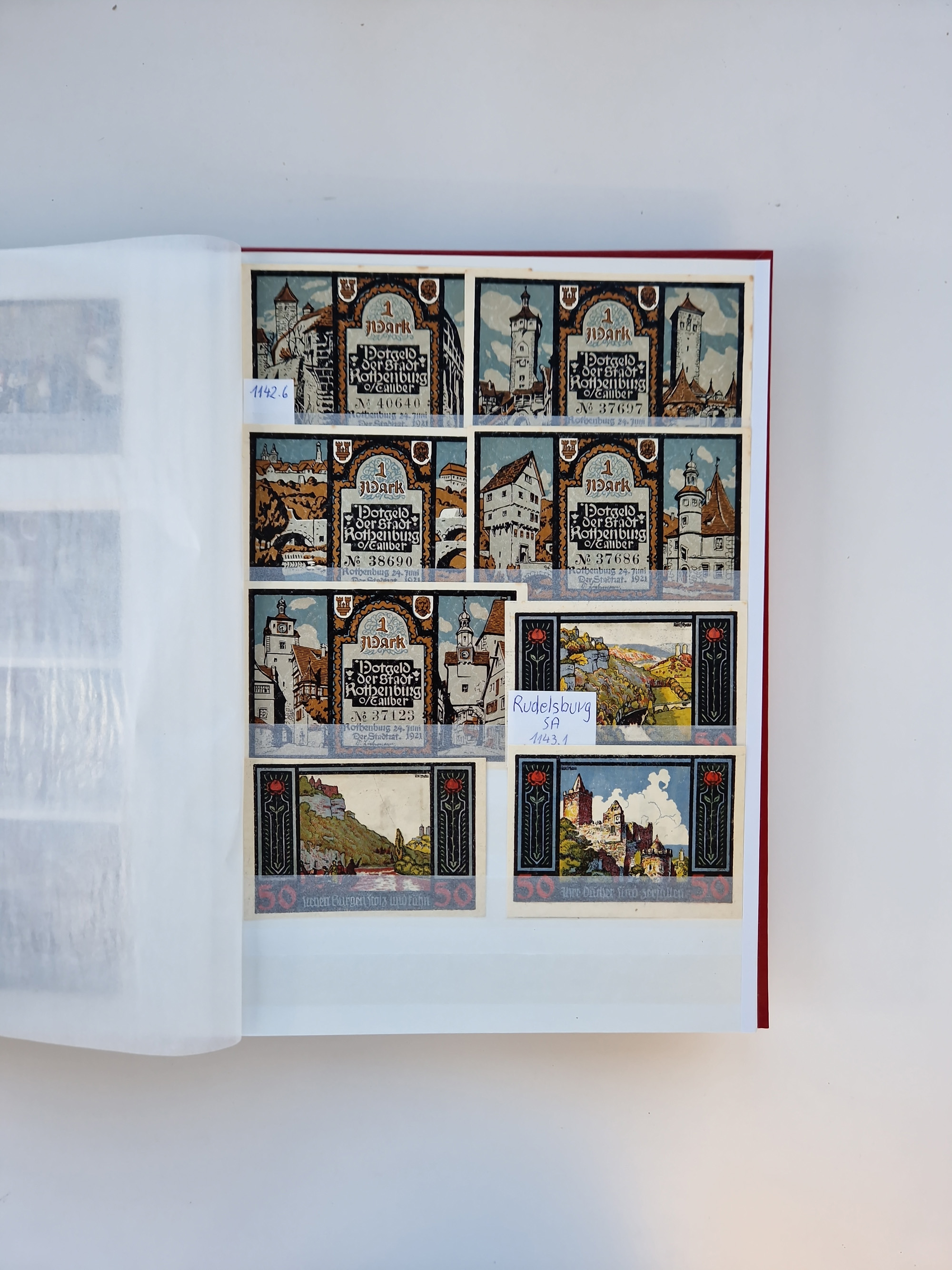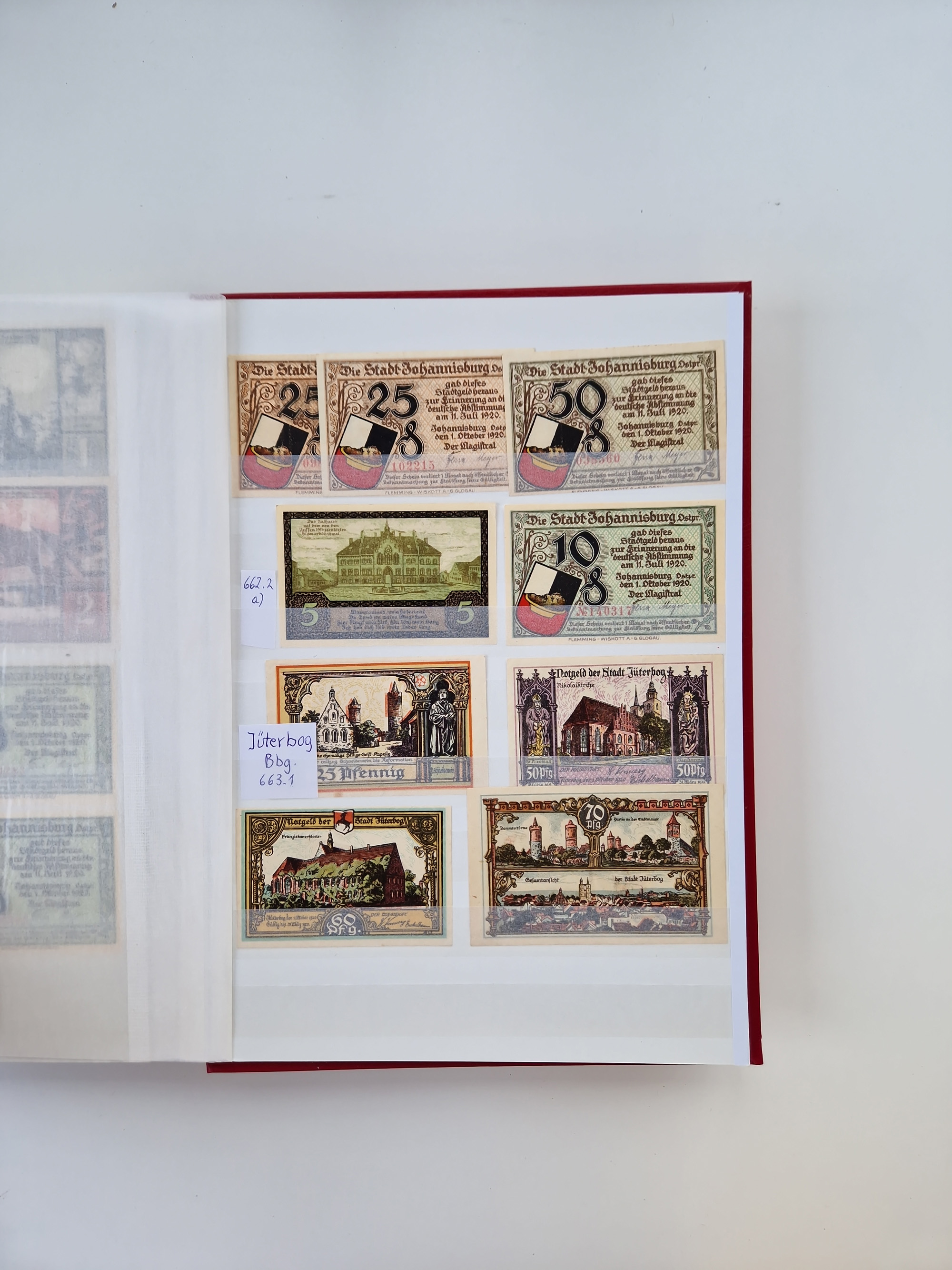 Notgeld-Serienscheine, saubere Sammlung in 16 meist dicken Steckalben, sauber nach Orten und Serien sortiert, überschlägig etwa 7/8000 Stück, dazu 4 Kataloge