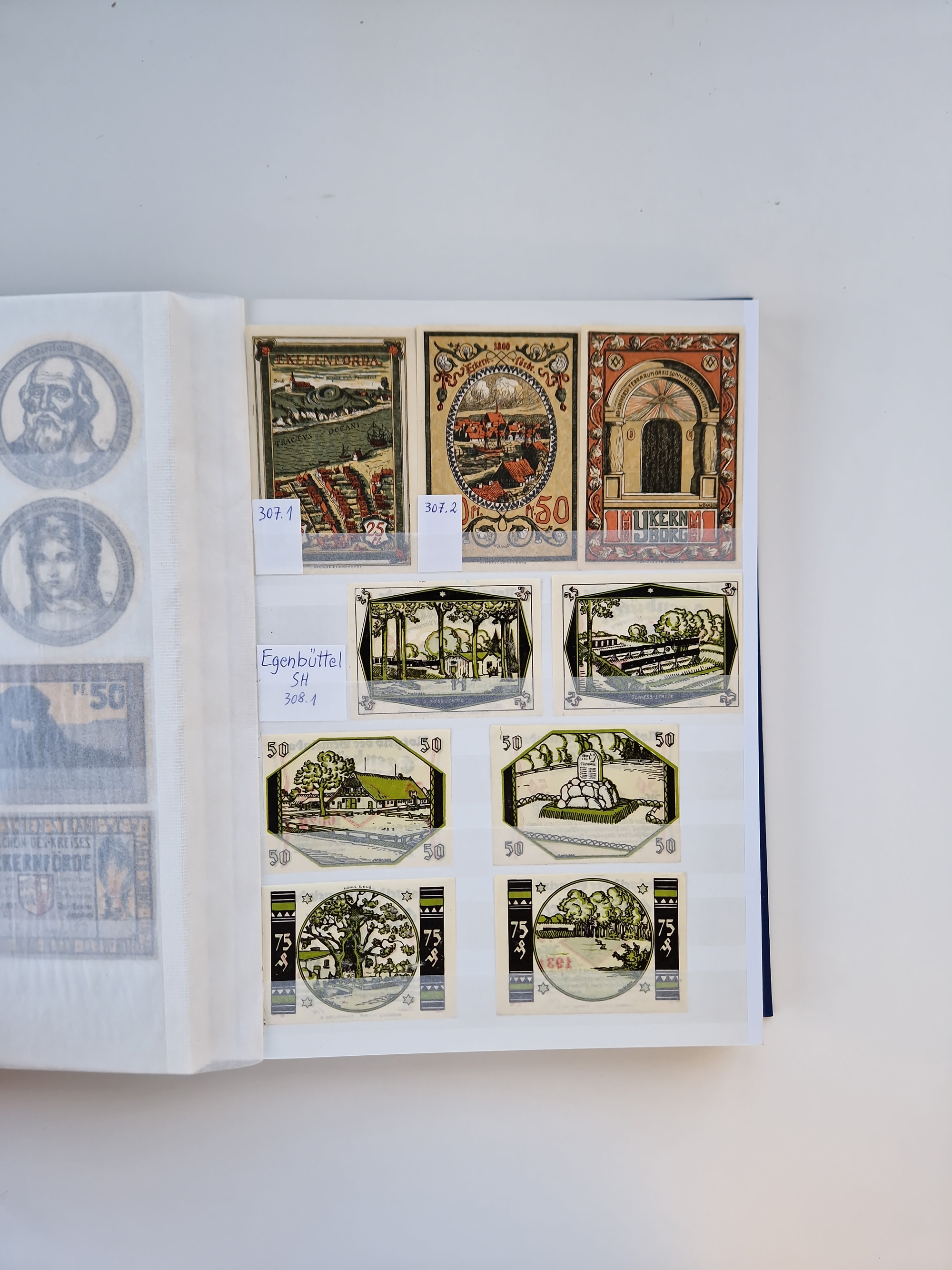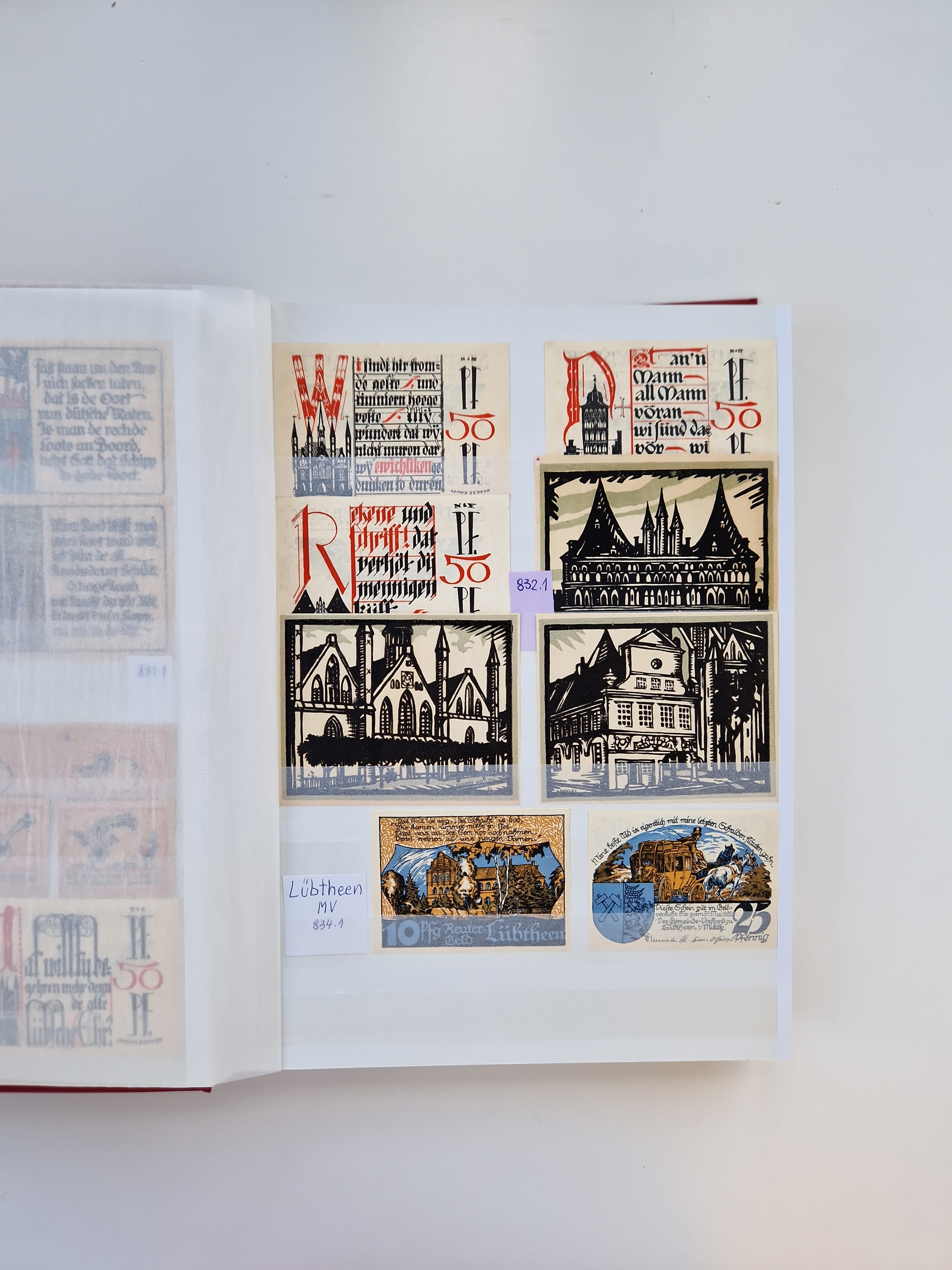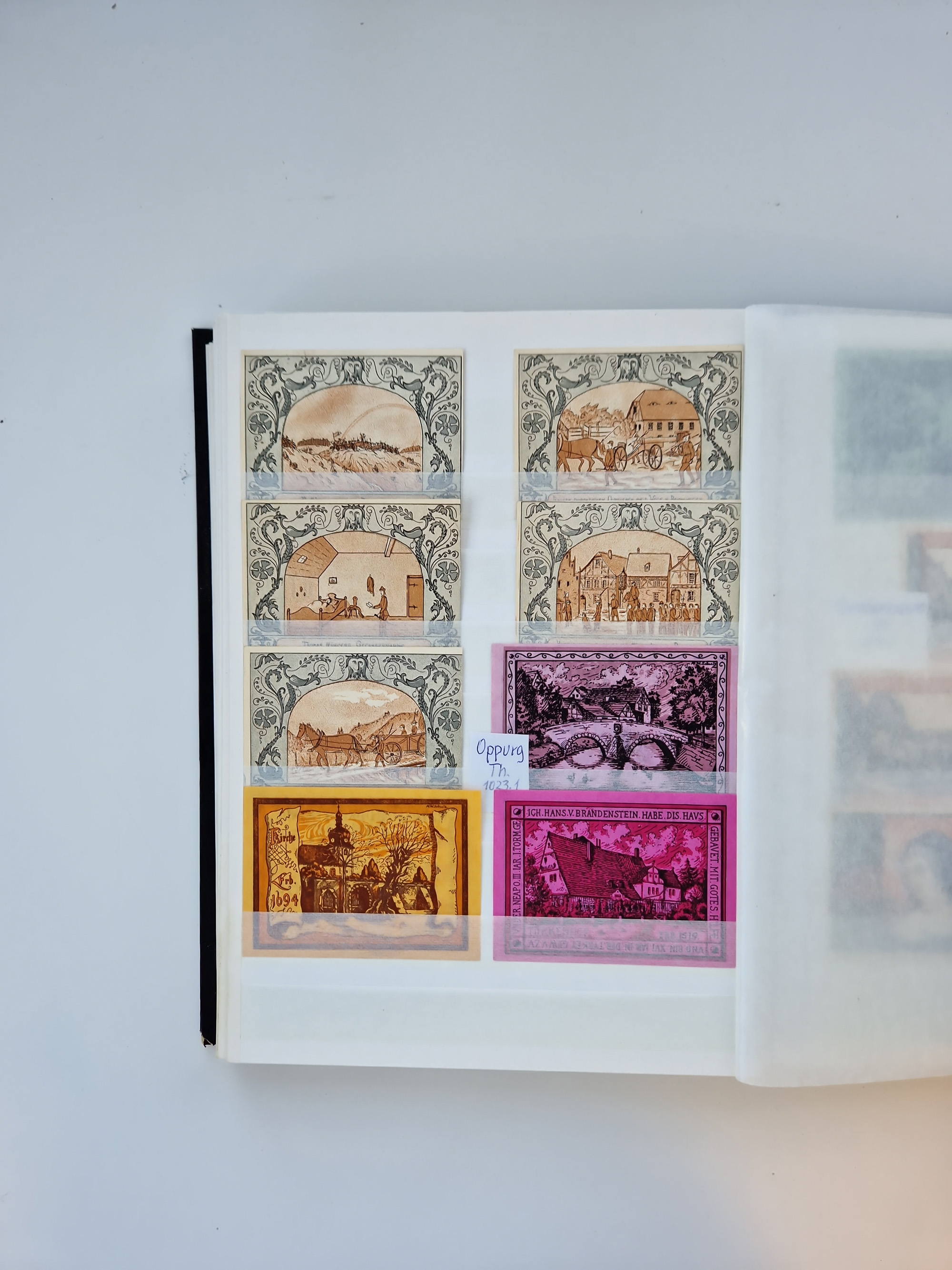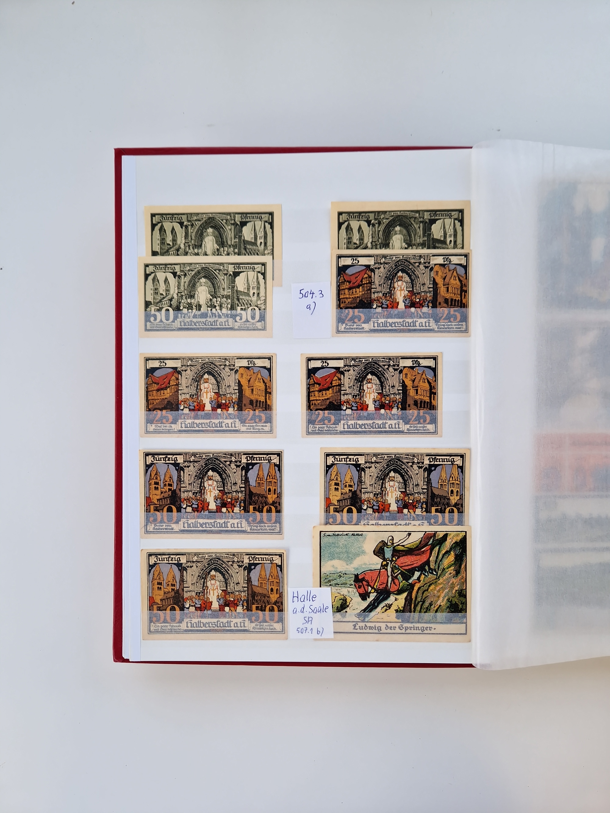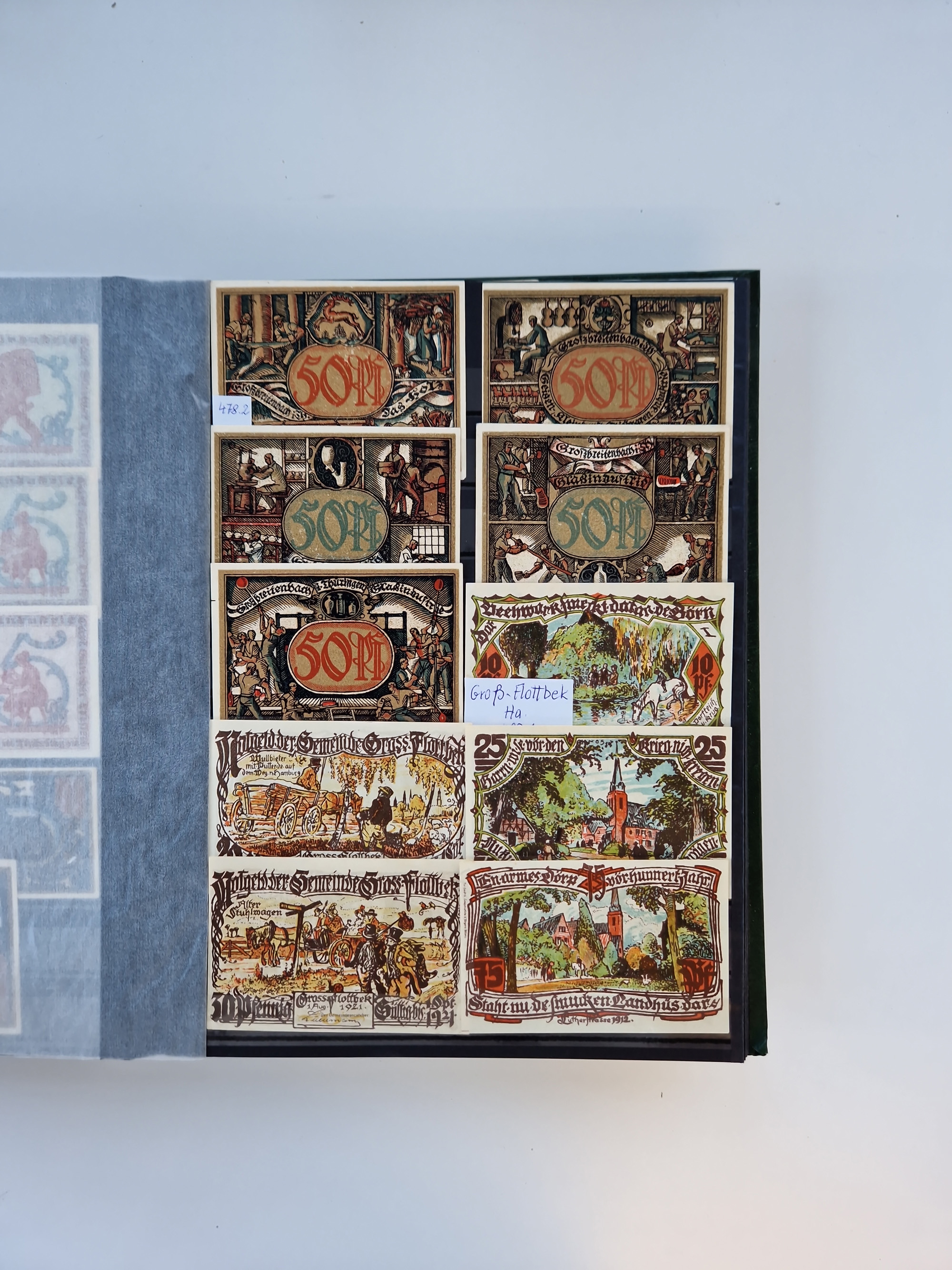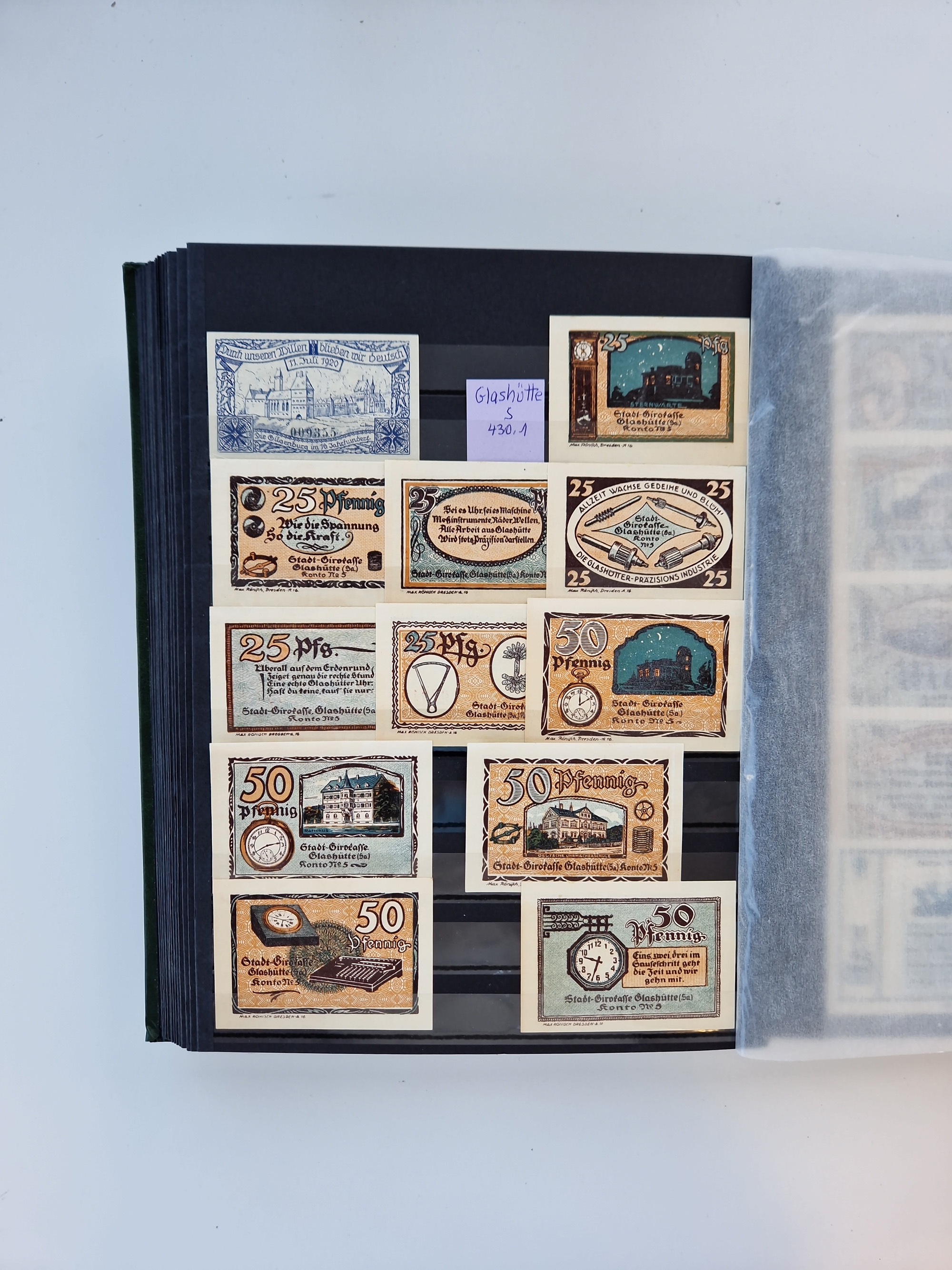 Notgeld-Serienscheine, saubere Sammlung in 16 meist dicken Steckalben, sauber nach Orten und Serien sortiert, überschlägig etwa 7/8000 Stück, dazu 4 Kataloge