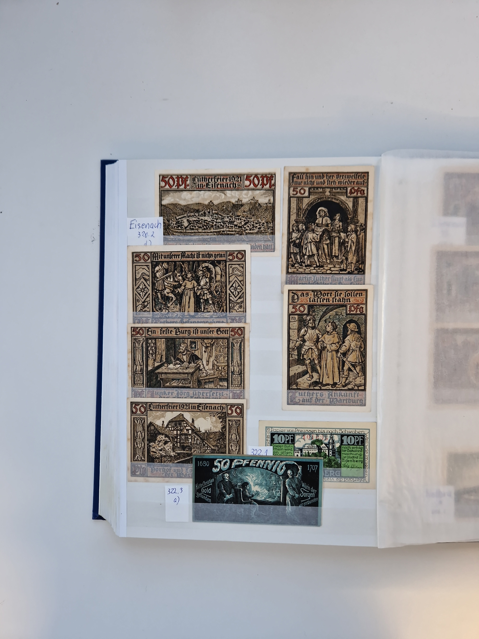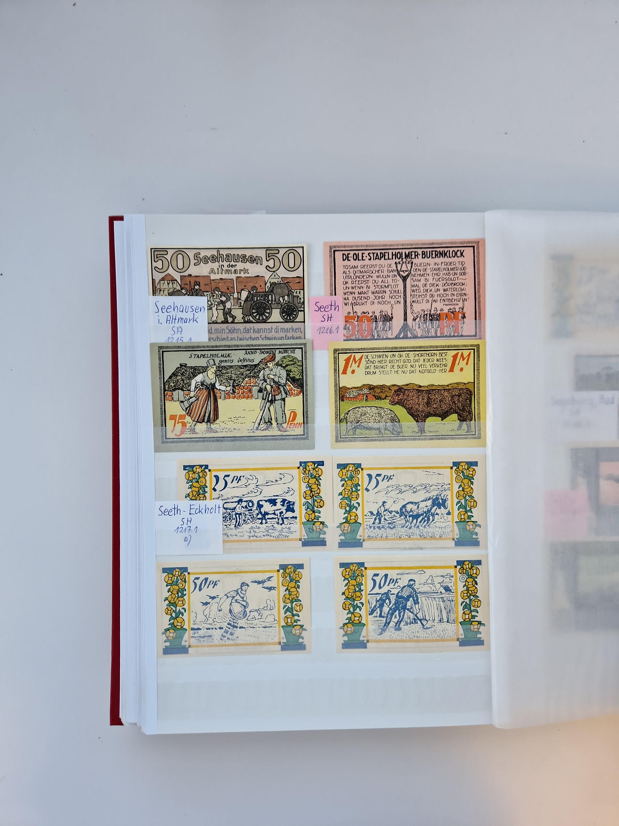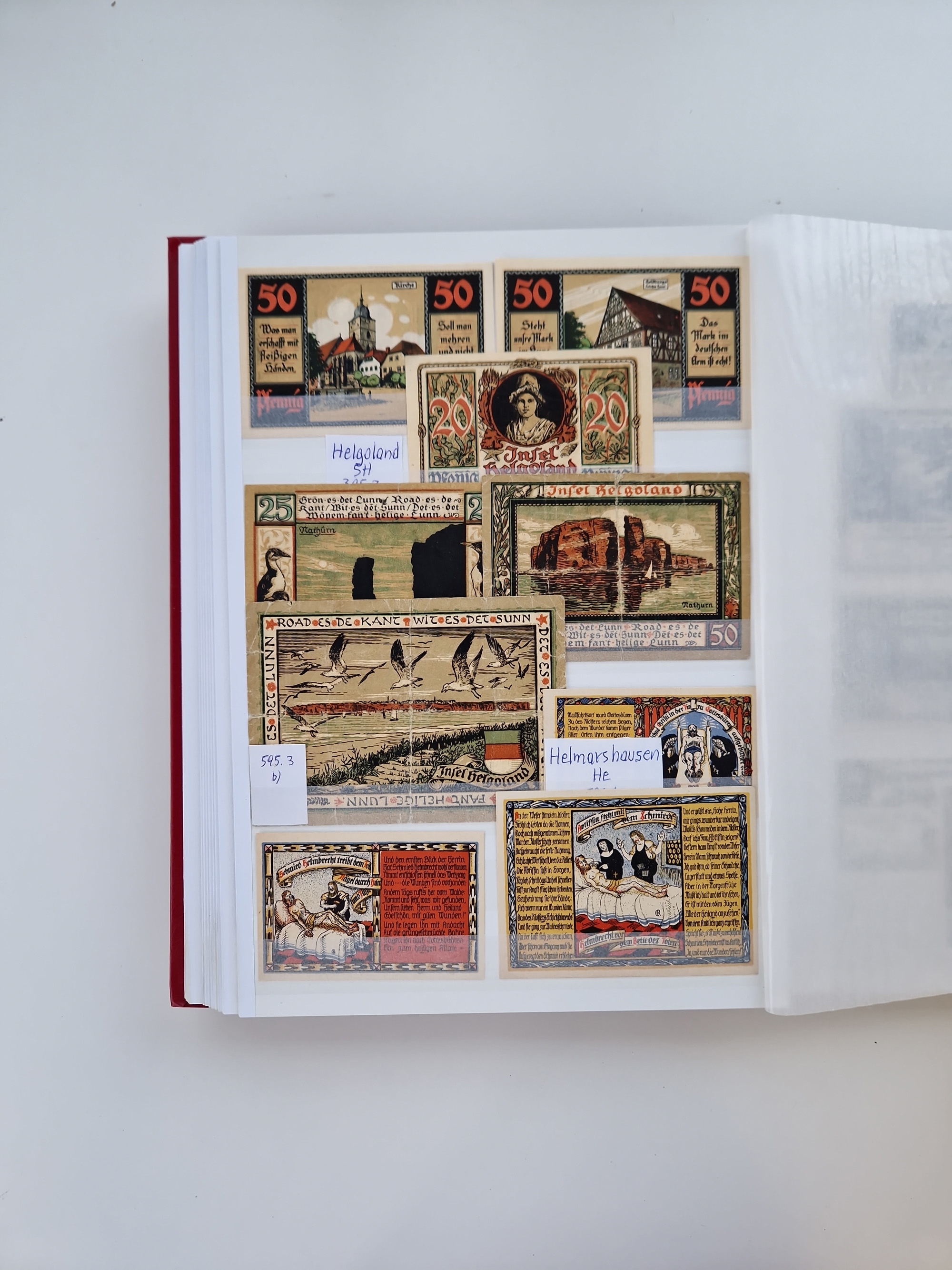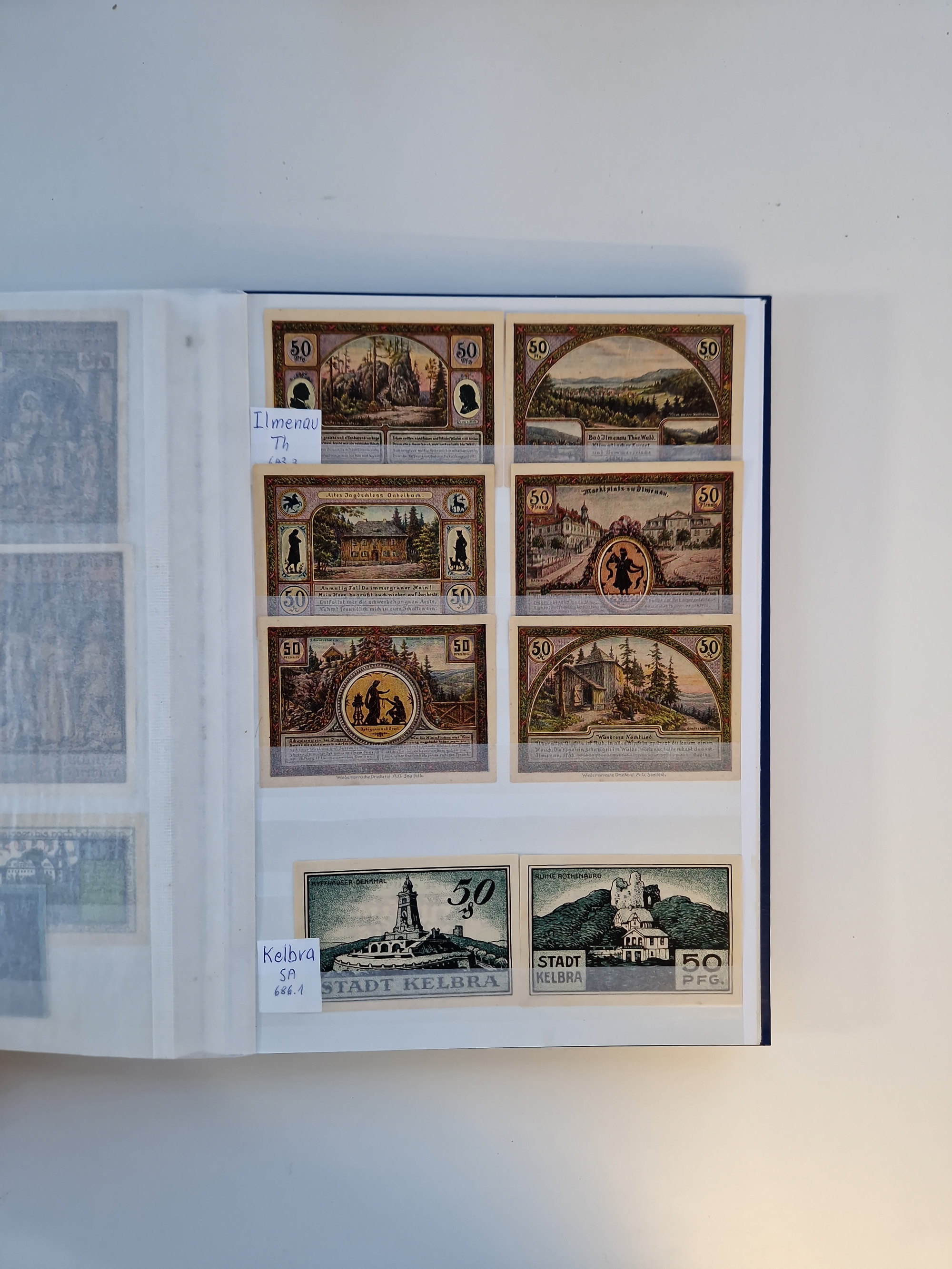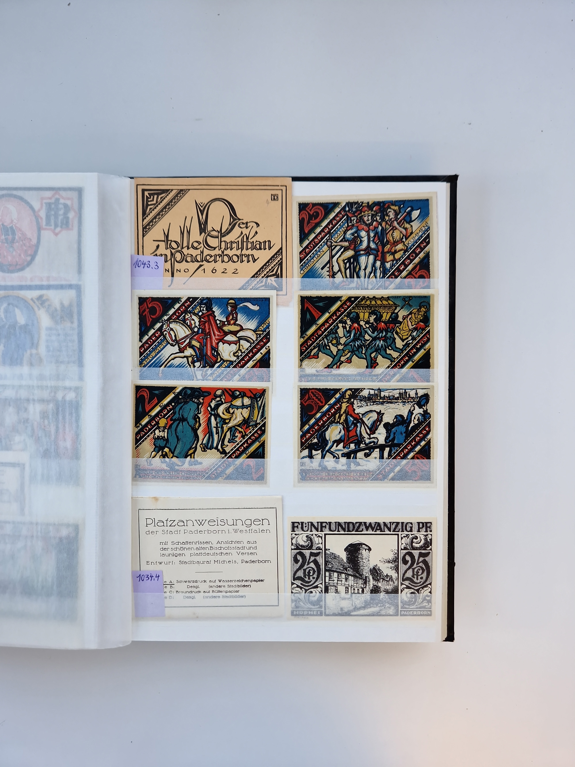 Notgeld-Serienscheine, saubere Sammlung in 16 meist dicken Steckalben, sauber nach Orten und Serien sortiert, überschlägig etwa 7/8000 Stück, dazu 4 Kataloge
