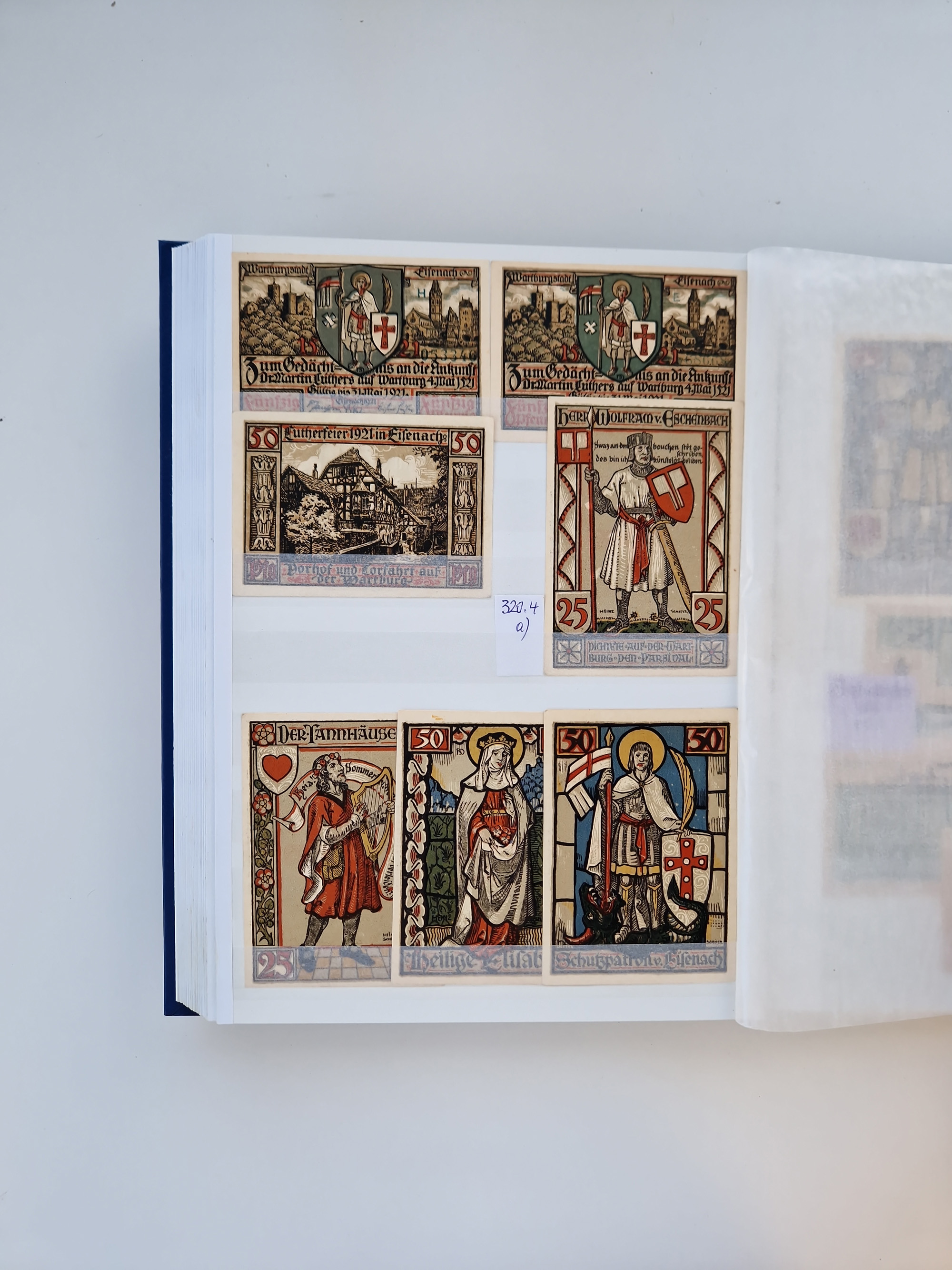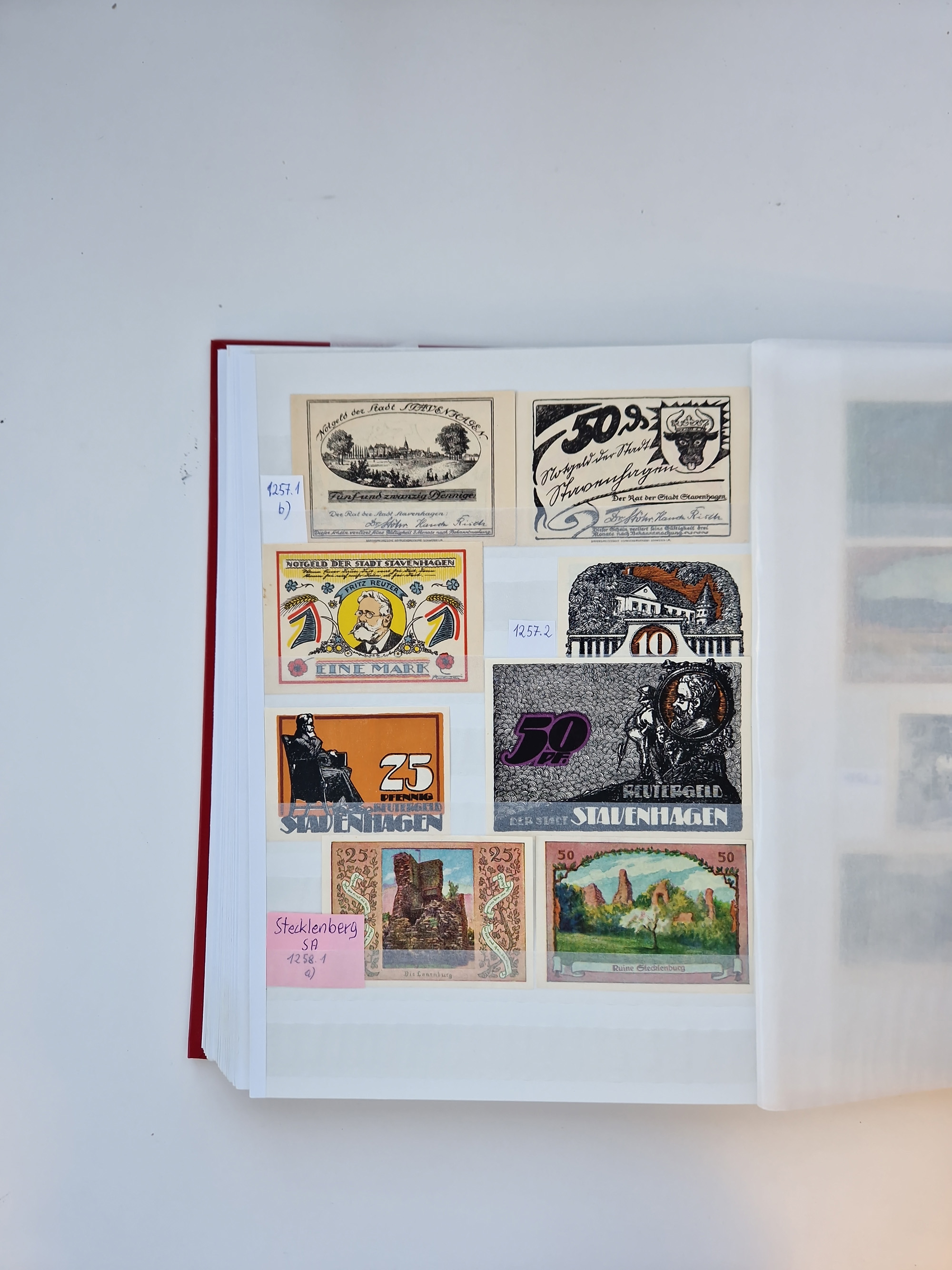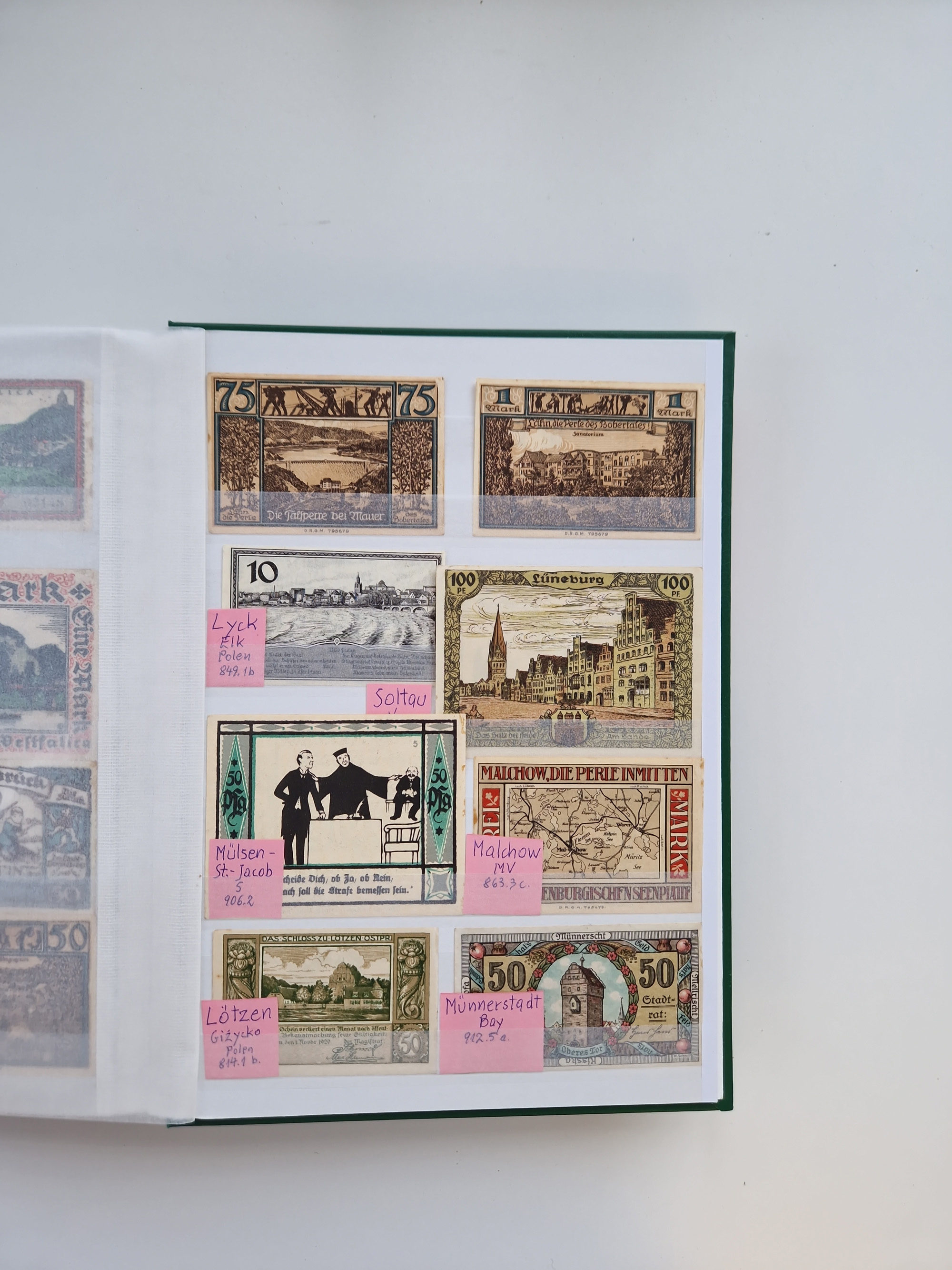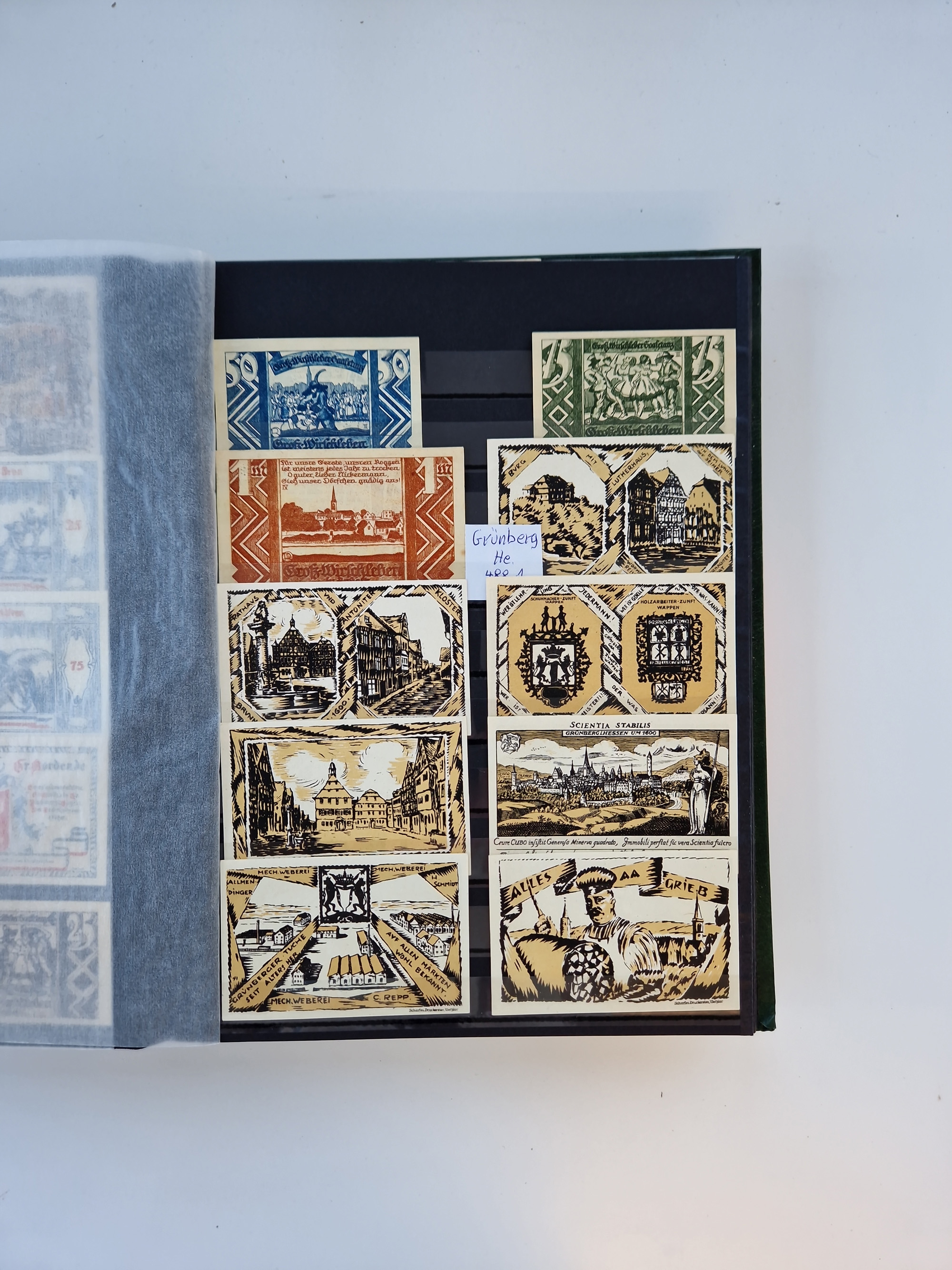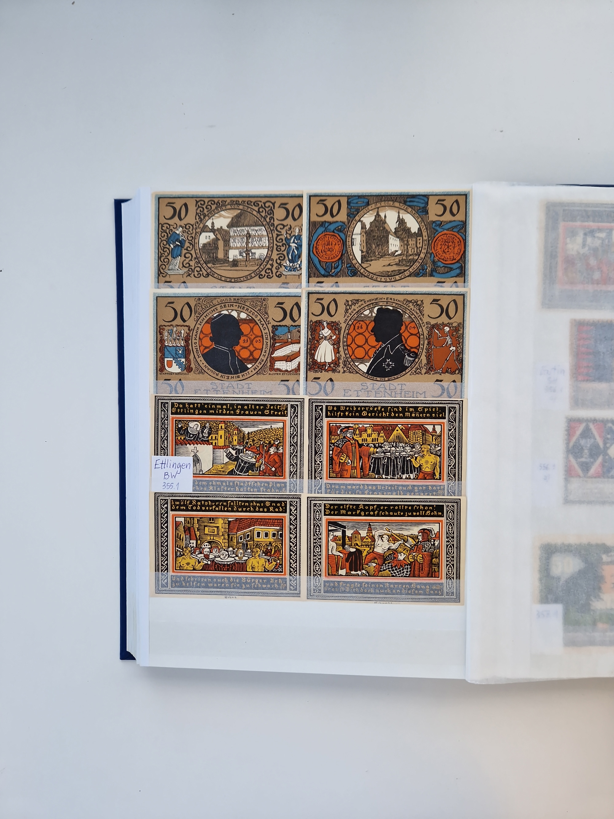 Notgeld-Serienscheine, saubere Sammlung in 16 meist dicken Steckalben, sauber nach Orten und Serien sortiert, überschlägig etwa 7/8000 Stück, dazu 4 Kataloge