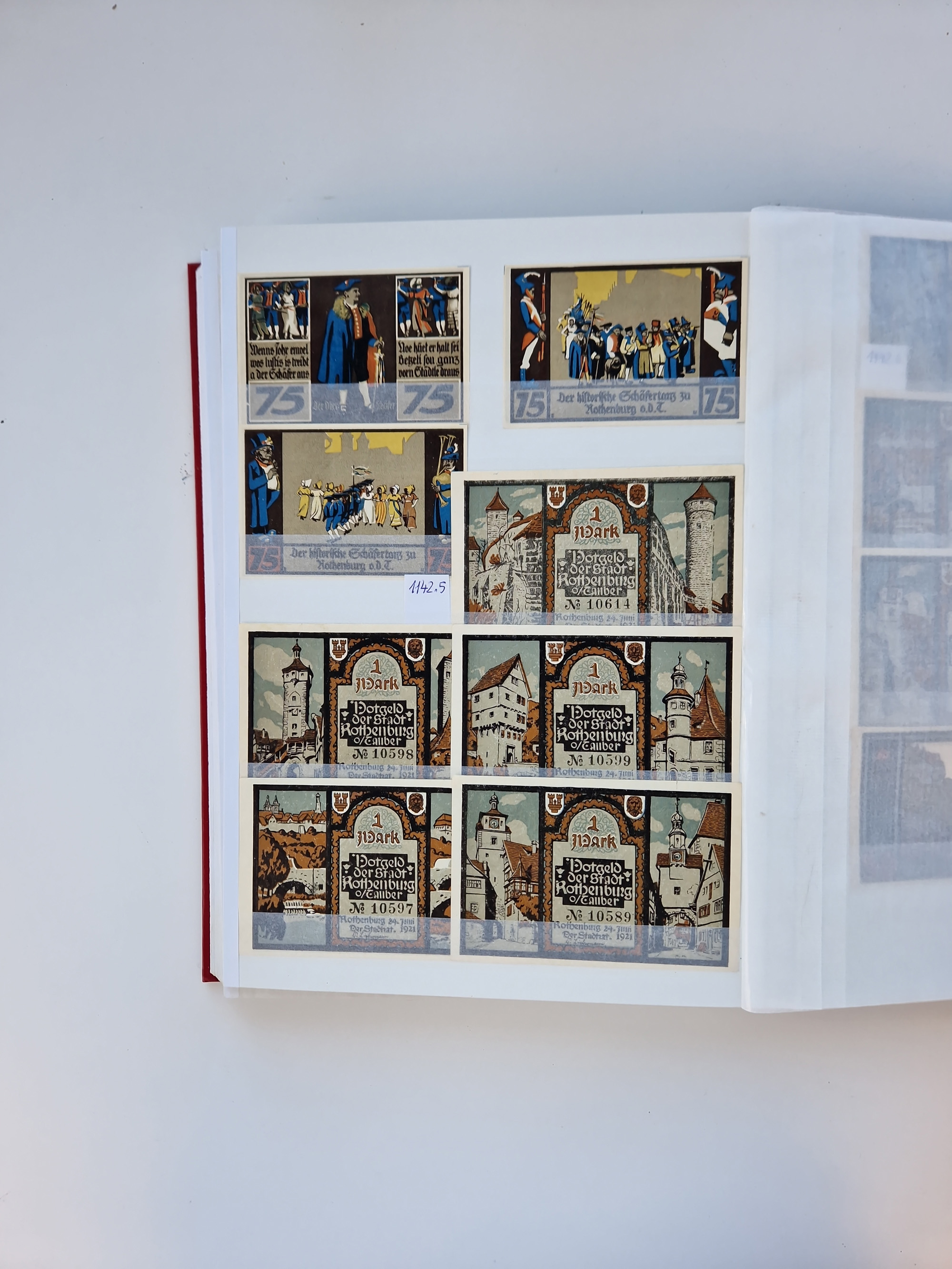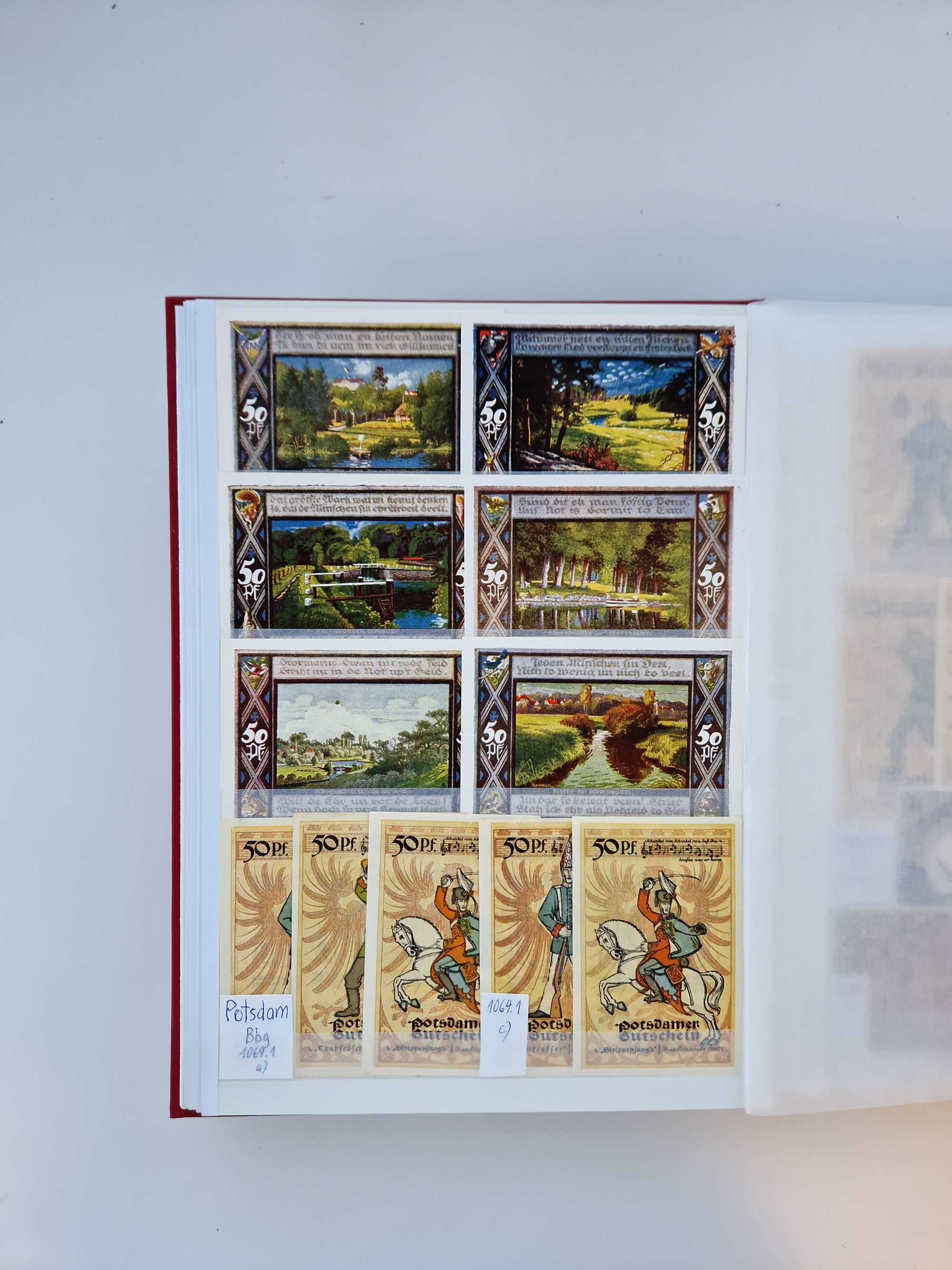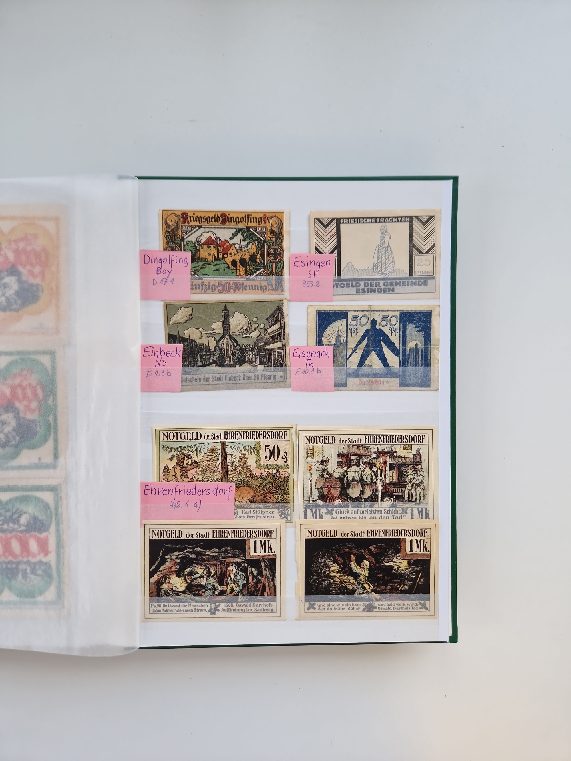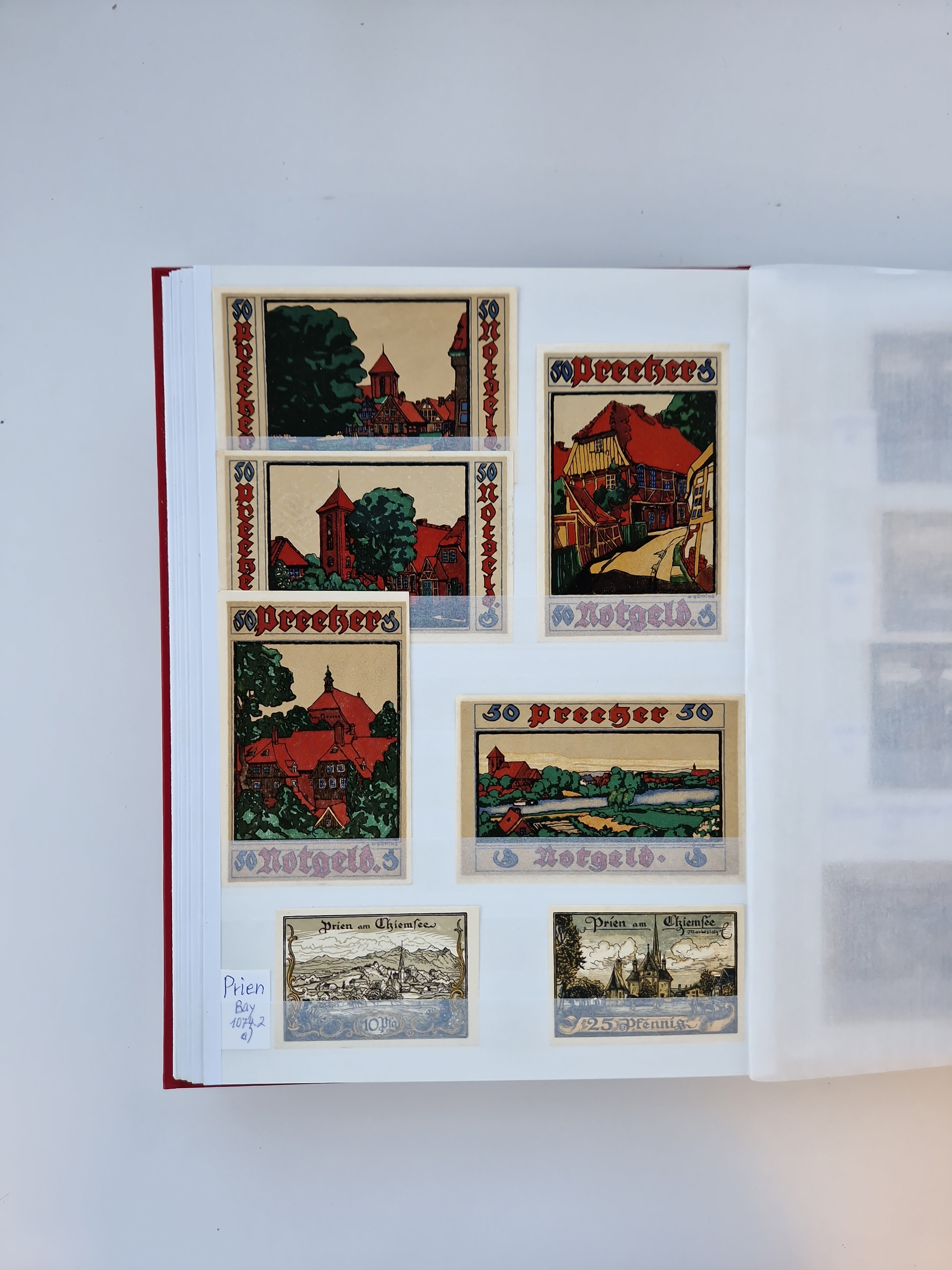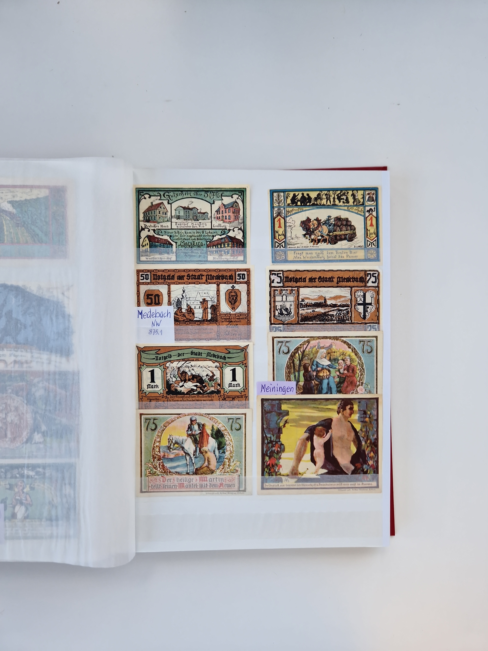 Notgeld-Serienscheine, saubere Sammlung in 16 meist dicken Steckalben, sauber nach Orten und Serien sortiert, überschlägig etwa 7/8000 Stück, dazu 4 Kataloge