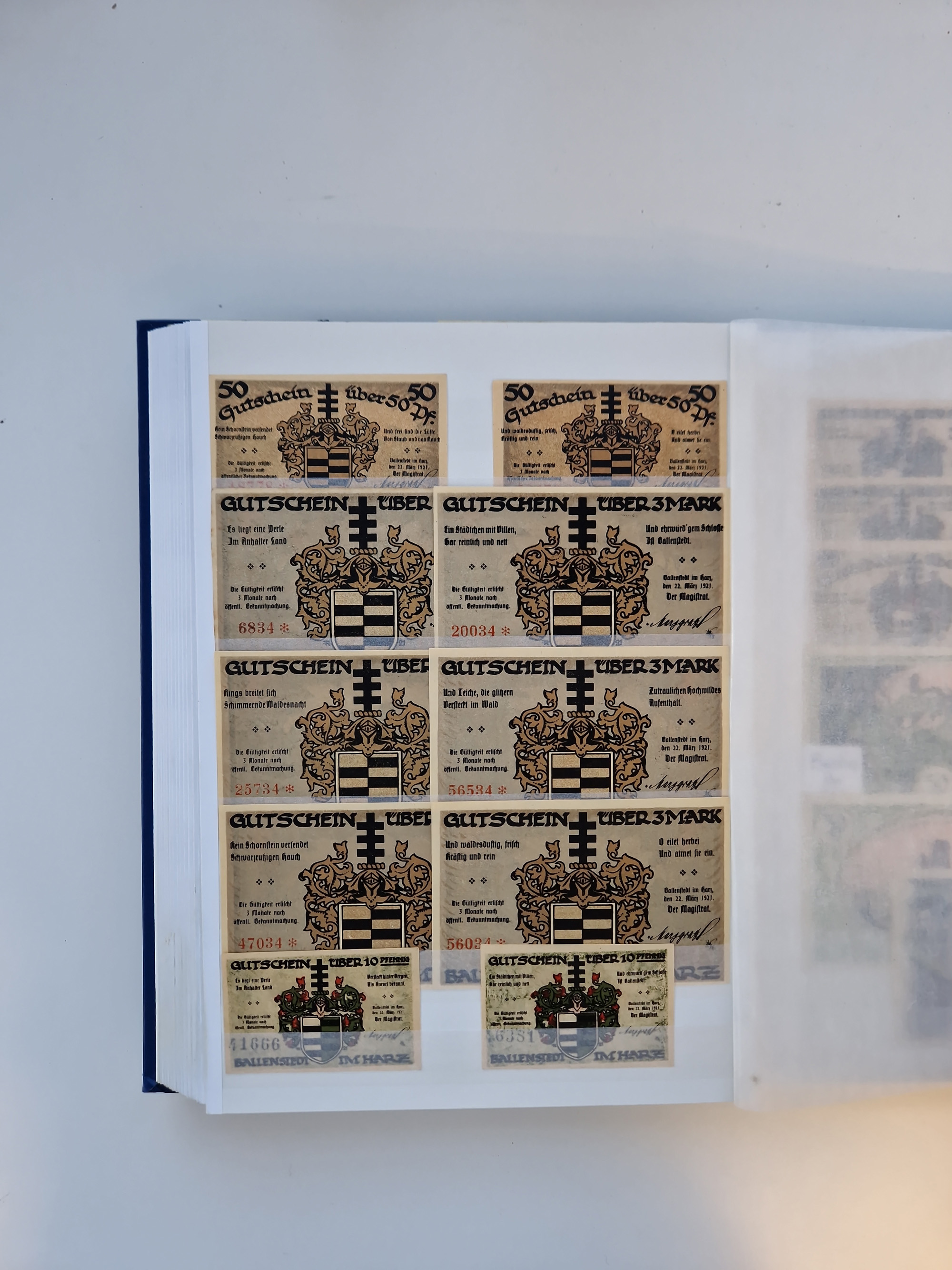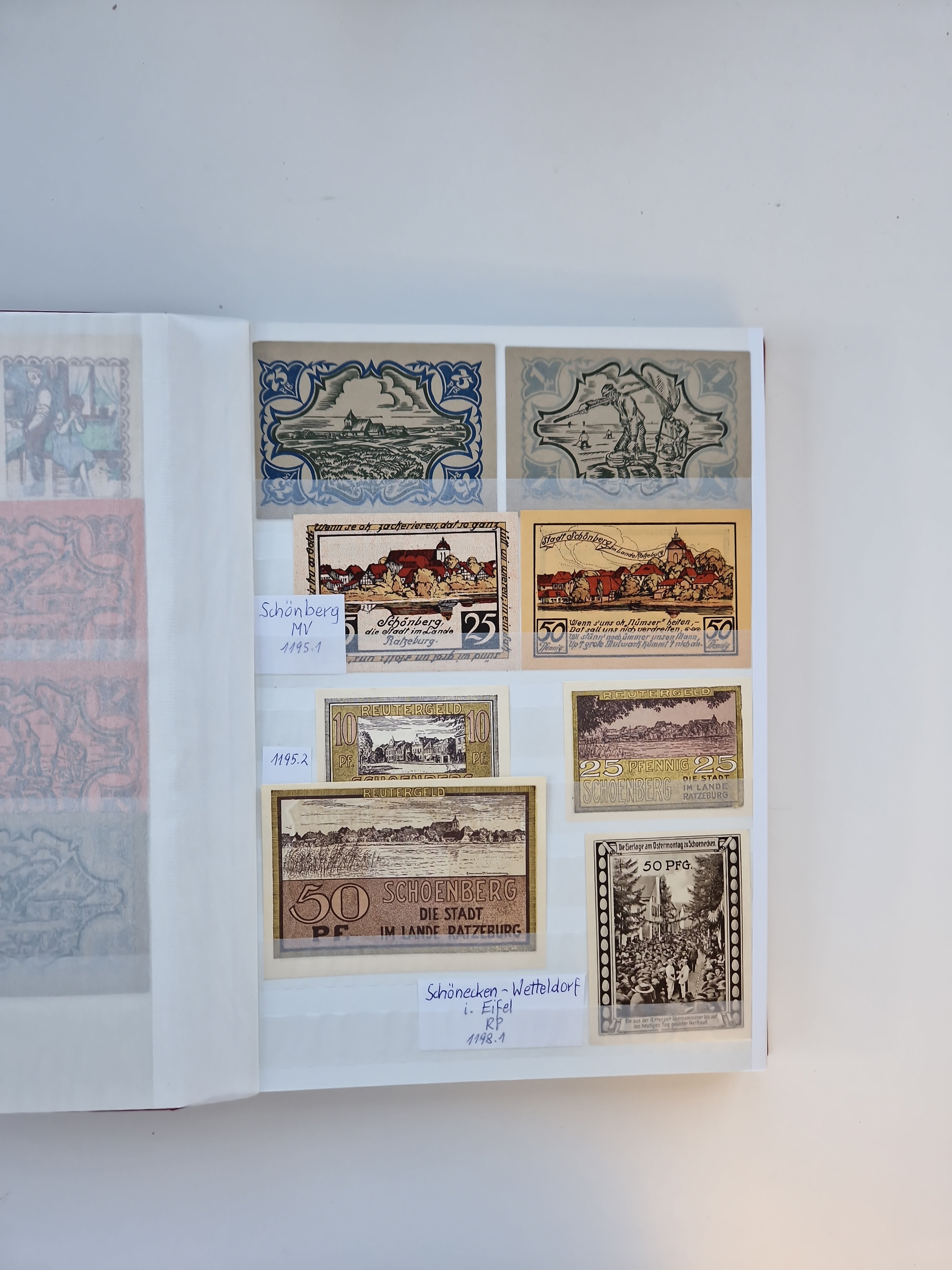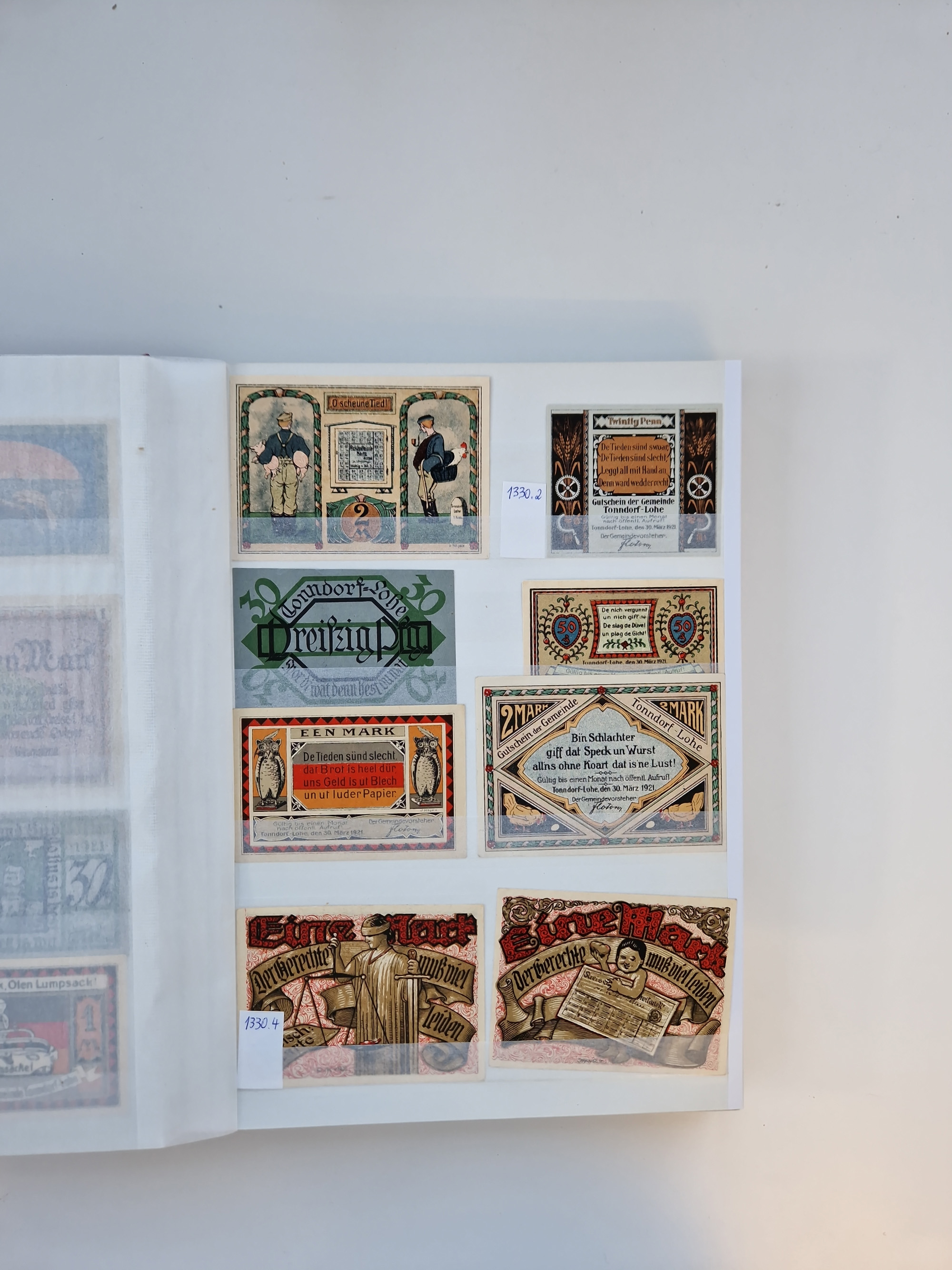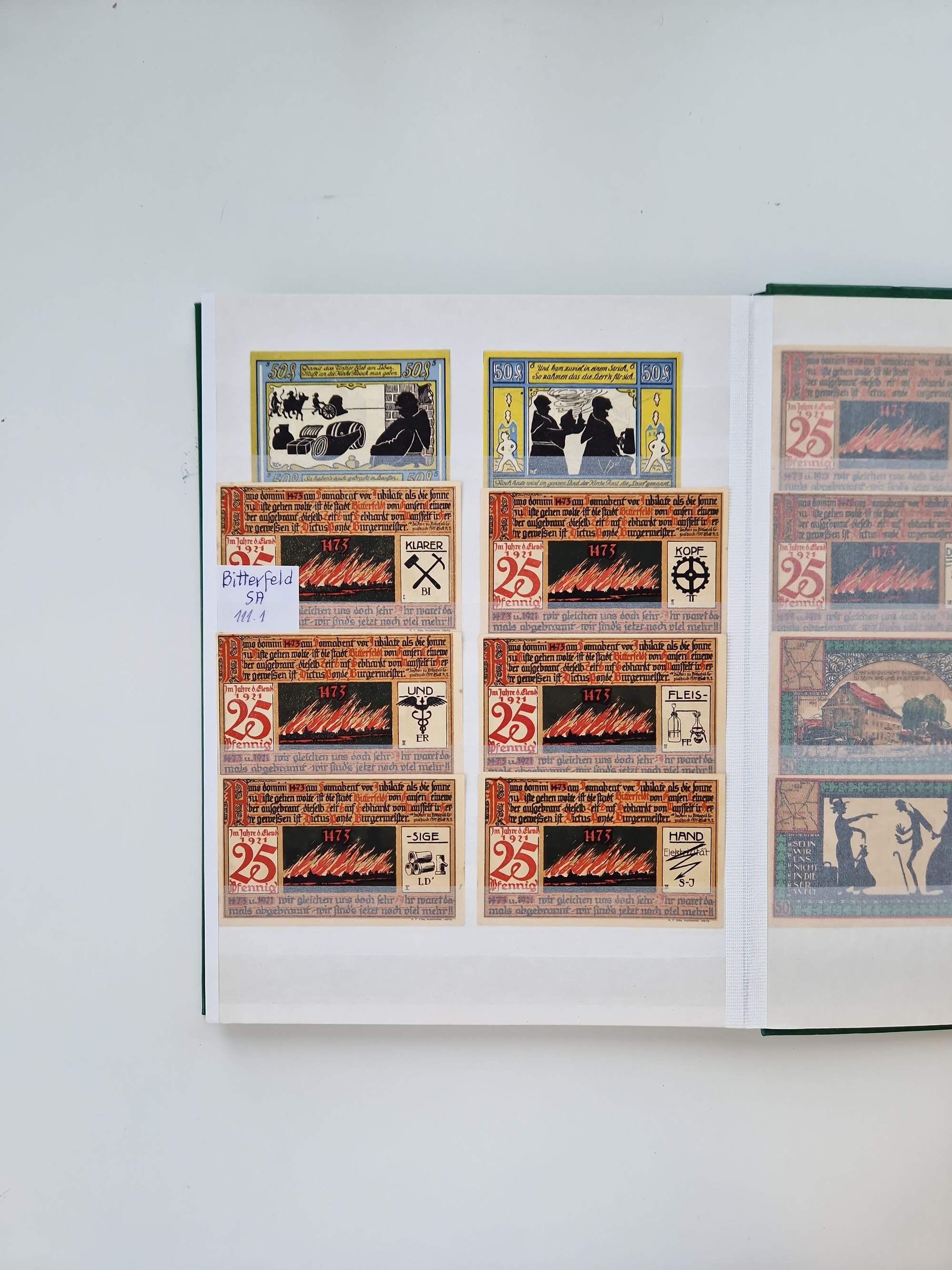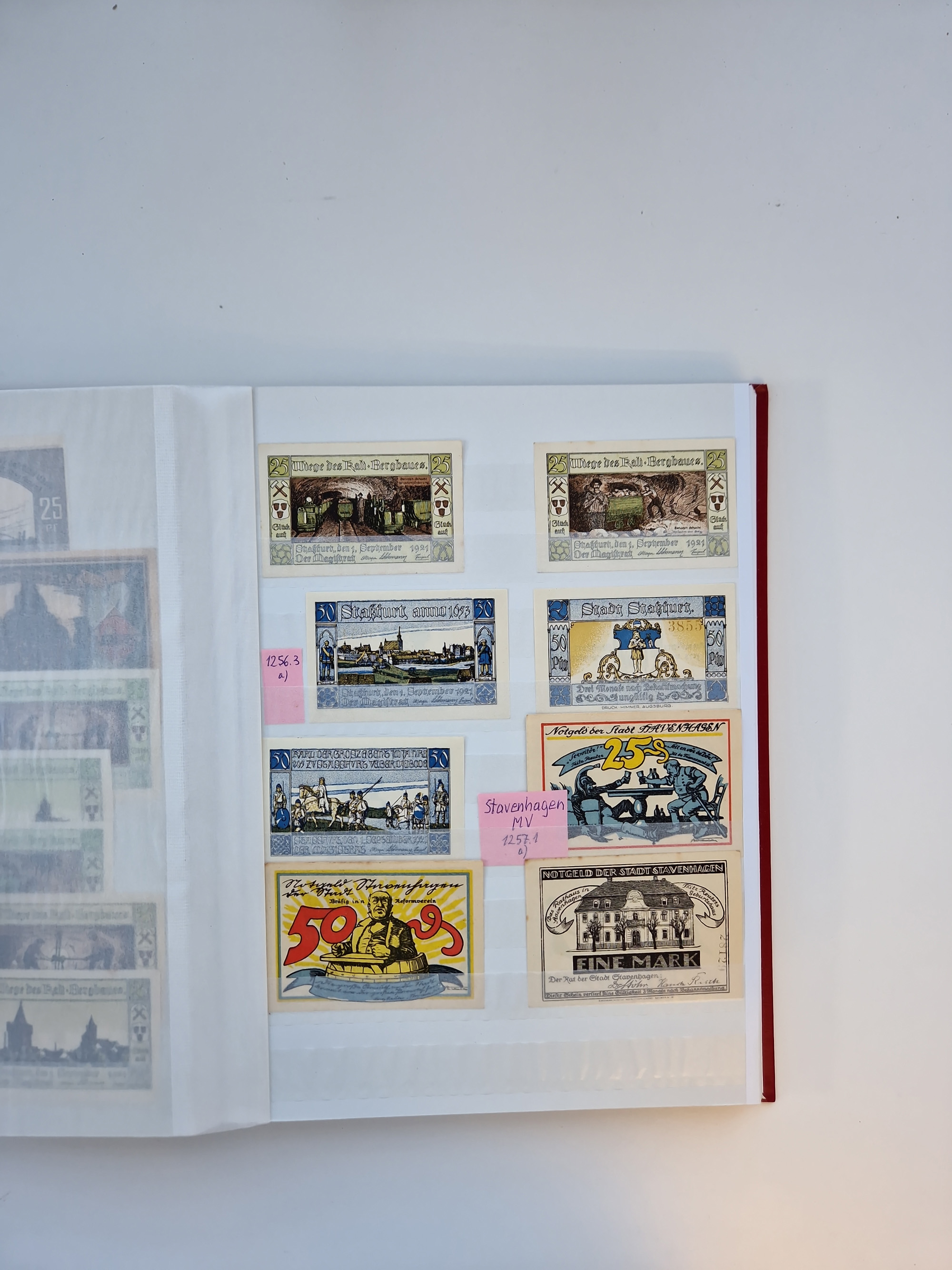 Notgeld-Serienscheine, saubere Sammlung in 16 meist dicken Steckalben, sauber nach Orten und Serien sortiert, überschlägig etwa 7/8000 Stück, dazu 4 Kataloge