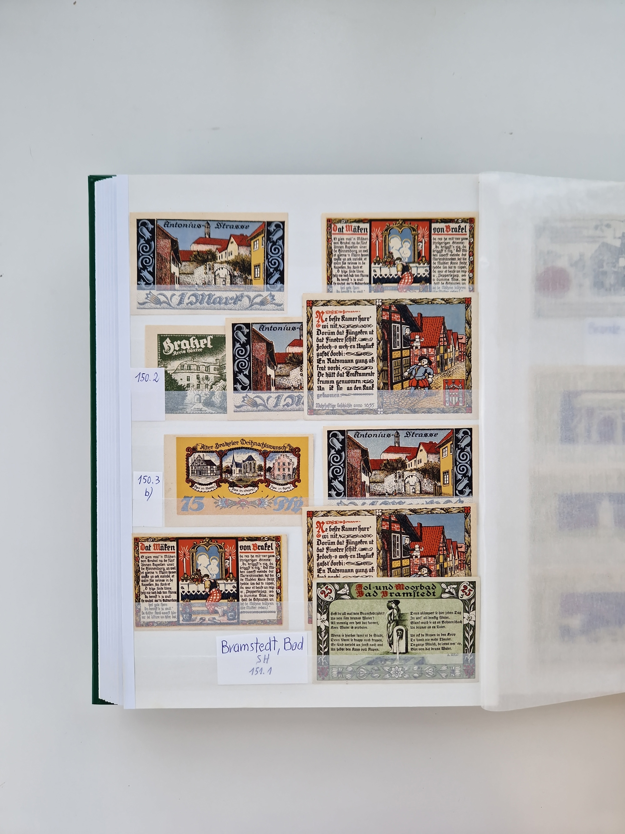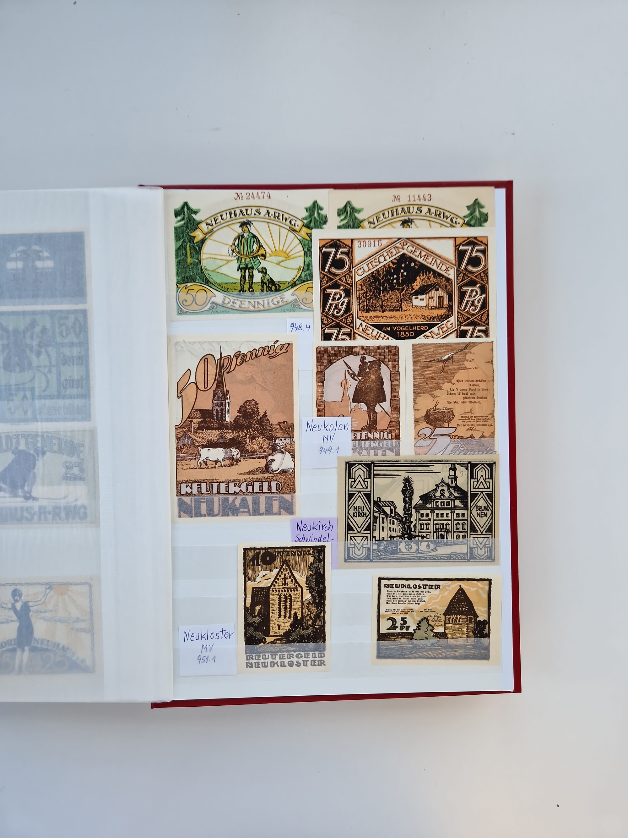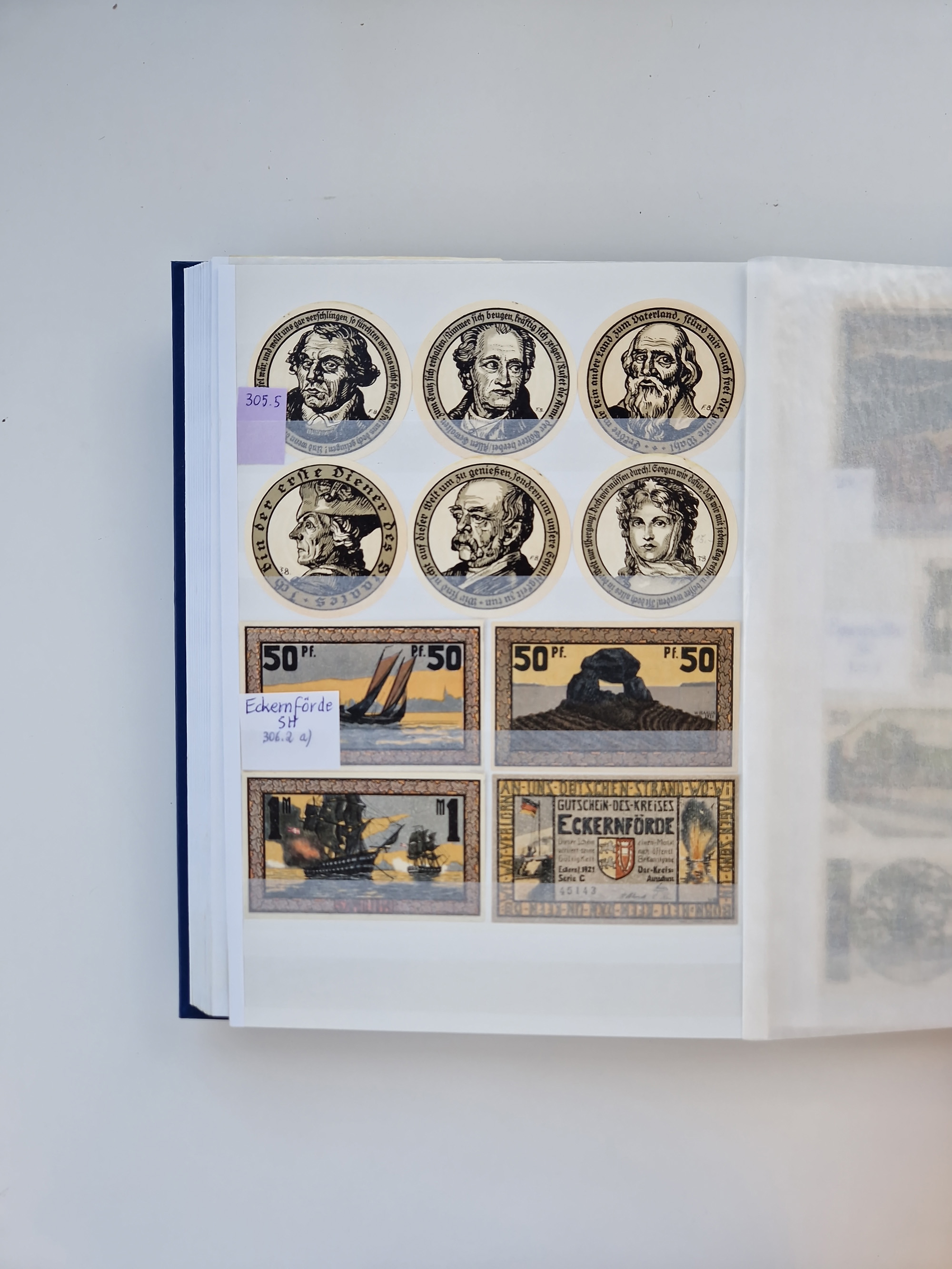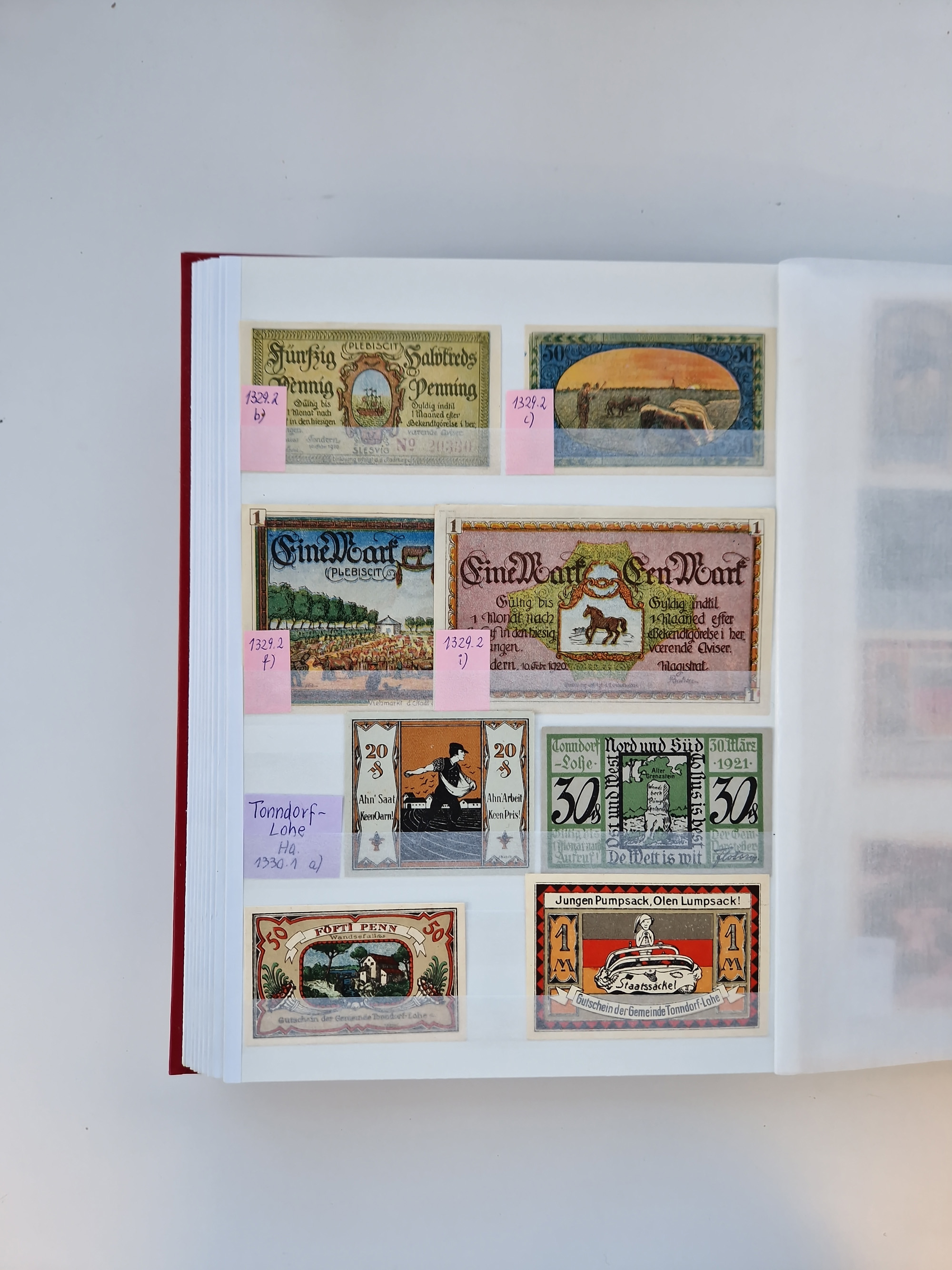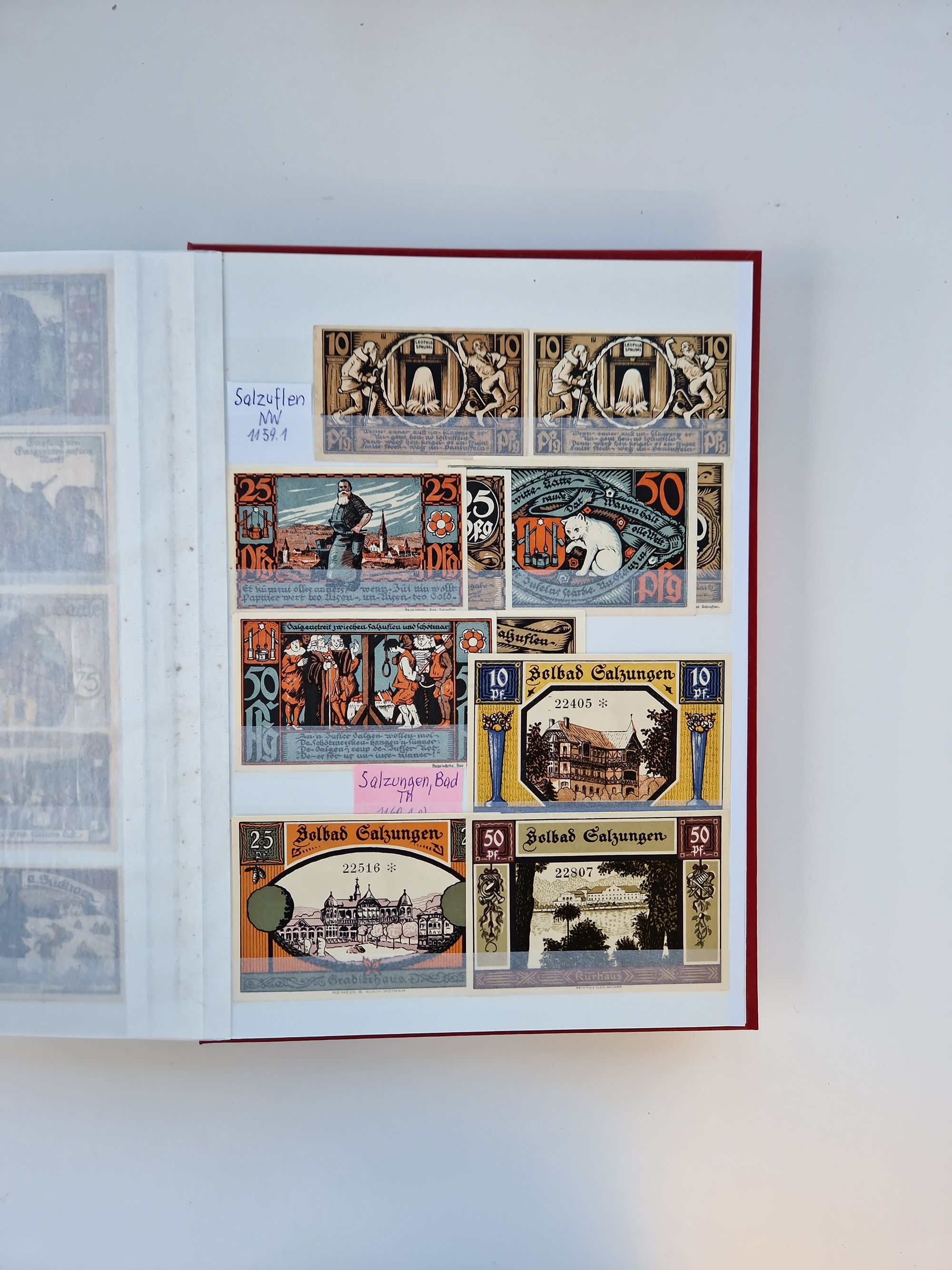Notgeld-Serienscheine, saubere Sammlung in 16 meist dicken Steckalben, sauber nach Orten und Serien sortiert, überschlägig etwa 7/8000 Stück, dazu 4 Kataloge