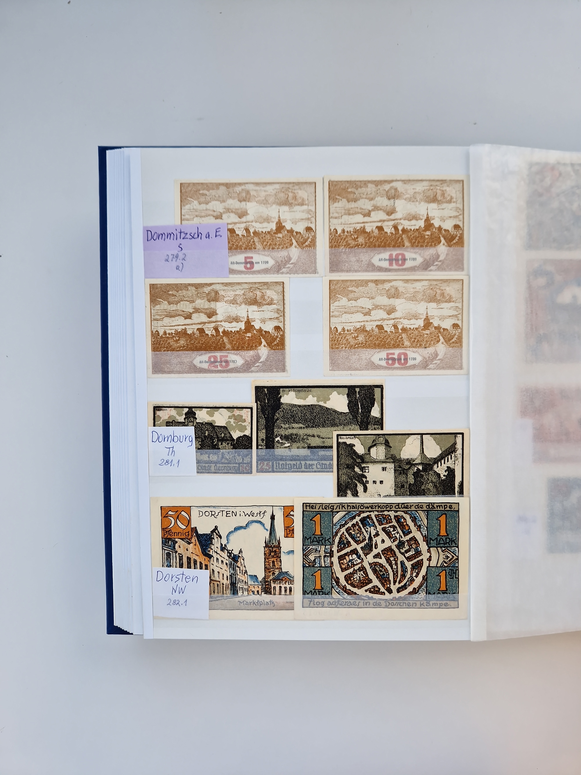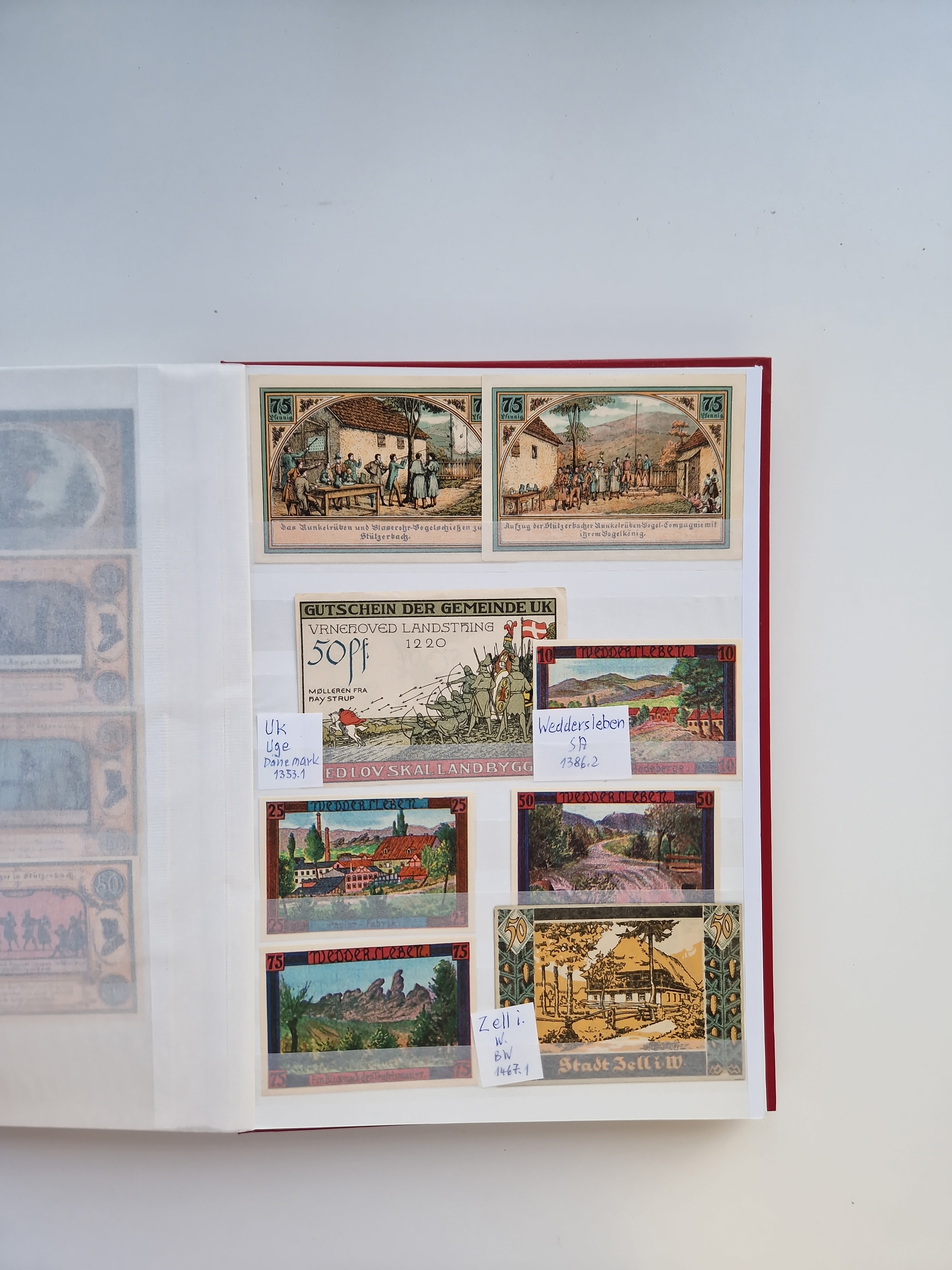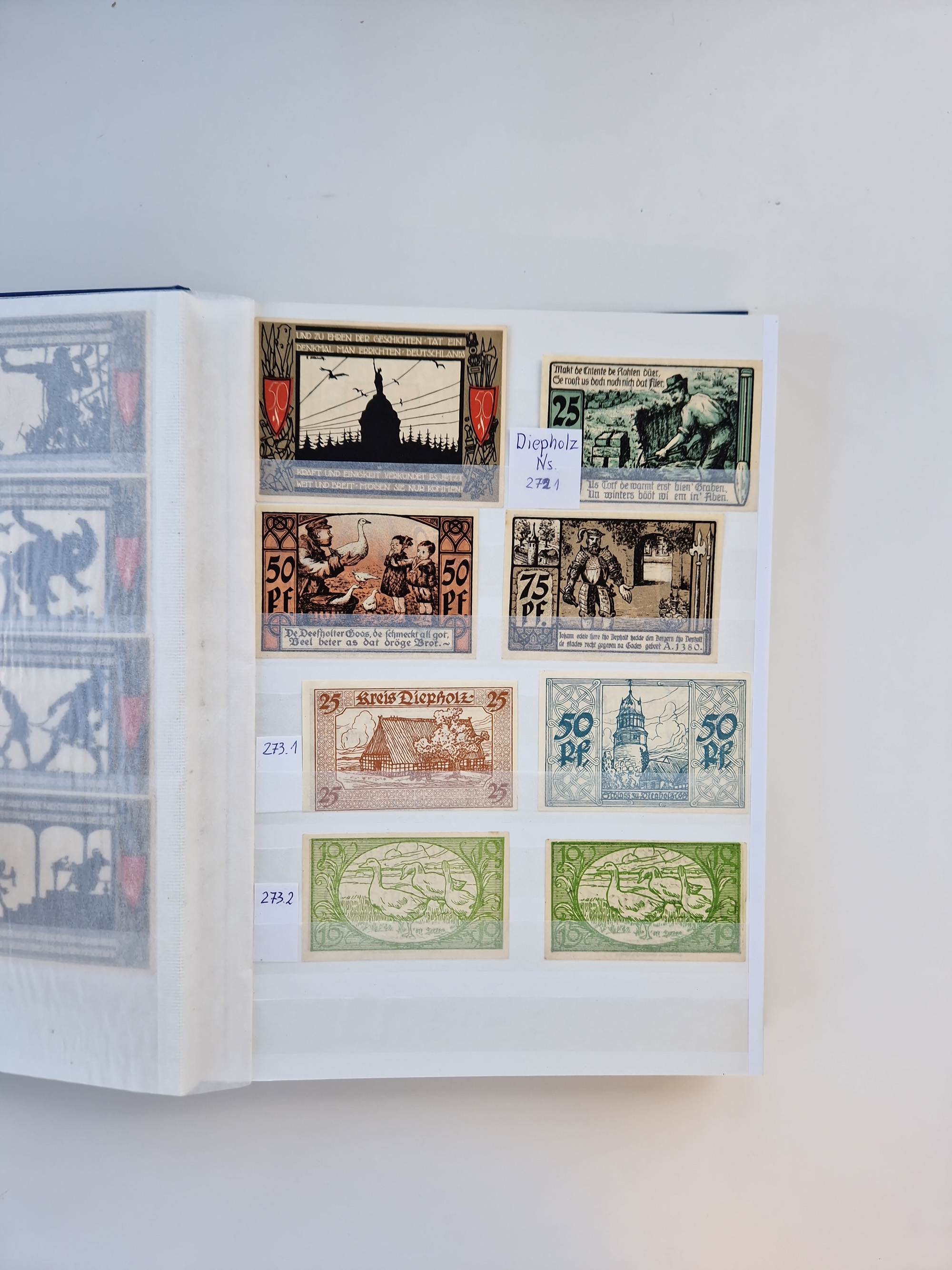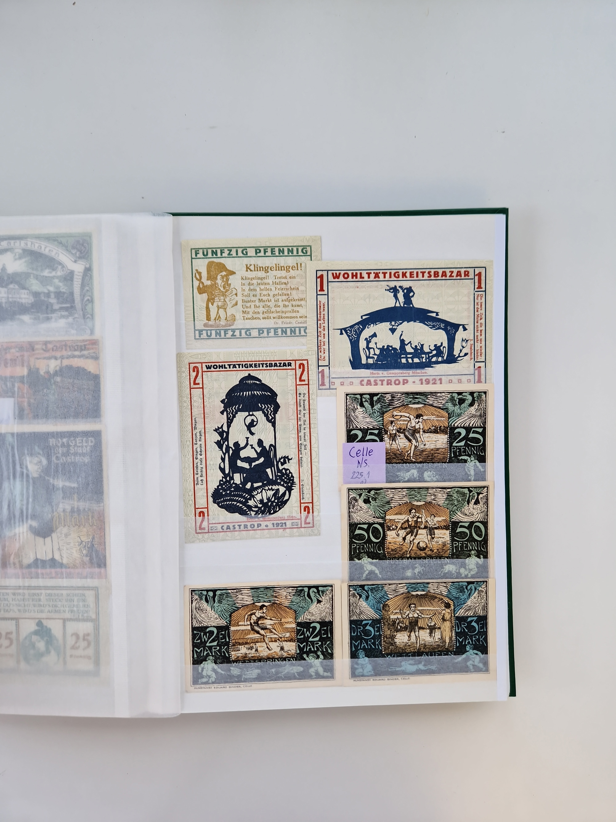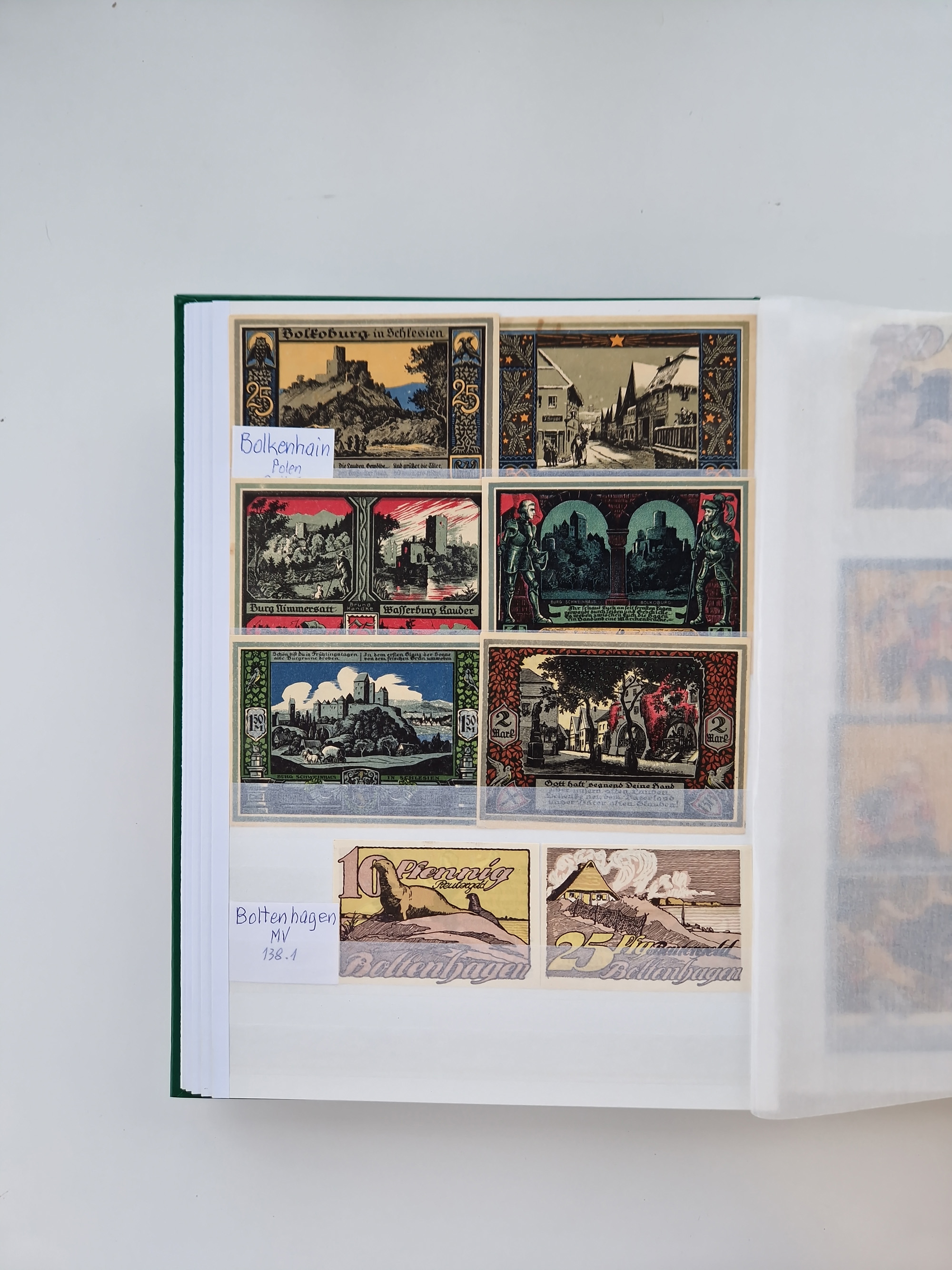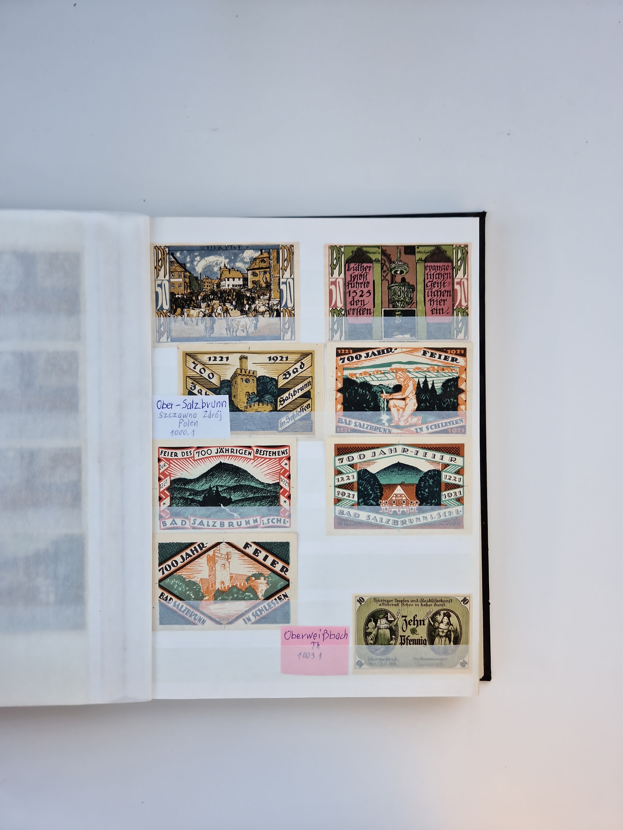 Notgeld-Serienscheine, saubere Sammlung in 16 meist dicken Steckalben, sauber nach Orten und Serien sortiert, überschlägig etwa 7/8000 Stück, dazu 4 Kataloge