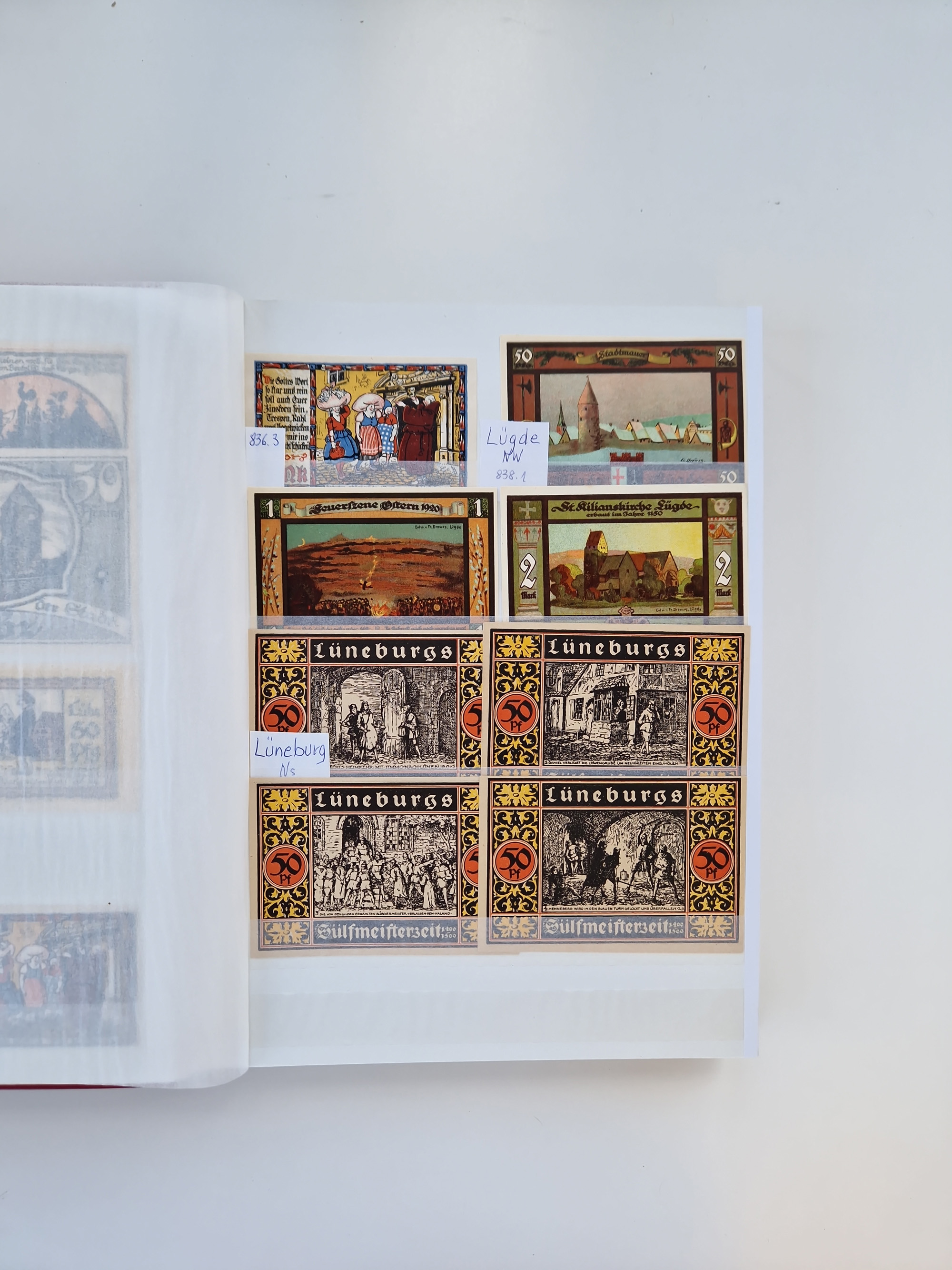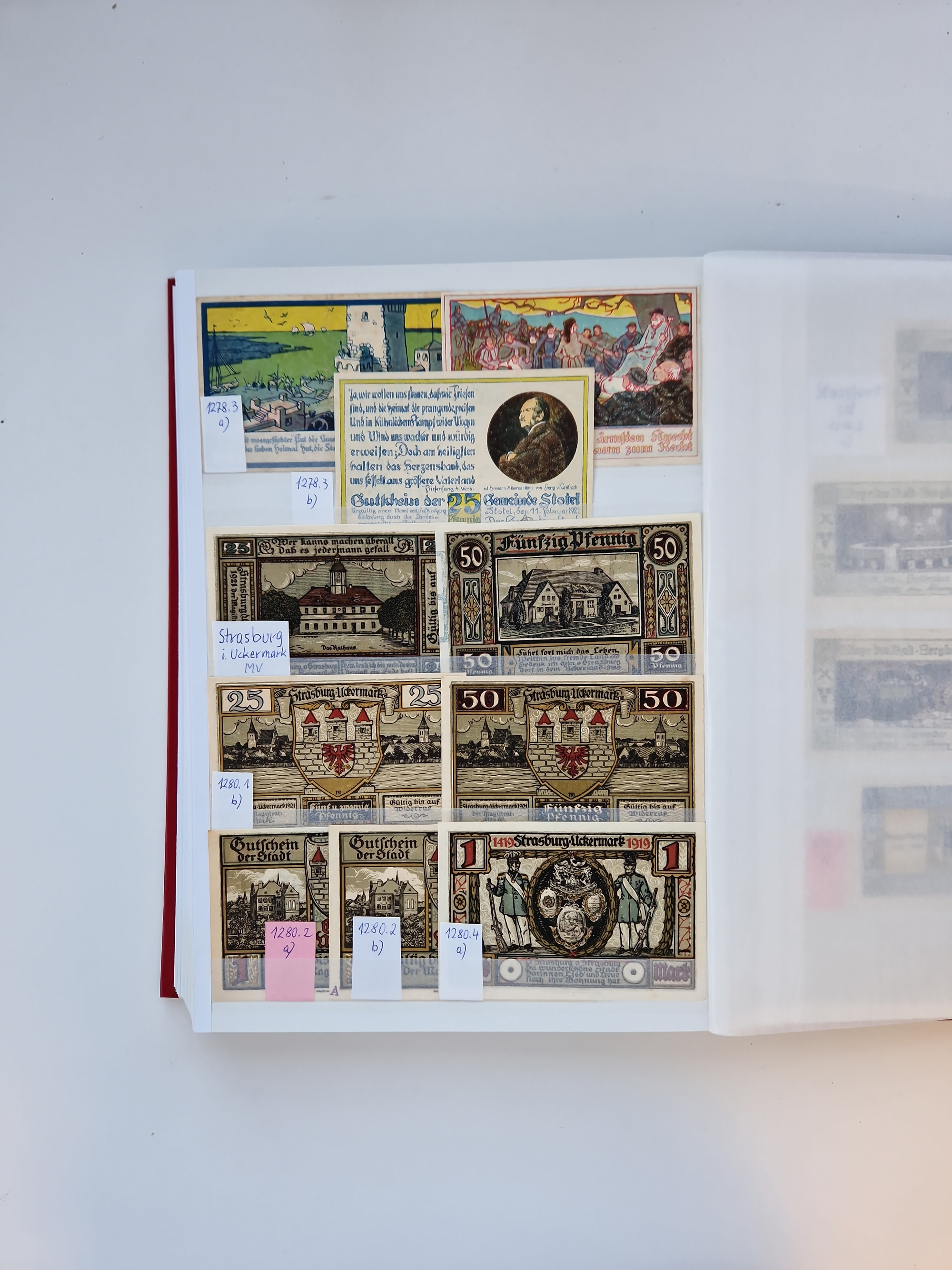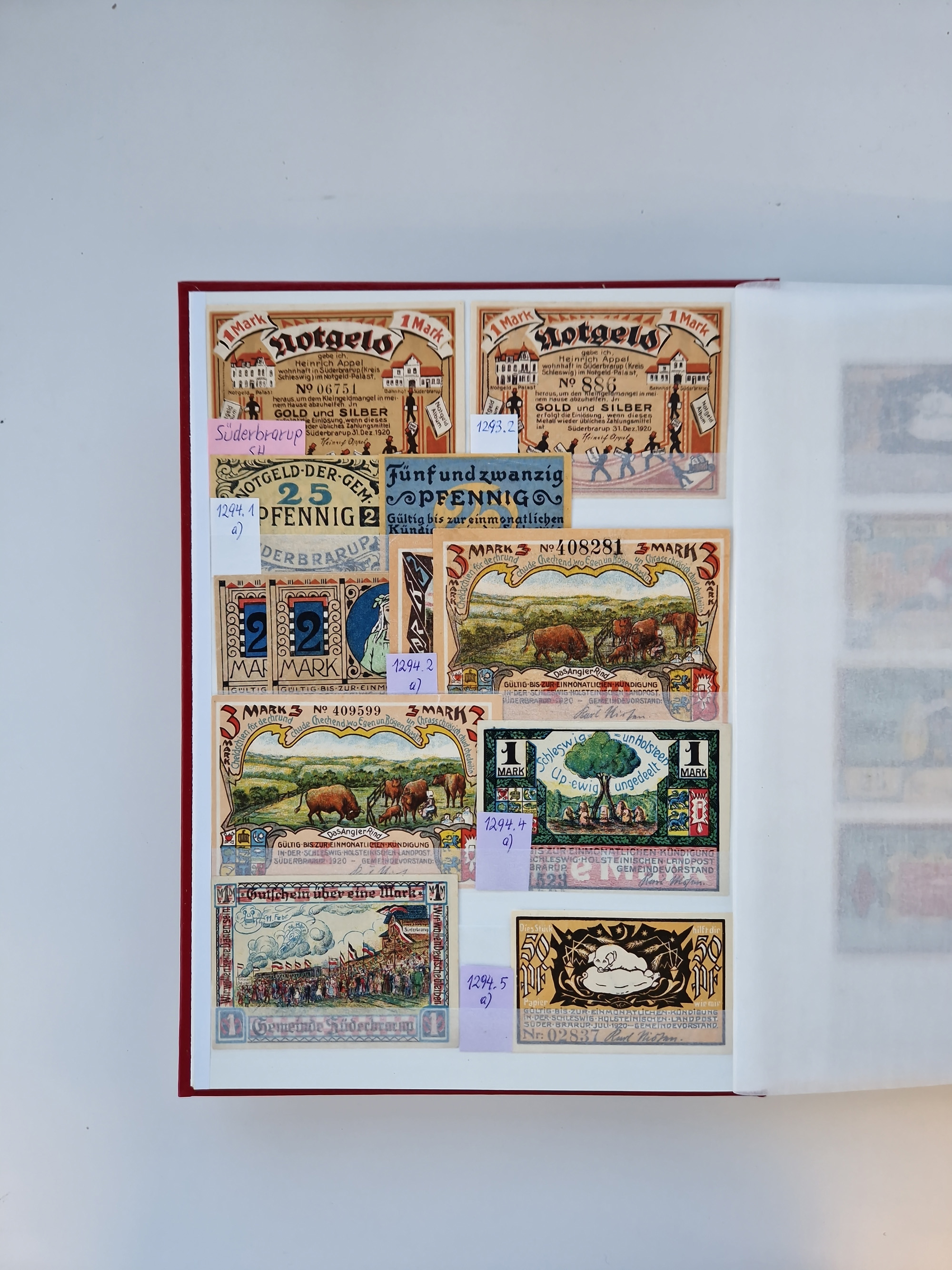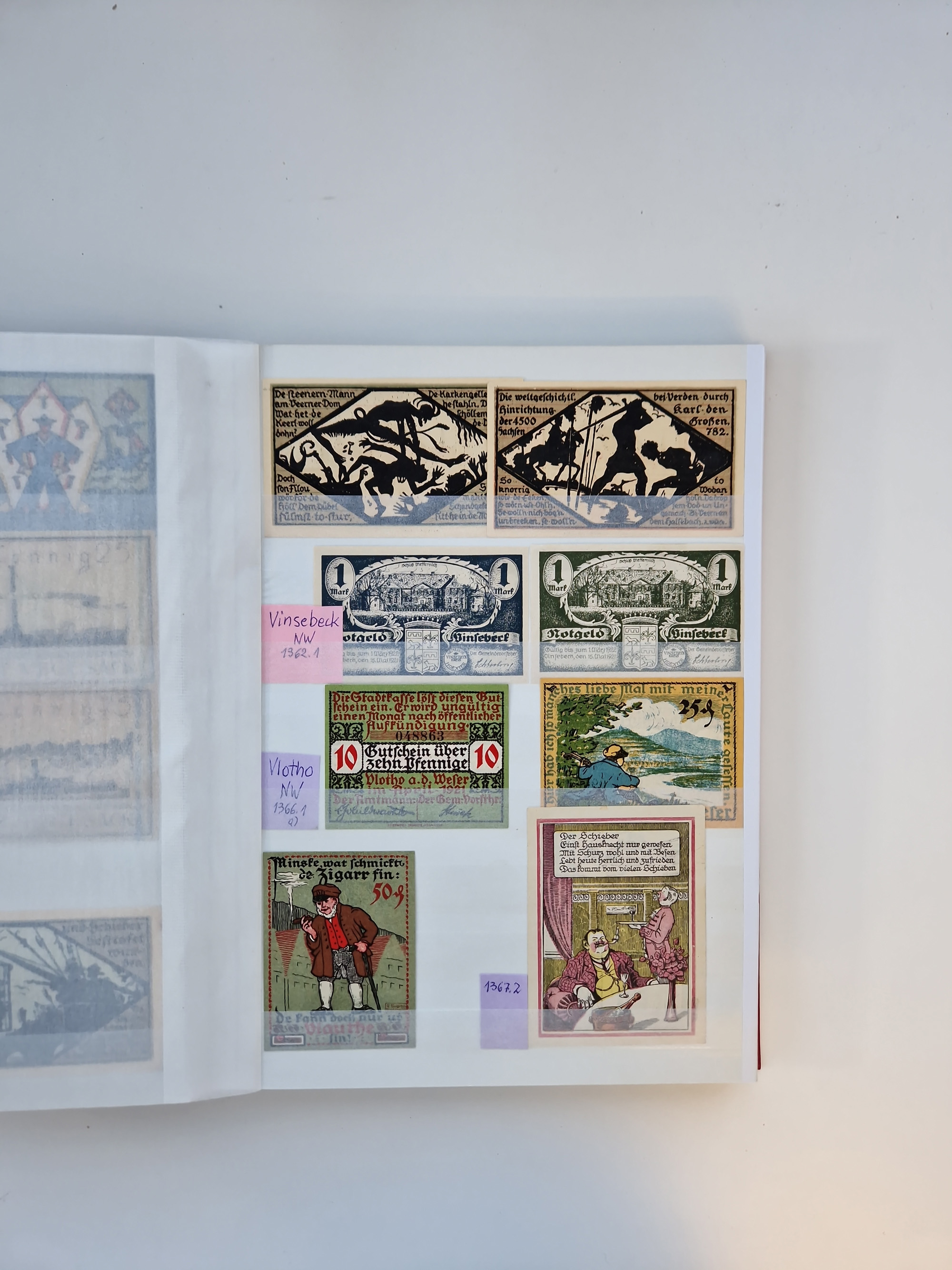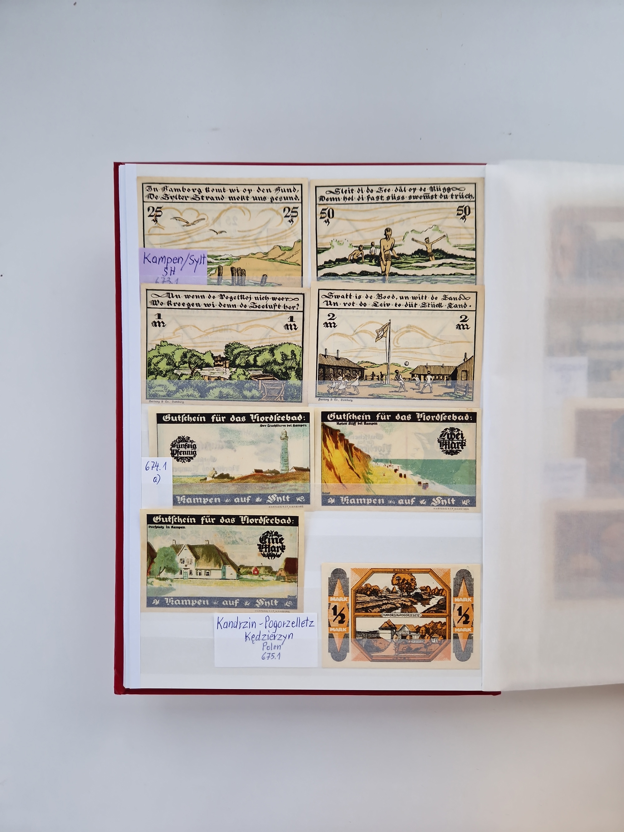 Notgeld-Serienscheine, saubere Sammlung in 16 meist dicken Steckalben, sauber nach Orten und Serien sortiert, überschlägig etwa 7/8000 Stück, dazu 4 Kataloge
