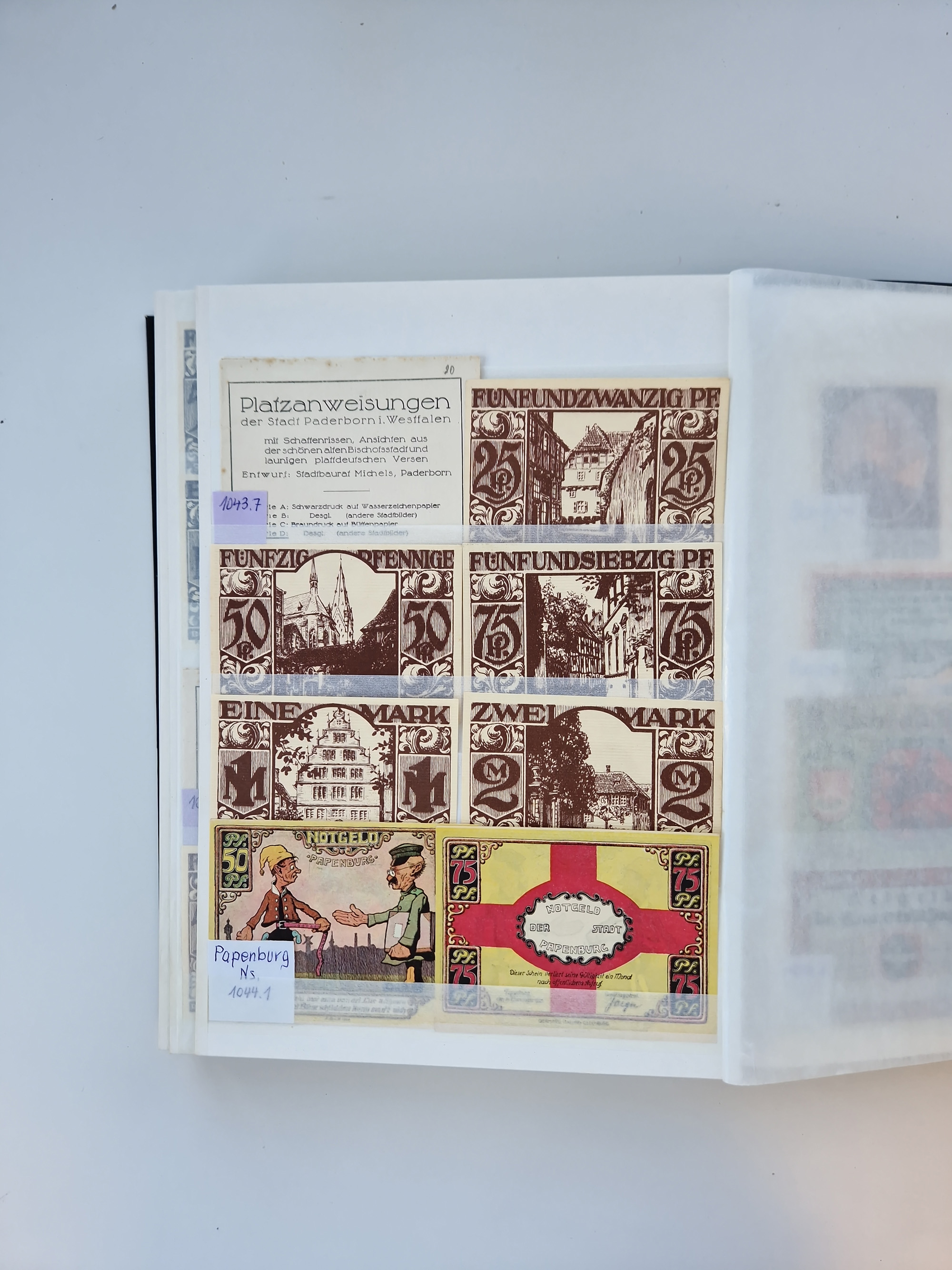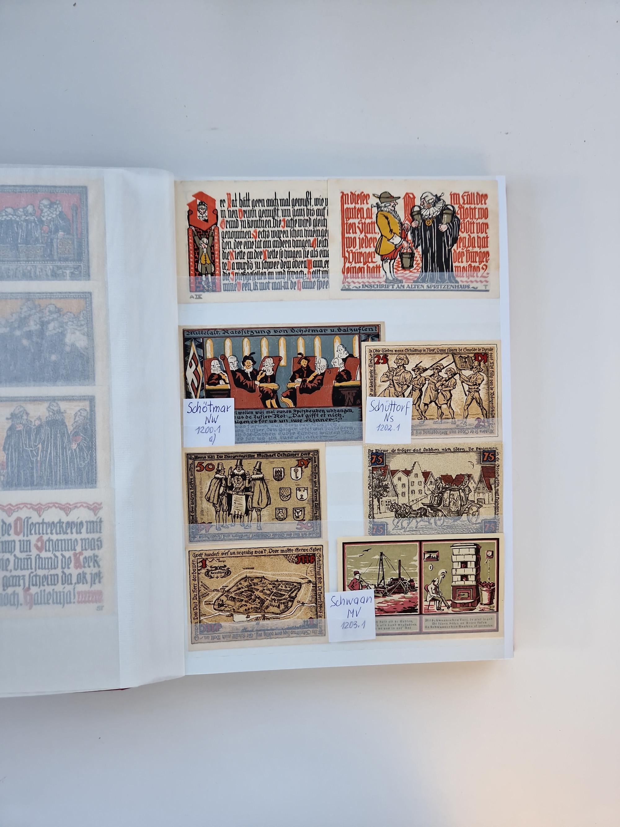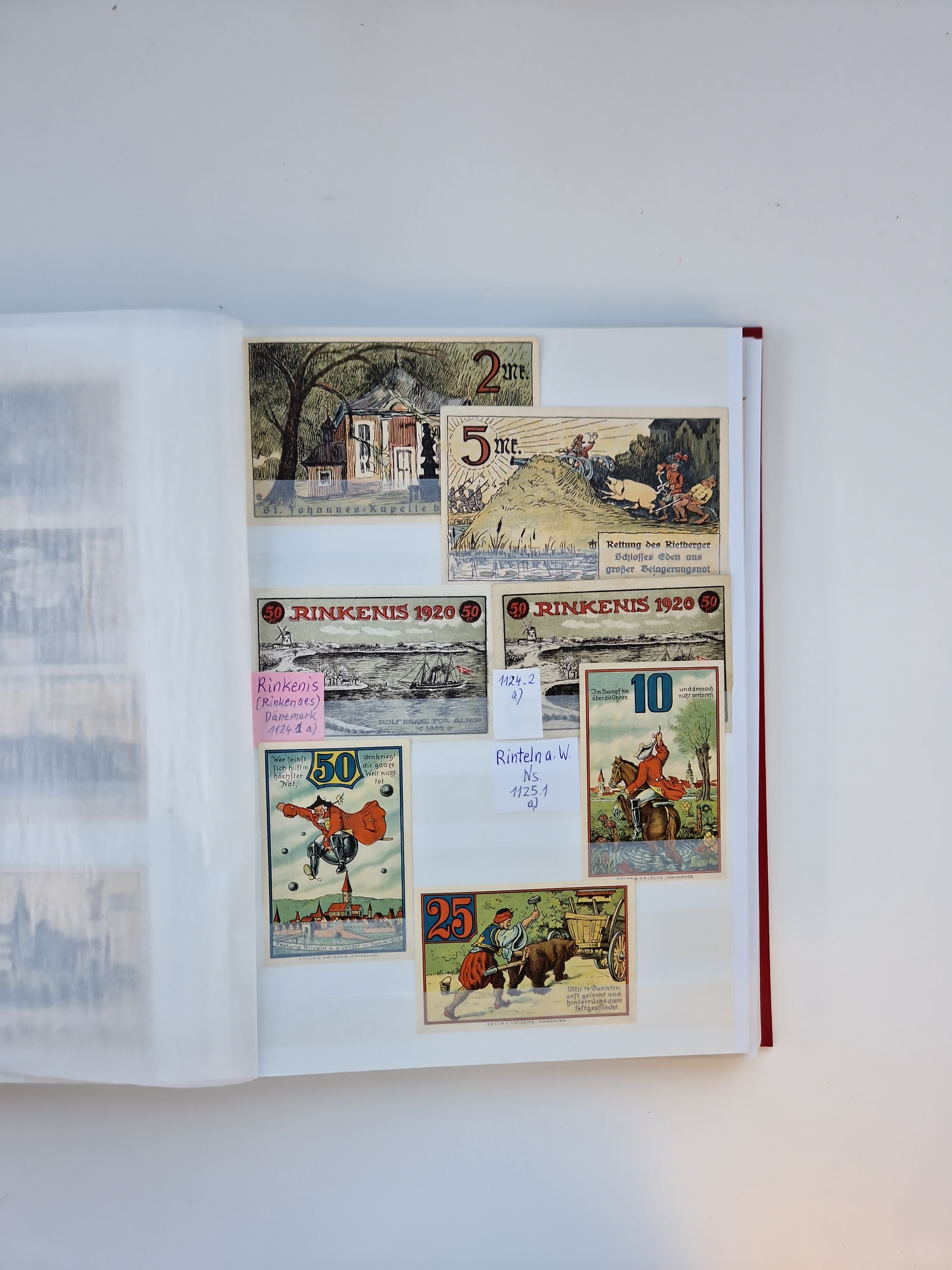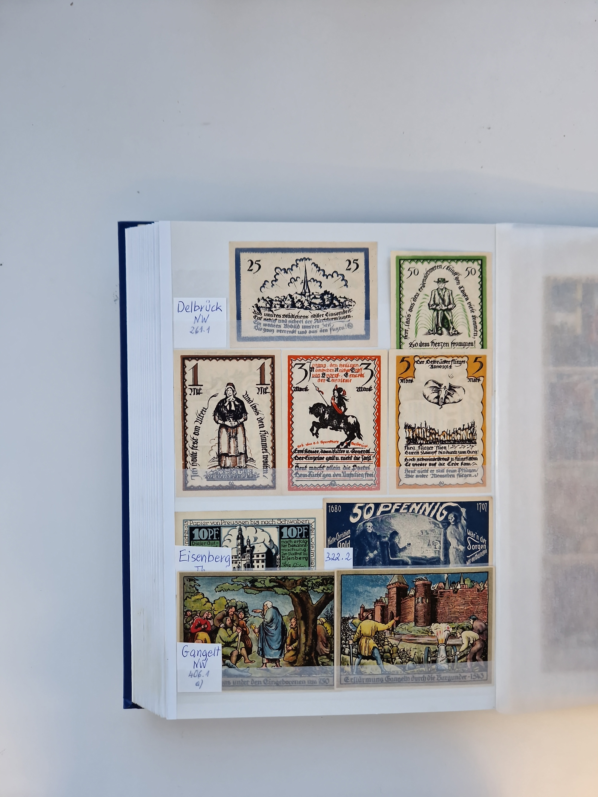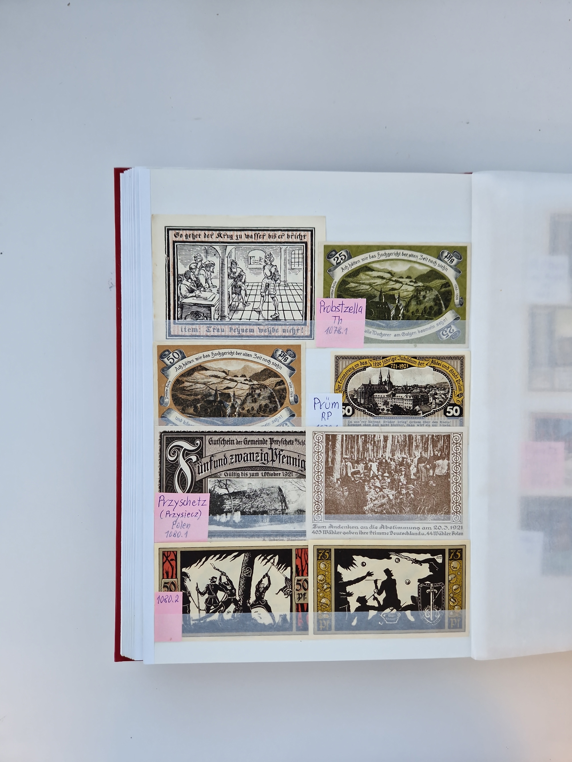 Notgeld-Serienscheine, saubere Sammlung in 16 meist dicken Steckalben, sauber nach Orten und Serien sortiert, überschlägig etwa 7/8000 Stück, dazu 4 Kataloge