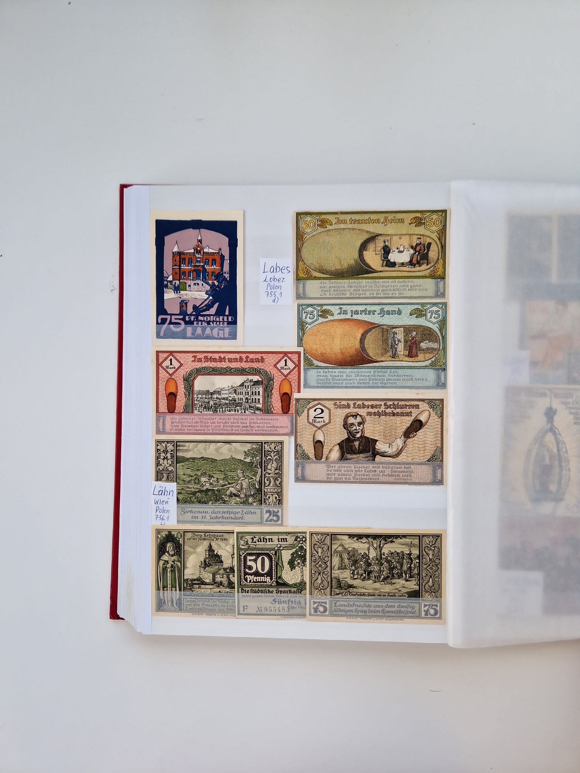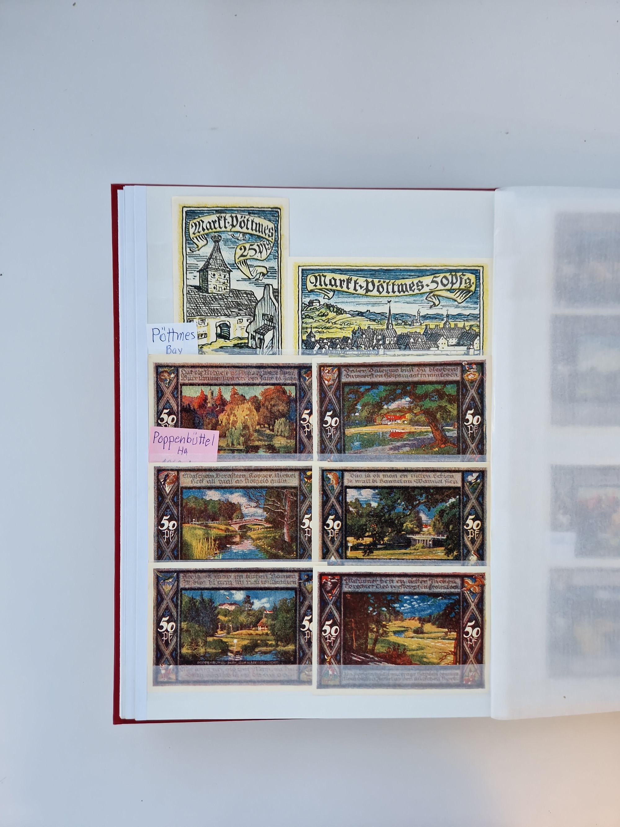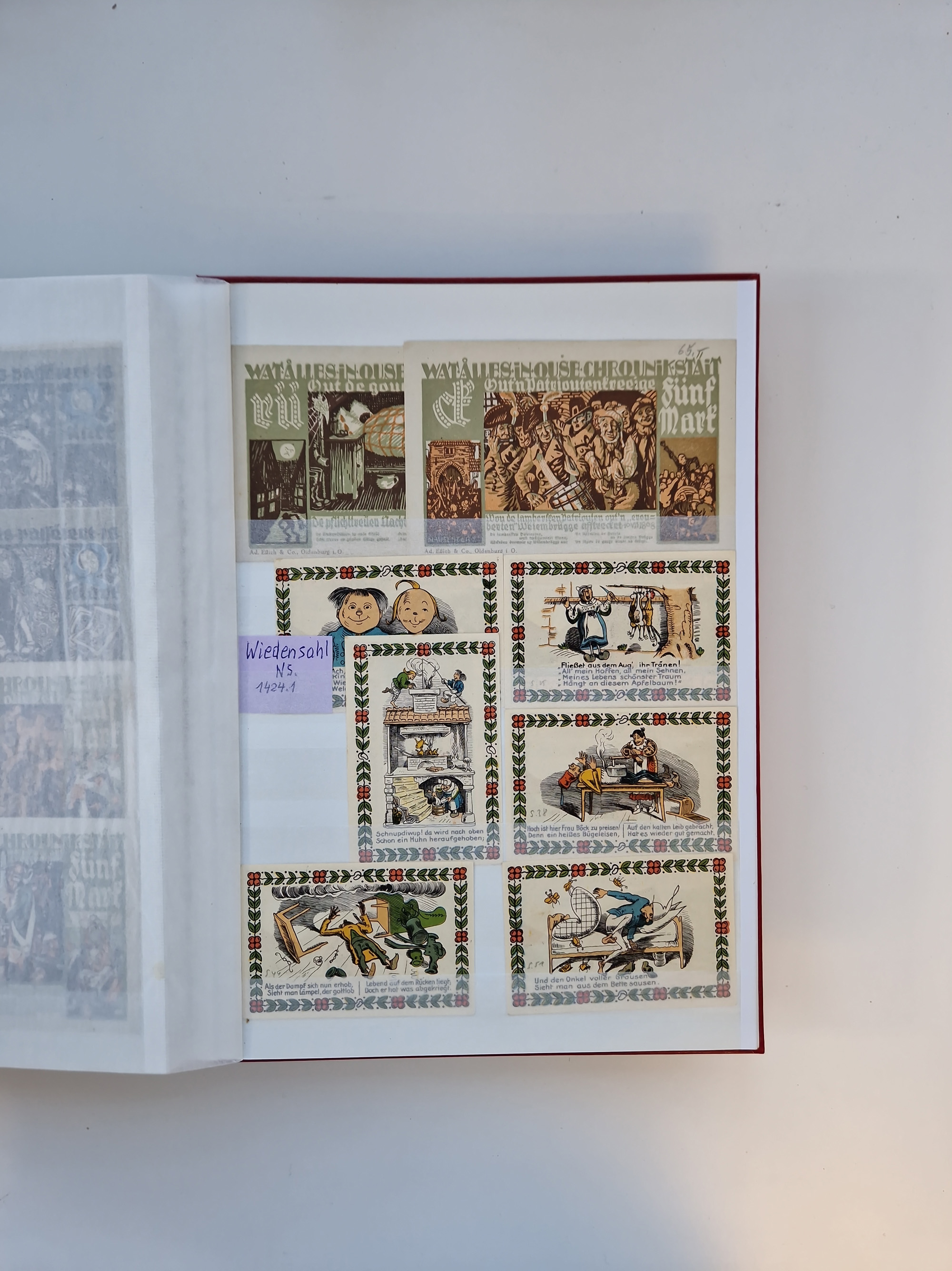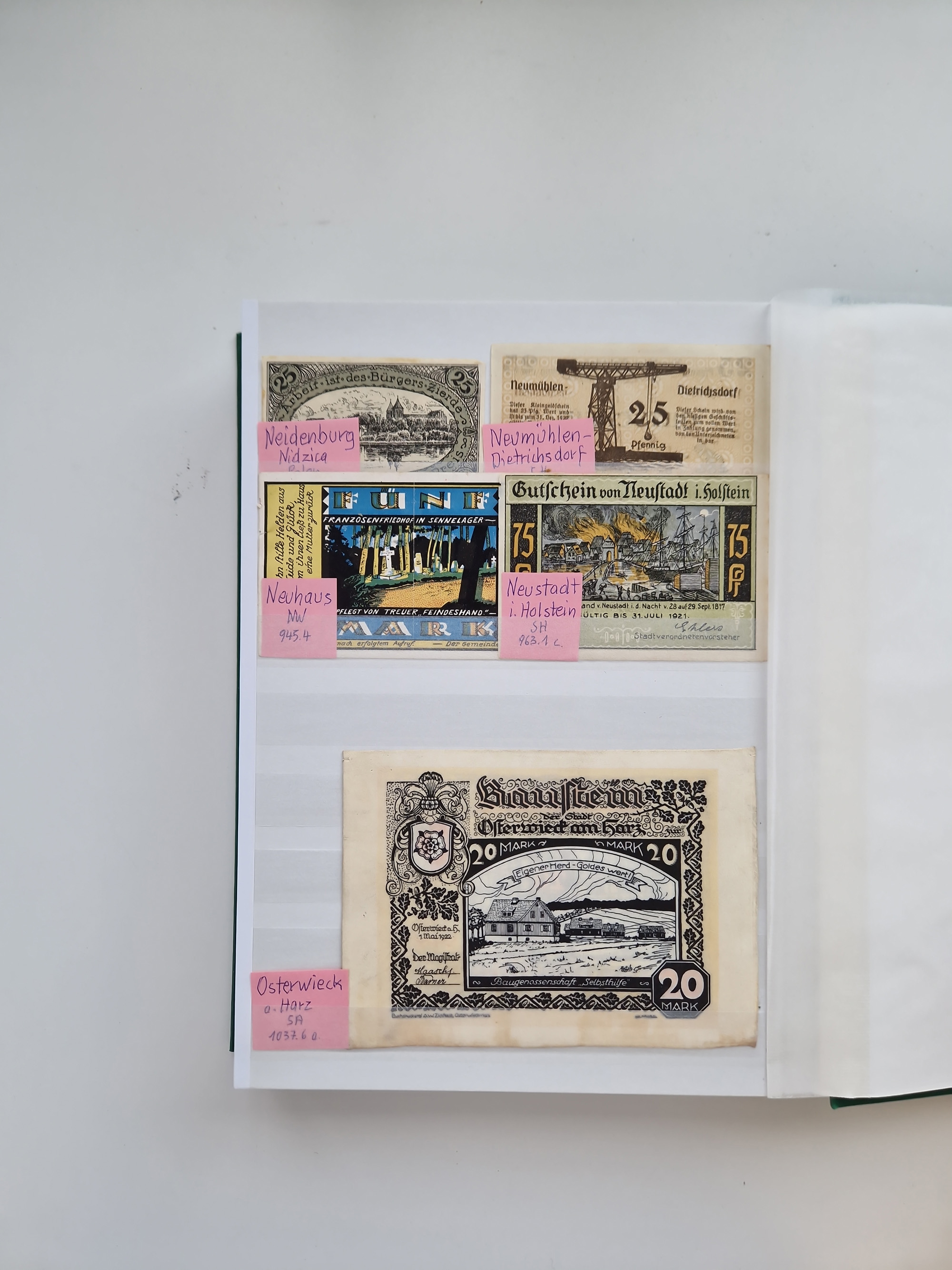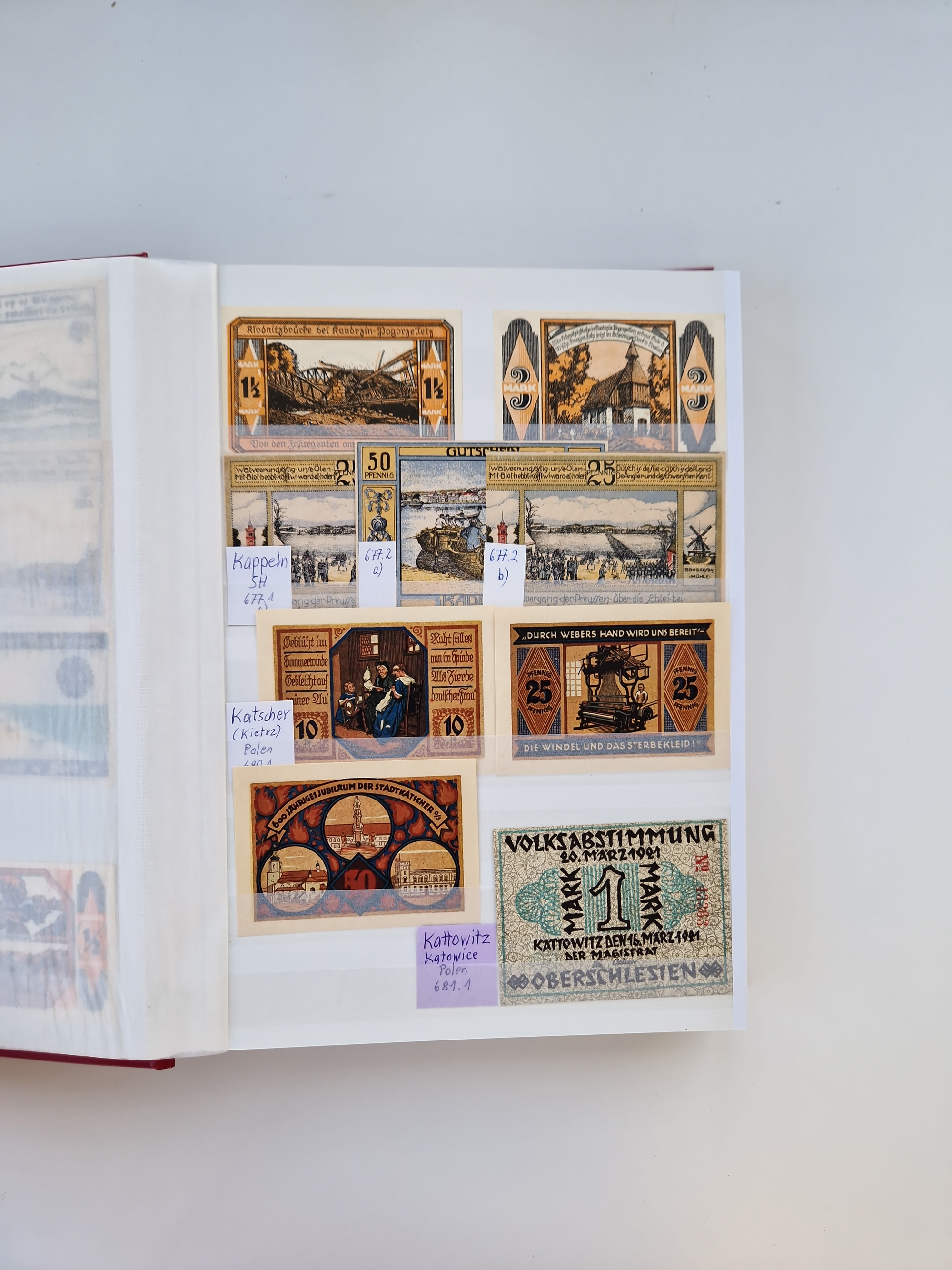 Notgeld-Serienscheine, saubere Sammlung in 16 meist dicken Steckalben, sauber nach Orten und Serien sortiert, überschlägig etwa 7/8000 Stück, dazu 4 Kataloge