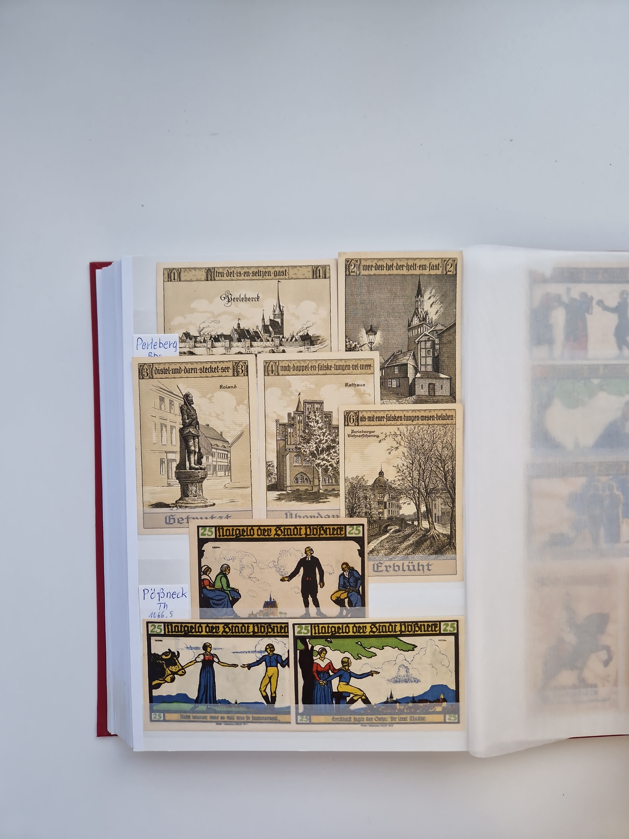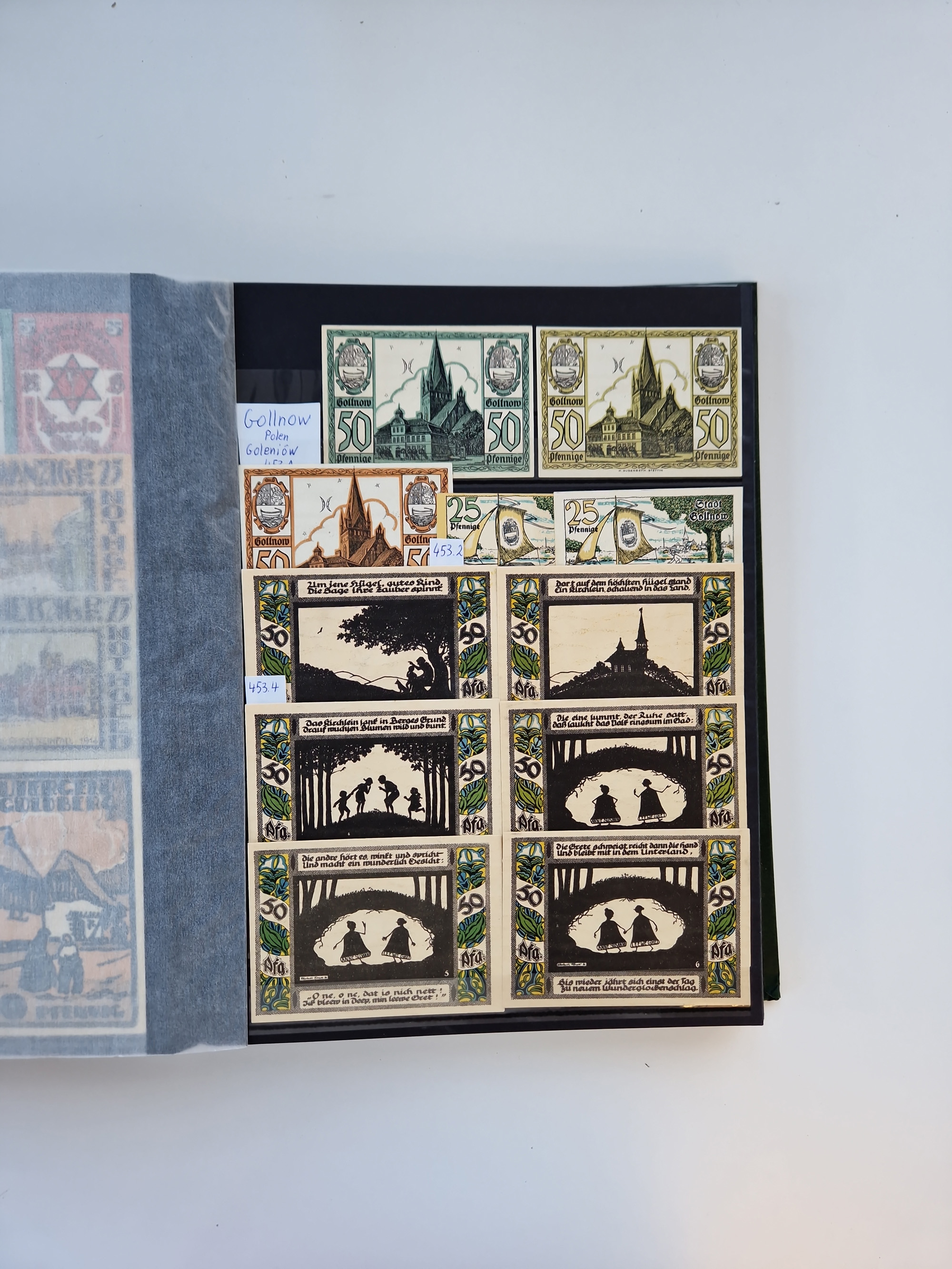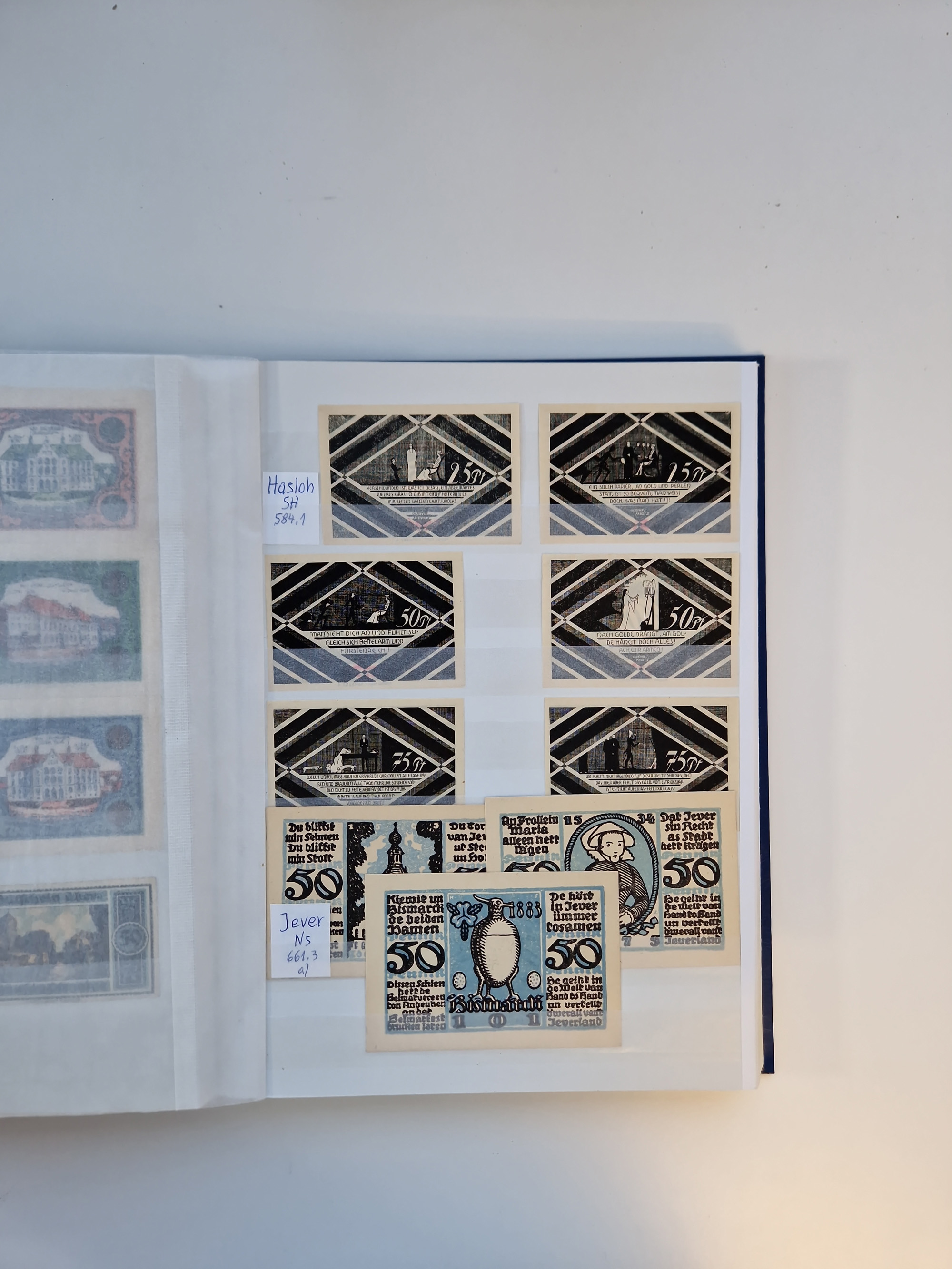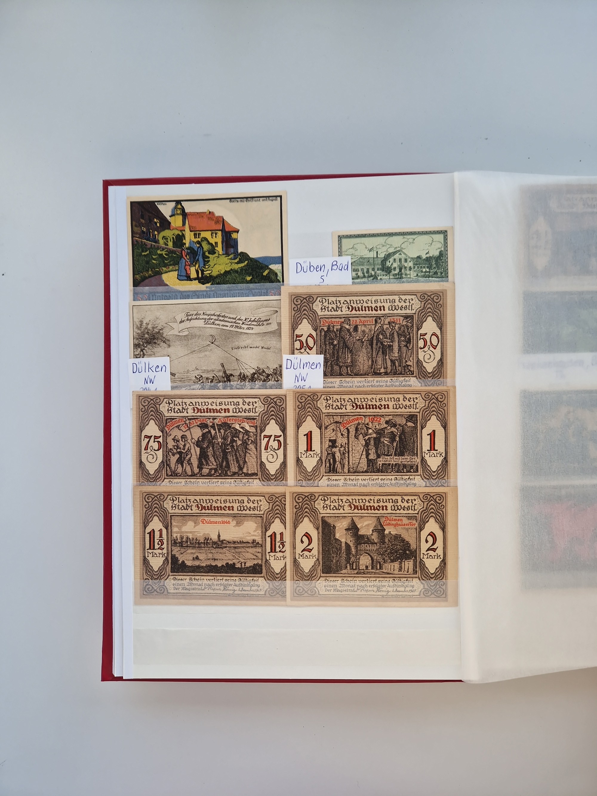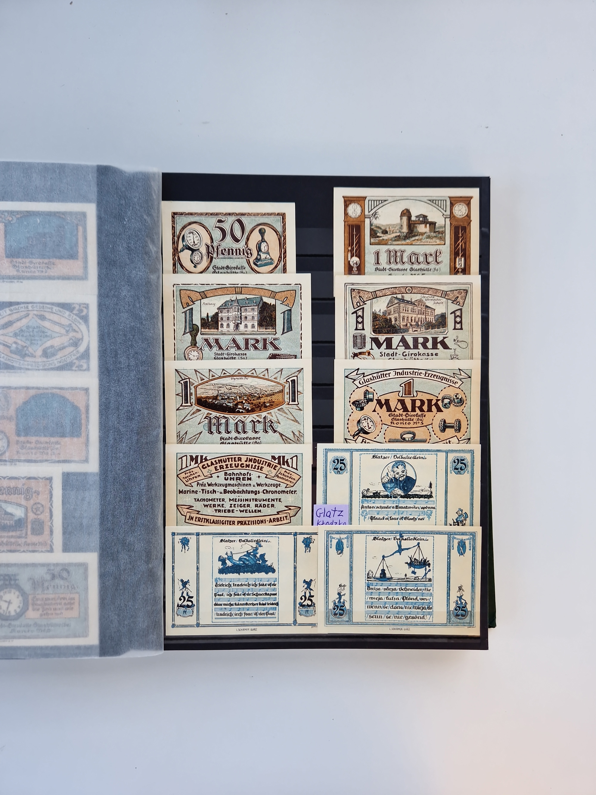 Notgeld-Serienscheine, saubere Sammlung in 16 meist dicken Steckalben, sauber nach Orten und Serien sortiert, überschlägig etwa 7/8000 Stück, dazu 4 Kataloge