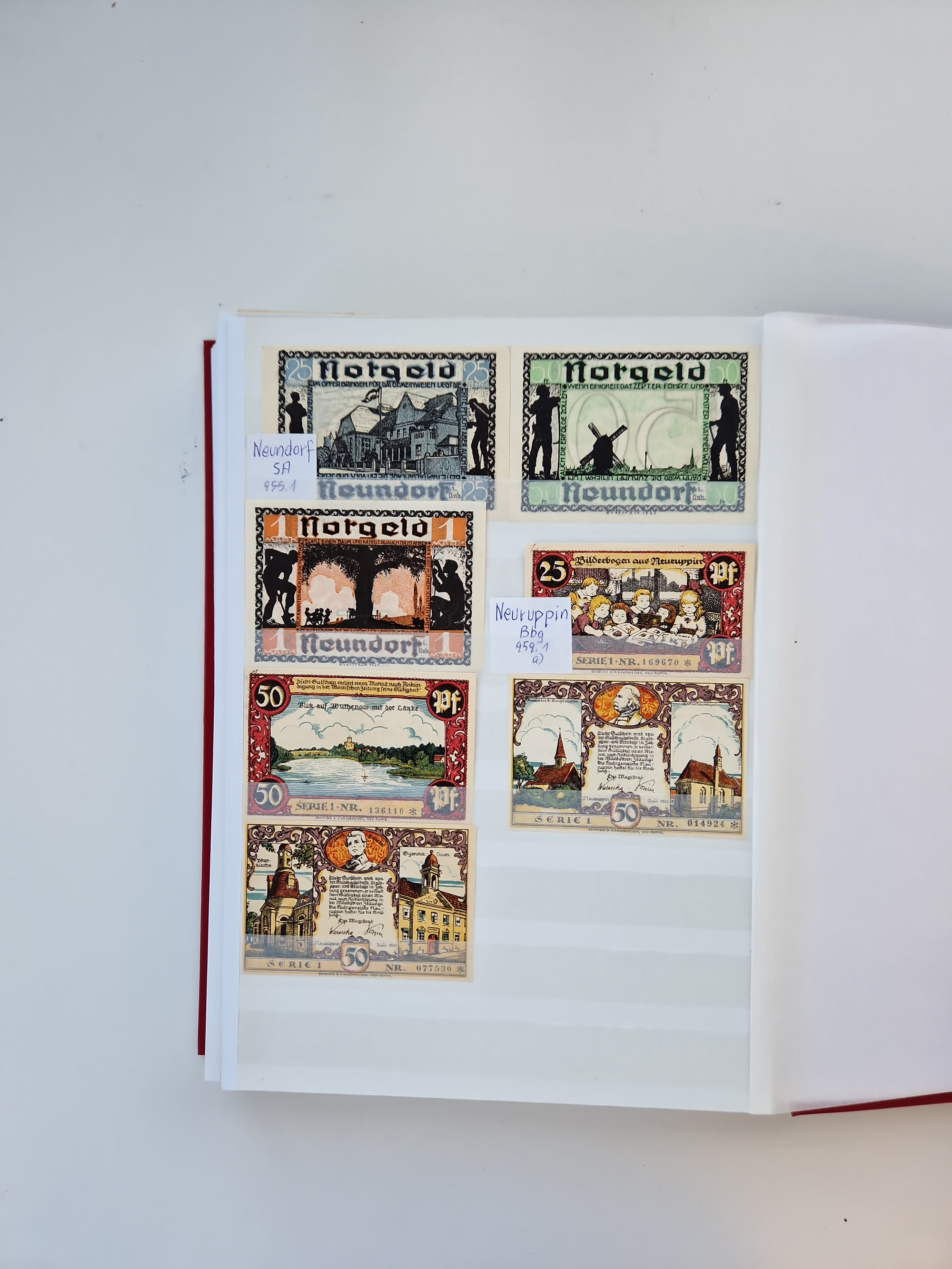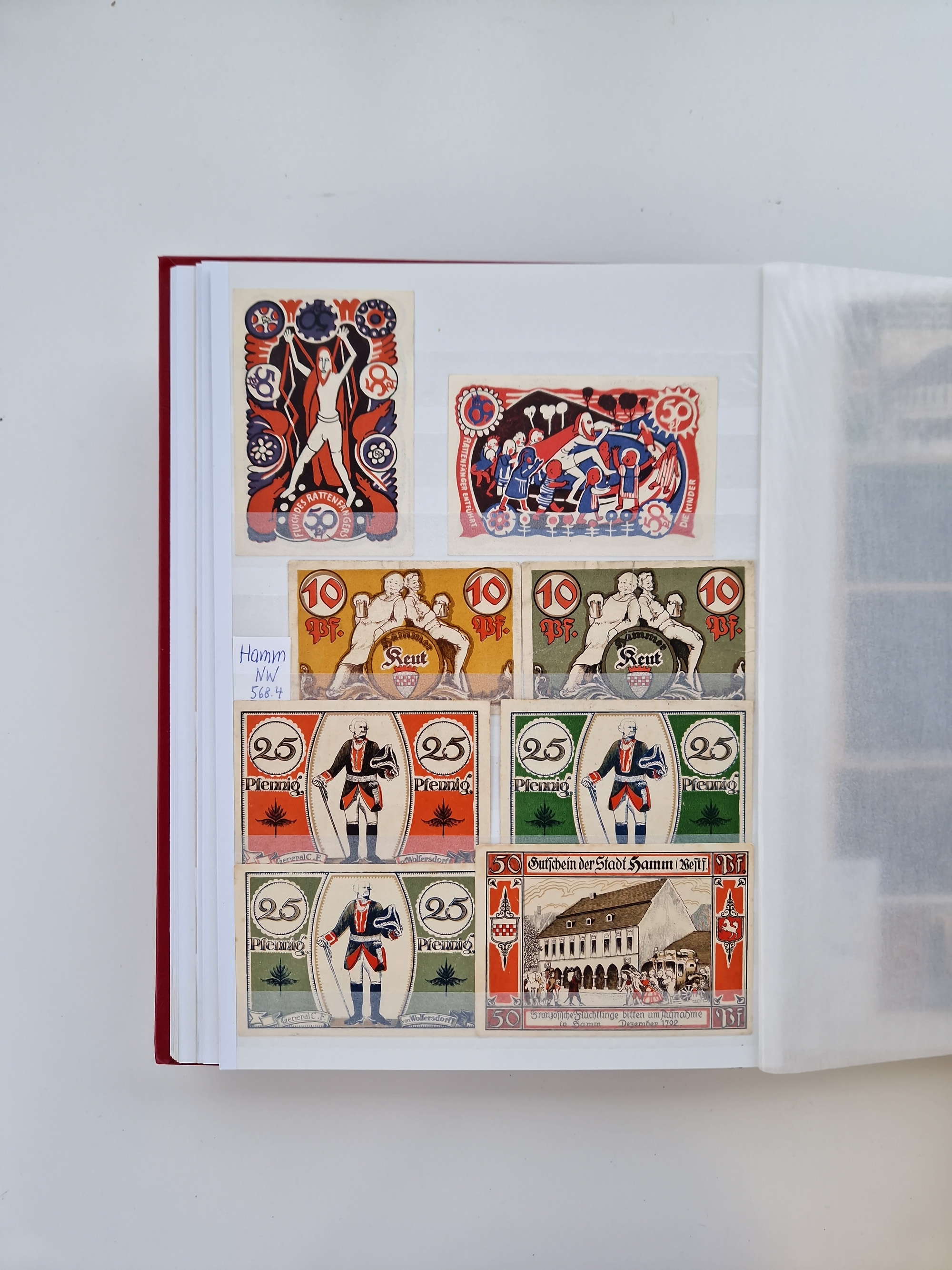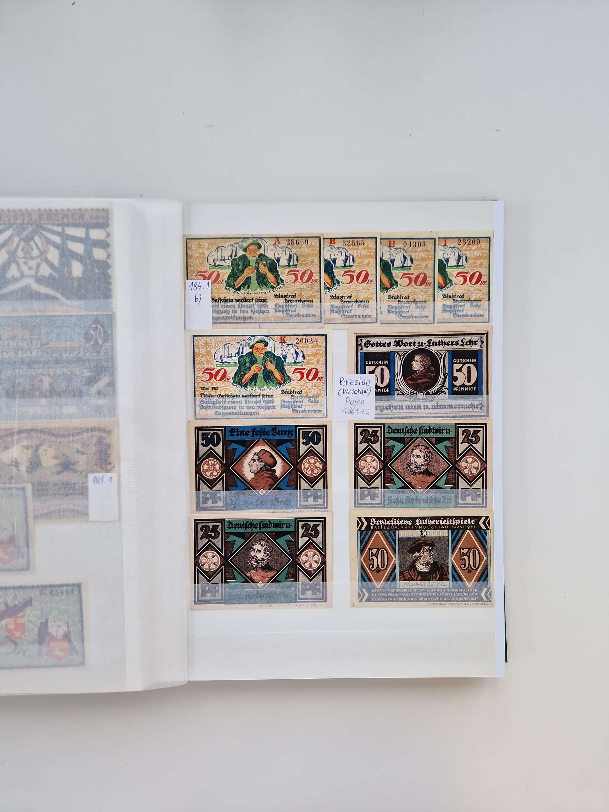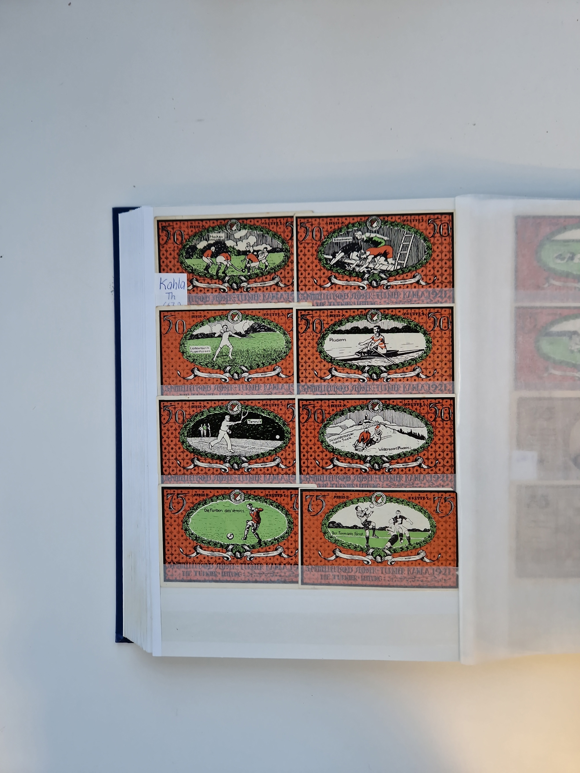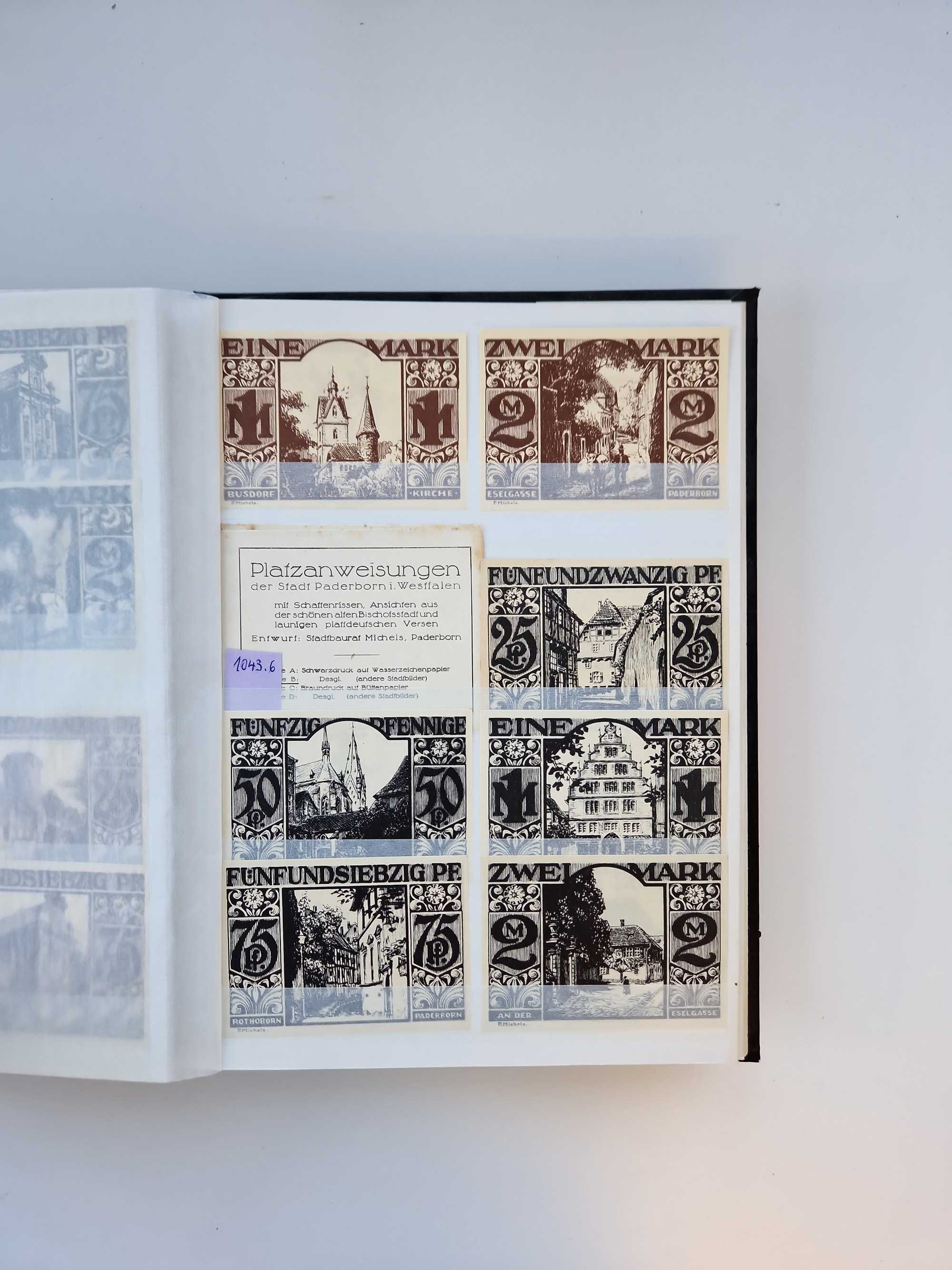 Notgeld-Serienscheine, saubere Sammlung in 16 meist dicken Steckalben, sauber nach Orten und Serien sortiert, überschlägig etwa 7/8000 Stück, dazu 4 Kataloge