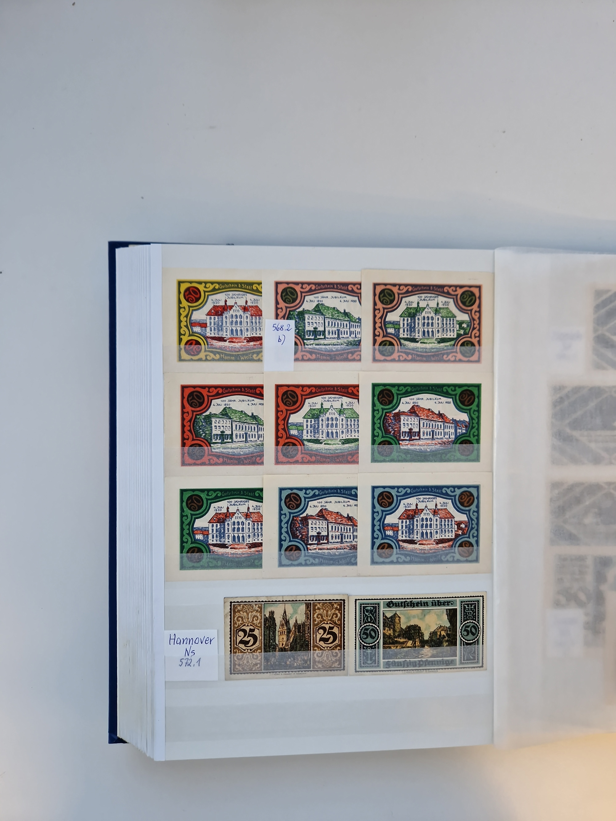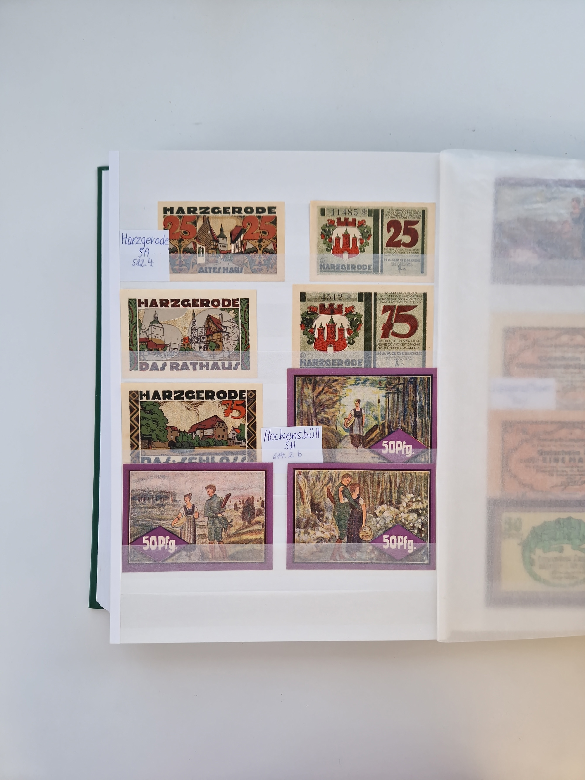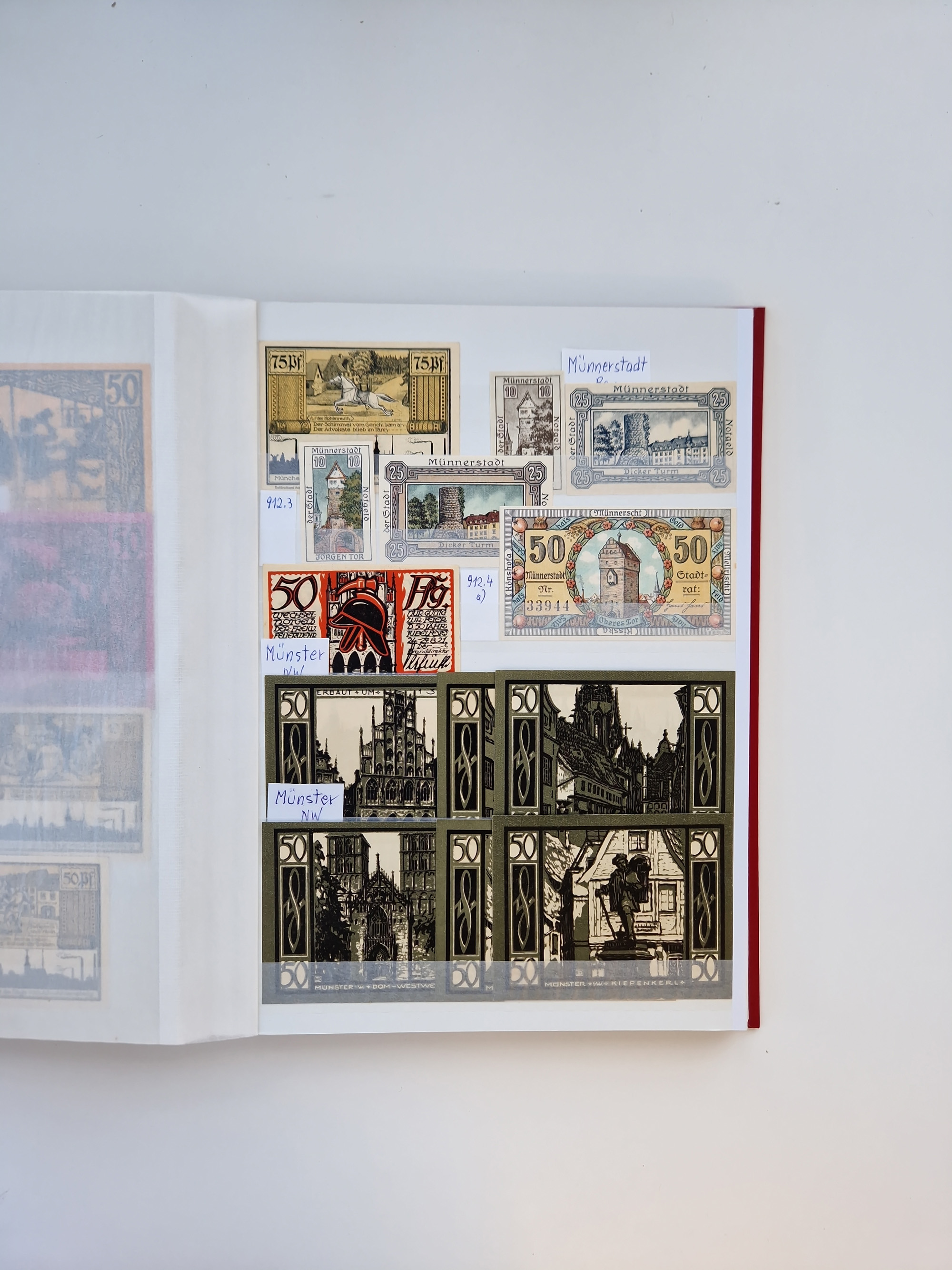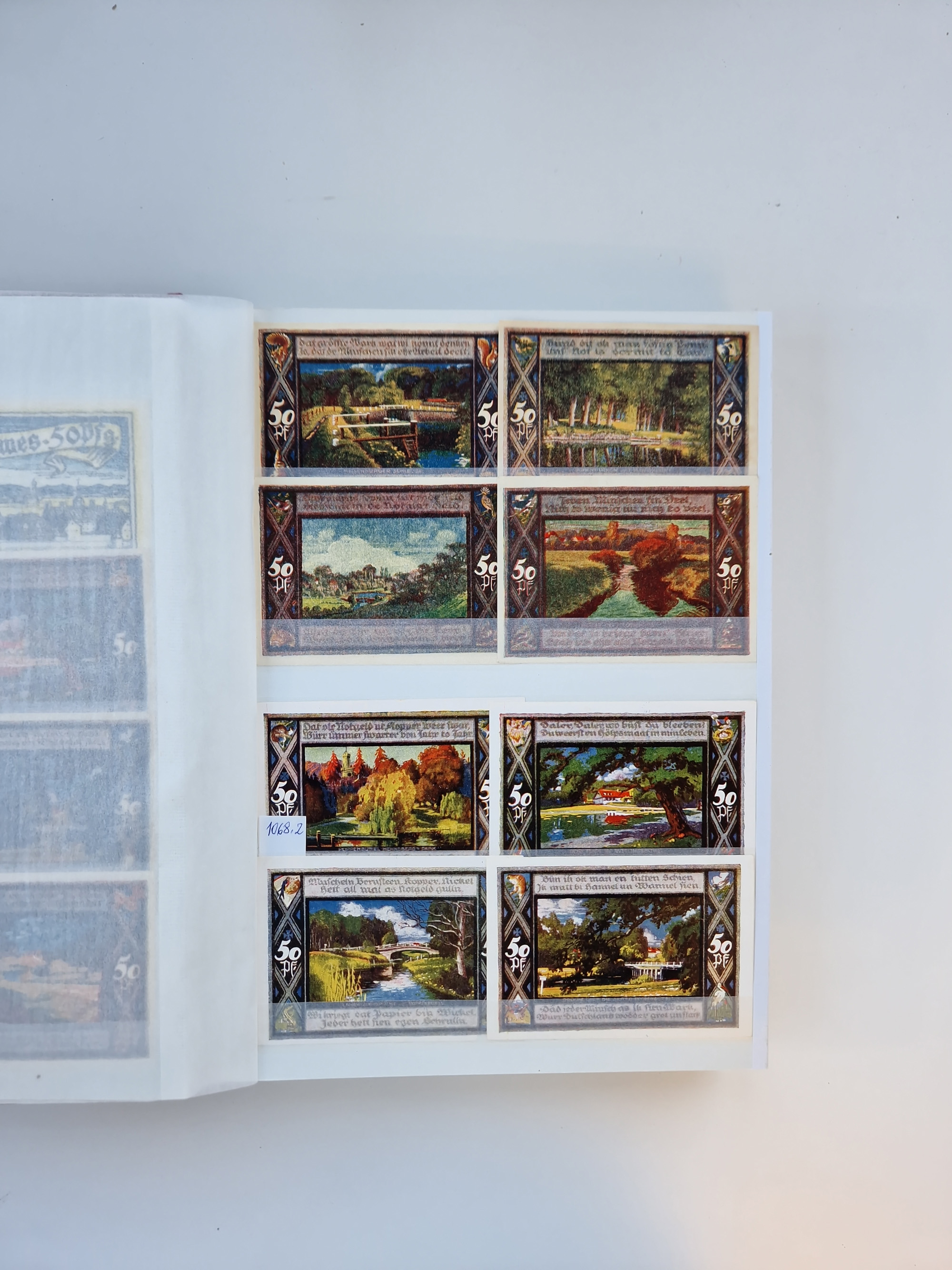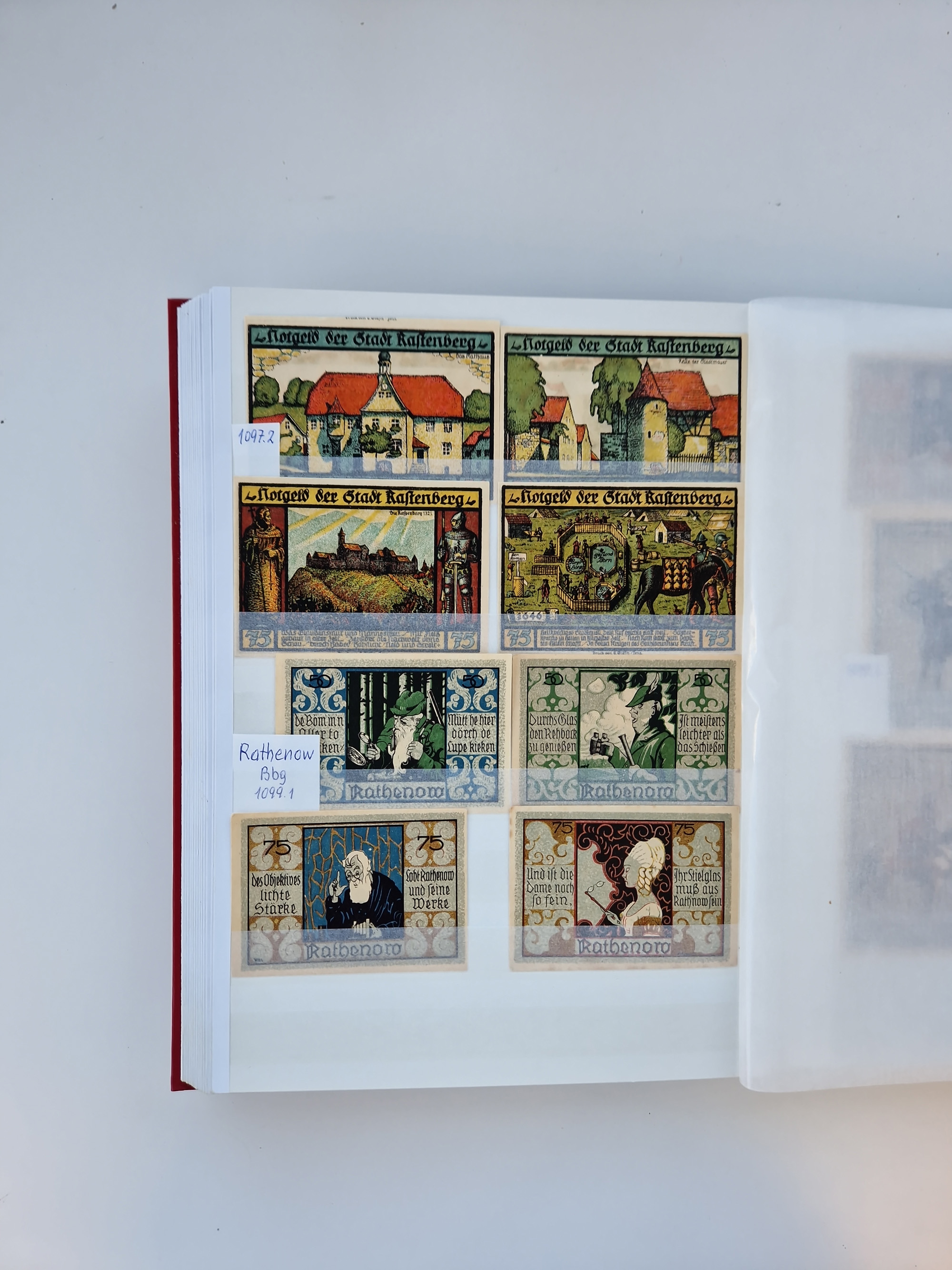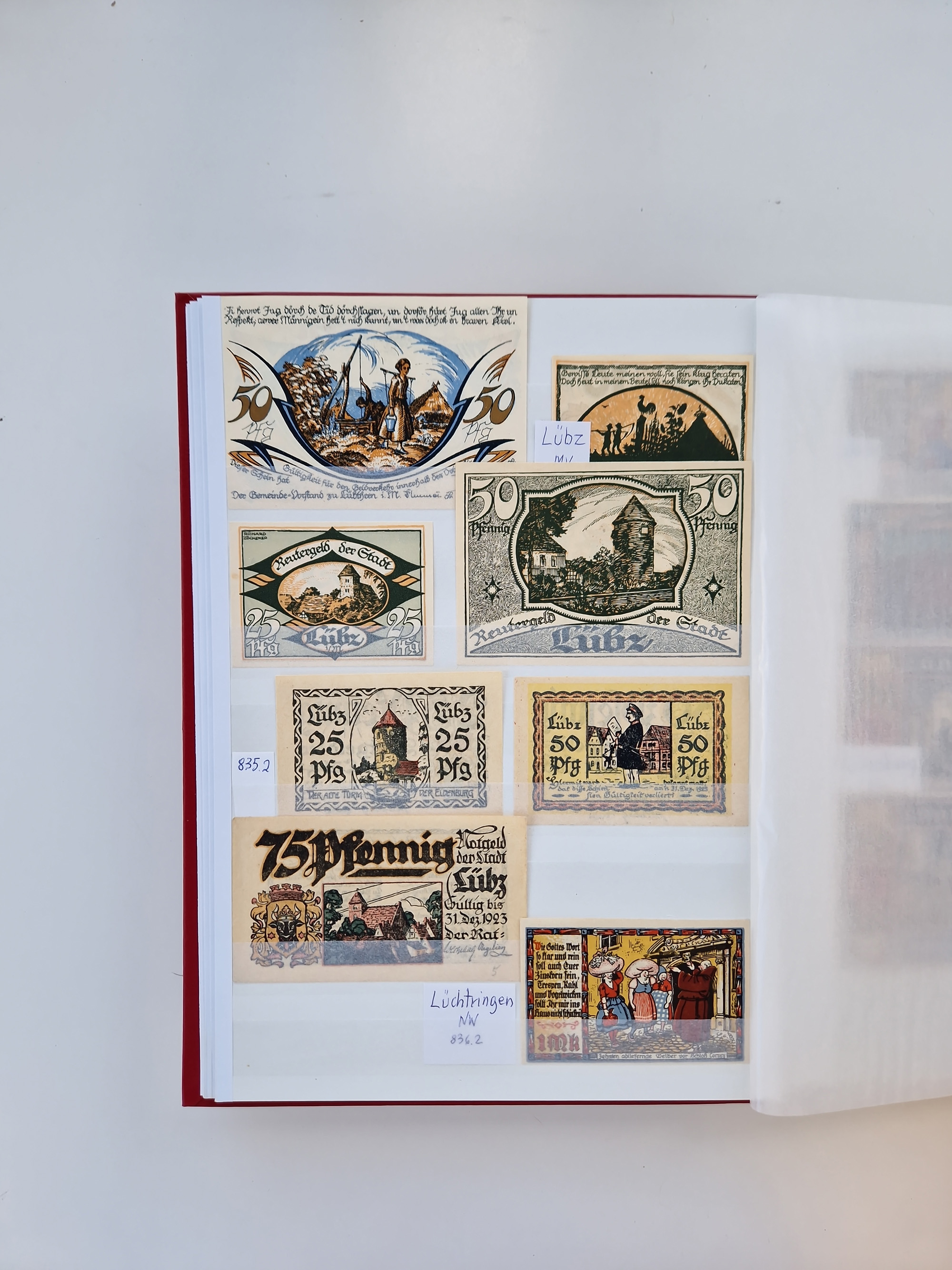 Notgeld-Serienscheine, saubere Sammlung in 16 meist dicken Steckalben, sauber nach Orten und Serien sortiert, überschlägig etwa 7/8000 Stück, dazu 4 Kataloge