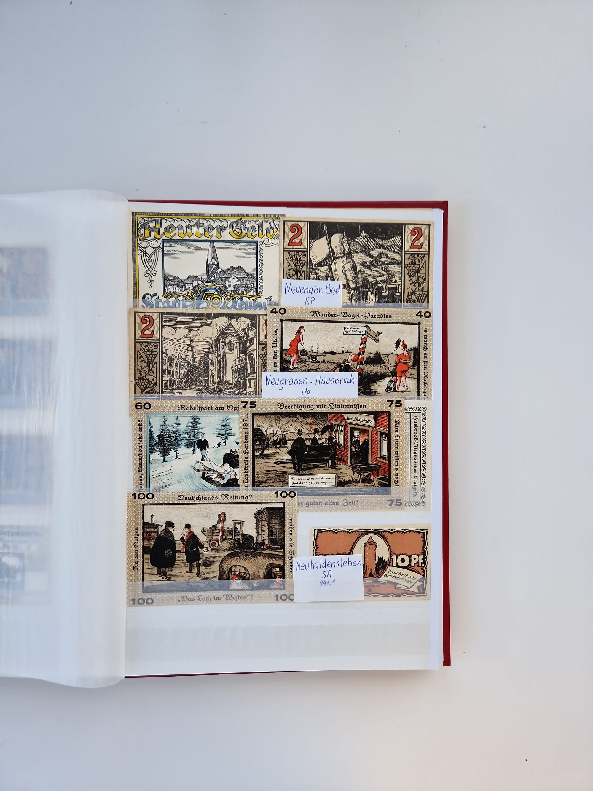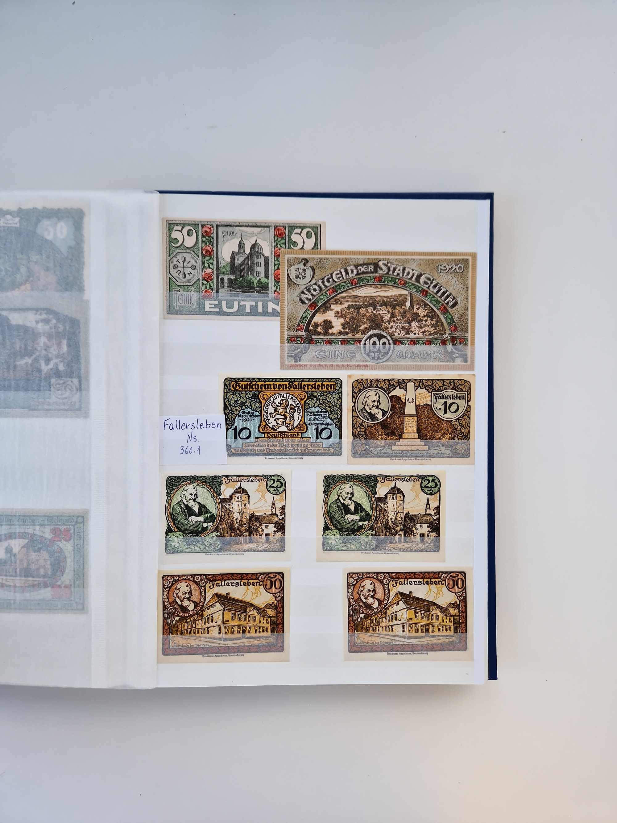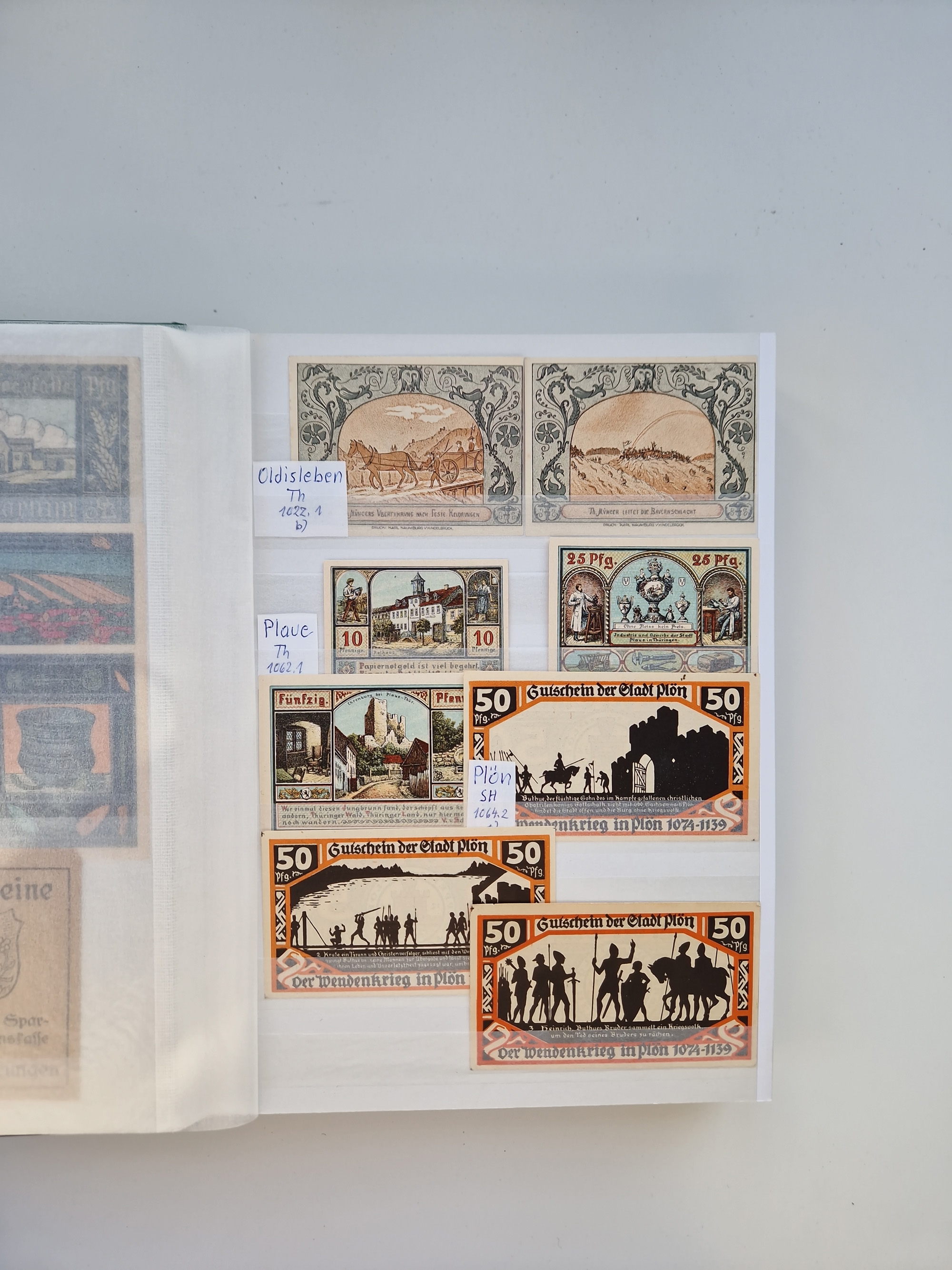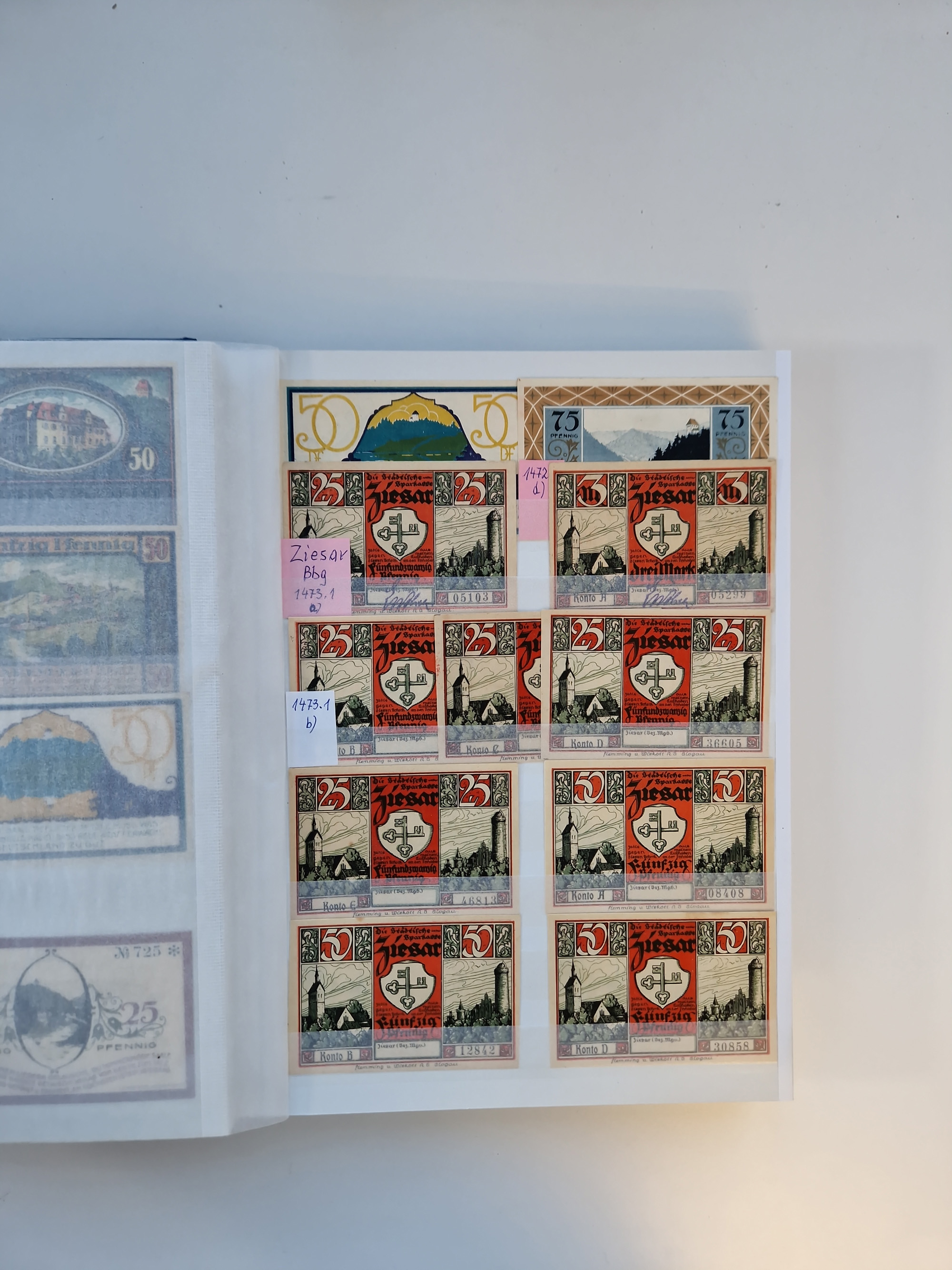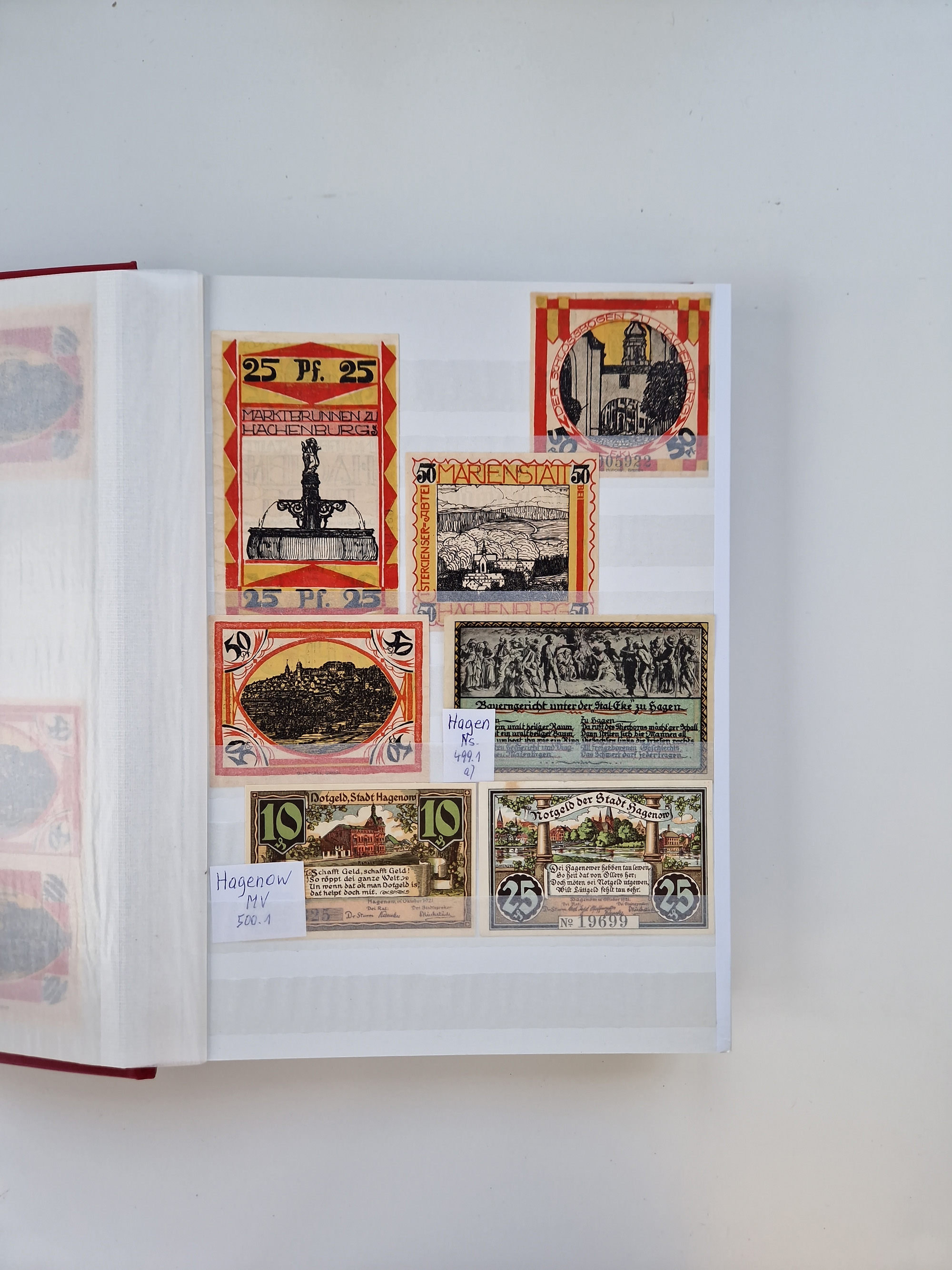 Notgeld-Serienscheine, saubere Sammlung in 16 meist dicken Steckalben, sauber nach Orten und Serien sortiert, überschlägig etwa 7/8000 Stück, dazu 4 Kataloge