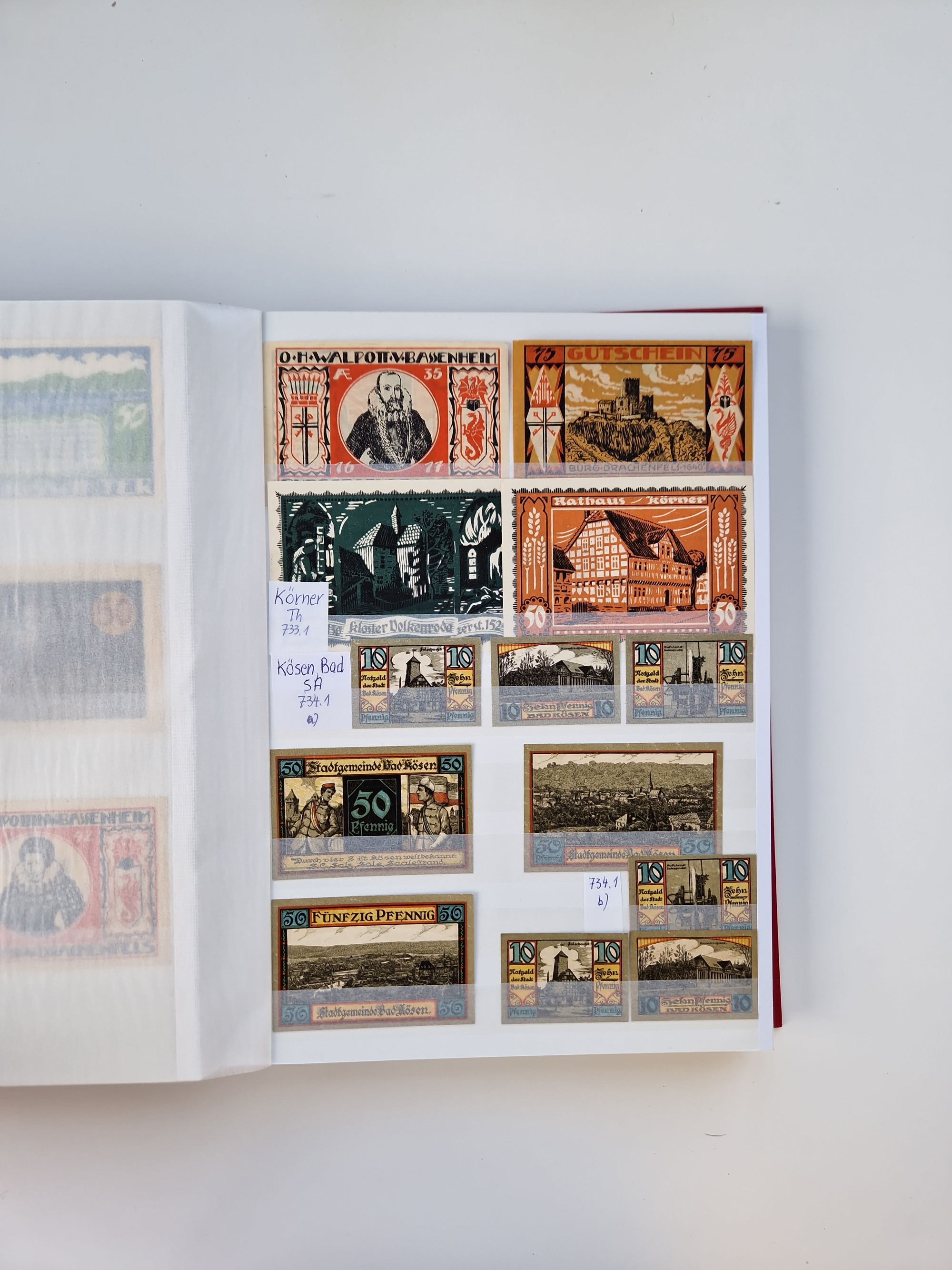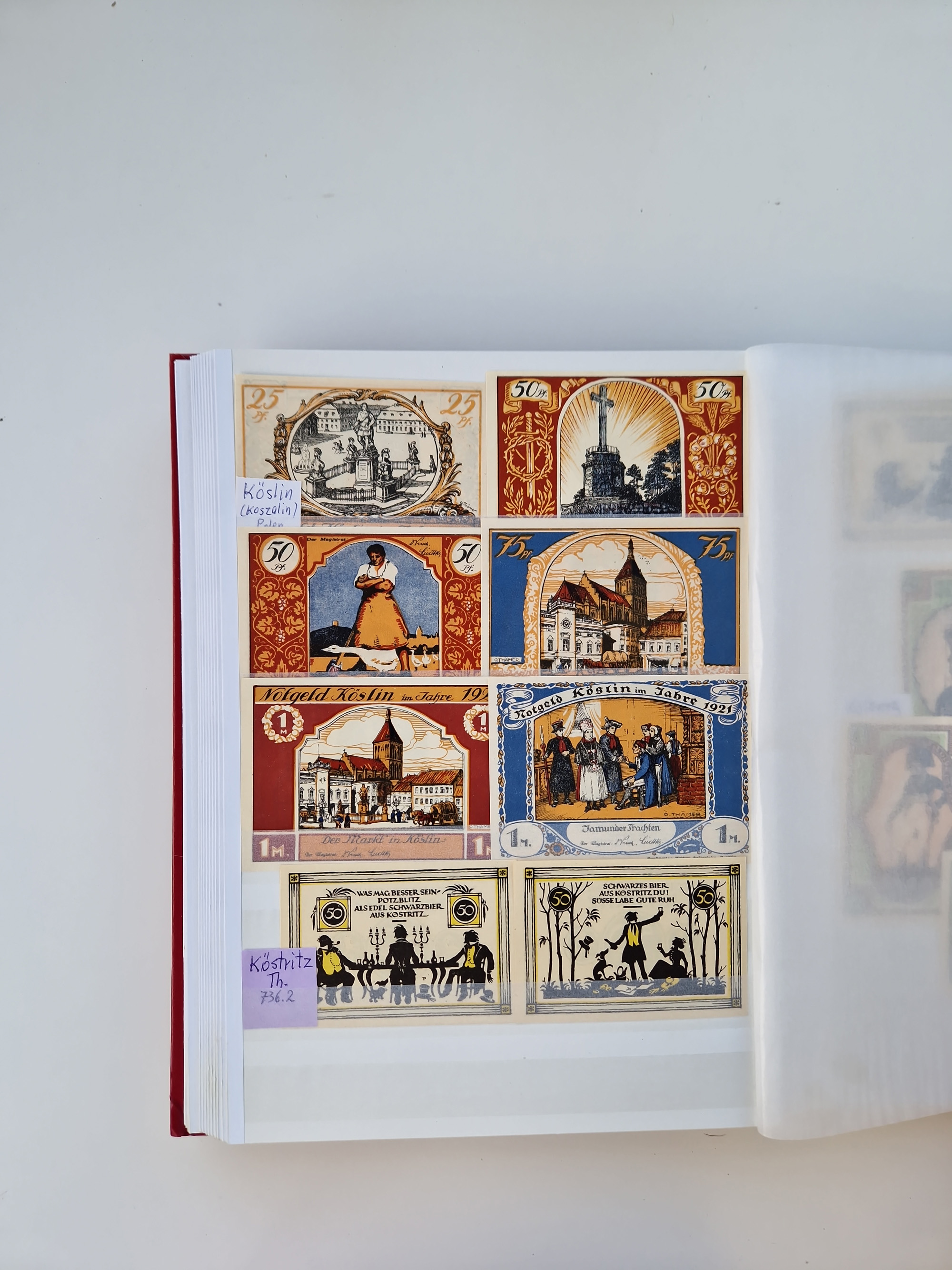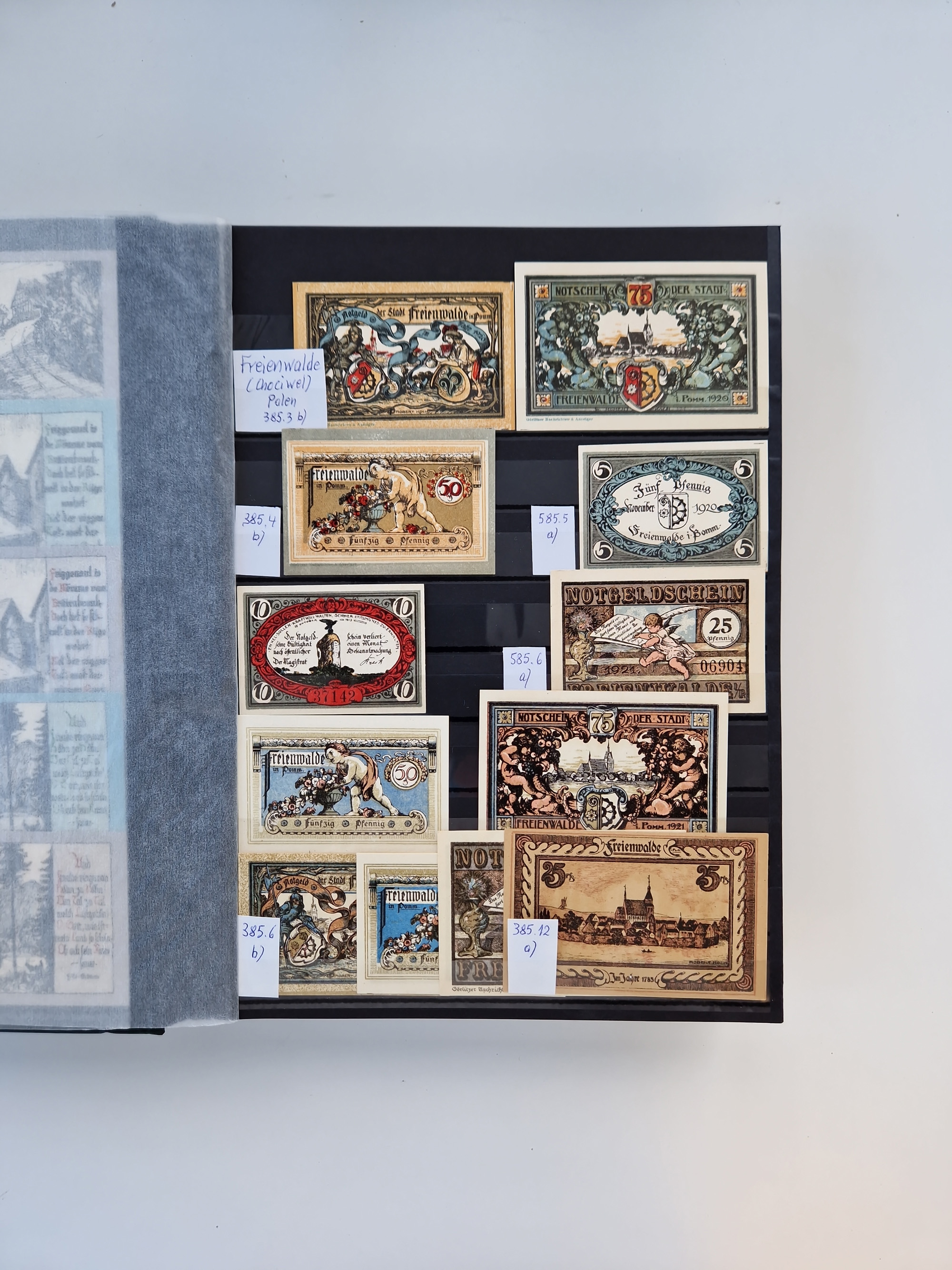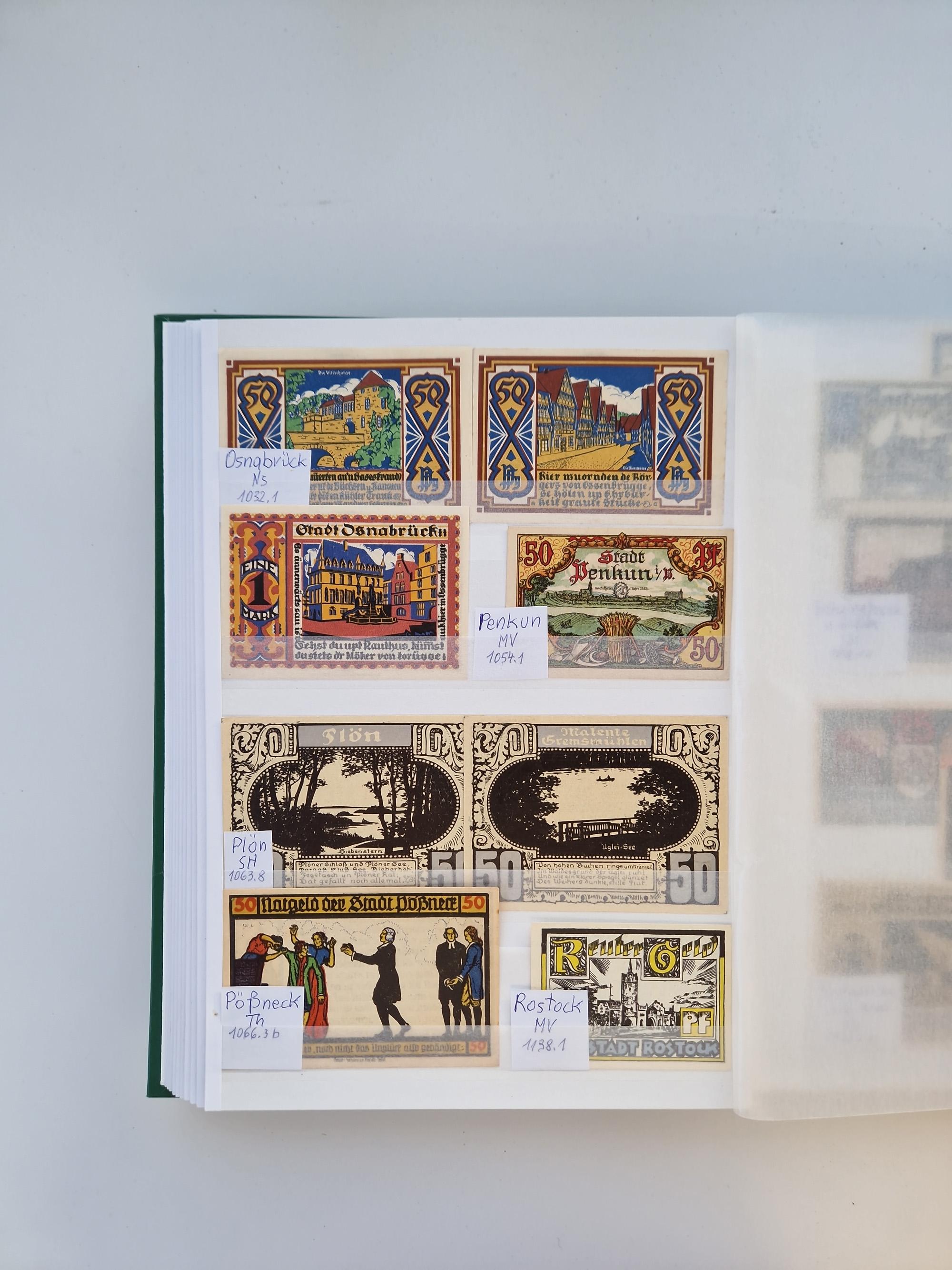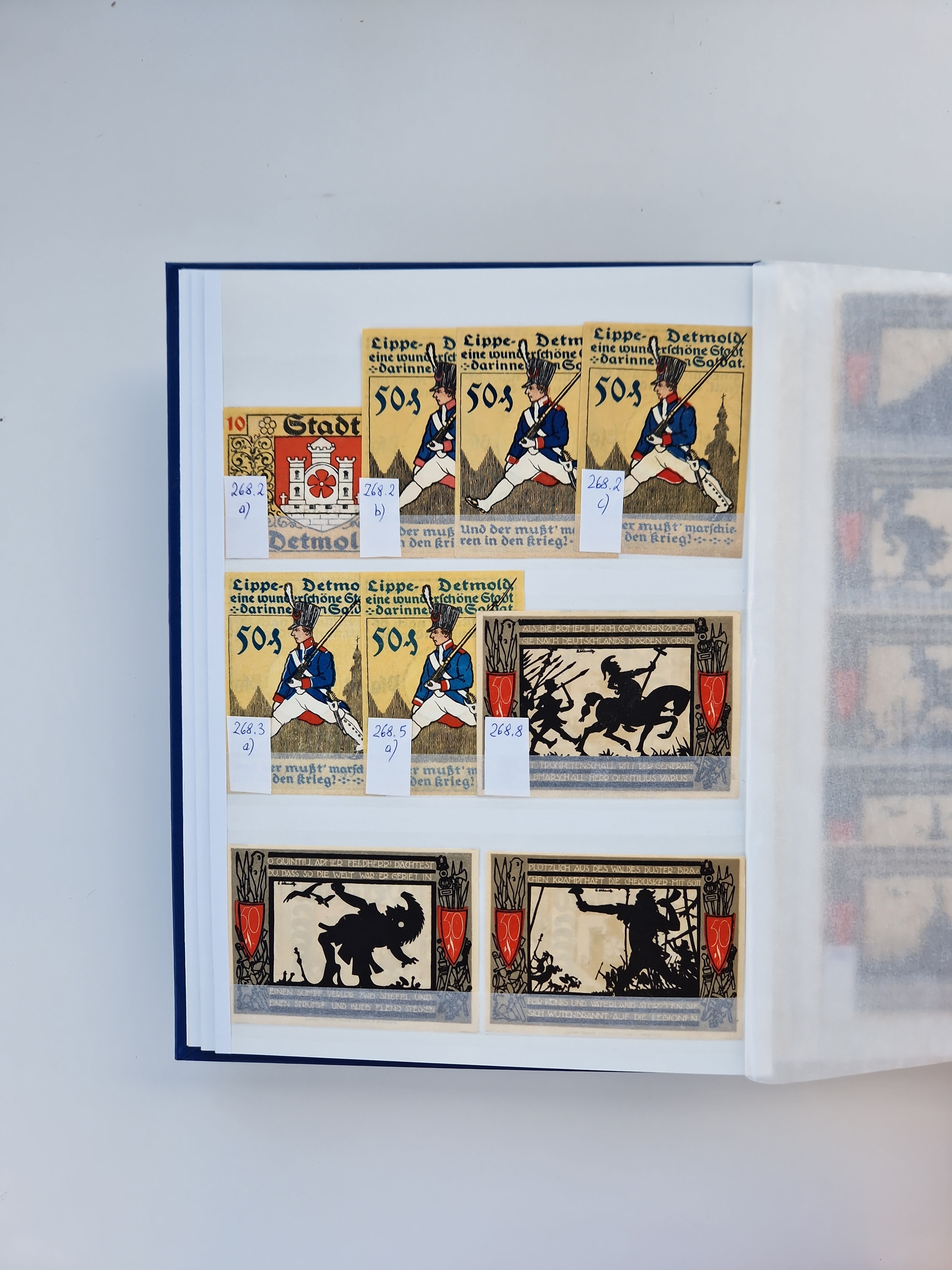 Notgeld-Serienscheine, saubere Sammlung in 16 meist dicken Steckalben, sauber nach Orten und Serien sortiert, überschlägig etwa 7/8000 Stück, dazu 4 Kataloge