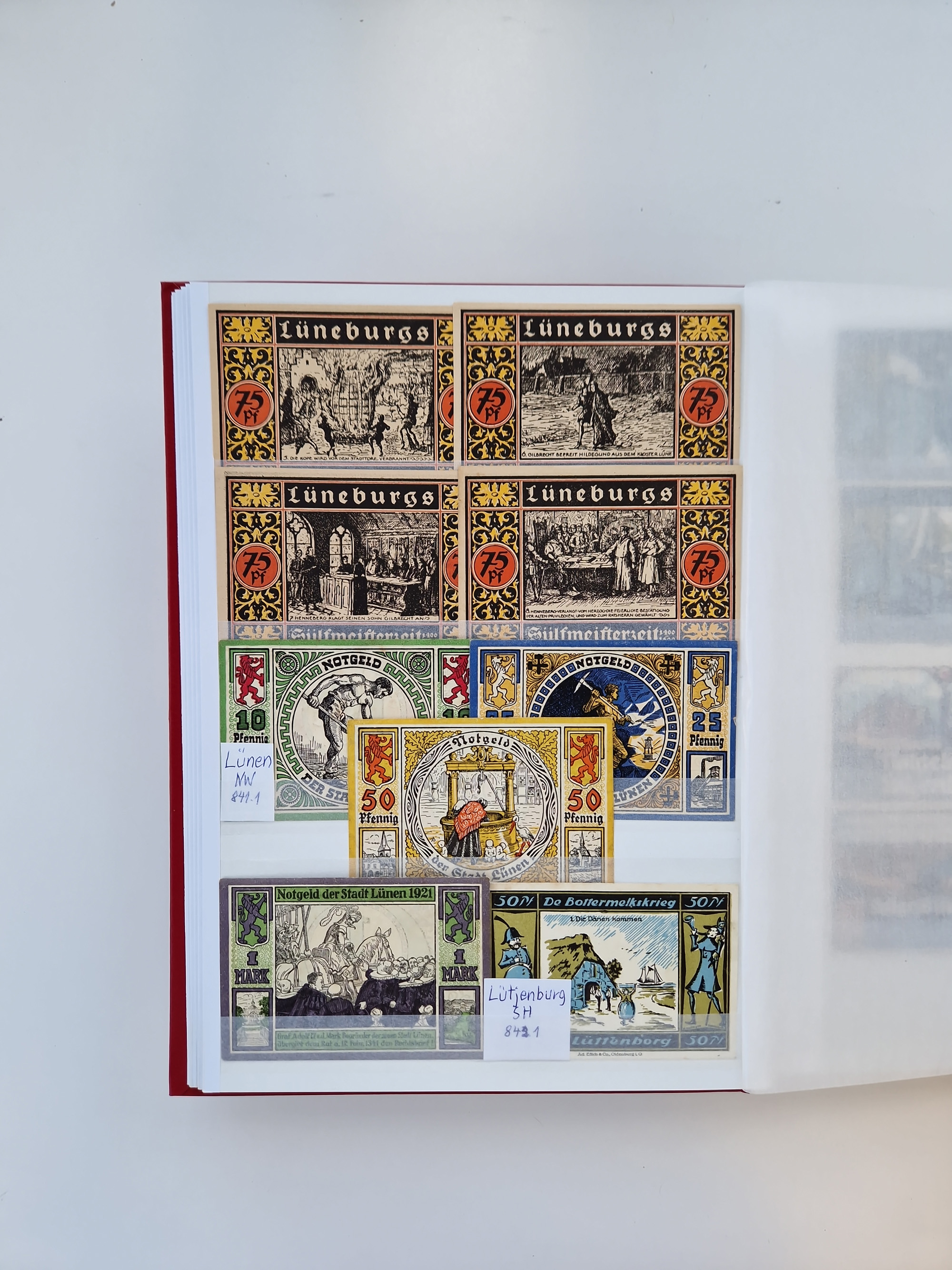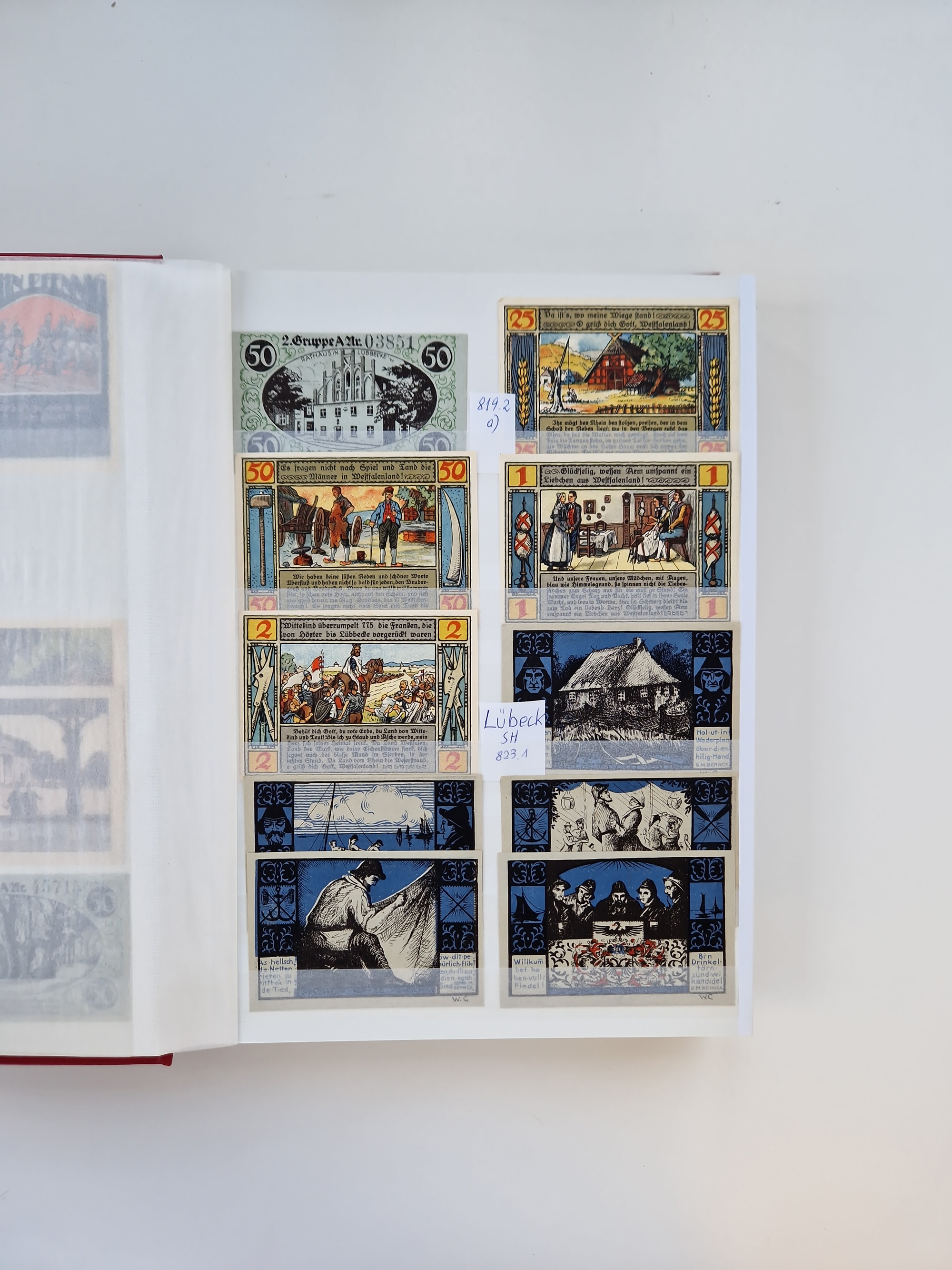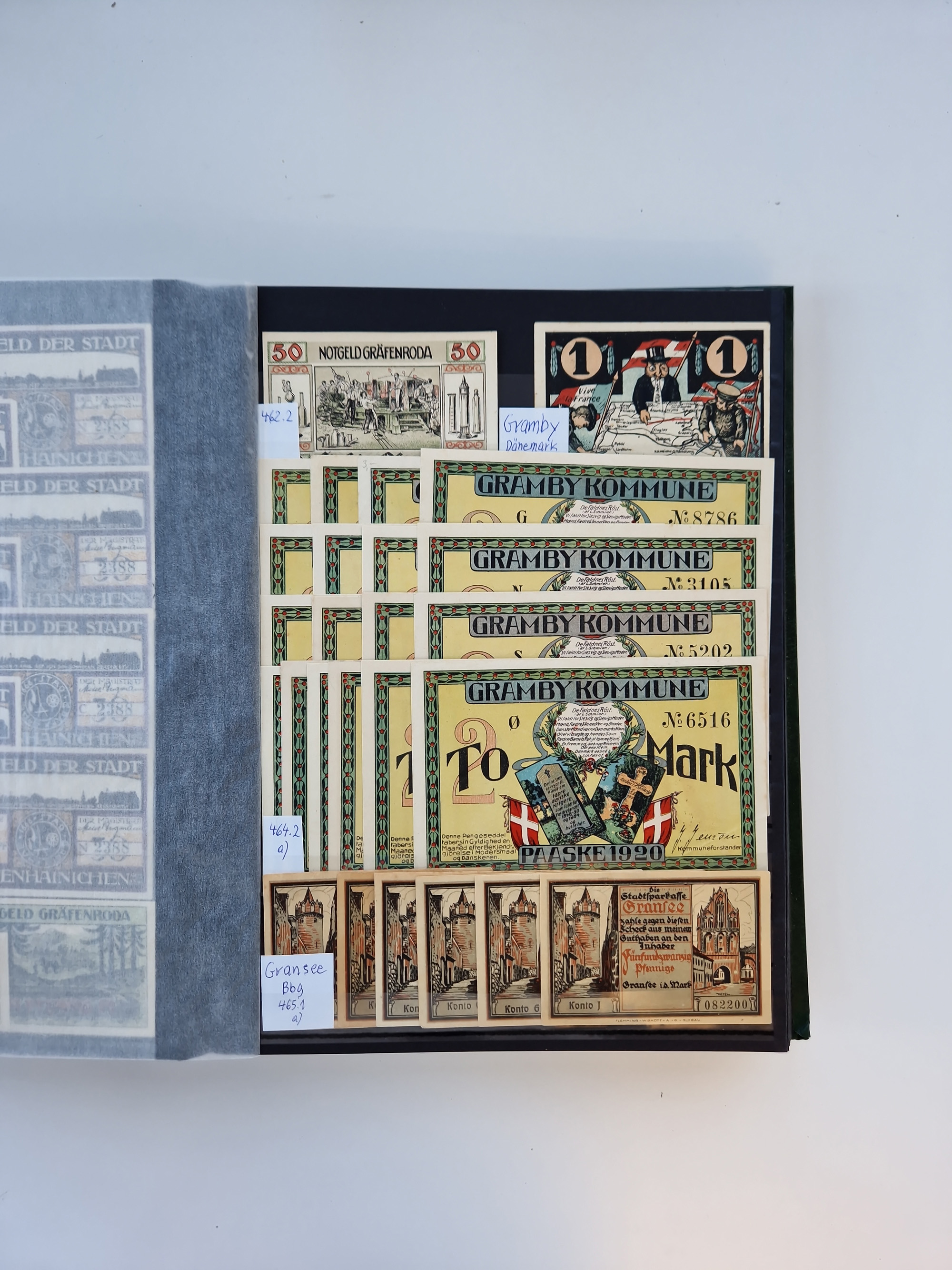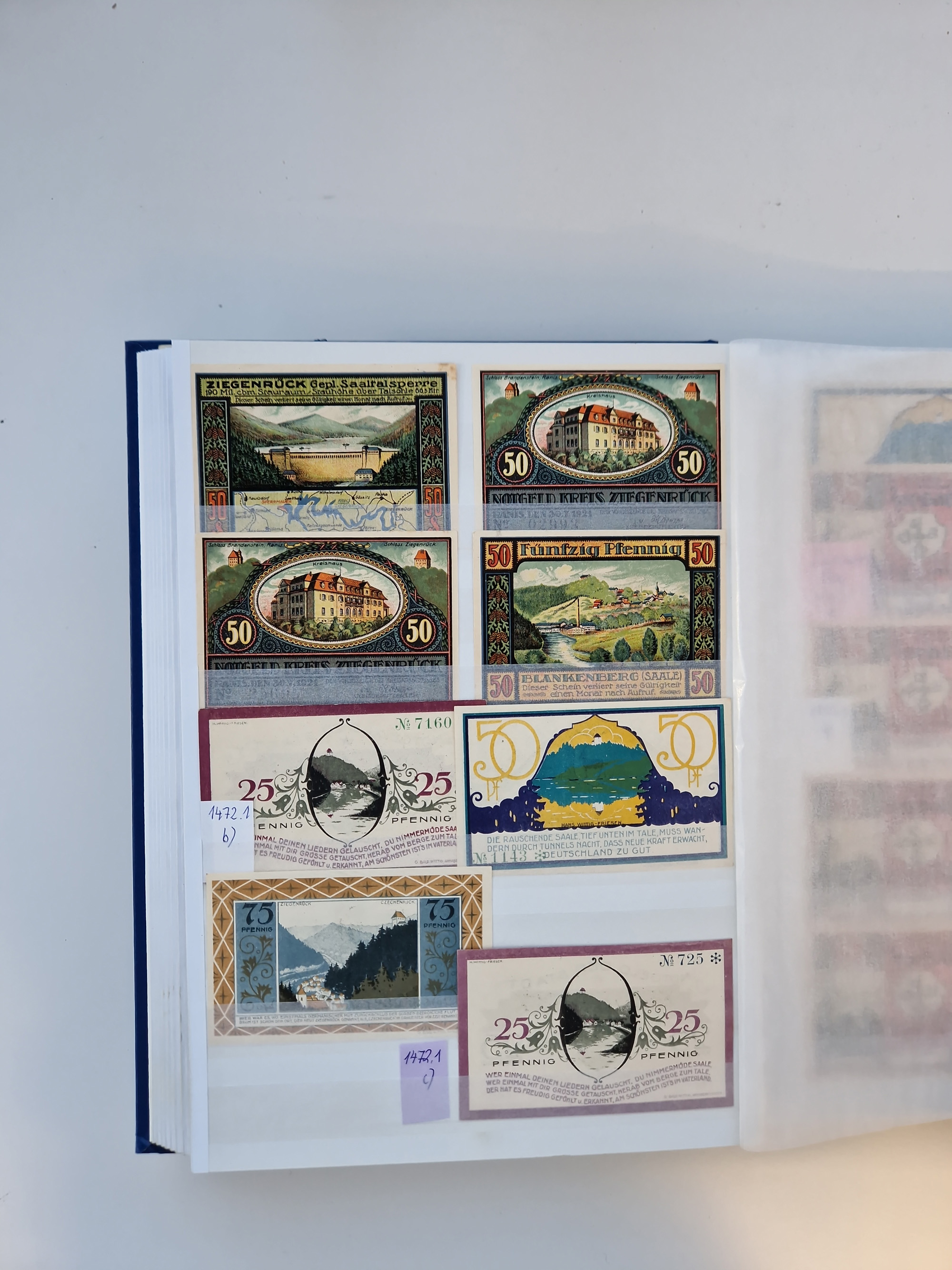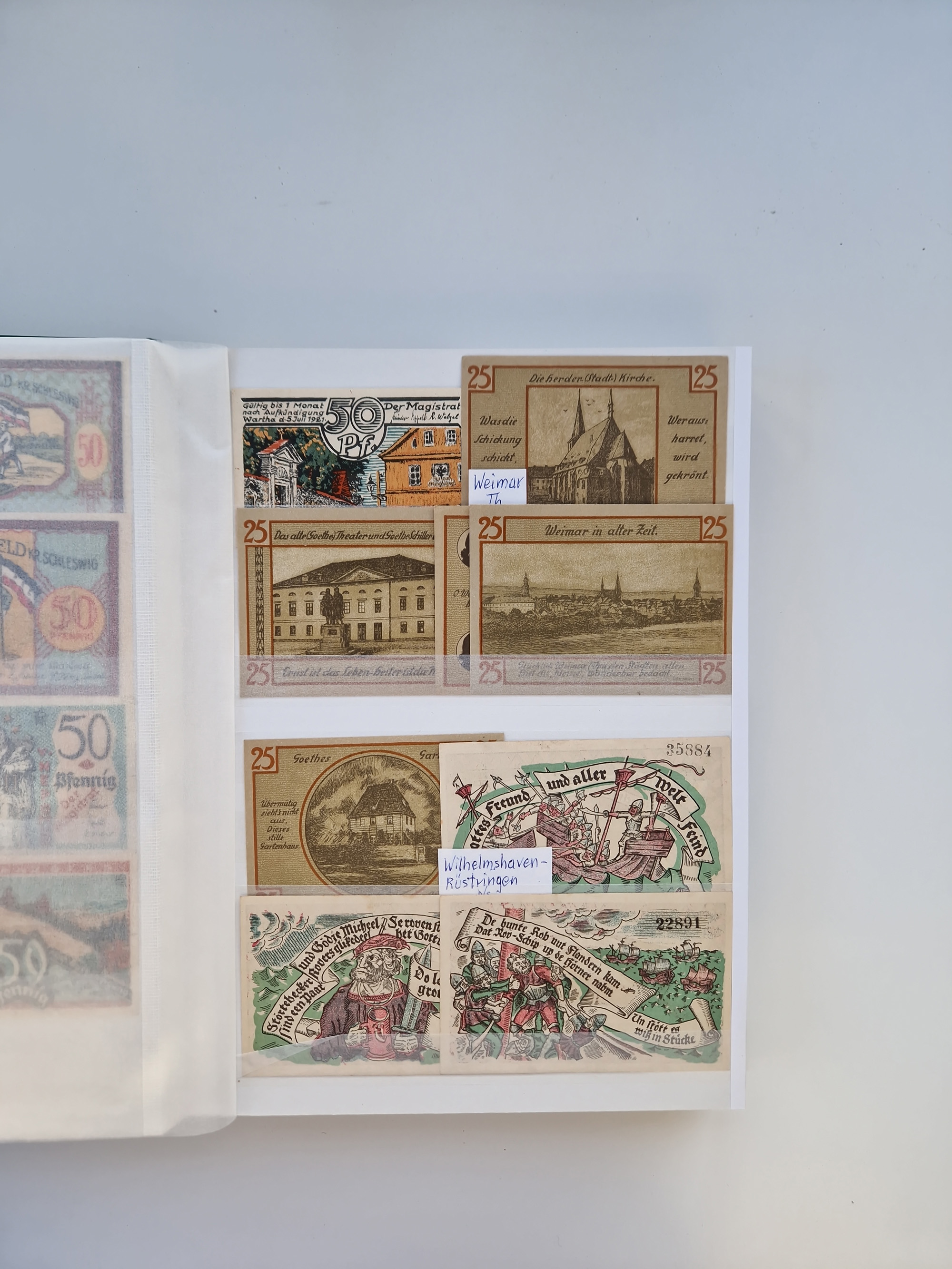 Notgeld-Serienscheine, saubere Sammlung in 16 meist dicken Steckalben, sauber nach Orten und Serien sortiert, überschlägig etwa 7/8000 Stück, dazu 4 Kataloge