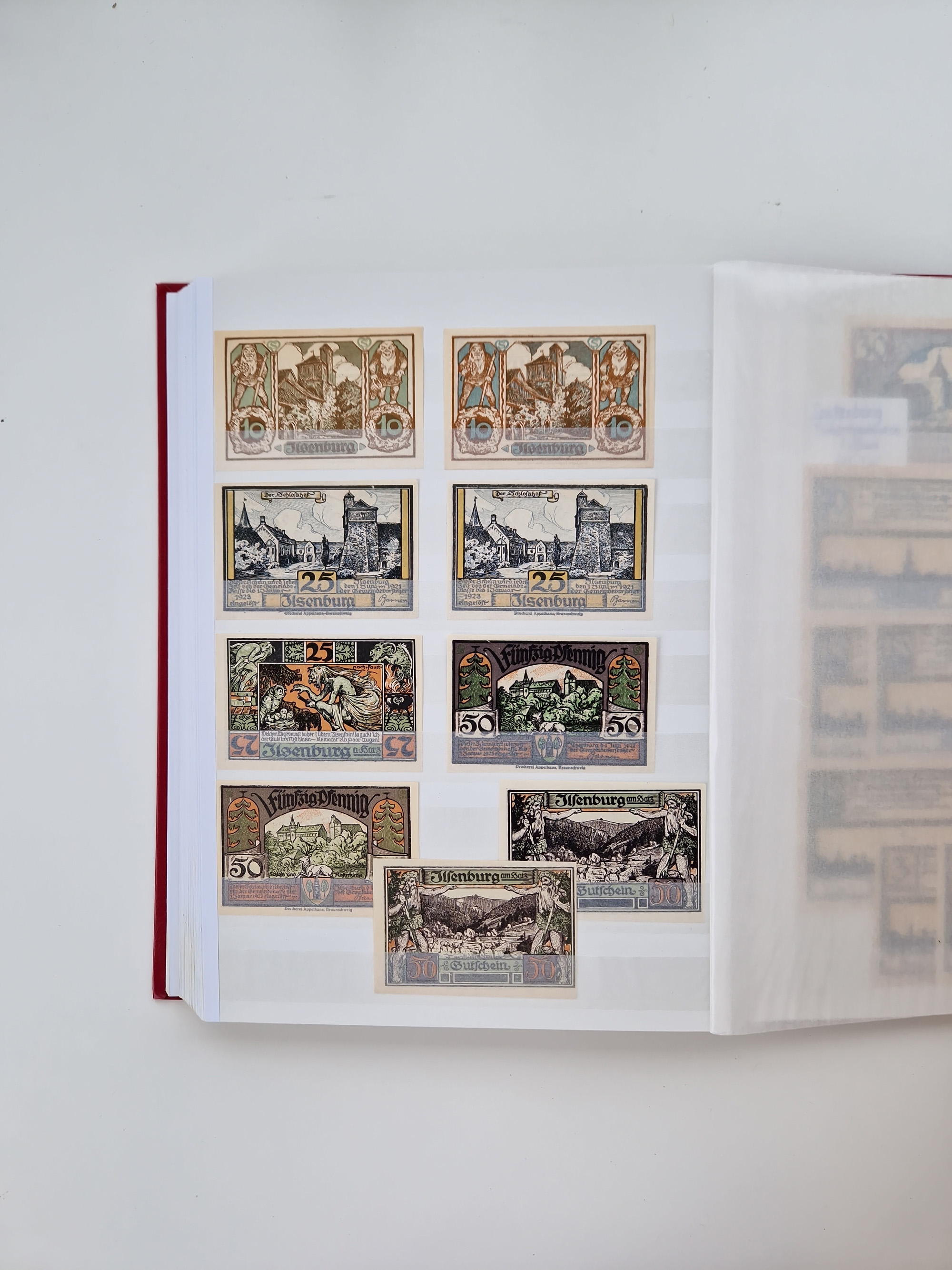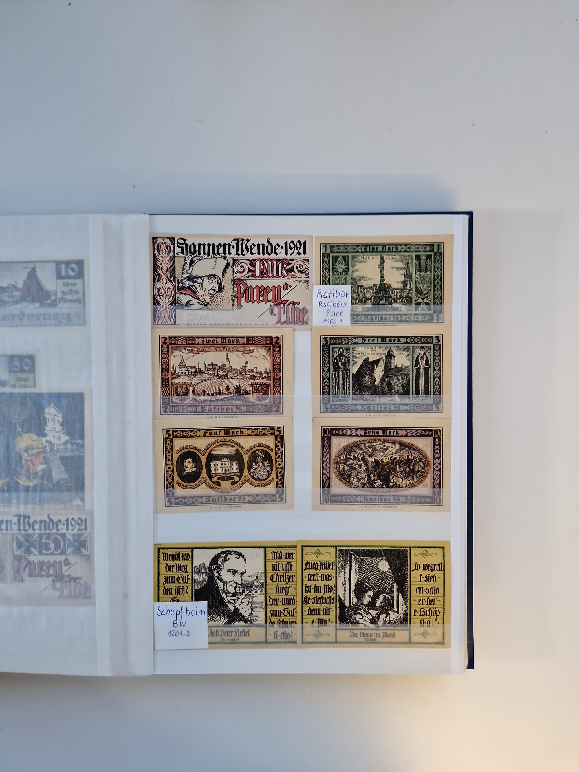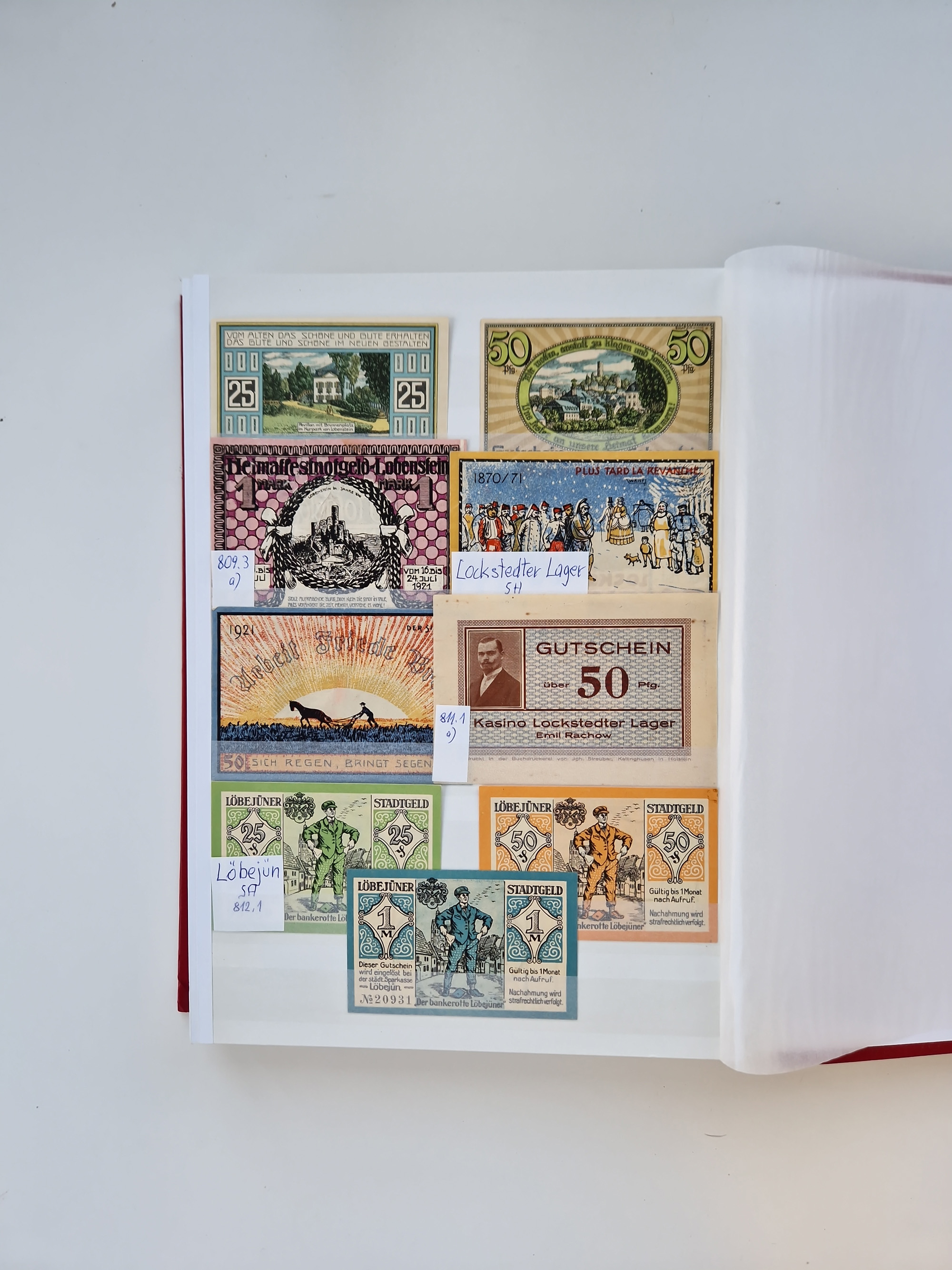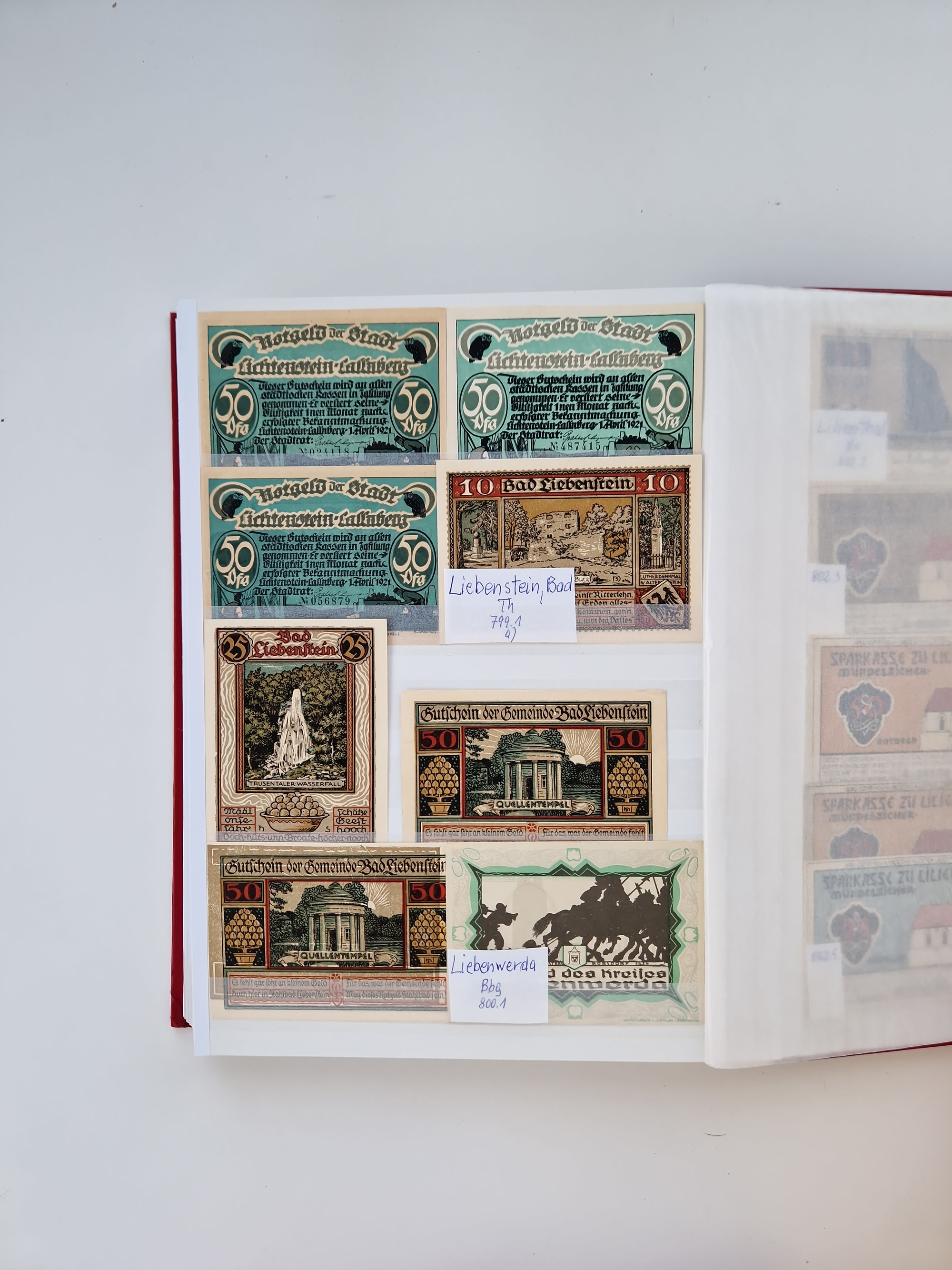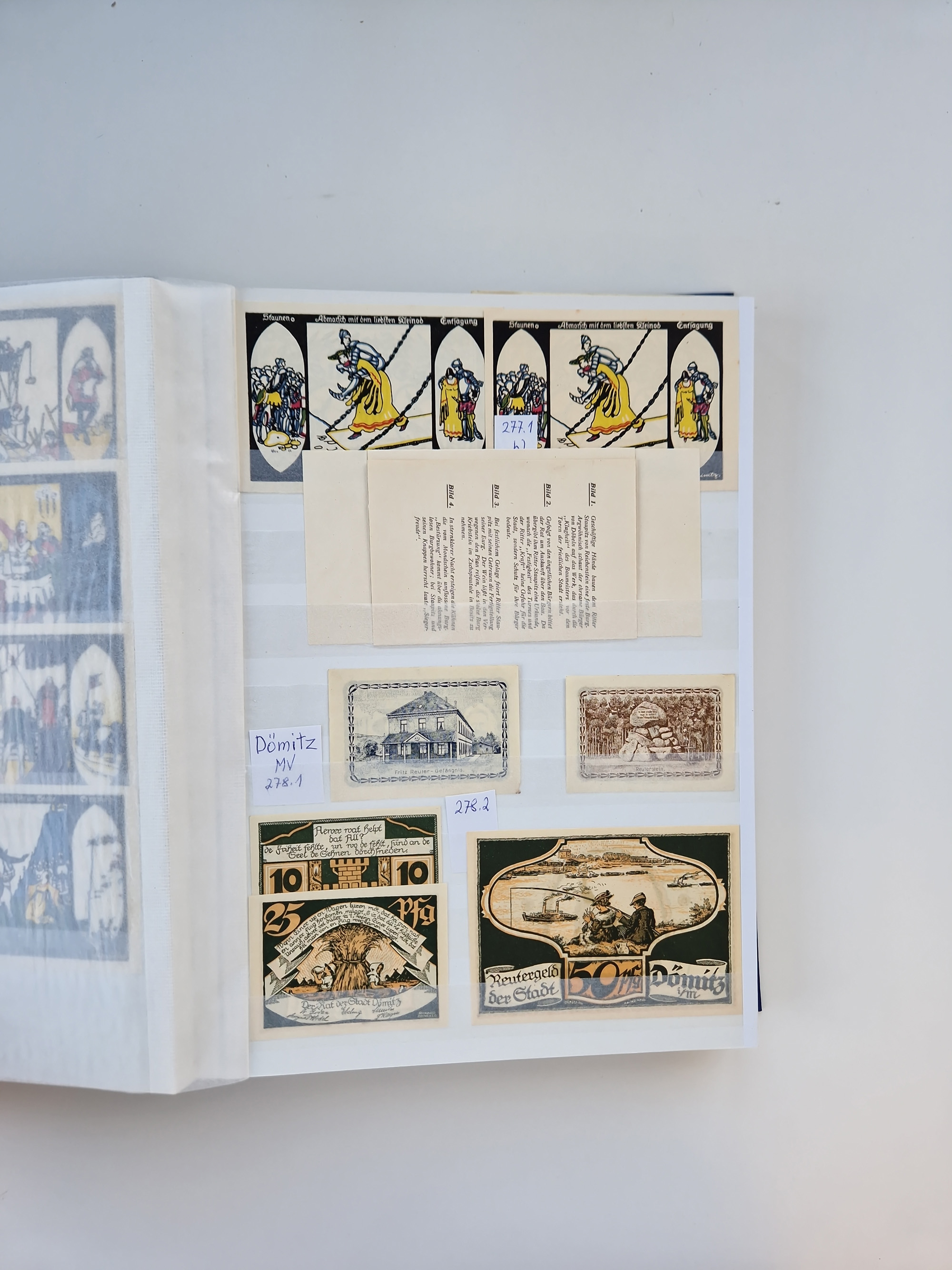 Notgeld-Serienscheine, saubere Sammlung in 16 meist dicken Steckalben, sauber nach Orten und Serien sortiert, überschlägig etwa 7/8000 Stück, dazu 4 Kataloge
