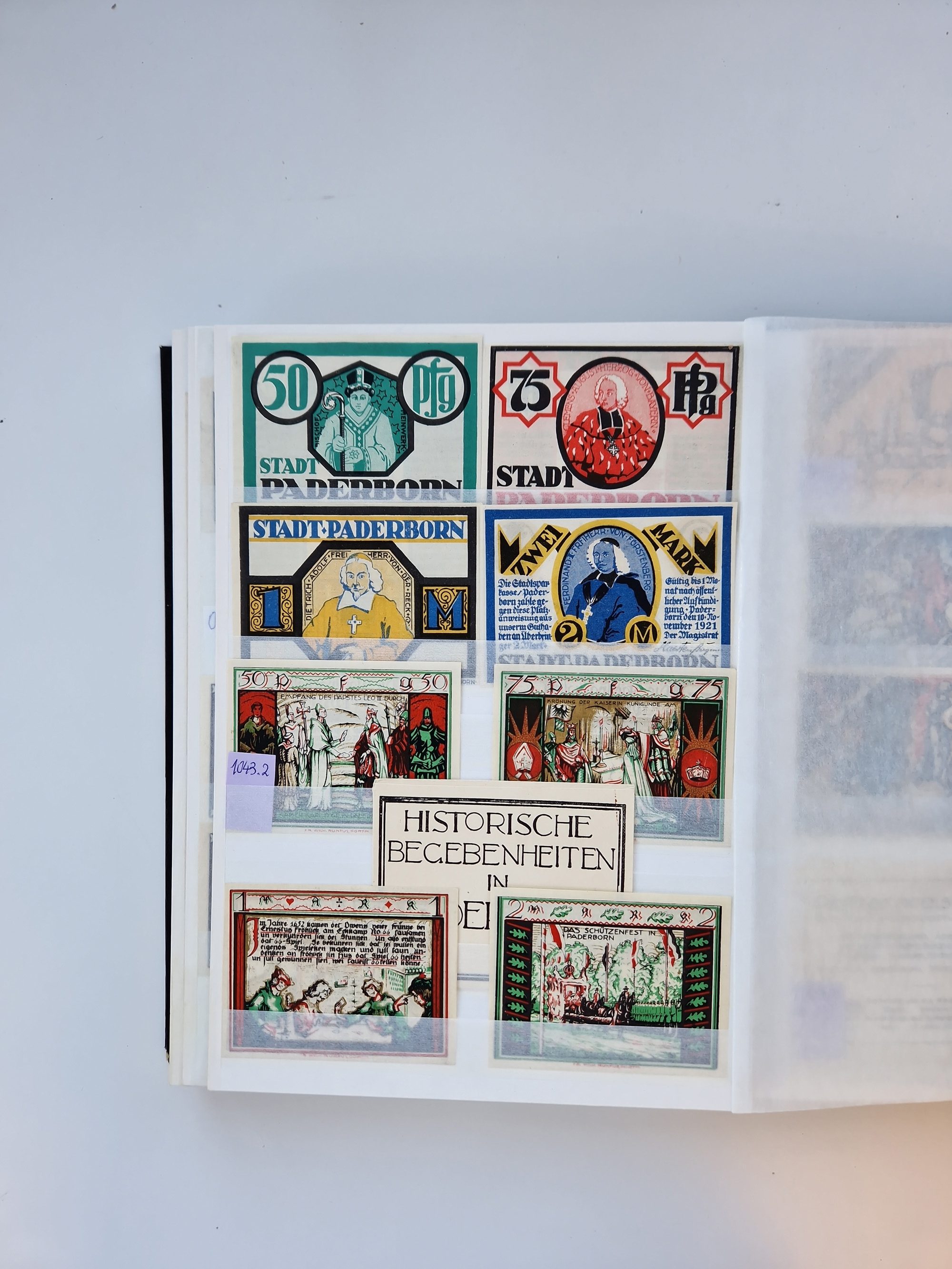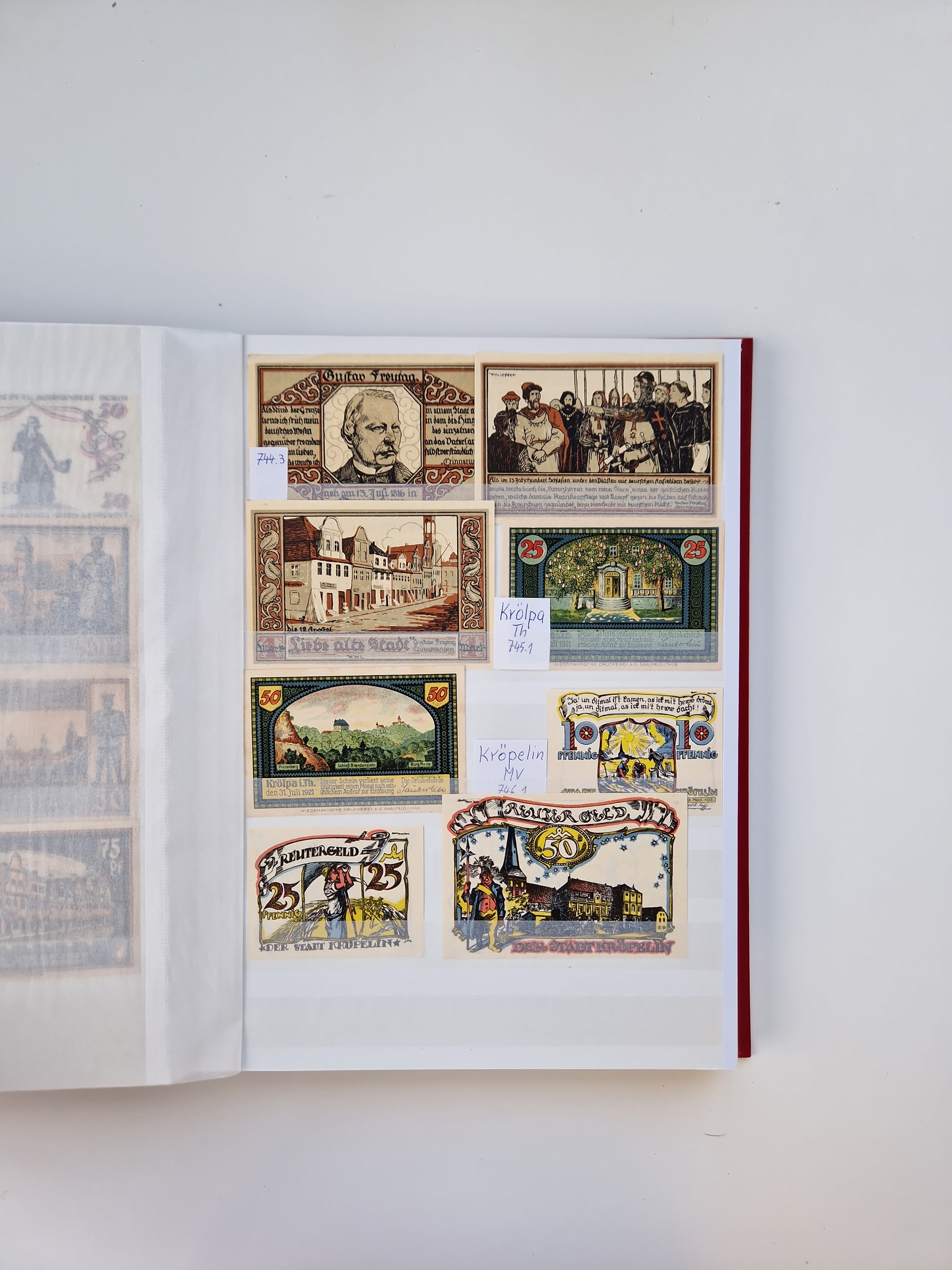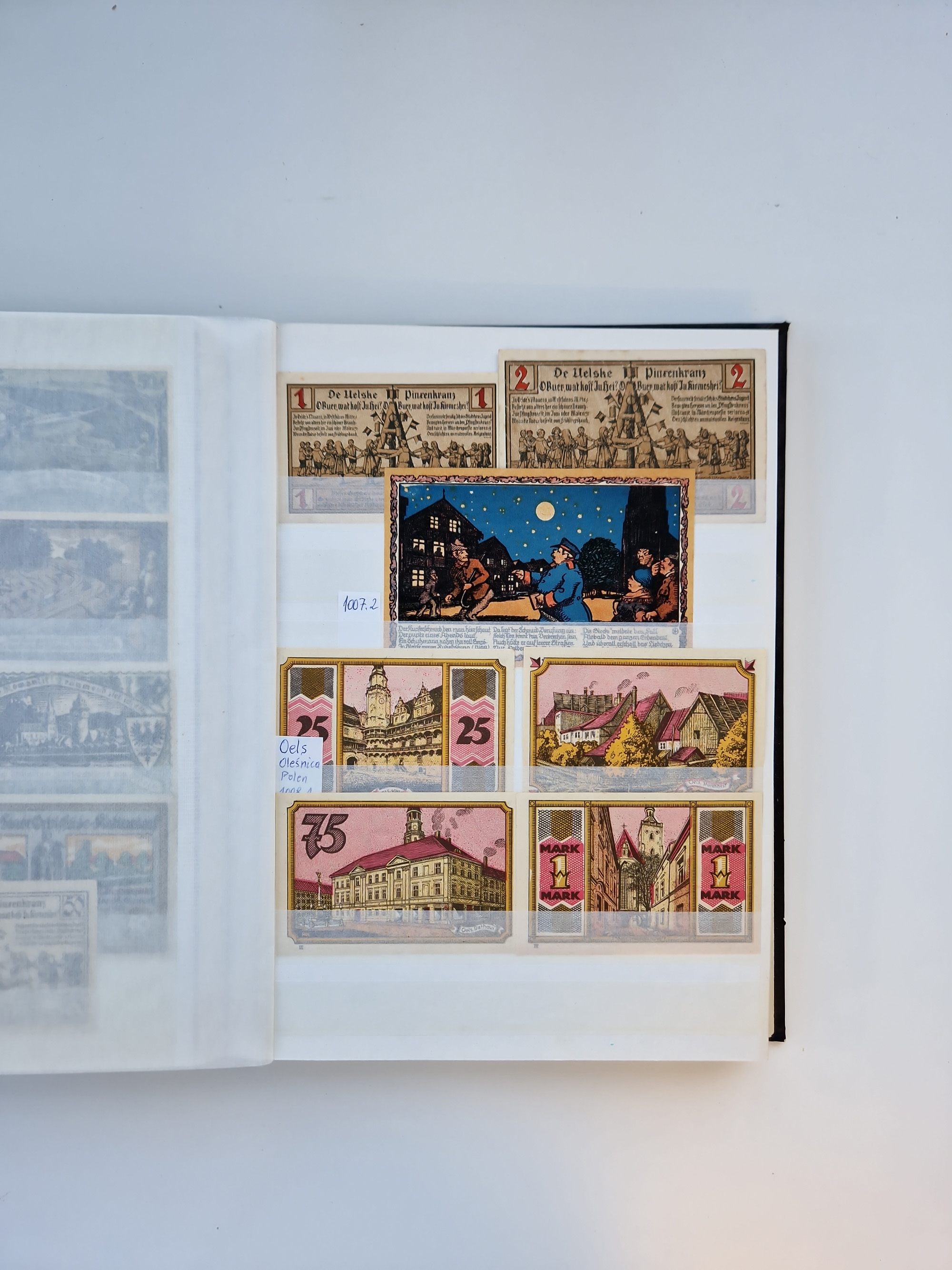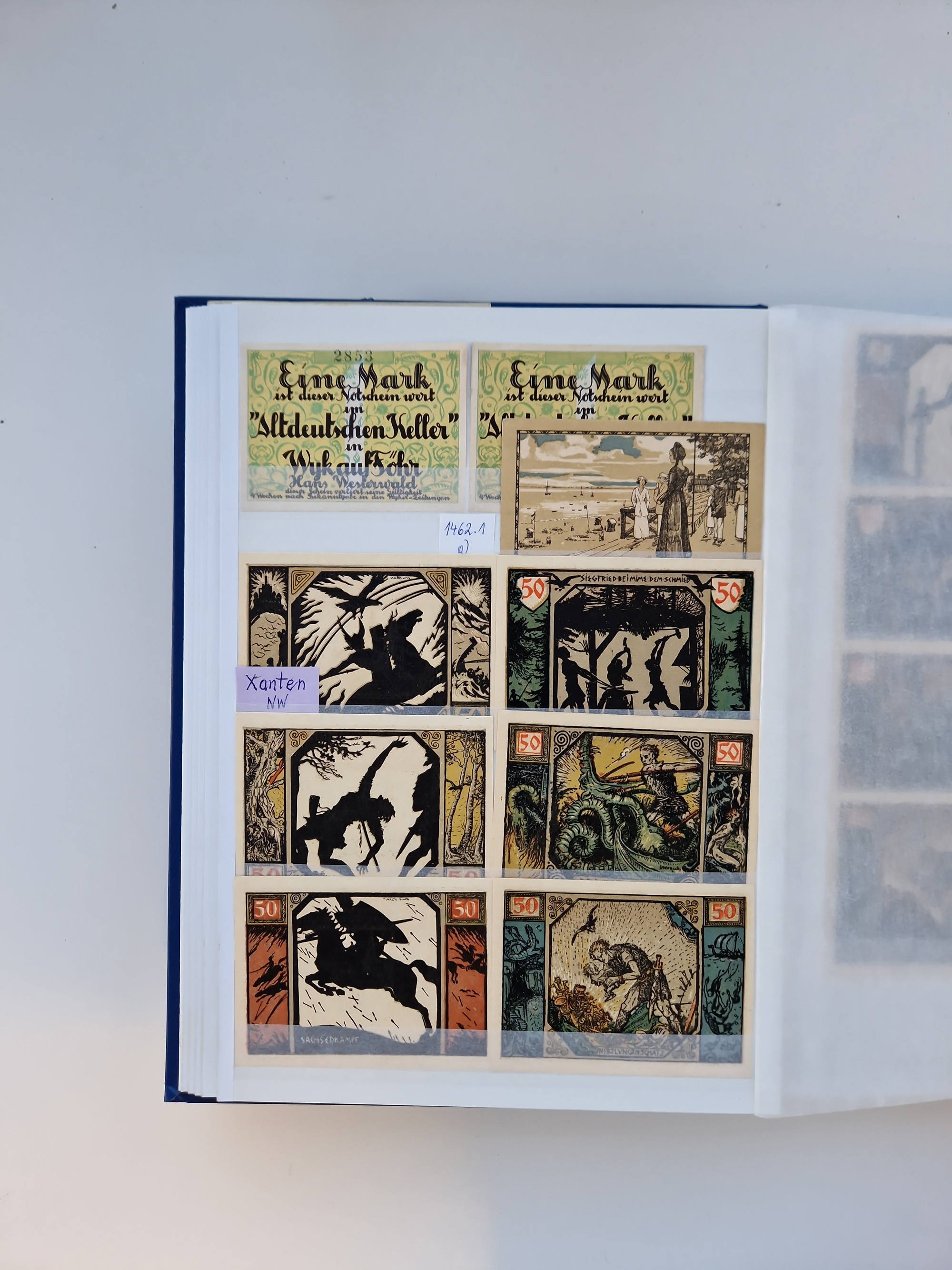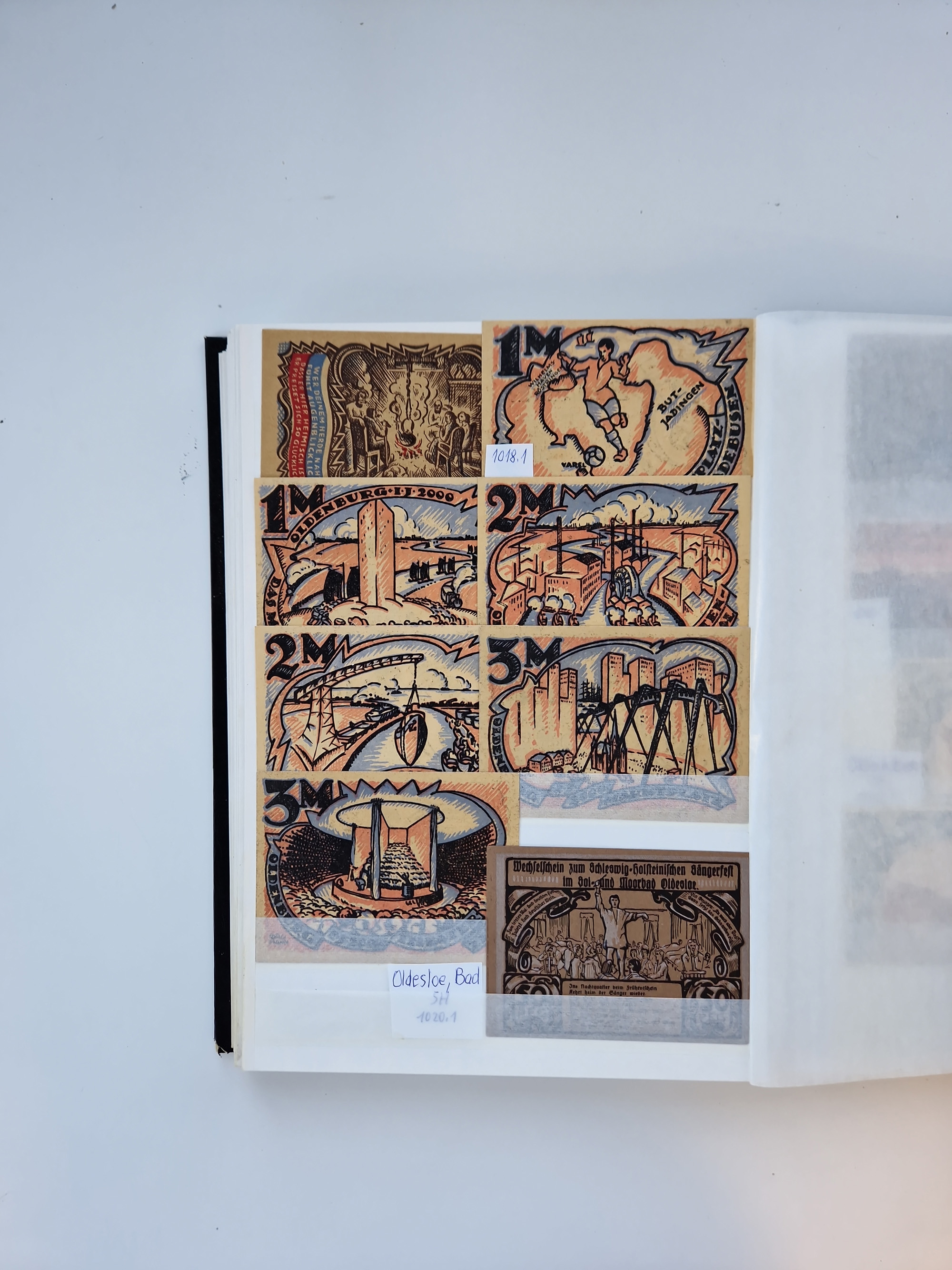 Notgeld-Serienscheine, saubere Sammlung in 16 meist dicken Steckalben, sauber nach Orten und Serien sortiert, überschlägig etwa 7/8000 Stück, dazu 4 Kataloge